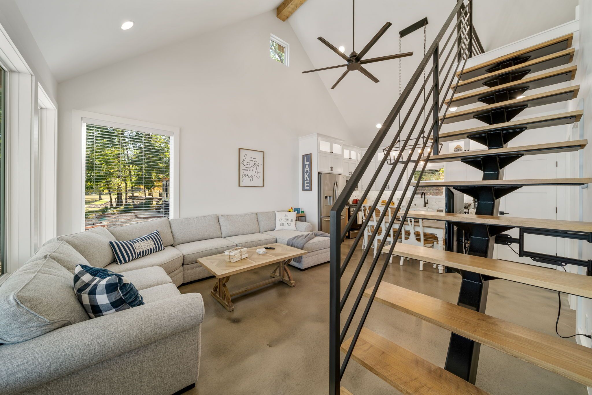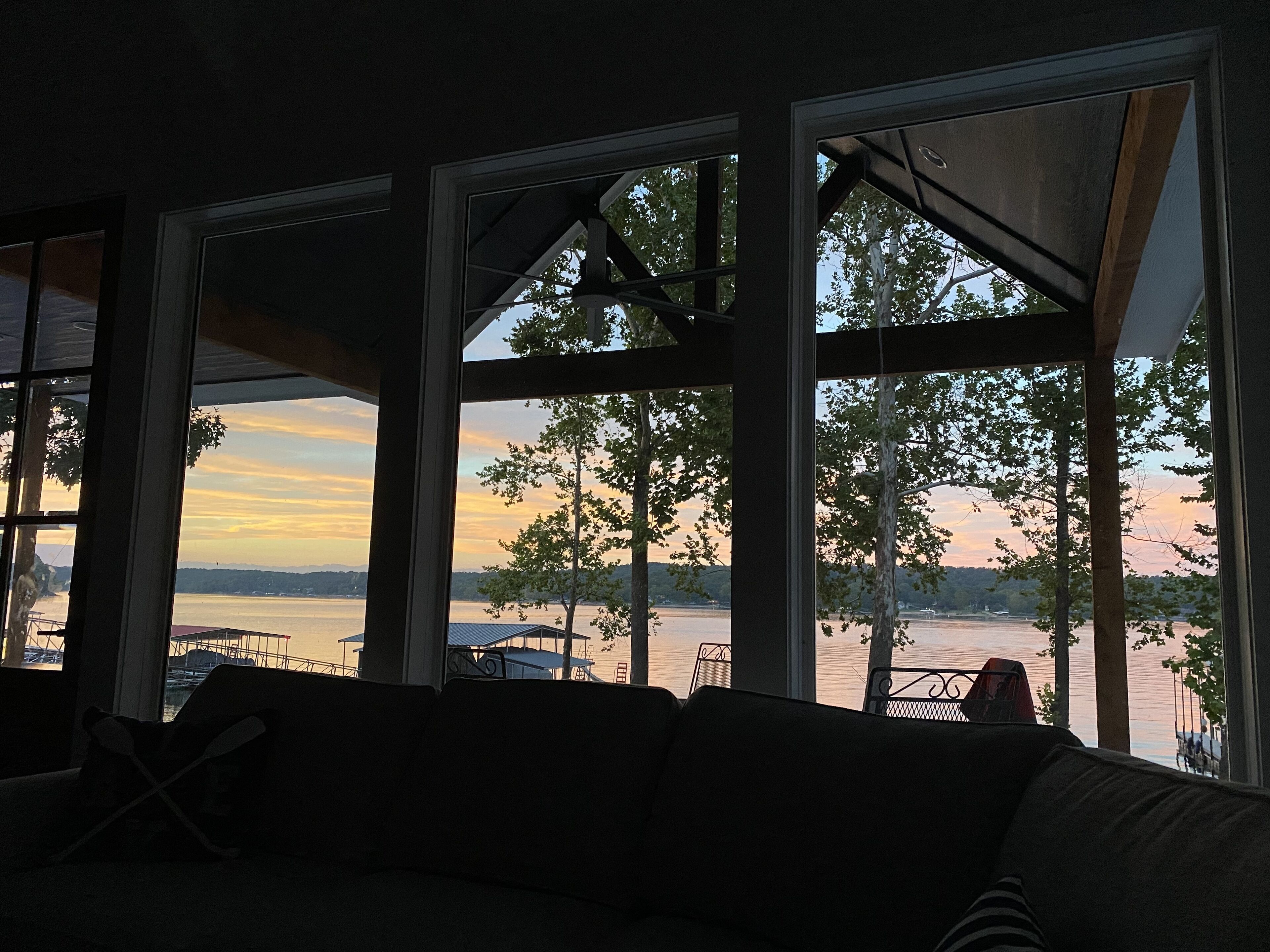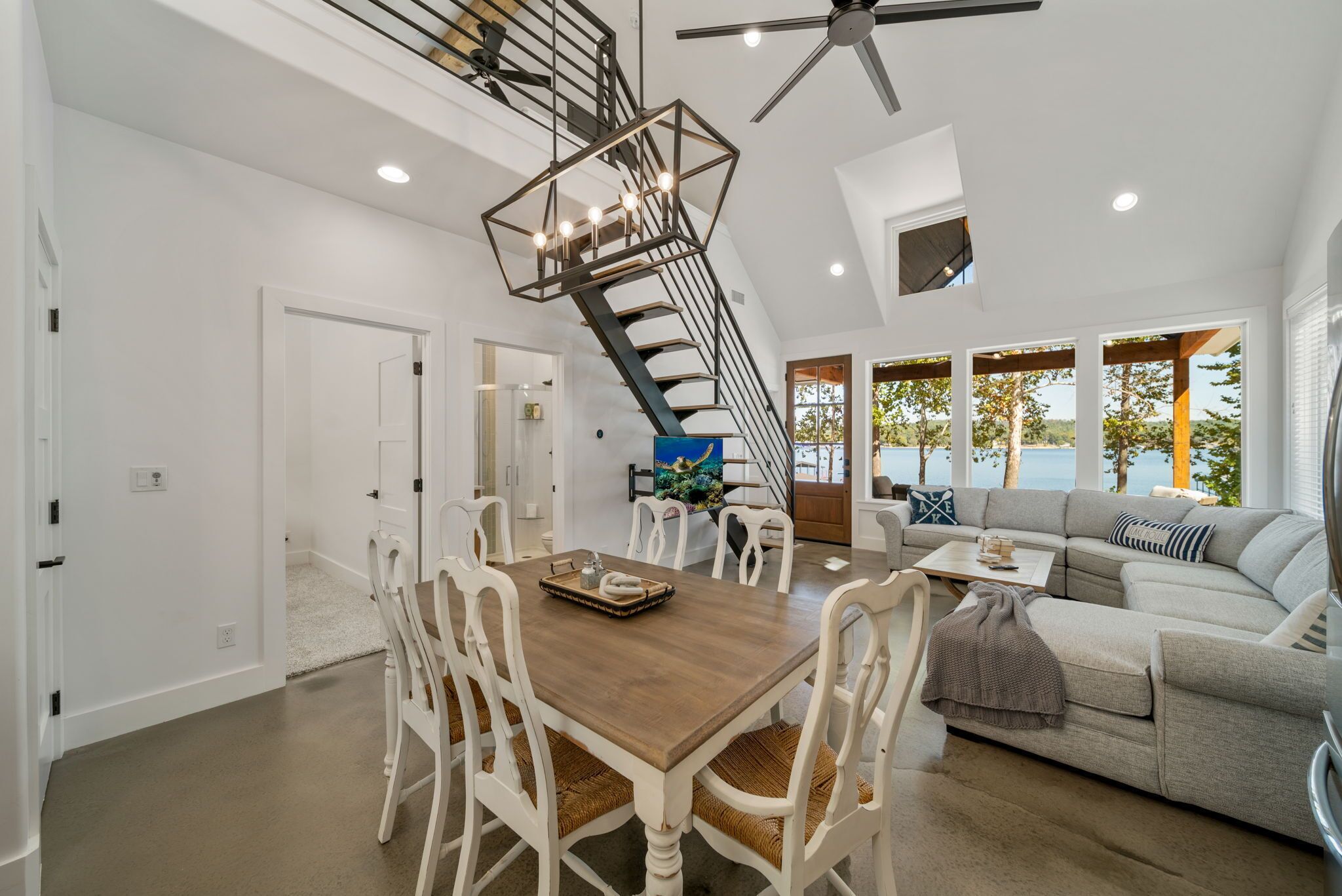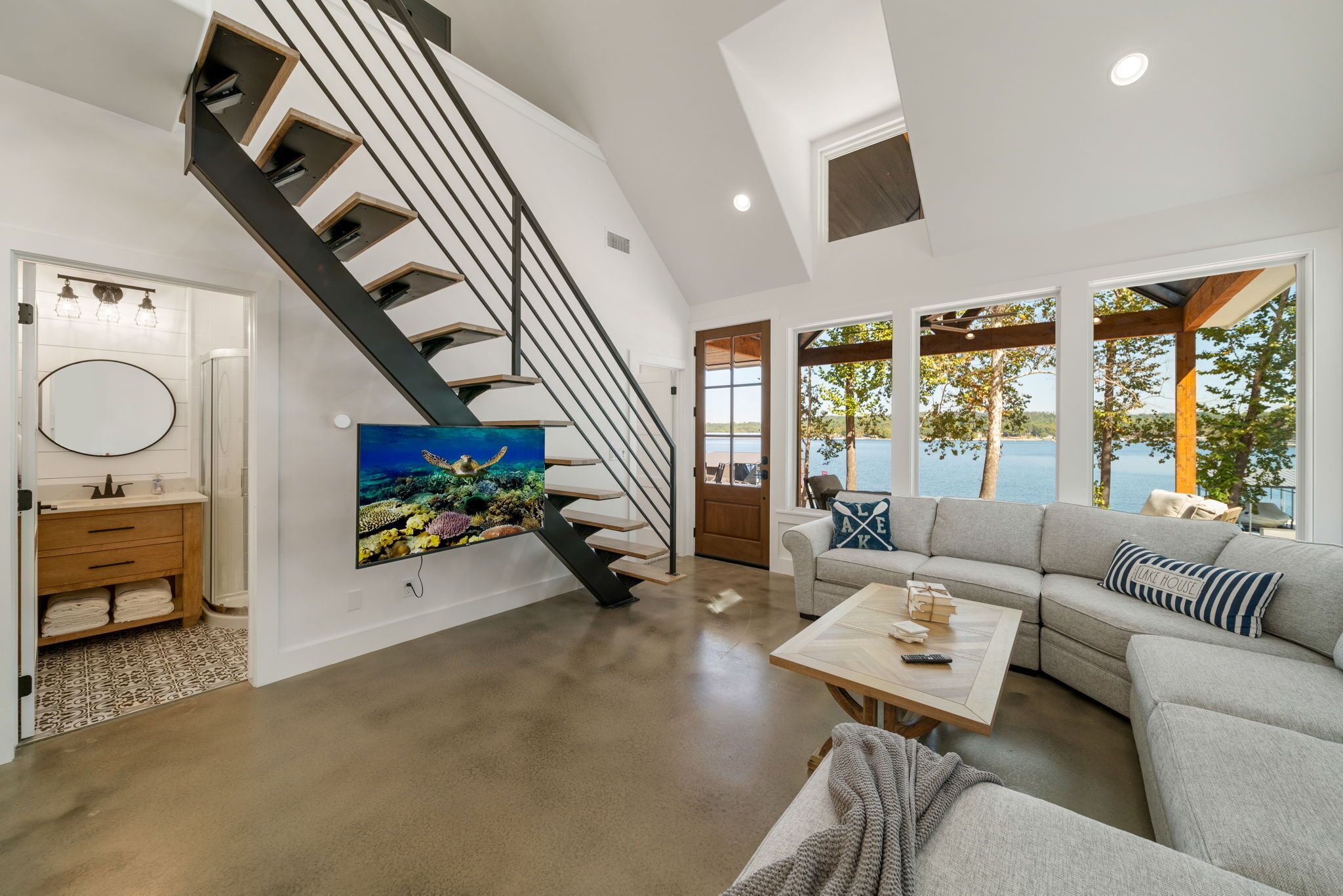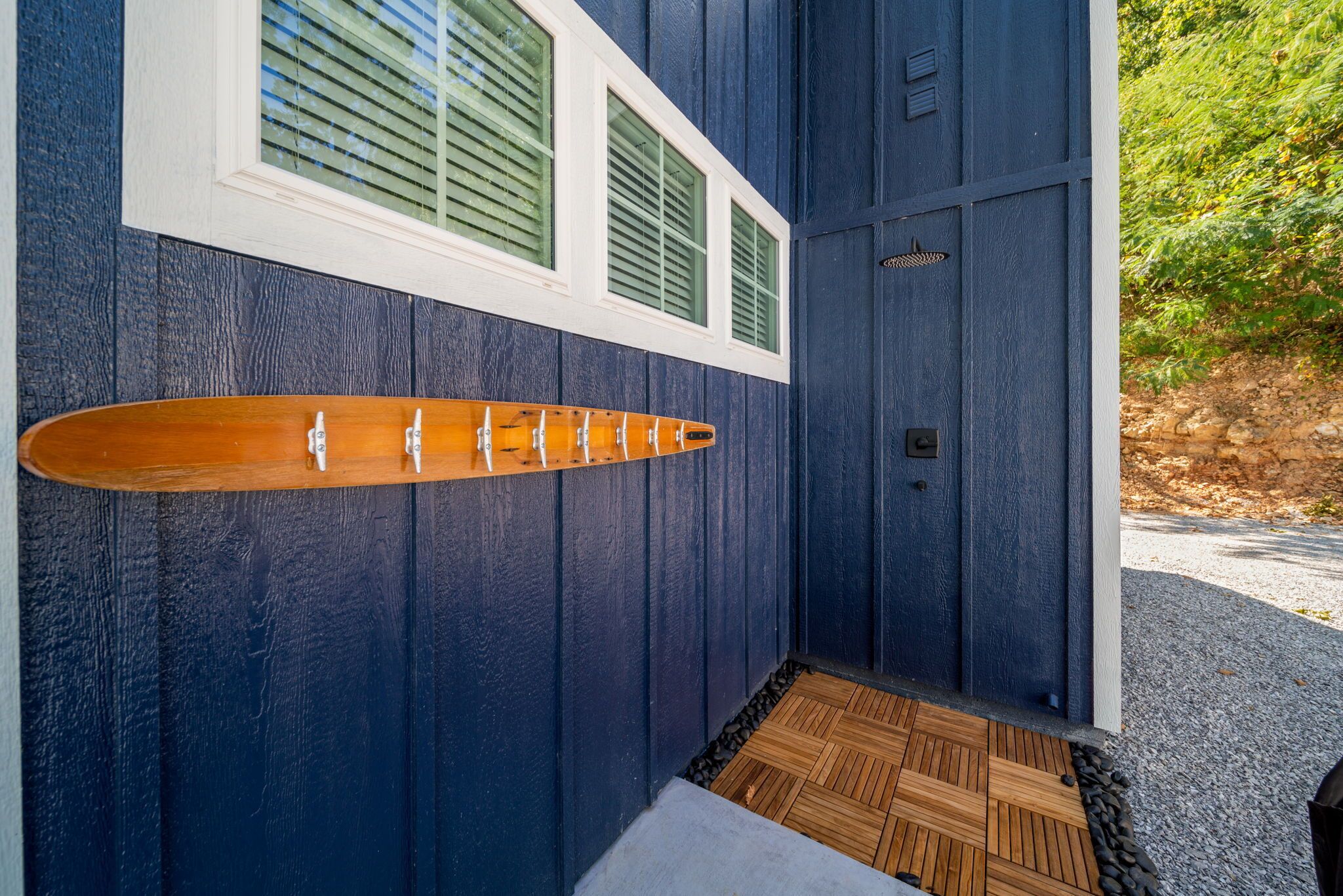 Grand Lake Waterfront Grand Lake O’ the Cherokees waterfront paradise. Located on Drowning Creek, just 5 miles east of Disney enjoy all the amenities we have to offer. Boat dock to tie up, swim deck, water slide, high dive, kayaks, paddle boards and fish cleaning station. This property has a gentle slope to water, outdoor shower, fire pit and patio to enjoy the amazing views! This is a brand new build. Enjoy all of the 46,500 acres of water or rock climbing and trail riding below the dam. If there is a weekend or weekday that you are interested in that is not available please contact us.