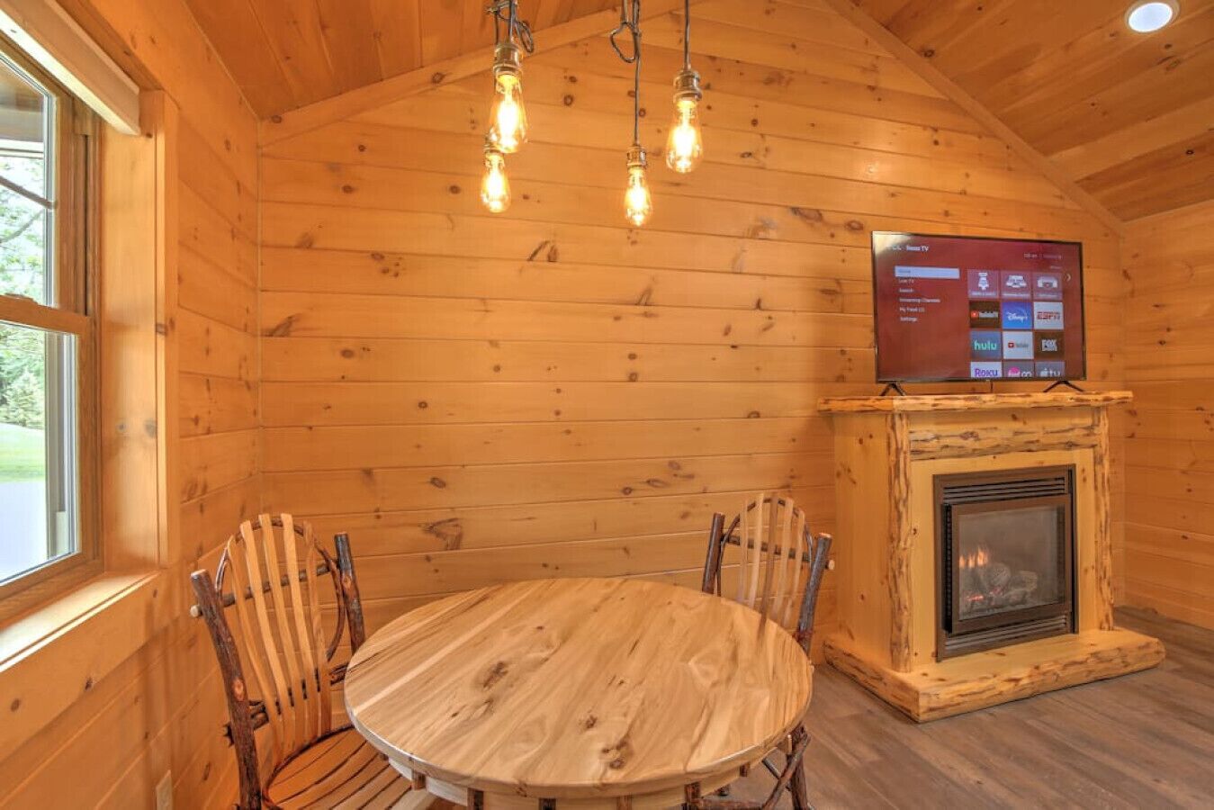 Cozy Cabin Getaway with Fireplace, Kitchen, Jacuzzi Tub - Sleeps 2 This cozy cabin sits on top of the hill at Coblentz Country Cabins and features a full kitchen, living room, whirlpool tub, gas fireplace, 50″ LED TV, king-size bed, and a walk-in shower. A perfect romantic getaway or friends retreat. Located only 1/2 mile from downtown Berlin.Our rustic country cabins in Amish Country Ohio are great for couples, families, and group getaways. Located less than ½ mile from the shops and attractions of downtown Berlin.LIVING ROOM - The comfortable living area boasts a large gas fireplace encased in a massive wood hearth. The leather sofa and rocker recliner make for good spots to watch the 50 inch Roku Smart TV. Pine planking and rough finish beams surround you as you enjoy your breakfast at the maple and hickory two-person table with chairs. This room has its own heating and air conditioning unit to maximize your comfort.You may want to sit on the front porch amongst the log pillars and cross-beamed canopy while enjoying the surrounding pines and the ambiance of Amish Country. Your cabin is located in the heart of the largest Amish settlement in the world and there is plenty to do and see nearby.BEDROOM - This spacious bedroom features a premium king-size bed underneath a vaulted ceiling with log beams. The windows on two walls allow plenty of light in the daytime with privacy shades for the night. Elevated windows near the ceiling allow for soft moonlight to accompany your sleep. The two-person jetted tub adds an opportunity for relaxation before you turn in or at any time during your stay. And the personal heating/cooling unit allows for the optimal sleeping environmentBATHROOM - is equipped with a walk-in shower large enough for 2 people, a unique farmhouse sink, hairdryer, and all the amenities you need to stay clean and refreshed.The kitchen area is home to a full-size refrigerator and an oven with 4 burner stovetops. There are ample pots and pans if you feel like making your favorite vacation meal, or a microwave oven for heating up the leftovers from one of our amazing restaurants in town. A toaster and drip coffee maker round out the appliances which are at your disposal.The entire standalone cabin is yours to enjoy. You may also walk the paved pathways of our campus and hike up the scenic county road to town or down the same road to explore nearby fields, creeks, and wooded areas. (please be respectful of any private property)Access to your cabin is via keyless entry with a code we will provide you upon confirmation.This cabin is located on a property with other stand-alone cabins. While located in a peaceful and serene setting, your cabin is less than a mile away from the heart of Berlin with all its shops, restaurants, flea markets, and attractions. In a 10-mile radius of your tranquil base are the villages of Mt Hope, Bunker Hill, Charm, and the towns of Walnut Creek and Millersburg. Along the way to places like Bunker Hill Cheese, Breitenbach Winery, or the Amish Country Theater, you may come across a team of horses plowing the field, Amish farmers shocking wheat or making hay, and some of the most beautiful countryside in the Midwest.While public transportation is limited in our area, the charm of Amish country is driving the back roads and coming across sights you cannot find anywhere else. When you want to get down to serious shopping there is free public parking available in town and at all the attractions outside of town. There are even several places where you can travel as our Amish neighbors do in a genuine Amish buggy driven by one of our local Amish men who will tell you little-known facts about the plain folk's way of life.Non-Smoking RoomsWe are strictly non-smoking. Outside areas may be used for smoking only if the smoke does not enter any of the accommodations. A $250/night fee is assessed for smoking.No PetsPets (no matter how well behaved) are not permitted at our properties. Please respect future guests with allergies and our efforts to keep up all rooms to highest standards. A $100/night pet fee is assessed.Zero-Tolerance Party Policy - We pride ourselves in providing a quiet, secure, location without the party - the kind of place where you got to enjoy a nap, a good book, the company of friends, and the beauty of Ohio's Amish CountryWe will not tolerate any behavior that disturbs other guests, including playing music too loud, arguments or fights, slamming doors, or damaging units. Any of these behaviors can result in your being asked to leave without a refund.