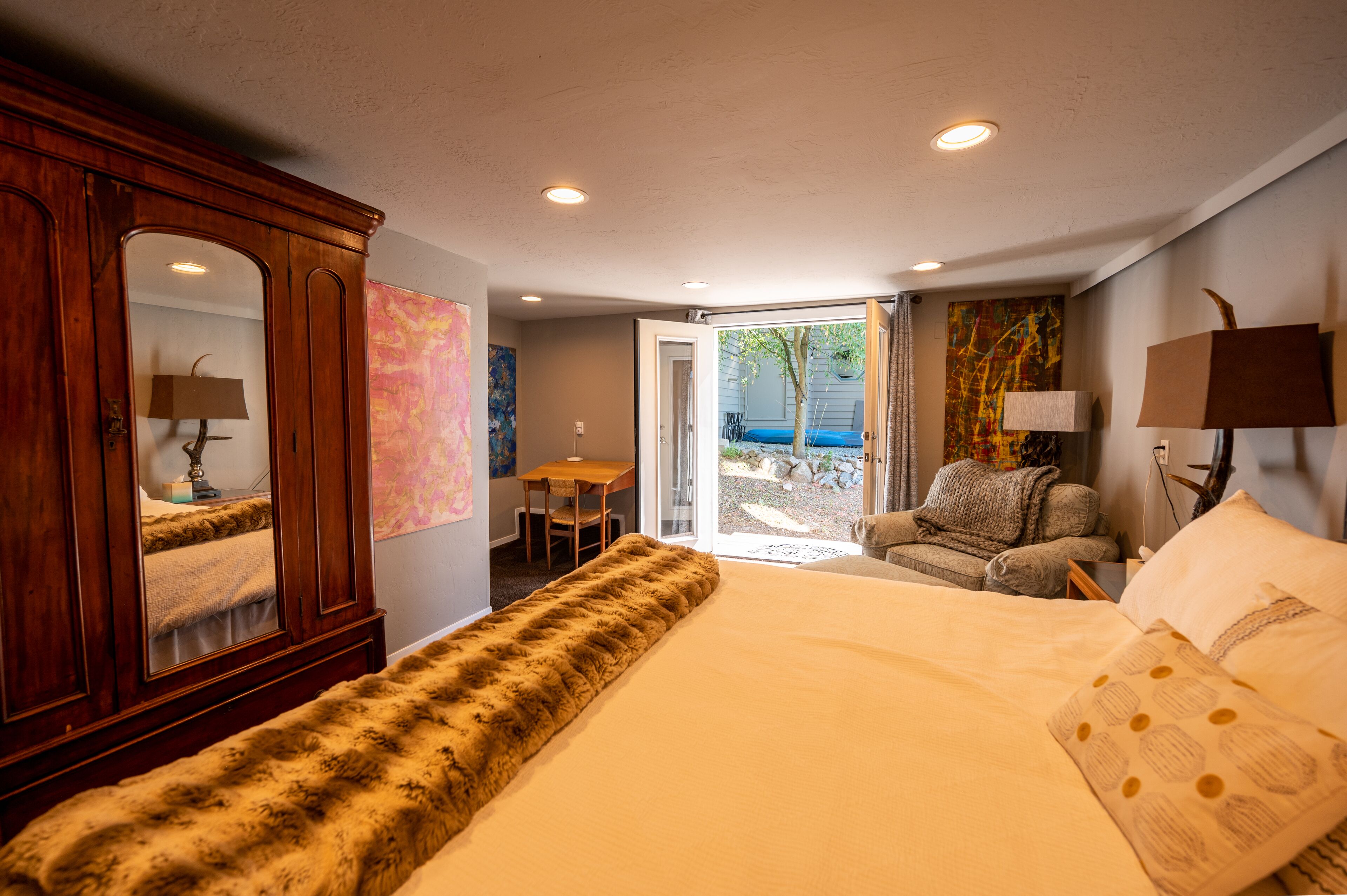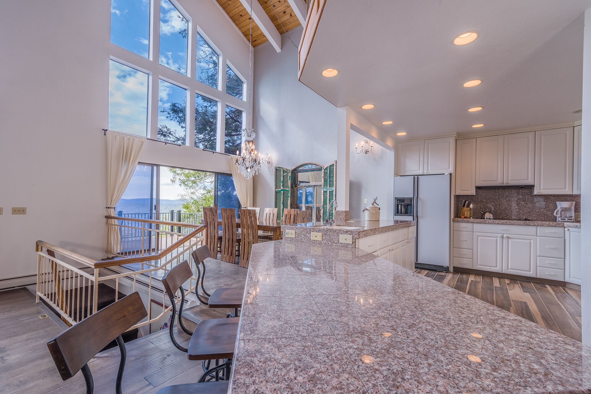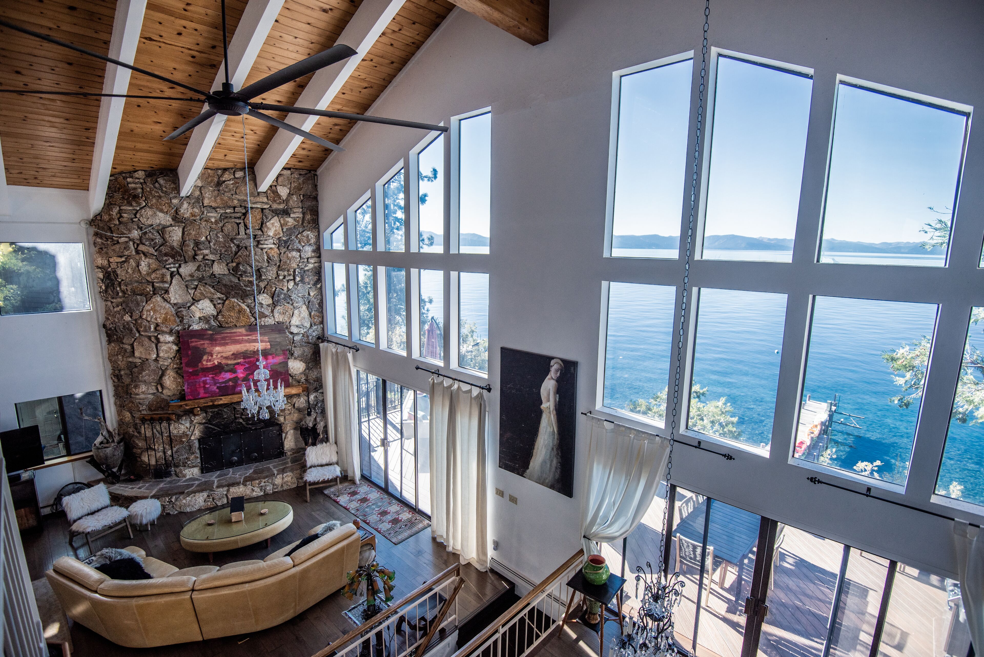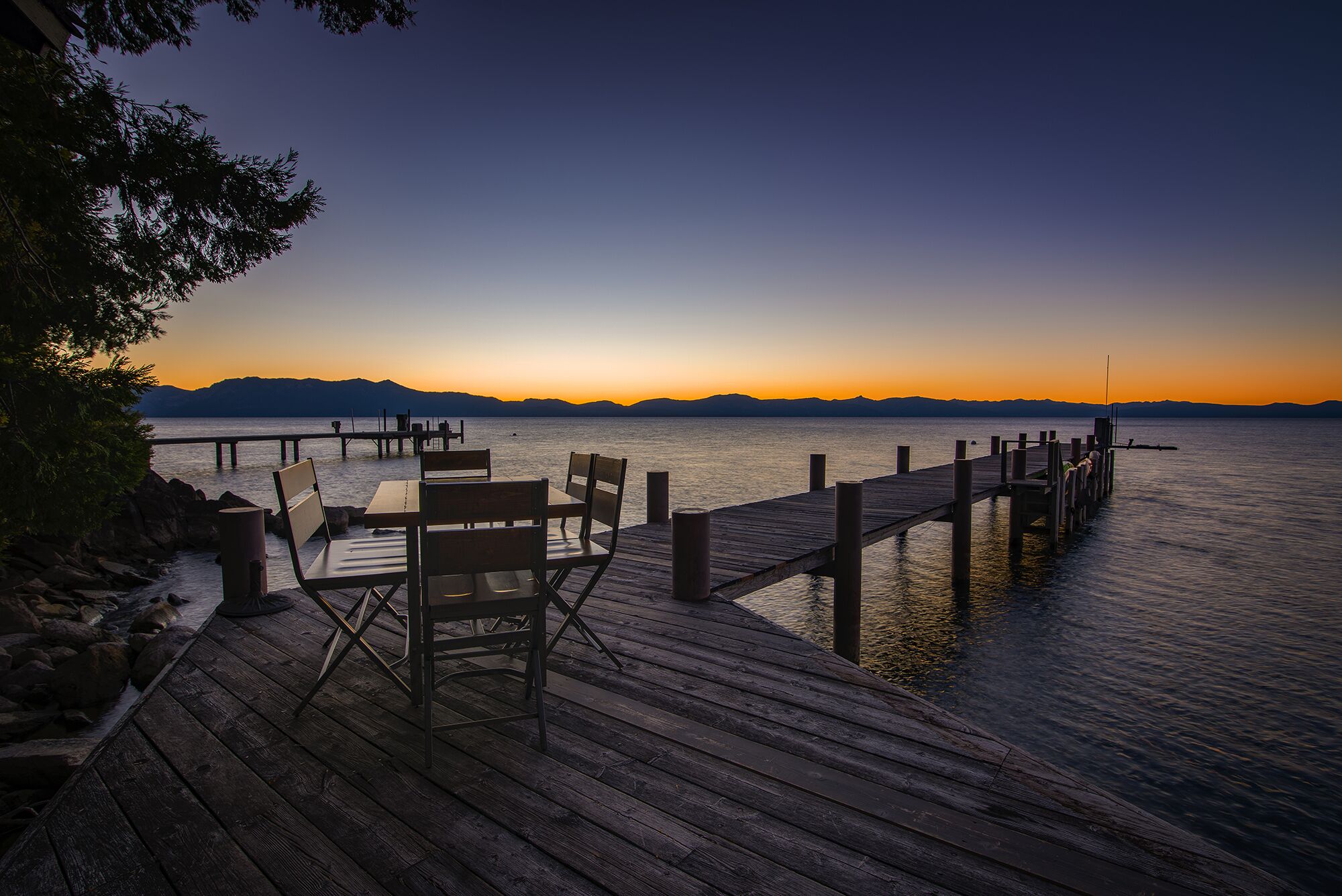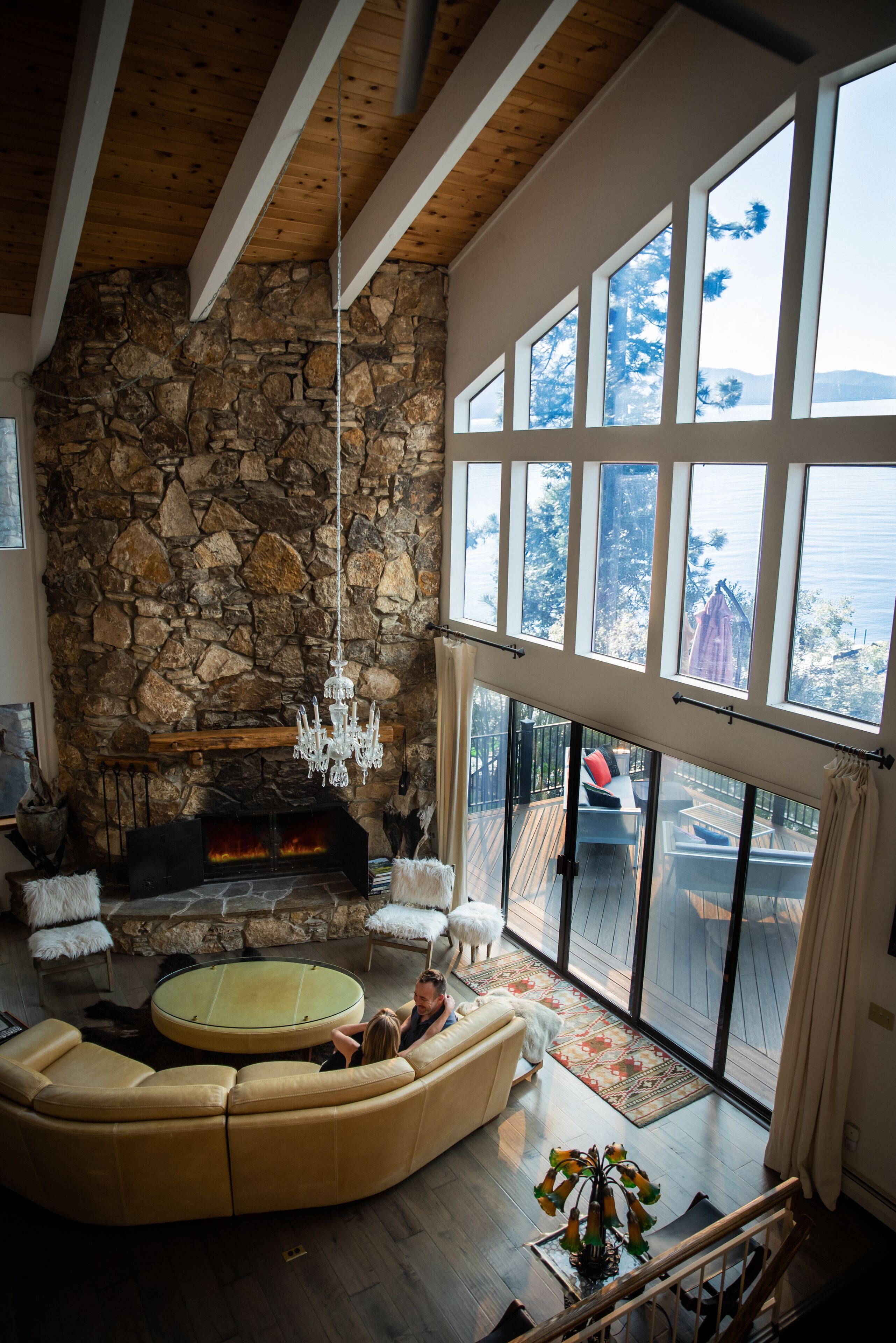 Beautiful Lakefront Home with Pier and Buoy. Max. Night occupancy 8 VIlla de Lago, The Lake House, is located in a secluded enclave north of historic Cave Rock Nevada. Nestled in pines that sweep down through the riparian shrubbery from the home to the properties private pier and buoy. Whether by day or night the lighted staircase will carry you to the magic of the bouldered shoreline where you can spend your time relaxing to the sound of the waves and Tahoe’s ever changing panorama or take a dip from off the pier and swim in waters as clear and brilliant as our skys.De Lago, brings the outside in with expansive windows that reach from floor to ceiling and doors that sweep open to bring the lakes vistas in uninterrupted to our second living and dining area on the deck above the always playful waters of Lake Tahoe.De Lago’s décor is rich in eclecticism with antiques, comfortable furnishings and beds; appointments and original art that show cased by stunning vintage chandeliers. , We like to think it’s fun, cozy, comfortable and smart with a deference to the traditions of lake nostalgia that will give you memories and stories to last a lifetime.FireplacesThe predominant feature of the main hall is the floor to ceiling fireplace in the living room. With an oversized wood burning firebox capable of keeping you in the mood during your escape with logs up to 30 inch. All the irons are hand wrought and oversized to accommodate large logs. A plentiful supply of firewood for your stay is complimentary. The master suite fireplace is gas log and can be operated by remote allowing for the convenience of instantaneous warmth and glow.Great Hall The main hall is an open split level floor plan allowing guests to share in all the homes main entertaining activities; cooking, dining, sitting and reading area, television and a powder room on top of beautiful hardwood floors, and carpets and unique and comfortable furnishings. The main deck is accessed off both the living and dining areas through large 6 foot glass doors in between wall to wall and floor to ceiling windows. Dining accommodates 8 plus 3 at the counter, Living room accommodates 6 on the sofas plus 2 on the leather ottomans and many more on the large stone hearth. The reading area accommodates 2 with leather chaise lounges.Main deckThe main deck is accessed off the living and dining areas through sweeping doors. Lounging area seats 8 on sofas and ottomans and the dining area seats 8 at one table and of course there are panoramic lake views and a bbq. Access to the dock is off a stair case from the main deck down through trees and shrubs with subtle stair lighting. Outdoor gas fireplace on deck.Master Suite and BathThe lake view master suite is one floor lower than the main hall and is secluded from the rest of the home. King size sleigh bed, chaise lounge next to the fireplace, hardwood floors and carpets, large wall to wall windows that access the lower deck, and stairs that pass to the dock and upper deck. The master bath is generous and airy with double vanities and a dry sauna, lake views from the double sized double zone shower and tub. Upstairs BedroomsBoth upstairs bedrooms have queen beds with luxury linens and bedding and you will enjoy Lakeview’s from either choice. Both bedrooms are furnished with antiques and modern appointments. The bathroom is shared. The game room loft is accessible on the same level as the bedrooms.Loft The loft is directly above and behind the main hall and has lake views on par with the main hall. Pool table and bar stools seating for fun & relaxing. Unique decorations and art. Bonus fourth bedroom.A private bedroom accessed off the garage thru an entrance and stairway. Bedroom with King bed, French doors with view of Tahoe, leading to the outdoors. Work space, oversized cozy chair and ottoman, and Large Screen TV. Bathroom is shared and located upstairs in loft.The Dock and Boating FacilitiesThe wood dock is approximately 100 feet long above a beautiful bouldered bottom. The boat lift is not accessible to guests but the 15,000 pound boat capacity buoy is as well as tie up to the dock. The boating closet houses a refrigerator and ice chests for your convenience and leisure on the lake. kayak's & paddle boards available for guest use. Some life preservers available. Best practice for life preserver bring your own for proper fit or rent.At a Glance:Lakefront Home with private dock and buoy.Inside:4 Bedrooms (sleeps 8) all lake view. 2 ½ Baths.Dining for 8 plus 3 at counter.Hardwood, tile and carpet floors.2 Large screen Televisions, 1 in the living room and 1 in the 4th bedroom. Roku accessible and WI-FiFully equipped kitchen.3 Fireplaces, 1 wood Main Hall and 2 gas log in master bedroom and Outside deck, complimentary fire wood for your stay.Loft with pool table views to the Lake . Dry sauna.Linens and towels provided. washer/dryer.Outside:Boating facilities, 15,000 lb boat capacity, kayaks, 2 paddle board . Boating closet with refrigerator.Dramatic Exterior lighting.2 Decks, lounging for 8 dining for 8, tea table off lower deck and BBQ on main deck.Bear box for garbage.Swimming, fishing off dock.Parking for 4 vehicles, 2 car heated garage. Restrictions:No occupancy greater than 8 people is allowed. The home is equipped with one video camera on the driveway without sound. The home also has an inside and outside noise aware system that does not record conversations but monitors decibel levels to keep the property in compliance with Douglas County noise ordinances.Quiet time after 9 PM till 8 AM, including no Jacuzzi use.Extreme caution when pulling off of or onto highway 50.No smoking on propertyMinimum age required for reservation booking (25)Parking for 4 vehicles 2 in garage and 2 in driveway.No parking on street at any time. Strictly enforced.Shoes must be worn on dock at all times.Children must be supervised at all times.Swim at your own risk. Use water sports equipment at your own risk. No lifeg