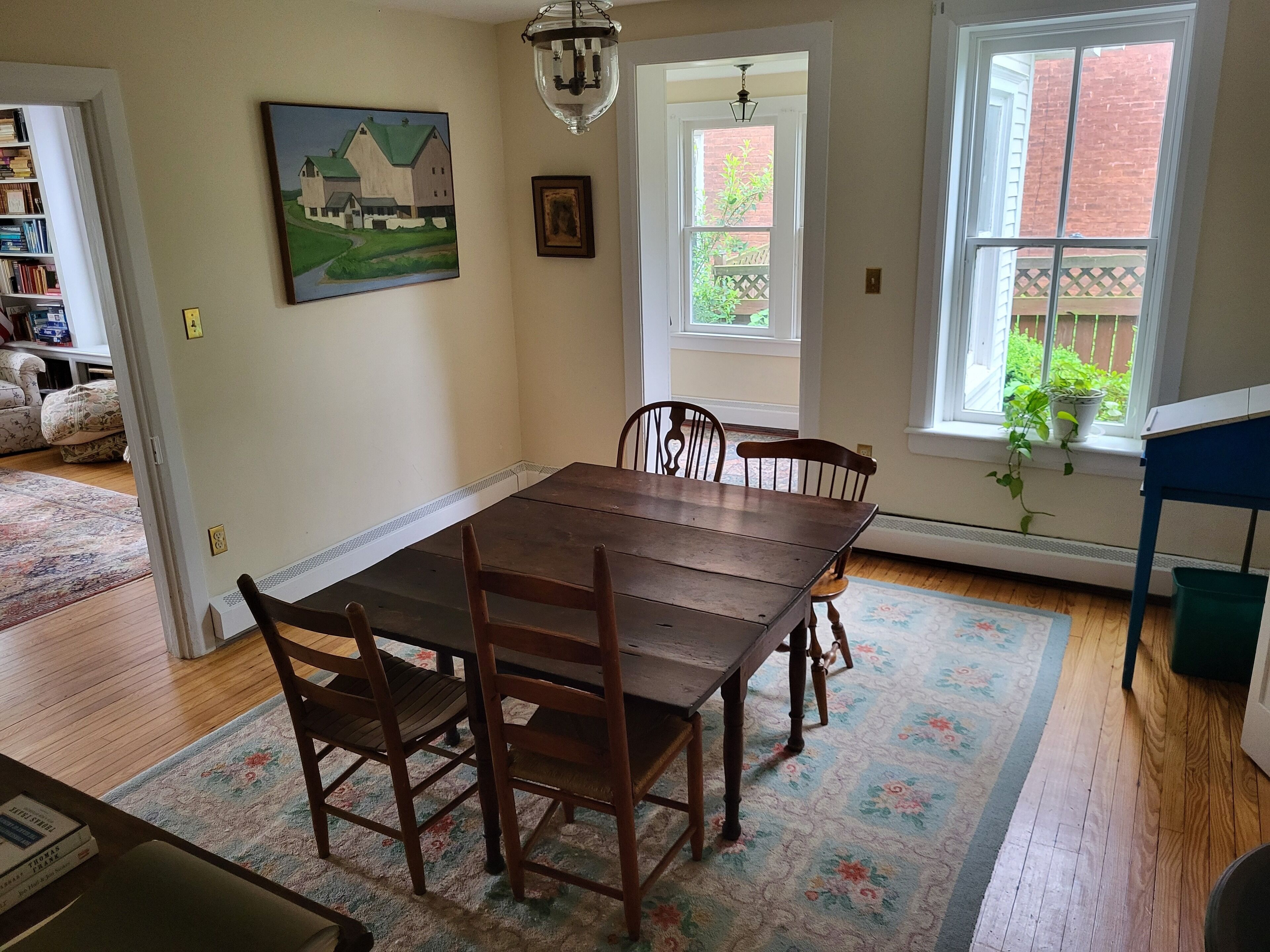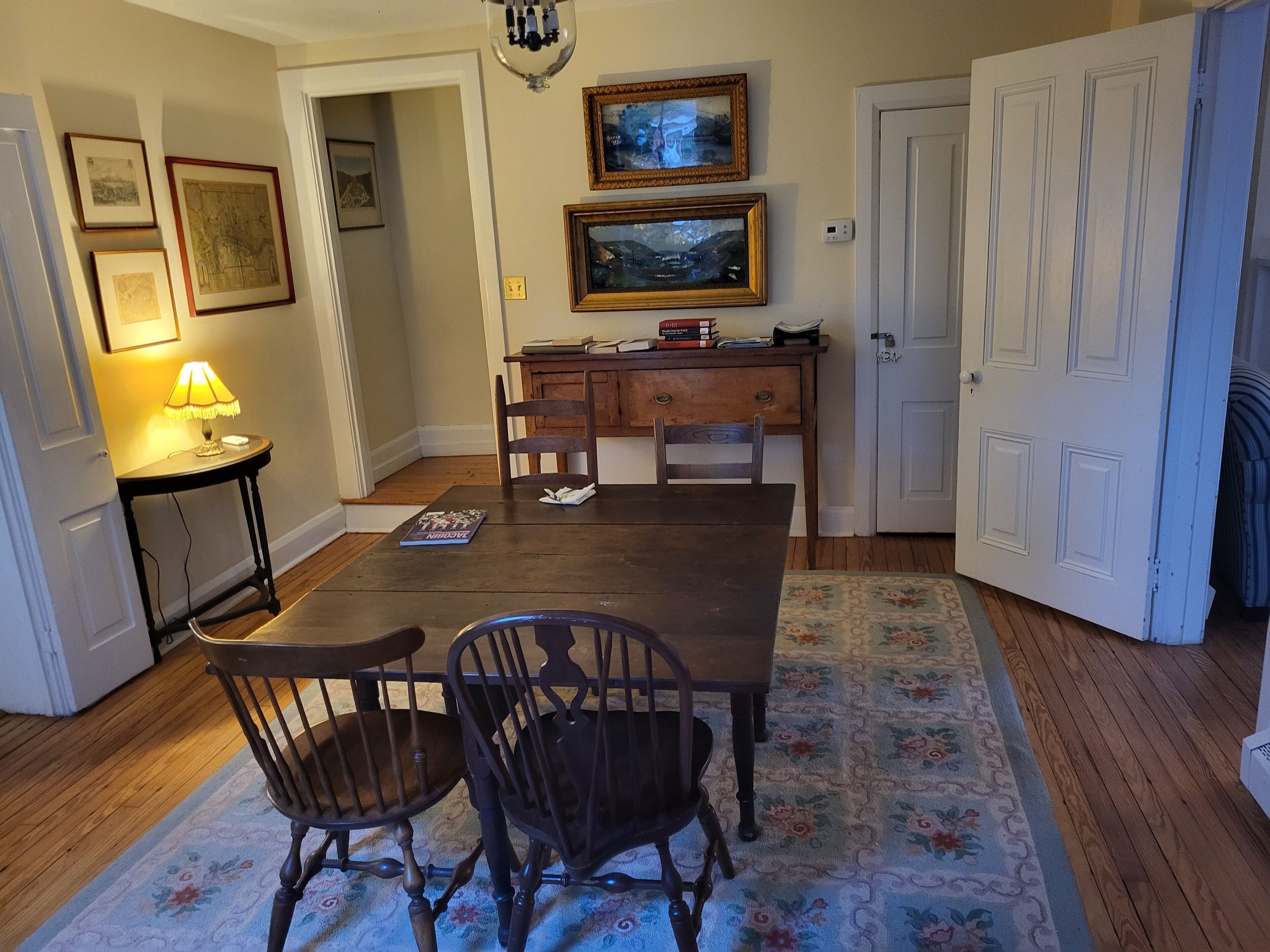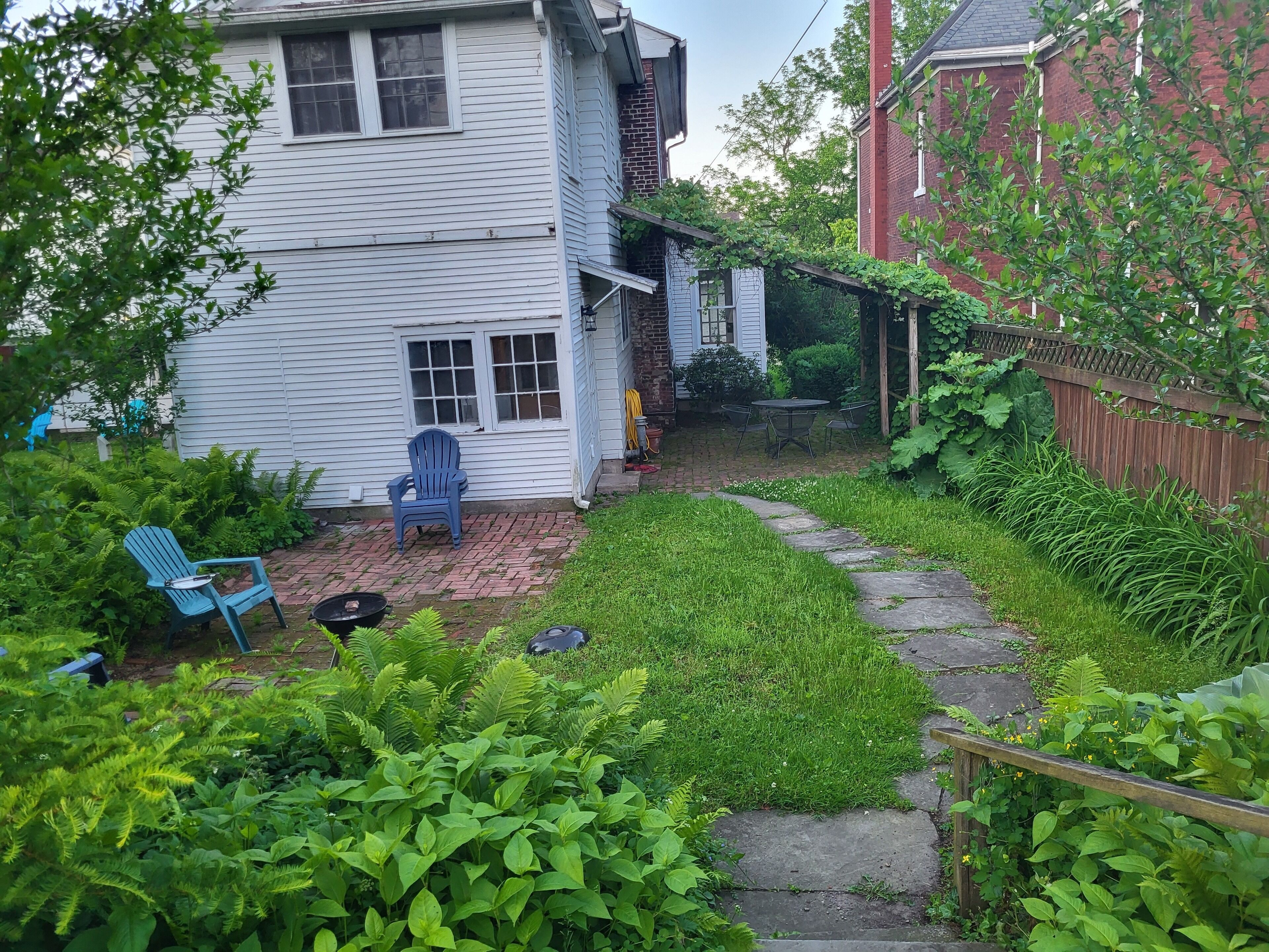 House on the Susquehanna One of Lewisburg's oldest dwellings (1795), in excellent condition, airy and light-filled, view of river from porch, and a new bathroom. Backyard with patios, arbor and charcoal barbecue. Close to Market Street, restaurants, and Bucknell University.*We have parking in the alley behind house, but if you park on the street, don't leave cars after 7 AM Monday--they tow!*Don't use walkway by stone house, it's not ours!