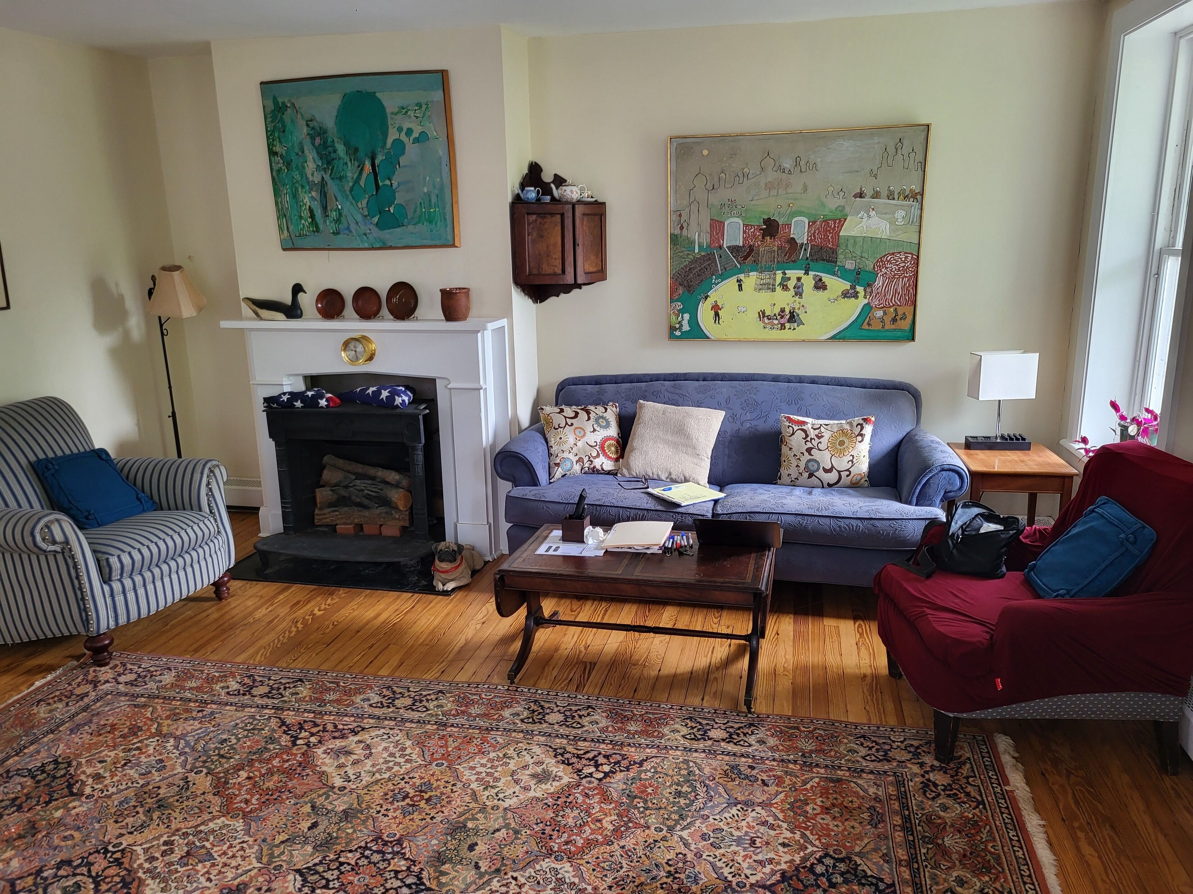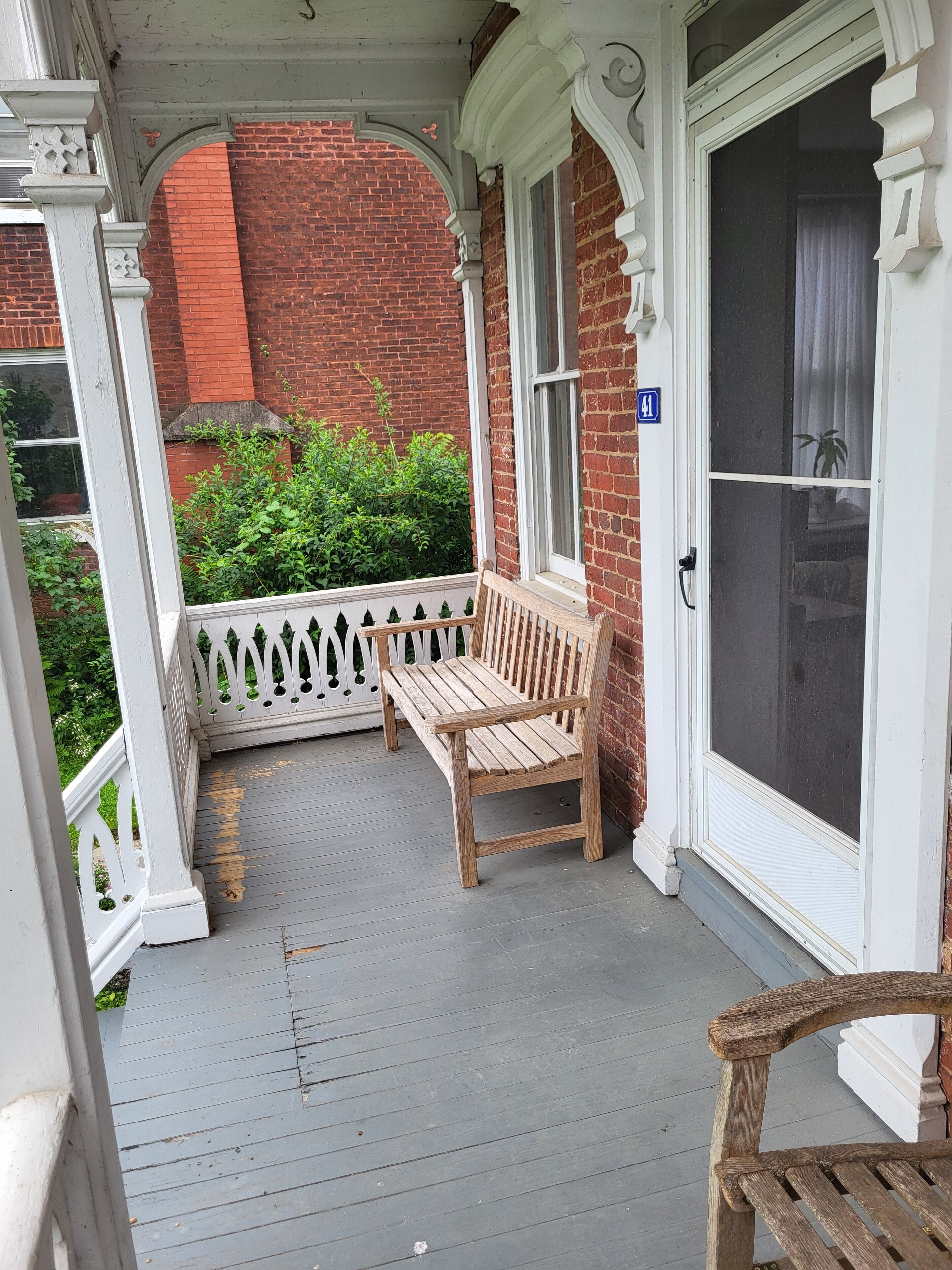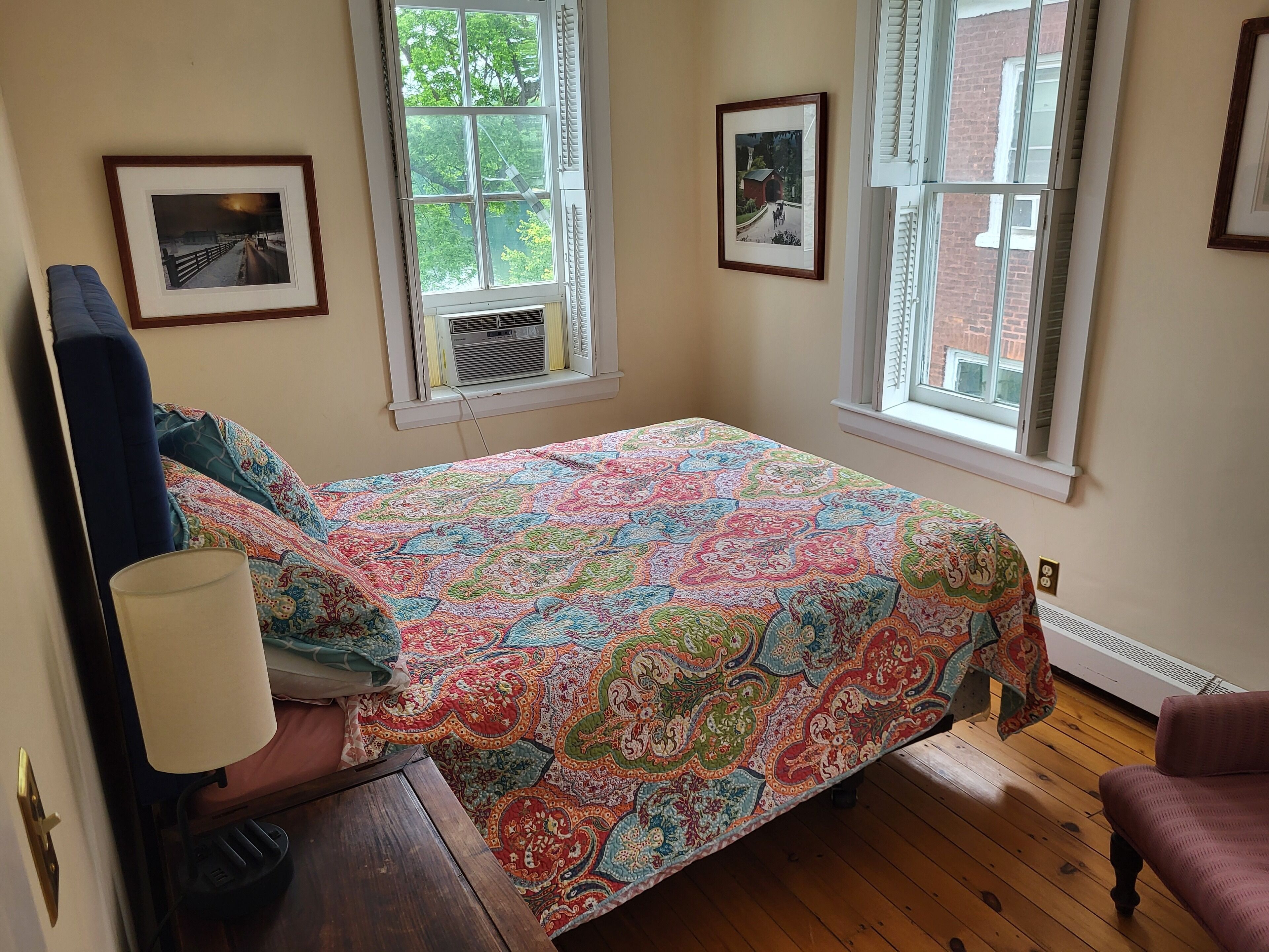House on the Susquehanna One of Lewisburg's oldest dwellings (1795), in excellent condition, airy and light-filled, view of river from porch, and a new bathroom. Backyard with patios, arbor and charcoal barbecue. Close to Market Street, restaurants, and Bucknell University.*We have parking in the alley behind house, but if you park on the street, don't leave cars after 7 AM Monday--they tow!*Don't use walkway by stone house, it's not ours!