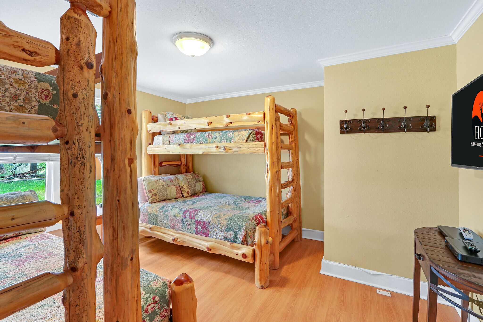Lighthouse Hill Ranch- Brown House Welcome to "The Brown House" at Lighthouse Hill Ranch, where relaxation meets adventure in the heart of Johnson City, TX!This charming 3-bedroom, 2-bathroom ranch house is your perfect getaway, offering all the comforts of home with a touch of Hill Country hospitality. With a full kitchen, washer/dryer, and central air/heat, we've thought of everything to ensure your stay is as comfortable as can be.Sleeping up to 10 guests, "The Brown House" features two queen bedrooms and a bunk room with two twin over full bunk beds. All linens are provided, so you can pack light and focus on making memories.In the fully-equipped kitchen, you'll find everything you need to whip up delicious meals, from pots and pans to cooking utensils and spices. The living area boasts cozy leather furnishings, a foosball table for entertainment, and satellite TV with movie channels. Stay connected with our internet connection, though we won't blame you if you'd rather disconnect and soak in the tranquility of the Hill Country.Outside, a private patio awaits with rocking chairs and a large fire pit, perfect for stargazing nights and storytelling. Firewood is plentiful, so feel free to gather 'round and roast marshmallows to your heart's content. A charcoal Weber grill is also available for outdoor cooking adventures.But the real magic lies beyond the house, where you'll have access to the entire ranch, including over 4,000 feet of crystal-clear creek for swimming and tubing, fishing ponds, and miles of trails for ATV riding, hiking, or horseback riding. Don't miss the unique creekside hot tub and waterfall grotto, available from mid-January to October, and the resort pool and hot tub at the Arc de Texas®.We're pet-friendly too! Your furry friends are welcome to join you at "The Brown House," with a fenced area around the house for their enjoyment. Just remember to bring a crate and keep them off the furniture. Additional fees apply for pets.Don't forget to explore the charming town of Johnson City, just blocks away from the ranch. You'll discover an array of dining options, boutique shops, tasting rooms, and live music venues on the downtown square. For outdoor enthusiasts, Pedernales State Park is a short drive away, offering hiking, biking, tubing, fishing,and swimming. History buffs can explore the LBJ Ranch, the former home of President Lyndon B. Johnson, often referred to as "The Texas White House." The ranch offers guided and self-guided tours that provide a glimpse into the life of a former U.S. President. Wine lovers will find delight in nearby Texas Hills Vineyard, where you can savor local wines in a picturesque setting. The Science Mill offers interactive activities for all ages, and the Exotic Resort Zoo provides safari-like jeep tours with over 700 exotic animals to admire. If you're up for a short drive, venture to Fredericksburg and explore Wine Road 290, featuring 19 wineries within a few miles of each other. The charming downtown area is perfect for shopping and dining.**If staying between the first weekend in November to mid-January your access to the ranch will be limited due to deer hunting season so some amenities including the creekside hot tub and waterfall grotto will not be available.**At Lighthouse Hill Ranch, your health and safety are our top priorities. Our commitment to cleanliness is unwavering, and we provide a 24-hour guest service contact number for emergencies. Enjoy a hassle-free, contactless check-in and check-out process for your convenience.Please note that the property is monitored by exterior cameras for your security at the entrance as well as around the dumpsters. Rates are based on the number of guests entered in the reservation quote, and any additional guests may incur additional charges. The maximum occupancy listed for this property ensures your comfort and safety during your stay.A maximum of 2 dogs weighing 30 pounds or less are allowed at pet friendly properties. Please confirm the property you are interested in is designated as pet friendly prior to booking if you plan to bring your dog(s). Please note that a $30 per pet per night fee will be added to your reservation if you choose to bring your furry friend.***ATV Trails (Additional Fee): For those with a taste for adventure, bring your ATVs. If you don't own an ATV but still want to explore the trails consider booking an excursion with Enjoy the Mountain and explore the rugged terrain with an experienced guide. Book your stay at "The Brown House" today and discover the ultimate Hill Country retreat at Lighthouse Hill Ranch!