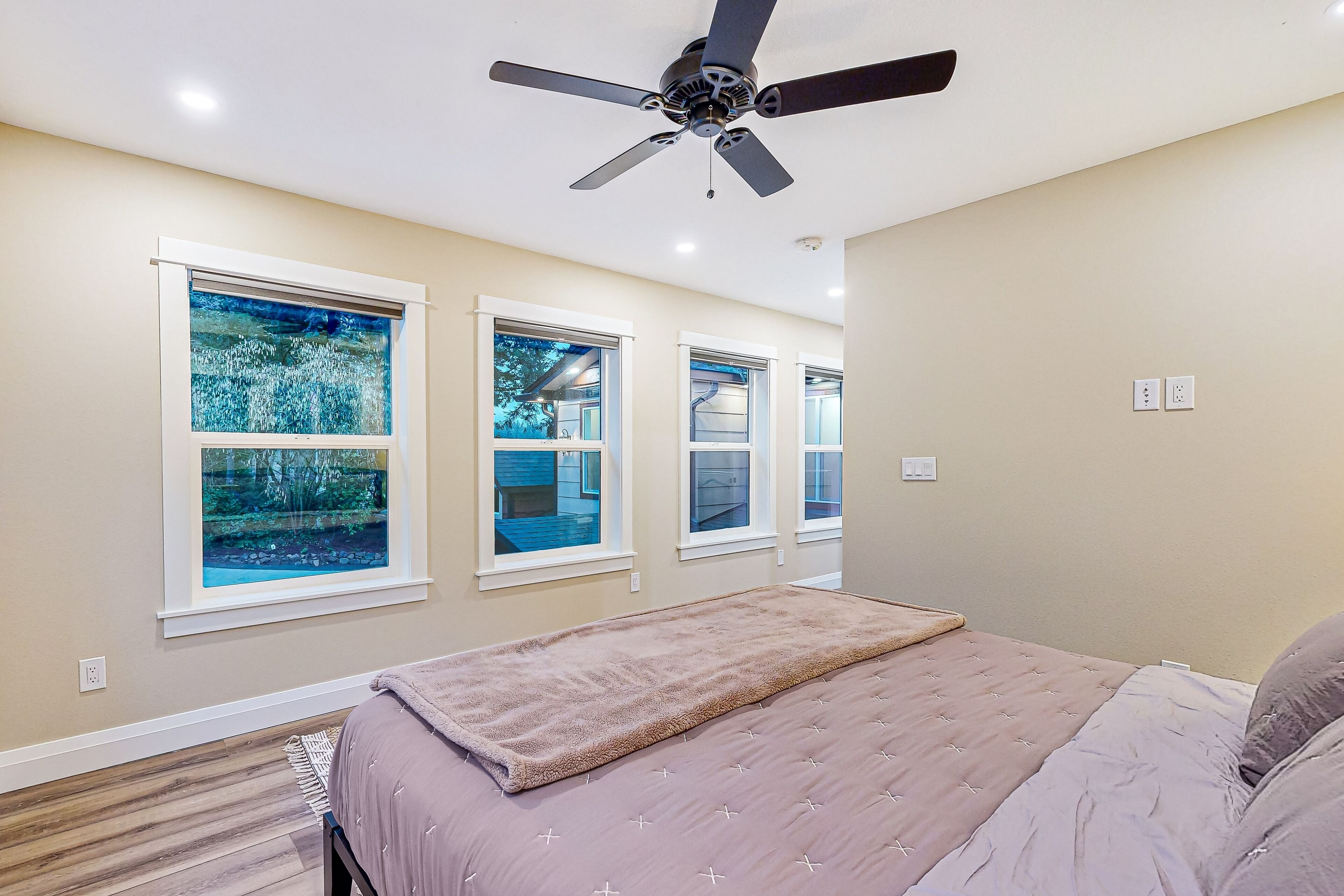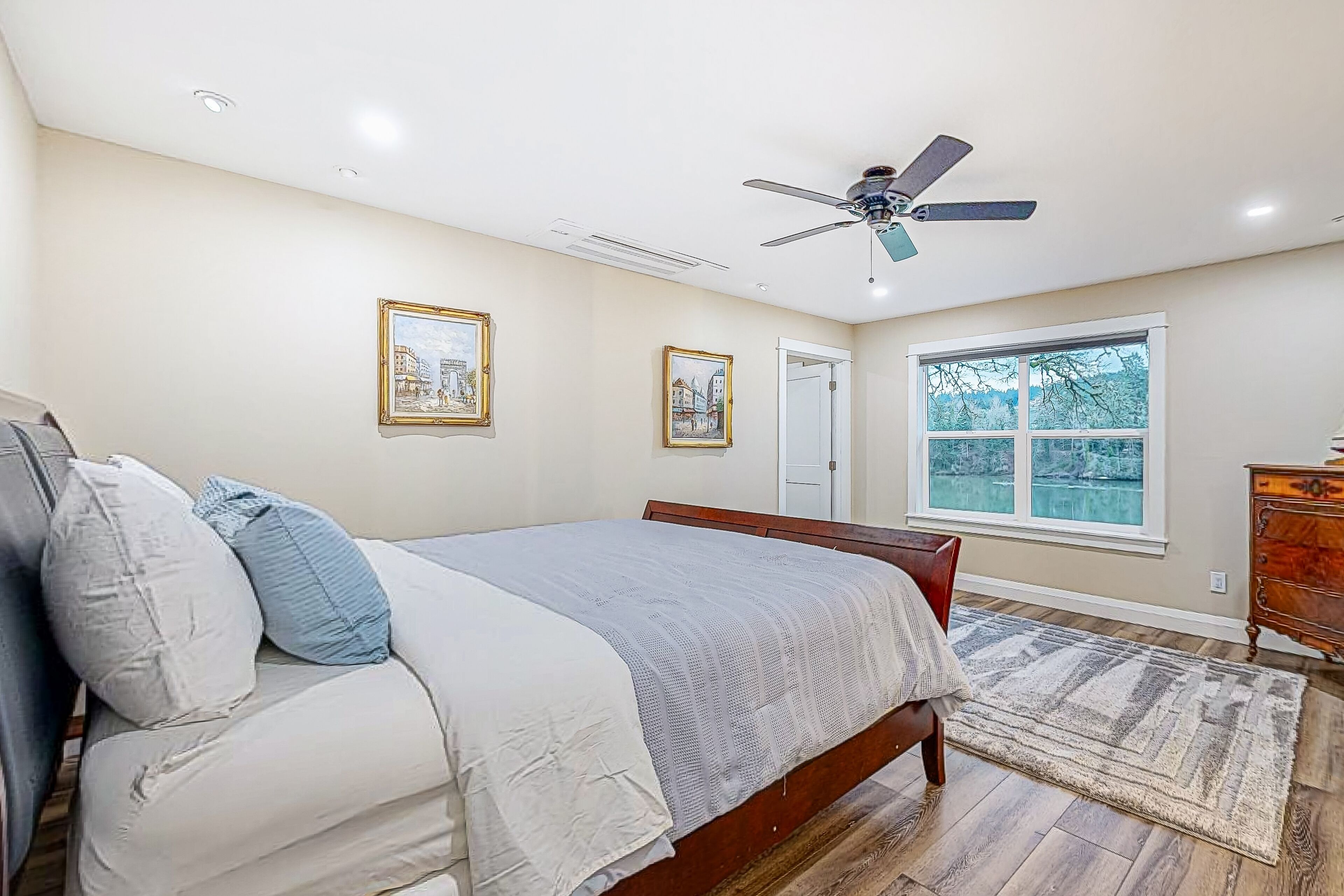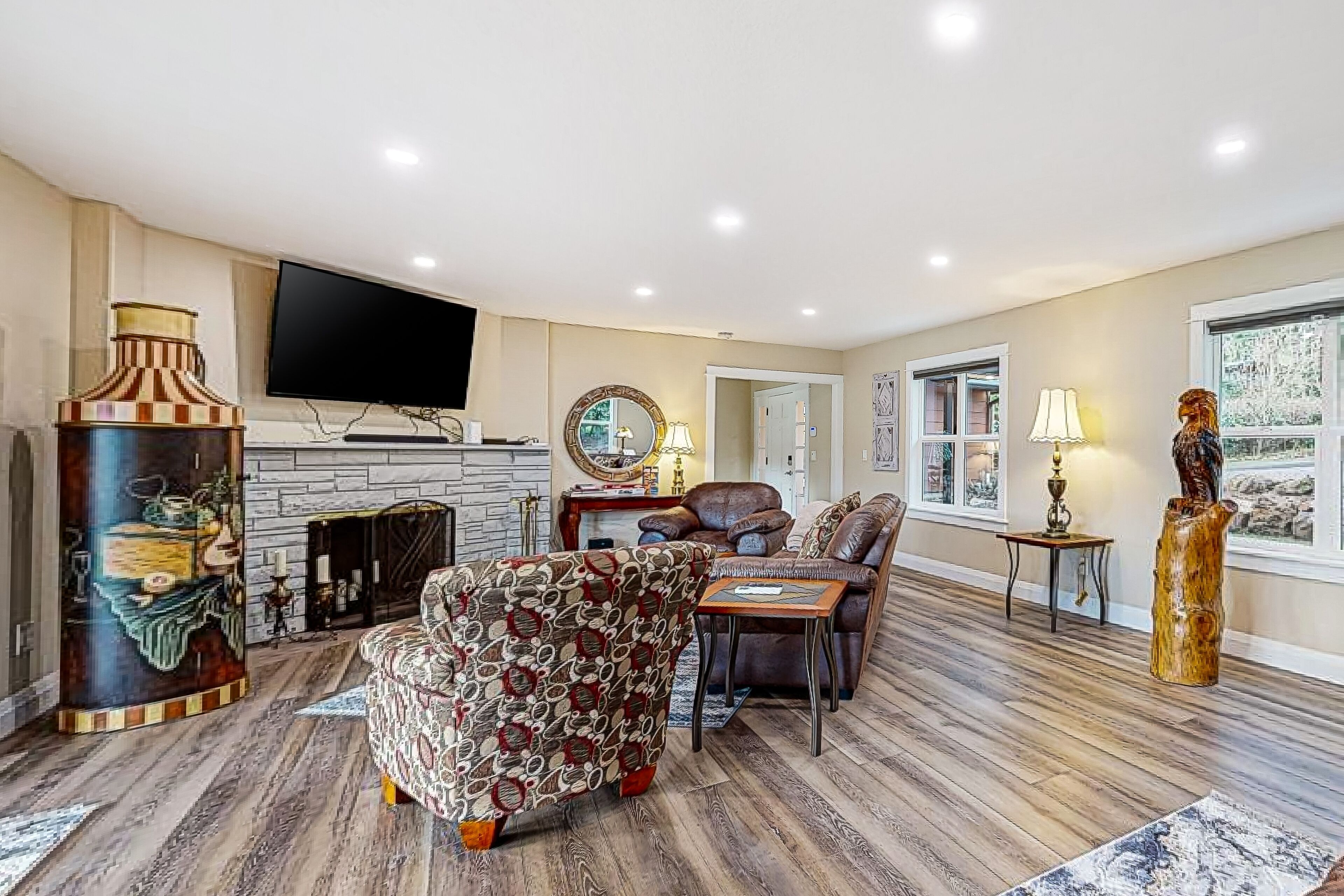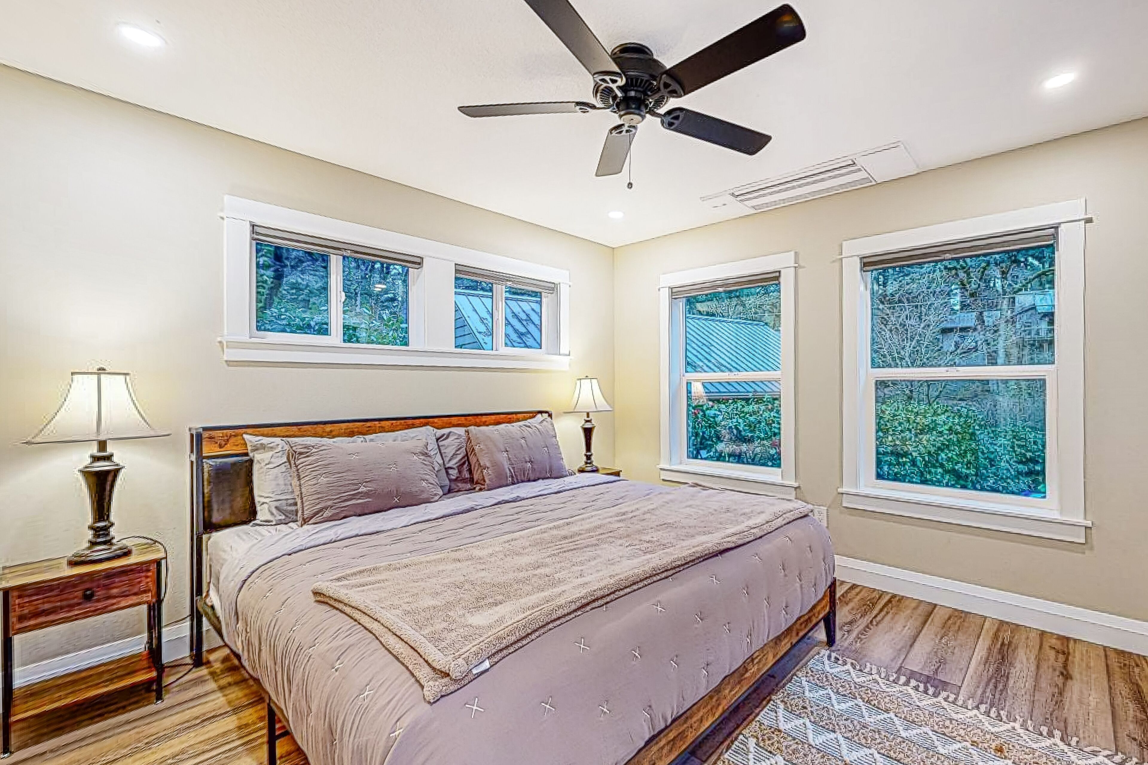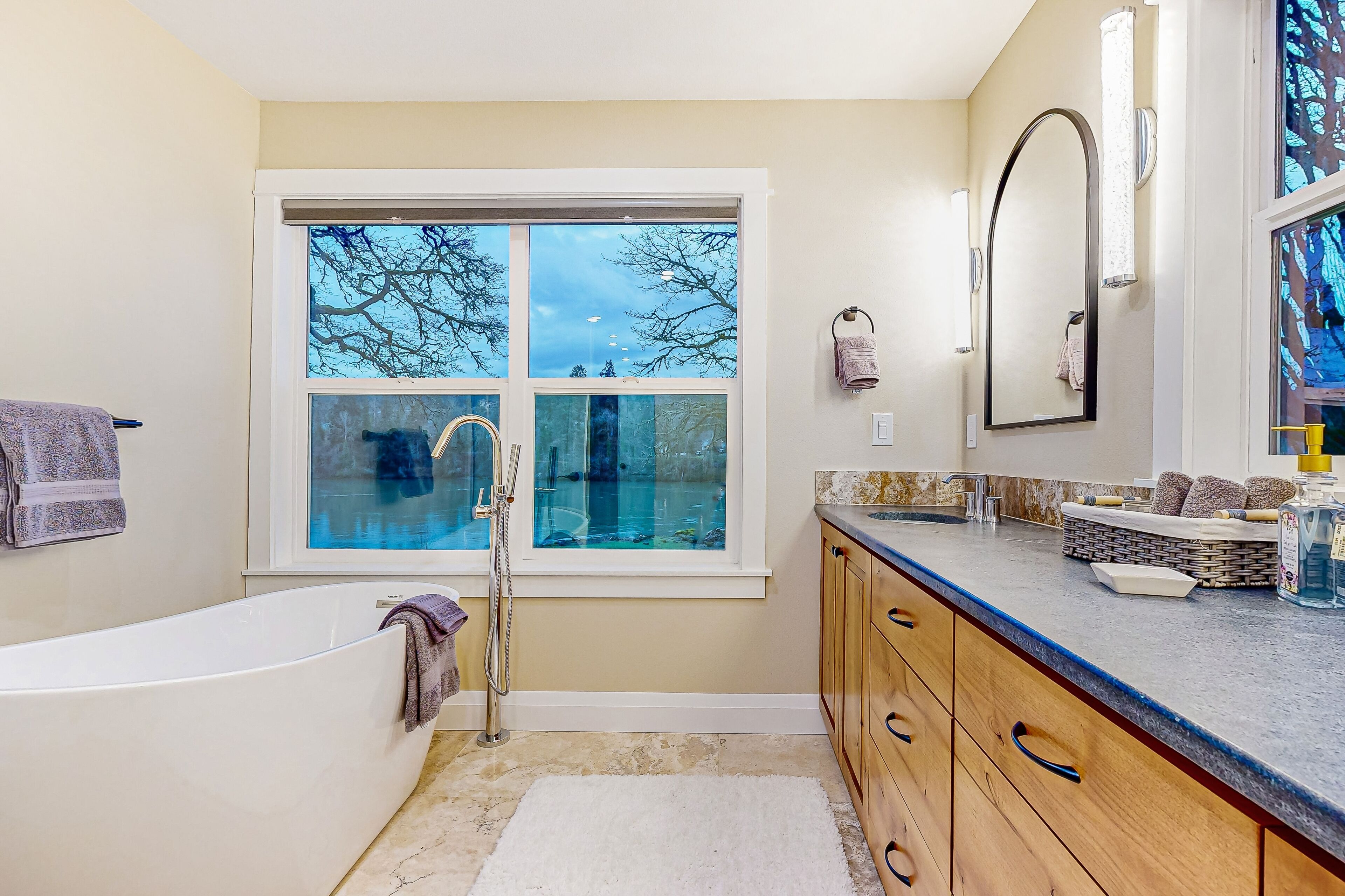 Riverfront all-suite home with amazing views, covered deck, & BBQ Riverside at the RiverhouseOur calendar is updated in real-time & our nightly rates are accurately displayed. Simply enter your desired dates and click 'Book Now!'Stunning riverfront views of the Willamette welcome you to this spacious home just south of downtown Portland. Every room faces the river for spectacular river views no matter where you are. The opposite bank has been set aside as a conserved green space and will never be developed, so you can enjoy natural views all year round. The large covered deck features a custom 12-foot table and four six-foot benches. The adjacent patio features a gas grill for summertime cookouts.All-new furnishings and elegant home decor fill the two-story interior, ensuring a pleasant and comfortable stay for your whole family. Kick back for streaming on the smart TV or board games in the living room, or set up at the dedicated desk to take care of some work-from-home needs. The massive open-concept kitchen is equipped for gourmet meal planning with features including a six-burner ZLINE-brand gas range/oven and a beverage fridge. The Keurig coffee maker features single-serve and traditional drip settings for morning brew convenience. The wet bar is equipped for happy hour hosting with features including a sink, a fridge, plenty of glasses, and bottle openers. All three bedrooms are equipped with private bathrooms and walk-in closets. A mini-split air-conditioner is equipped in every room. The home is close to downtown Portland, local nature trails, Sellwood's antique district, and the Oregon City Falls. Multnomah Falls is just a short drive up the scenic Columbia River Gorge. The beach is also an easy day trip option. Seasonal farmers' markets, outdoor music venues, local shops, and riverside restaurants are all just minutes away in Oregon City. The Portland Waterfront is a haven for many year-round events and activities.Things to KnowCheck-in time: 4:00 p.m.Check-out time: 10:00 a.m. Important! Do not walk onto on the river dock which belongs to the adjacent property. You will be cited for trespassing.All guests shall abide by Vacasa’s good neighbor policy and shall not engage in illegal activity. Quiet hours are from 10 p.m. to 8 a.m.No smoking is permitted anywhere on the premises.Parking notes: There is free parking available for 3 vehicles.Damage waiver: The total cost of your reservation for this Property includes a nightly damage waiver fee, plus tax if applicable (the “Damage Waiver”). (A discount may be applied for stays of 28 nights or longer, if permitted.) The Damage Waiver covers you for up to $3,000 of accidental damage to the Property or its contents (such as furniture, fixtures, and appliances) as long as you report the incident to the host prior to checking out. The Damage Waiver fee eliminates the need for a traditional security deposit.More information can be downloaded from the "Rental Agreement" on the checkout page.Due to local laws or HOA requirements, guests must be at least 21 years of age to book. Guests under 21 must be accompanied by a parent or legal guardian for the duration of the reservation.