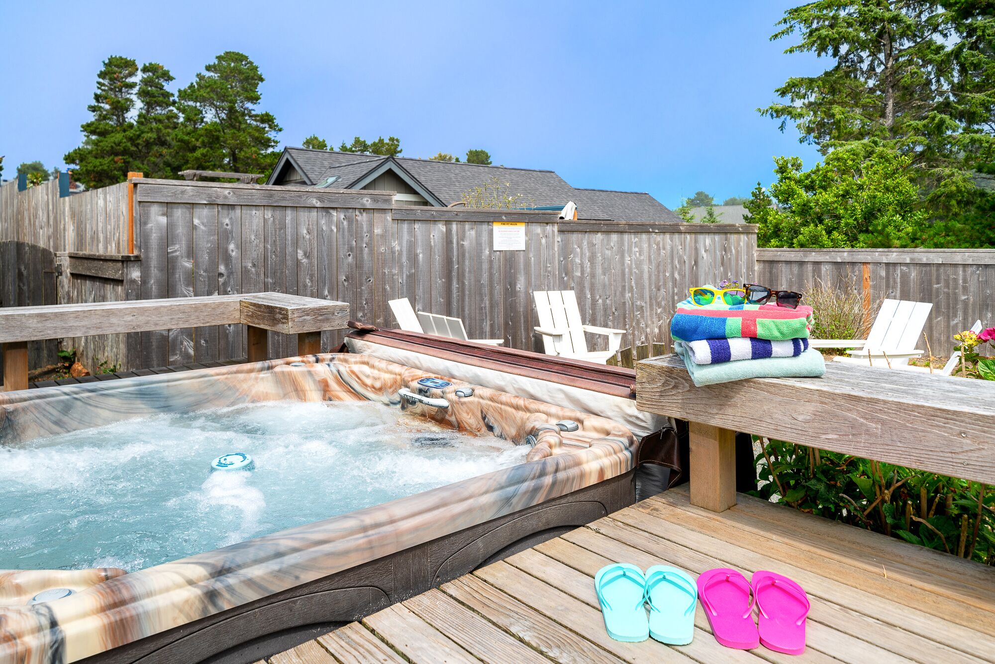 GG~Hot-Tub~Walk to Beach&Trails~Fire~Pit~Bikes~Ping-Pong~Cornhole~Fenced~DogOK~ *Steps from secluded Little Beach where the Necanicum River meets the Pacific Ocean and breathtaking views of the majestic Tillamook Head mountains. *Location- Walk to Little Beach, River & Ocean*Outdoor Firepit.*Hot Tub located next to the firepit*Spacious wrap around deck *Family-friendly*Dog-friendly with a fenced yard (Maximum of 2 dogs-must be one year of age and spayed or neutered)* Sleeps 8*WiFi, Roku*Cable and Flat Screen TVsDescription of Home:* Open concept, single-level floor plan.* 4 Bedrooms/ 2 Bathrooms. Sleeps 8 maximum. * Numerous southwest facing windows provide natural lighting, awesome views clea views to watch your children play. * Kitchen: has great storage for your groceries, ample counter space is equipped with many amenities: blender, food processor, pots and pans, utensils, dishwasher, serving platters and bowls, baking equipment and more.* South facing rooms have a view of Tillamook Head and the Necanicum River.* Bedroom 1: Master Bedroom with king bed, flat-screen TV and Cable. Sleeps 2.* Bedroom 2: 2 twin beds. Sleeps 2.* Bedroom 3: Queen bed Sleeps 2.* Bedroom 4: Queen bed. Sleeps 2.* Semi-Private Sitting Area: furnished with a queen sofa sleeper. Sleeps 2. * Bathroom 1: Full bath with shower/tub combination.* Bathroom 2: Full bath with shower.Exterior Description:* Games and Activities: Indoor/ Outdoor bean bag toss, croquet, horse shoes and ping-pong. * Large Deck with 6 lounge chairs, BBQ grill, umbrellas and a table with 4 chairs.* Professionally landscaped fenced yard gives your children and pets a safe area to roam and play.* Wood Fire Pit* Hot-tub* Horseshoe pit* 5 Bikes for discovering treasures in the heart of Gearhart. * Parking for four vehicles total - 2 reserved stalls for parking and a long driveway that can accommodate an additional 2 vehicles (driveway must be clear on Thursday for the garbage collection.) *Sites and Attractions: - Blocks from Pacific Way Bakery, El Trio Loco and Seaside shops and restaurants.- Located within walking distance to world-class golf courses and McMenamin's- Conveniently located between the exciting town of Seaside and historical town of Astoria.-The town of Seaside offers entertainment for everyone to enjoy including, many restaurants, bars and pubs, boutiques, an arcade with bumper cars and a carousel, and a town aquarium. Enjoy the best pizza at Angelina's, a nice family meal at Dundee's, and visit the Seaside Pool for year-round indoor activities.-Astoria offers many historical museums, shopping, and restaurants to visit. Visit the Maritime Museum, Lewis and Clark Museum, and walk the Astoria Column. Experience fresh fish and chips at the renowned Bowpicker, enjoy a nice riverfront dinner at the Bridgewater Bistro and taste local beer and liquor at Ft. George Brewery or Buoy Beer. -Short driving distance to the quaint and artsy town of Cannon Beach which boasts an abundance of eclectic art galleries and boutiques and restaurants. After shopping and exploring, visit the famous Haystack Rock and Ecola State Park. Enjoy a unique culinary experience at EVOO or visit Castaways for an exotic Cajun meal. We look forward to sharing our home with you!Dog fee in the amount of $15/dog/day, not to exceed 2 dogs with a $30/dog minimum. Any additional fees owed will be added after booking. Dogs must be at least 1 year of age and spayed or neutered. The contract will note full requirements for pets.*Pricing subject to change prior to reservationMinimum age of 26 years to make a reservation**Our cleaner may clean on the same day as check-in and out of guests.