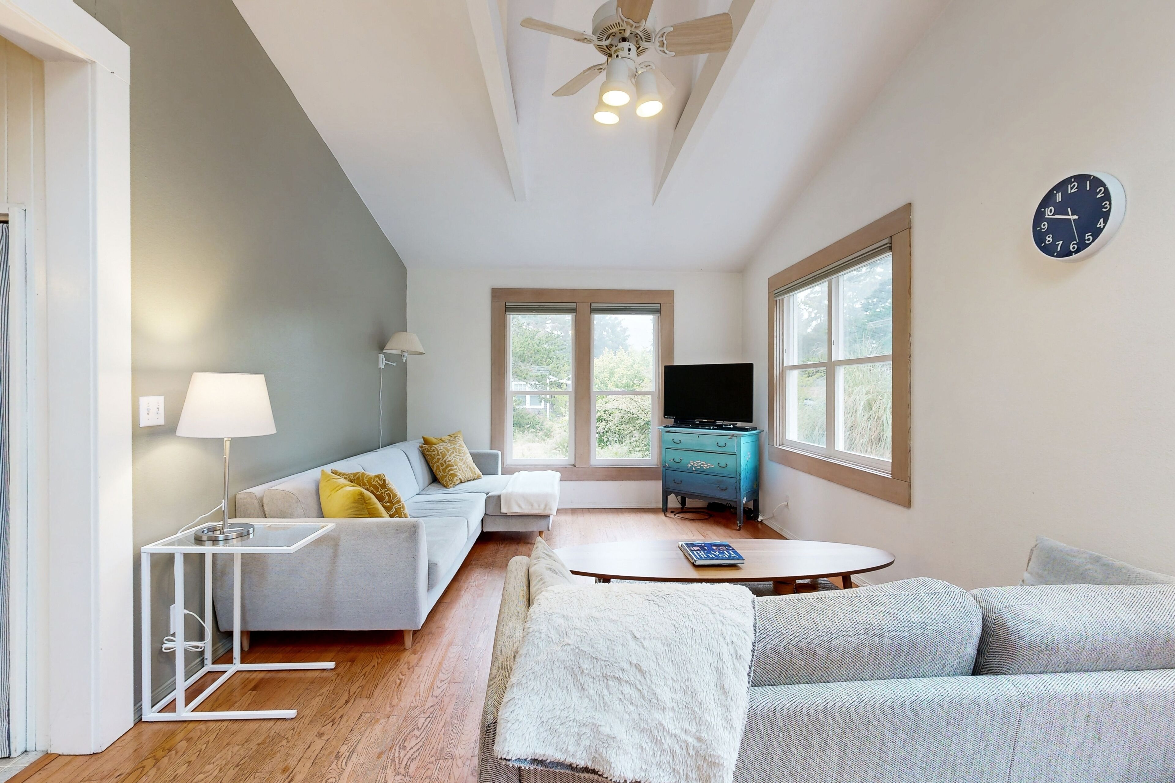 Charming Craftsman near park & Gearhart - dog-friendly Spruce LandingOur calendar is updated in real-time & our nightly rates are accurately displayed. Simply enter your desired dates and click 'Book Now!'This beautiful Gearhart vacation rental combines Craftsman character with modern features in a happy marriage of comfort, efficiency, and proximity to charming little Gearhart - one of the best-kept secrets of Oregon's northern coast! There's the beautiful, long beach, of course. Stroll at nearby Gearhart Ocean State Park or Del Ray State Recreation Site. Play a round of golf at Gearhart Golf Links, a mile away, or Highlands Golf Club, just a bit farther. It's a short distance to the eateries in downtown Gearhart. Or, cross the bridge into Astoria about 15 miles north, where you can visit one of the waterfront bistros, casual fish houses, and a few highly regarded microbreweries. Make the three-mile drive south to Seaside with its lovely aquarium, boardwalk, and souvenir shops. A bonus dog door also leads to the big backyard: a gorgeous spot with an outdoor firepit so you can watch the stars by the fire's warmth. The atmosphere of this lovely period home is preserved with touches like a claw foot tub, hardwood floors, and faux, gas woodstove and wood fireplace. And, you'll have many of the amenities of home, like a CD player and DVD player. The living area is a bright, open space, made larger by a pitched ceiling punctuated with skylights that flood the room with sunlight. Watch it dance on the beautiful hardwood floor! Make coffee and share tales of your day on the whale-watching charter or the beach. The overhead ceiling fan will keep the air - warm or cold - circulating in summer or winter. There's a DVD player, but you'll want to pack some movies to watch. The big TV has cable, but if you'd like a simple diversion, why not pick a book from the library and read?The bright and roomy well-equipped kitchen has several upgrades from its original design! For those who like to cook, you will appreciate the cooking control that comes with the modern gas stove. There's a microwave for snacks, warm-ups, and movie popcorn. Plenty of room in the fridge for your cold stuff. Gather 'round the big table in the separate dining area when the meal's done. If it's a nice, sunny day, use it as an excuse for an old-fashioned barbecue on the gas grill in the backyard. Clean-up is made easier with the double sink and dishwasher.This charming home's bedrooms are accessible via two separate staircases. At the top of this staircase by the front entrance, you'll be greeted by a small table with four comfy chairs: perfect for a game of cards before bed. White walls, more skylights, and bright colors make this a cheerful space. One bedroom has a TV for late-night viewing, and the another has a big window with a view of the grounds. The loft above the garage serves as the primary suite with a TV and full bath - perfect for a couple who'd like a little more privacy. When the laundry starts piling up, take care of it in the utility room, where you'll find a washer/dryer.Make Spruce Landing in scenic Gearhart your next getaway haven, and enjoy its combination of luxury, convenience, and proximity to sites and activities on the Oregon Coast!THINGS TO KNOW If you are bringing a dog on your trip, the pet fee is already included in your quote when selecting ‘Yes’ to pets. No more dogs are allowed.Parking notes: There is free parking available for 4 vehicles.Damage waiver: The total cost of your reservation for this Property includes a nightly damage waiver fee, plus tax if applicable (the “Damage Waiver”). (A discount may be applied for stays of 28 nights or longer, if permitted.) The Damage Waiver covers you for up to $3,000 of accidental damage to the Property or its contents (such as furniture, fixtures, and appliances) as long as you report the incident to the host prior to checking out. The Damage Waiver fee eliminates the need for a traditional security deposit.More information can be downloaded from the "Rental Agreement" on the checkout page.Due to local laws or HOA requirements, guests must be at least 21 years of age to book. Guests under 21 must be accompanied by a parent or legal guardian for the duration of the reservation.