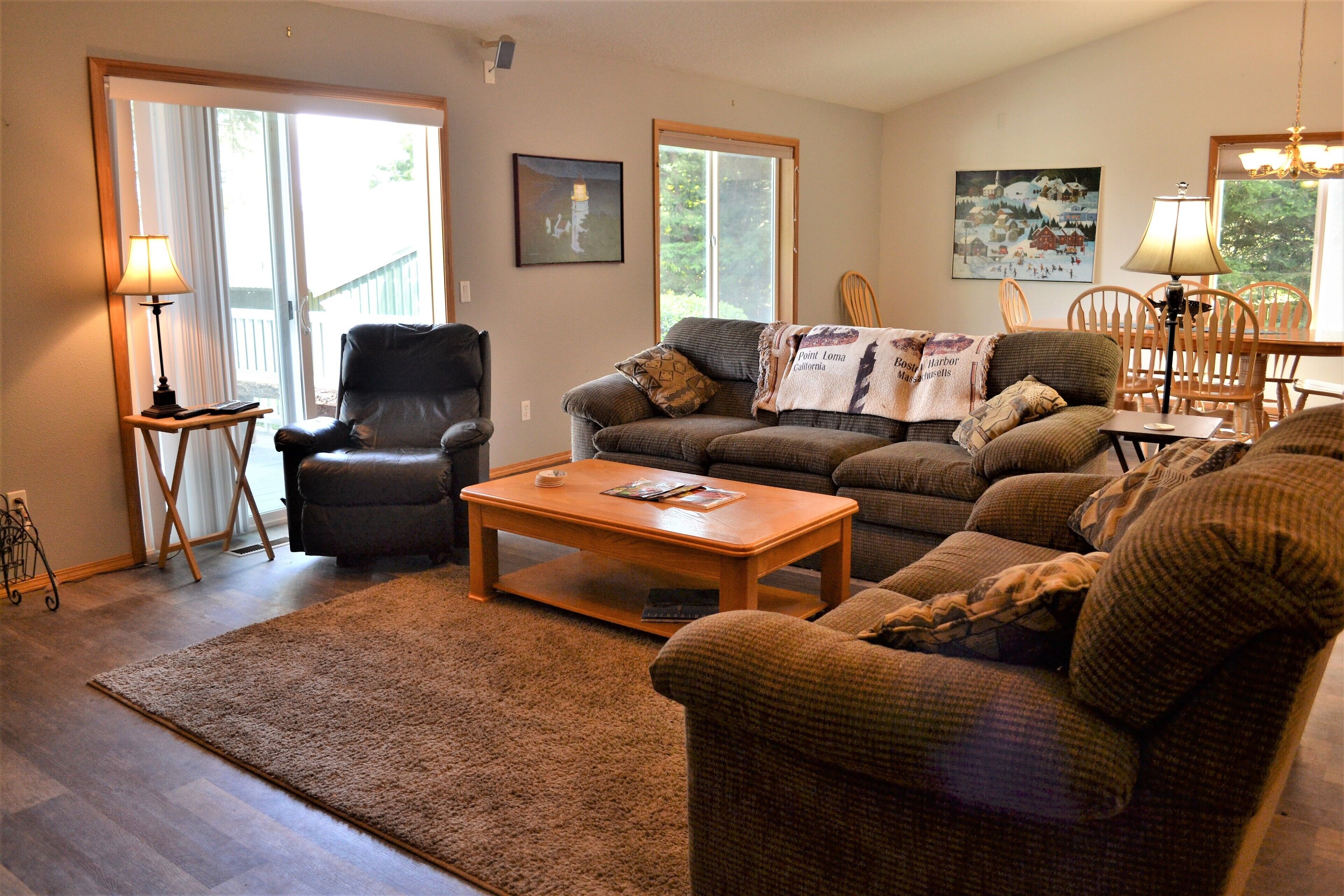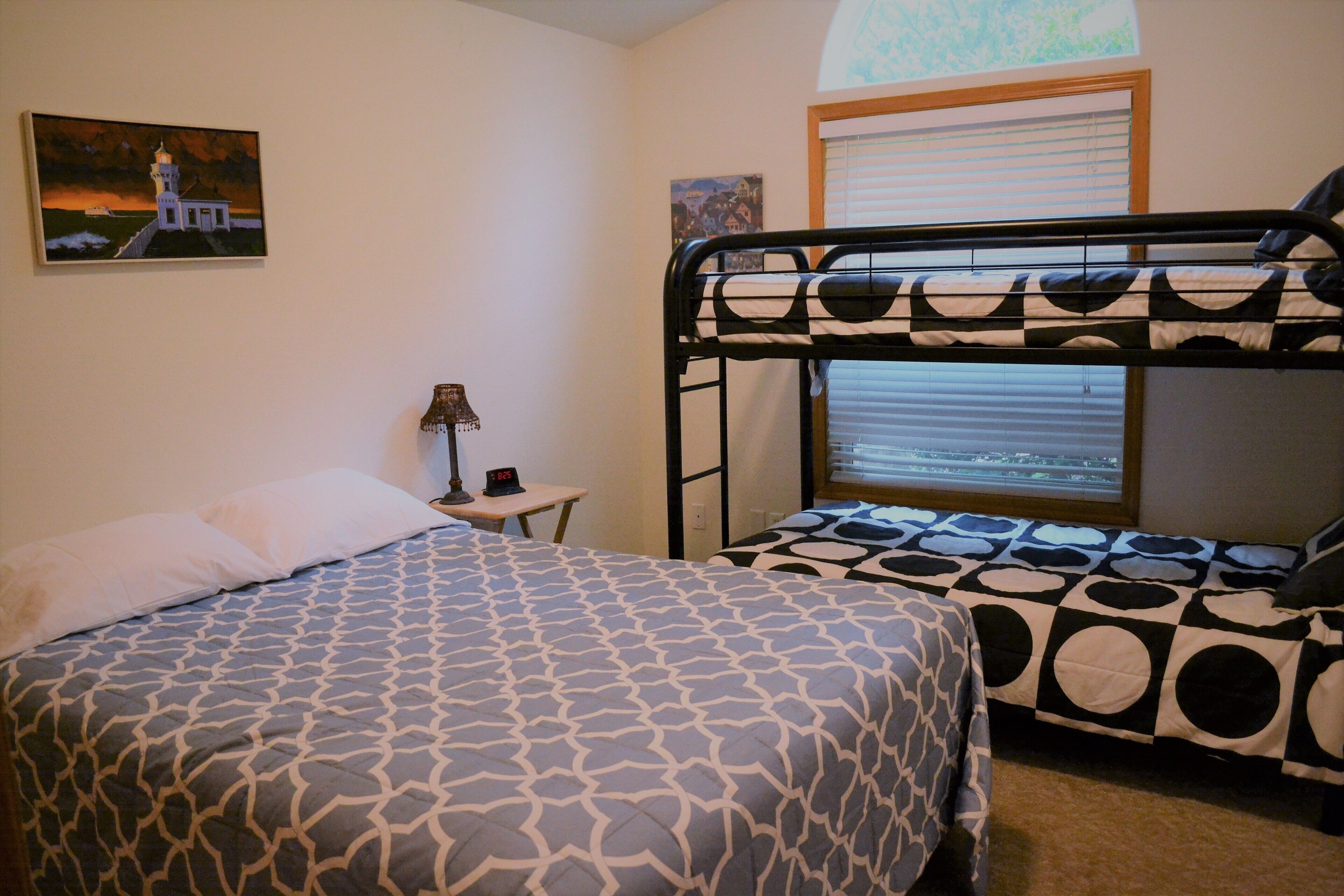4 Bedrooms Near Beach in Park Like Setting Perfect for Family 90587 Lake View RdMax occupancy 10 including childrenStarting June 1, 2025 Max Occupancy is 8 including children regardless of age. 4BR / 2.5BATH1 King3 Queen1 Bunk (2 Twin)Perfect family home in Sunset Beach near the ocean, Fort to Sea Trail, Sunset Lake and the Beach. Not in the city, not in the country, but situated between Sunset Lake and Sunset Beach on close to 1/2 acre, this warm inviting house has vaulted ceilings and a gas fireplace for those balmy summer nights. Featuring 4 bedrooms and 2.5 bathrooms, open floor plan, deck with picnic table and gas BBQ which is accessed from either the living room sliding doors, or the master bedroom, you won't want to leave this beautiful home. The spacious living room has a large flat screen tv and ceiling fans. The Master Suite has a King Bed, walk in shower and sliding doors that lead to the spacious back deck. There is a fully stocked kitchen complete with dishwasher and dining for 8 at the table and 2 at the breakfast bar. The second and 3rd bedrooms have Queen beds and the 4th has a Queen and twin bunk beds. The yard is like your own private park with volleyball/badminton net, horseshoe pit, a cabinet with different lawn toys, another picnic table and some benches. There is a deer feeder on the property as well so, if you're lucky you can take in some wildlife while relaxing on the deck. Just a short 8 minute walk to the beach, or a short drive to Seaside or Astoria, this perfect family retreat has something for everyone. The adorable wood bear carvings will be sure to delight the kids, too! Up to 3 dogs OK with permission and $75 pet fee per pet. NO SMOKING - MUST BE 25 TO RENT - PLENTY OF ROOM FOR A BOAT PLEASE LET US KNOW AT BOOKING
