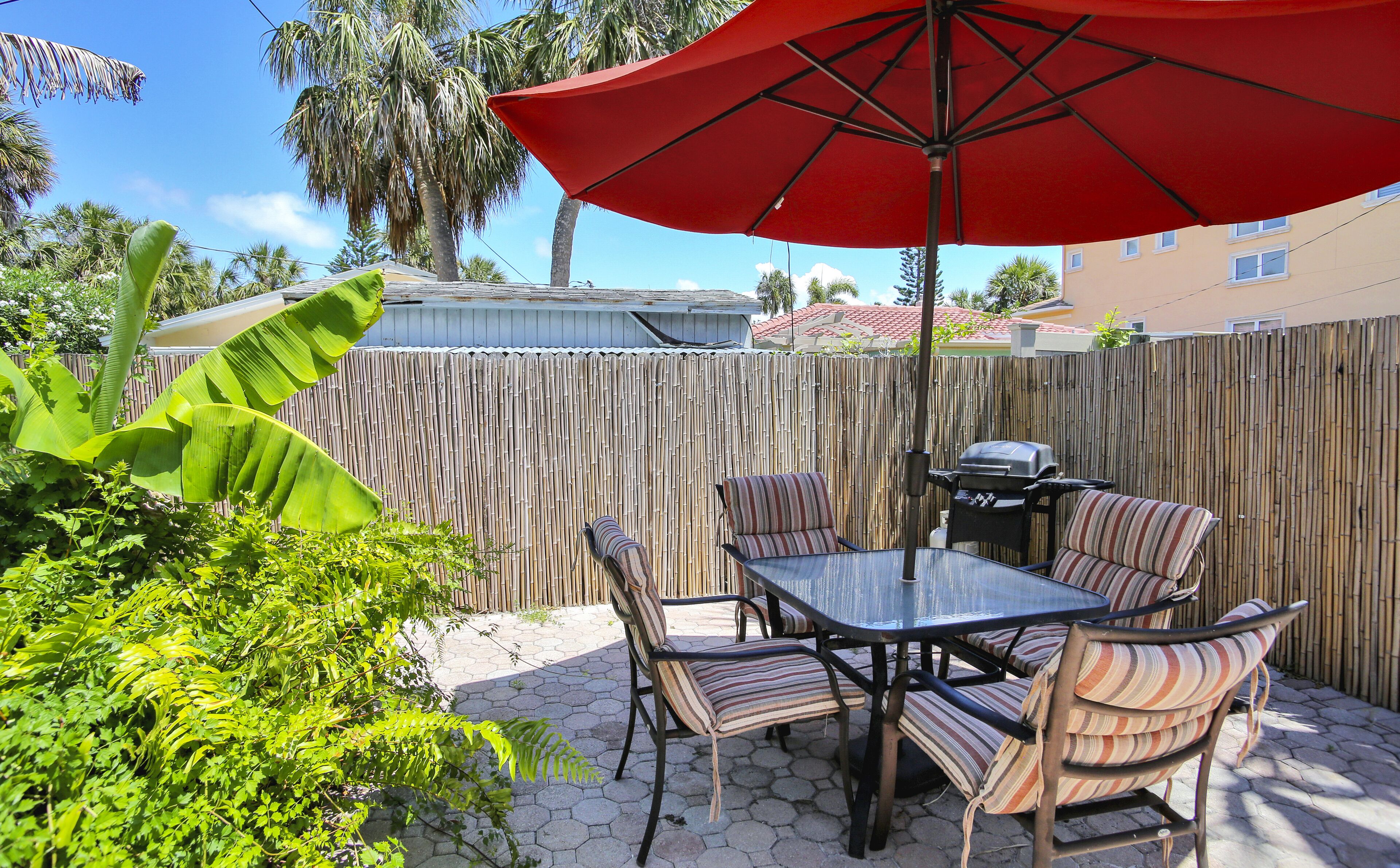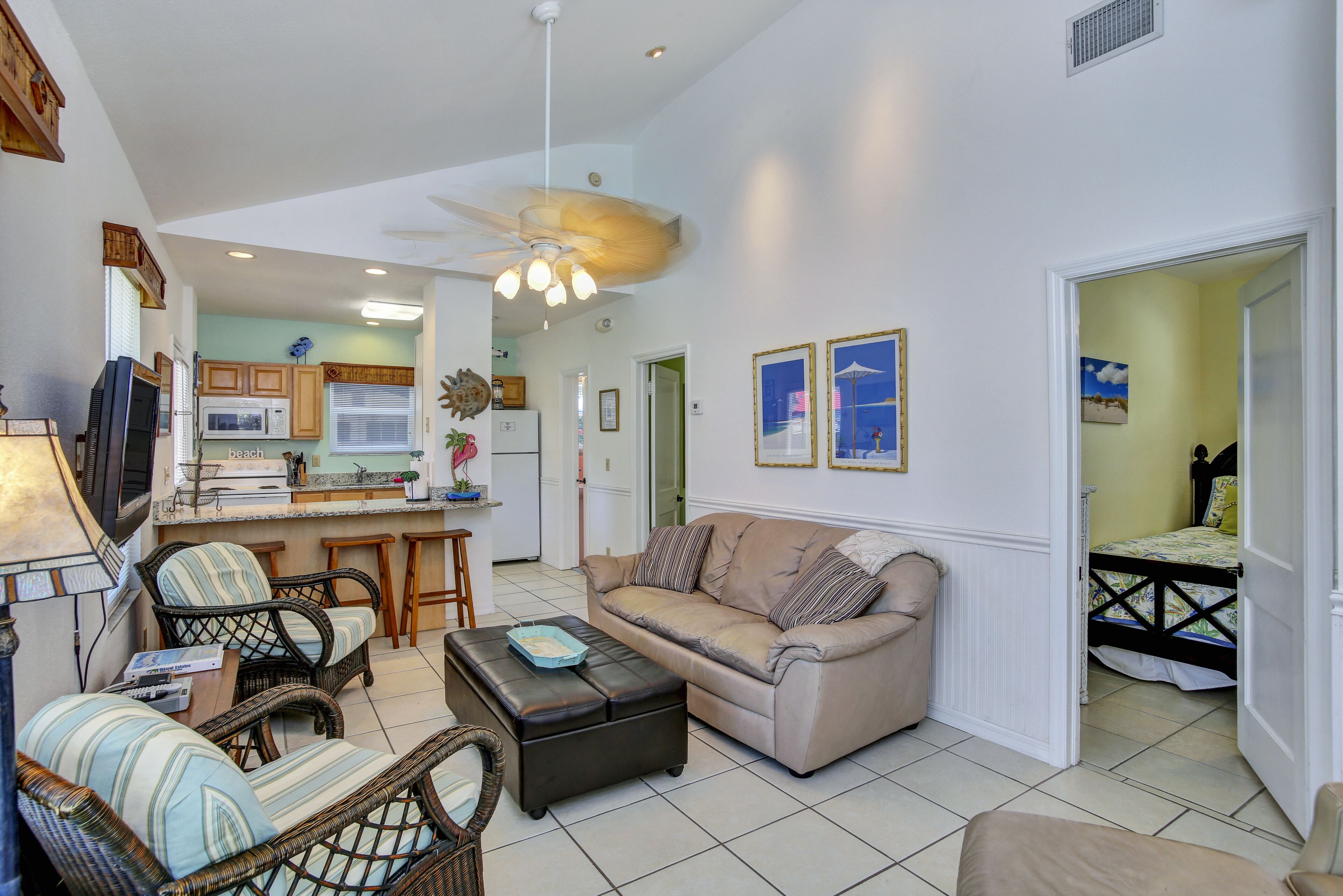 Families & Pet Friendly, 1 min. walk to famous Clwr. Bch. sand. With a one minute walk to the white sugary sand beach, this cozy tropical vacation rental has two bedrooms, two baths, living room, kitchen and a private outside patio with a gas grill, table and chairs to relax in. There is a king bed in one bedroom and two twins in the other bedroom - also a sofa in the living area.Located in the quiet residential section of the north end of Clearwater Beach, this property has tropical landscaping and first class decor and furnishings. Laundry facilities are located on the property.Two bicycles, two beach chairs and beach towels are all included for an enjoyable vacation. Trolley service comes by the house every thirty minutes to all beach activities, shops, restaurants and other local beaches. The Beach Aquatic Center, located about a mile south, has a large pool with attached children's play area with slides, squirting water jets and waterfalls - plenty of room for sunbathing, large umbrellas for shade and a family picnic area - ask us for free passes! Enjoy walking? Take a beautiful beach walk to the famous Caladesi Island State Park, located about 1.5 miles north.We clean by the VRMA/VRHP (Vacation Rental Management Association-Vacation Rental Housekeeping Professional) guidelines for Covid 19.Damage and Incidentals:If there is damage to the rental property during your stay, you may be charged up to $500.00. If the property is left in an undesirable condition, additional cleaning may be charged. WE DO NOT ADVERTISE ON FACEBOOK
