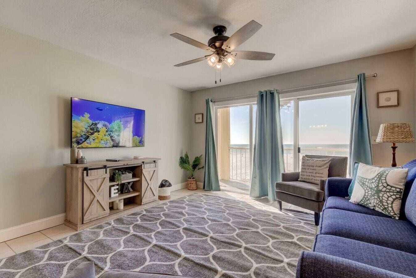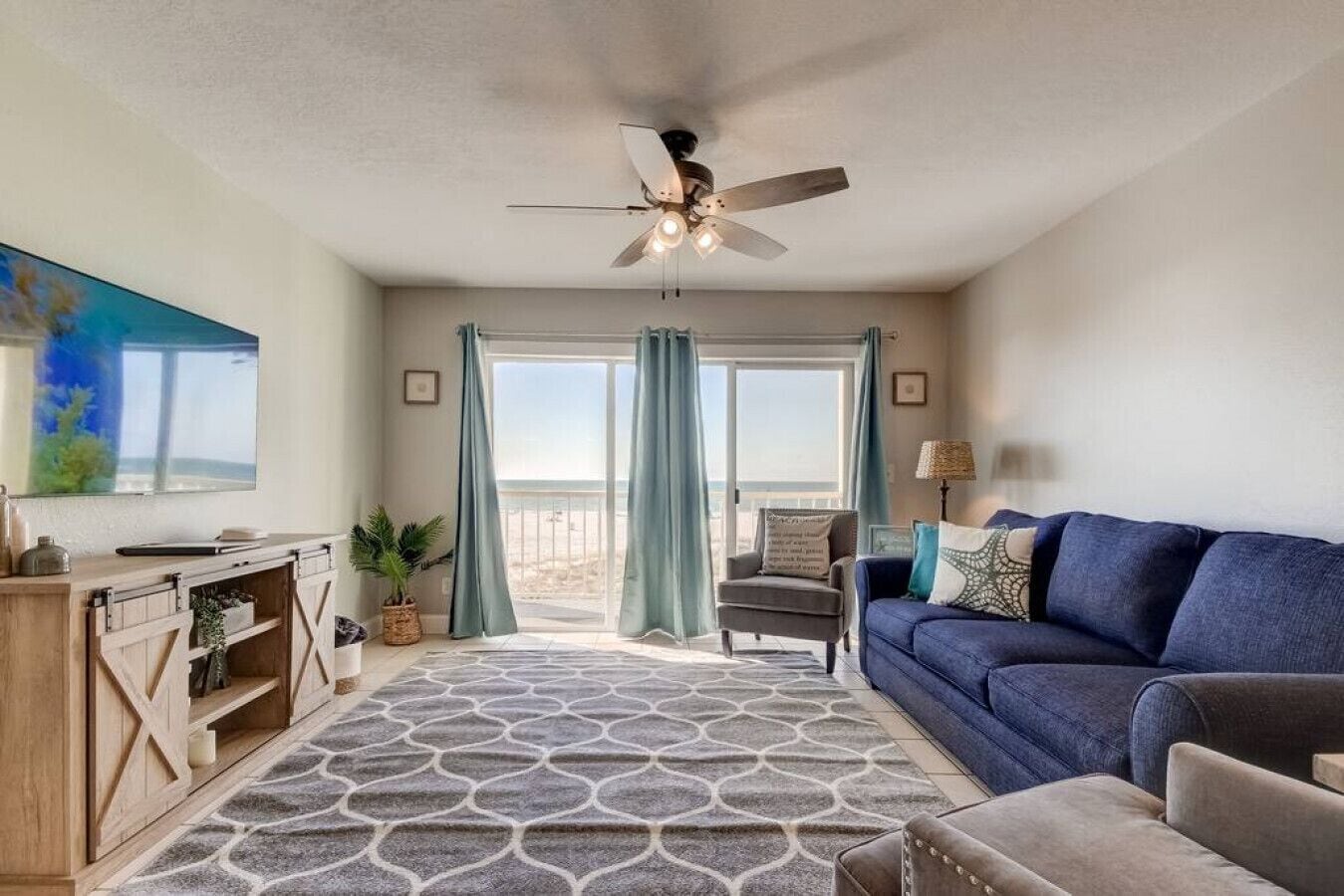 #5- KING BED! Remodeled 2 BR-Directly on the sand! Beautifully Renovated beachfront condo, located directly on beautiful North Clearwater Beach! Unit is located on the 2nd level with gorgeous views of the Gulf of Mexico. 2 Bedrooms, 2 bathrooms with a private balcony overlooking the beach. Sleeps 7 with the trundle & Pull-out couch. WiFi included, Smart TV's, beach chairs, towels, toys, etc. Just...