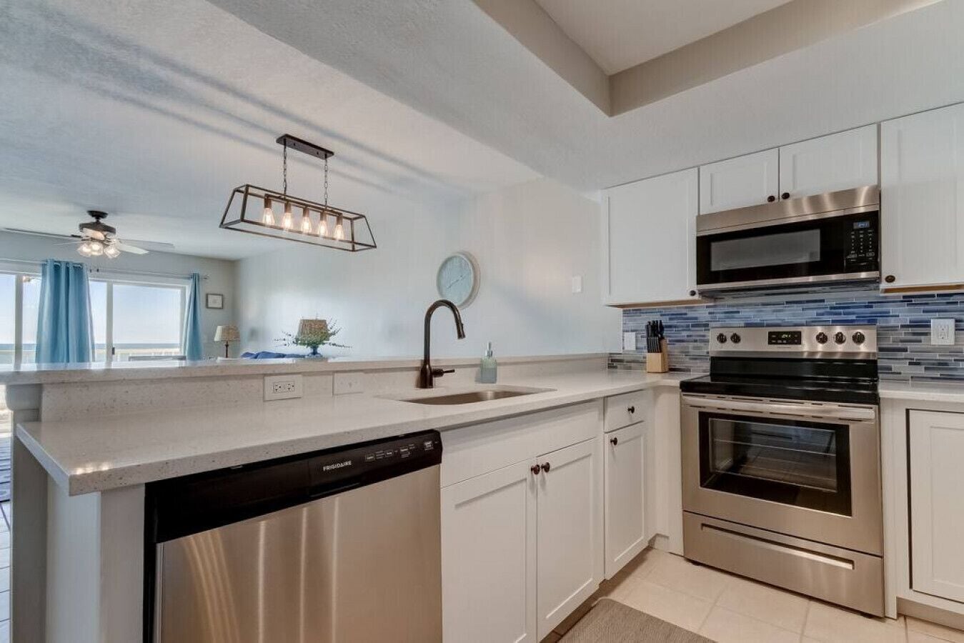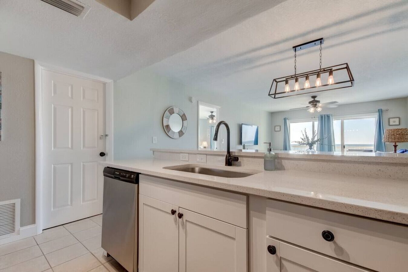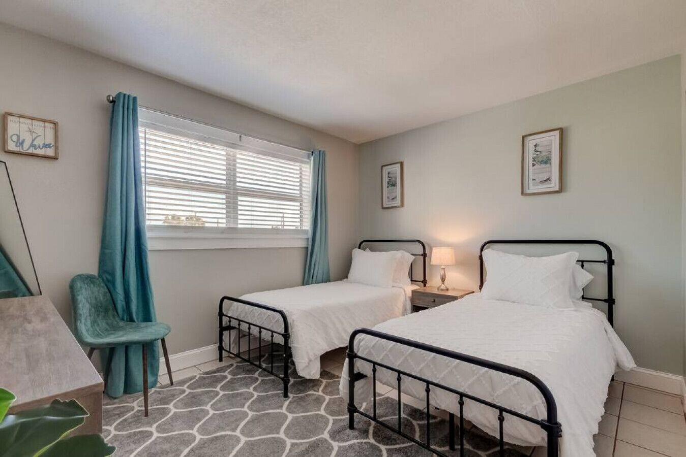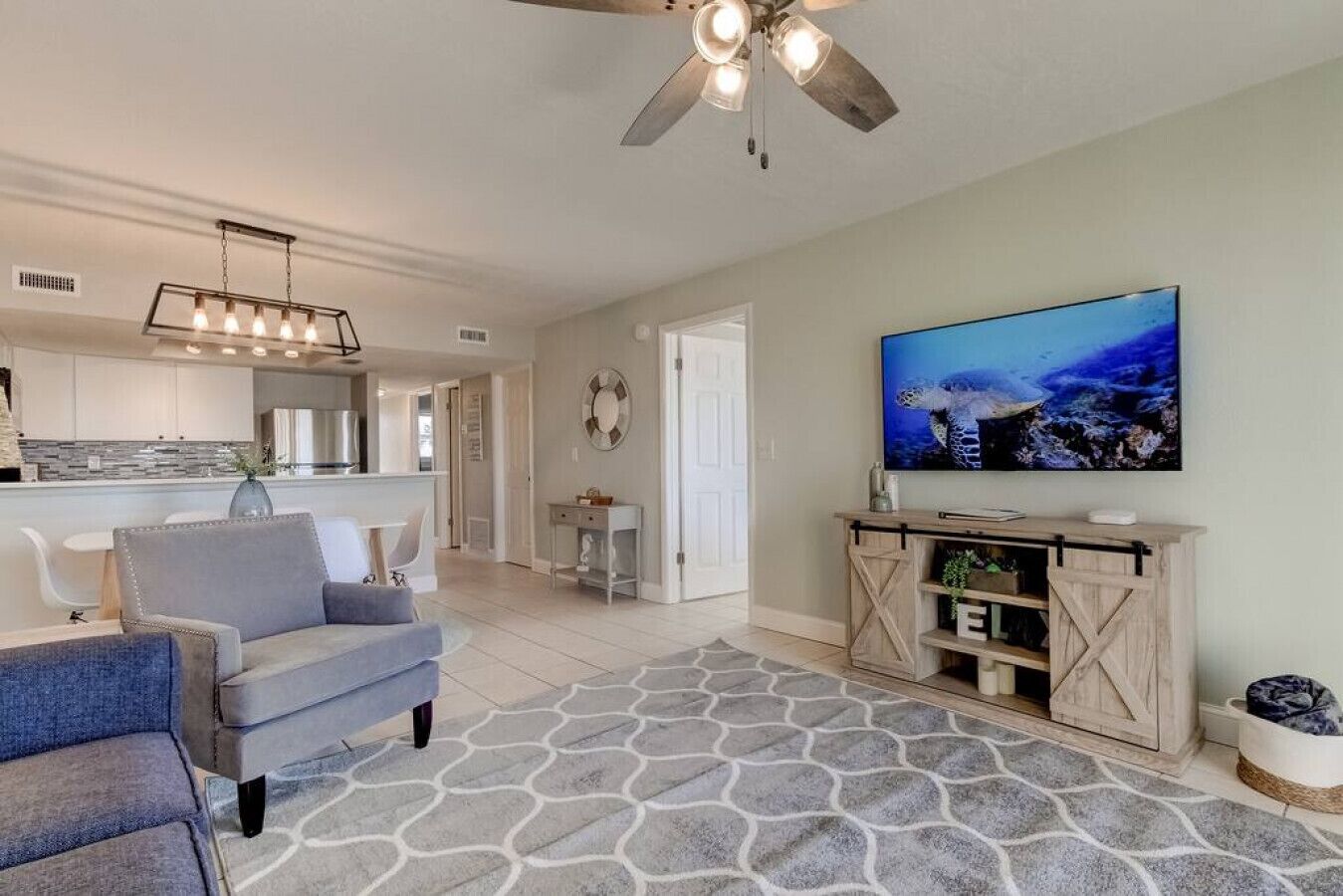 #5- KING BED! Remodeled 2 BR-Directly on the sand! Beautifully Renovated beachfront condo, located directly on beautiful North Clearwater Beach! Unit is located on the 2nd level with gorgeous views of the Gulf of Mexico. 2 Bedrooms, 2 bathrooms with a private balcony overlooking the beach. Sleeps 7 with the trundle & Pull-out couch. WiFi included, Smart TV's, beach chairs, towels, toys, etc. Just bring yourselves and you are ready to go! Fully equipped full-sized kitchen with enough supplies to get you started.Washer & Dryer included in unit. Check-out is 10am. Front bedroom has 2 twin beds with 1 twin trundle bed. The Master Bedroom has a King sized bed. The couch has a Queen Size pull-out bed. One Free parking spot included per unit. Guest parking available upon request. There is a pack n' play & a highchair for little ones. Being able to climb stairs is a must. There is NO elevator there.Full access to entire condo other than one locked supply closet.Residential area on the North end of World Famous Clearwater Beach! Short walk to restaurants & bars but far enough away from the busy part of the beach to enjoy the peace & quiet!Golf Cart Rentals available, Jolley Trolley, Uber, Lyft, Taxi, etc.This condo is located on the Second level (2nd floor, because ground floor is parking) and being able to climb stairs is a must. There is no elevator. Please note, Florida has a lot of different types of possible annoyances (or features!) that are out of our control- Like excessive seaweed, red-tide, Lovebug season, mosquitoes, bugs, etc. Please have patience & understanding for any possible issues we have to work through. I will always do my best to make your trip the best it can be! If there is anything that I'm aware of before your stay, I will certainly let you know ahead of time.