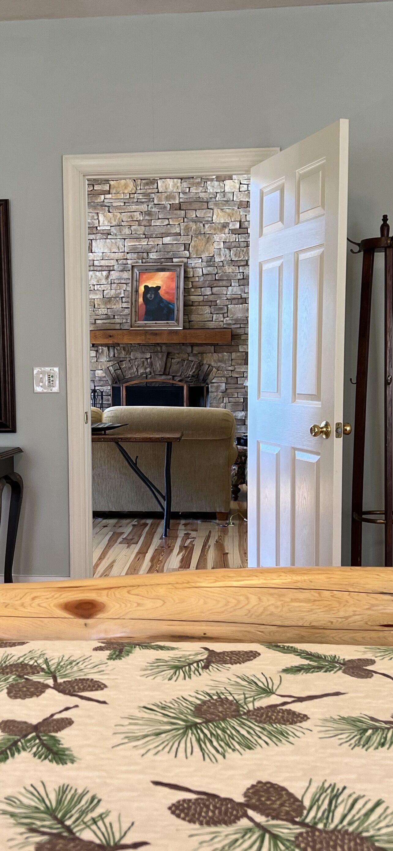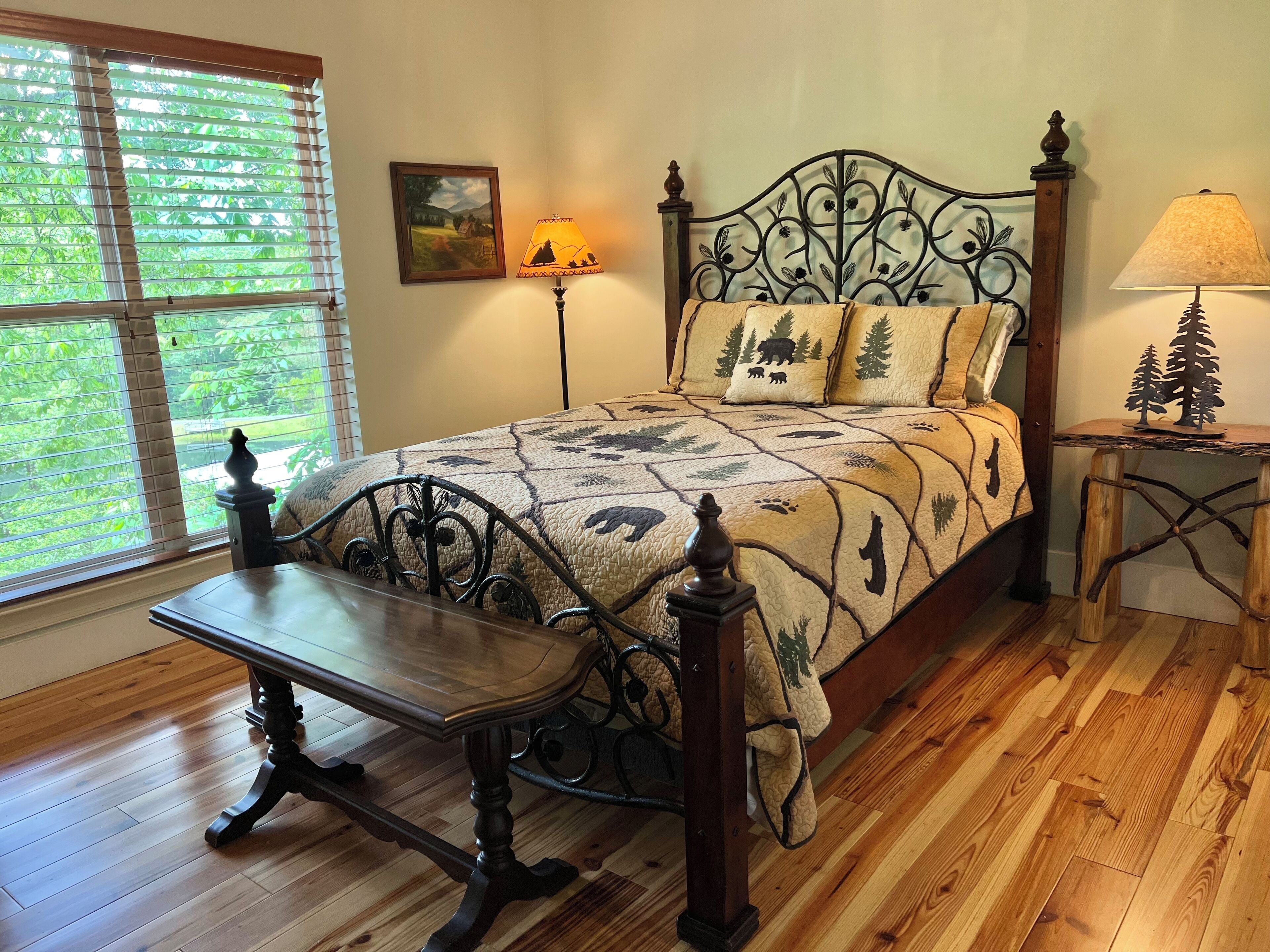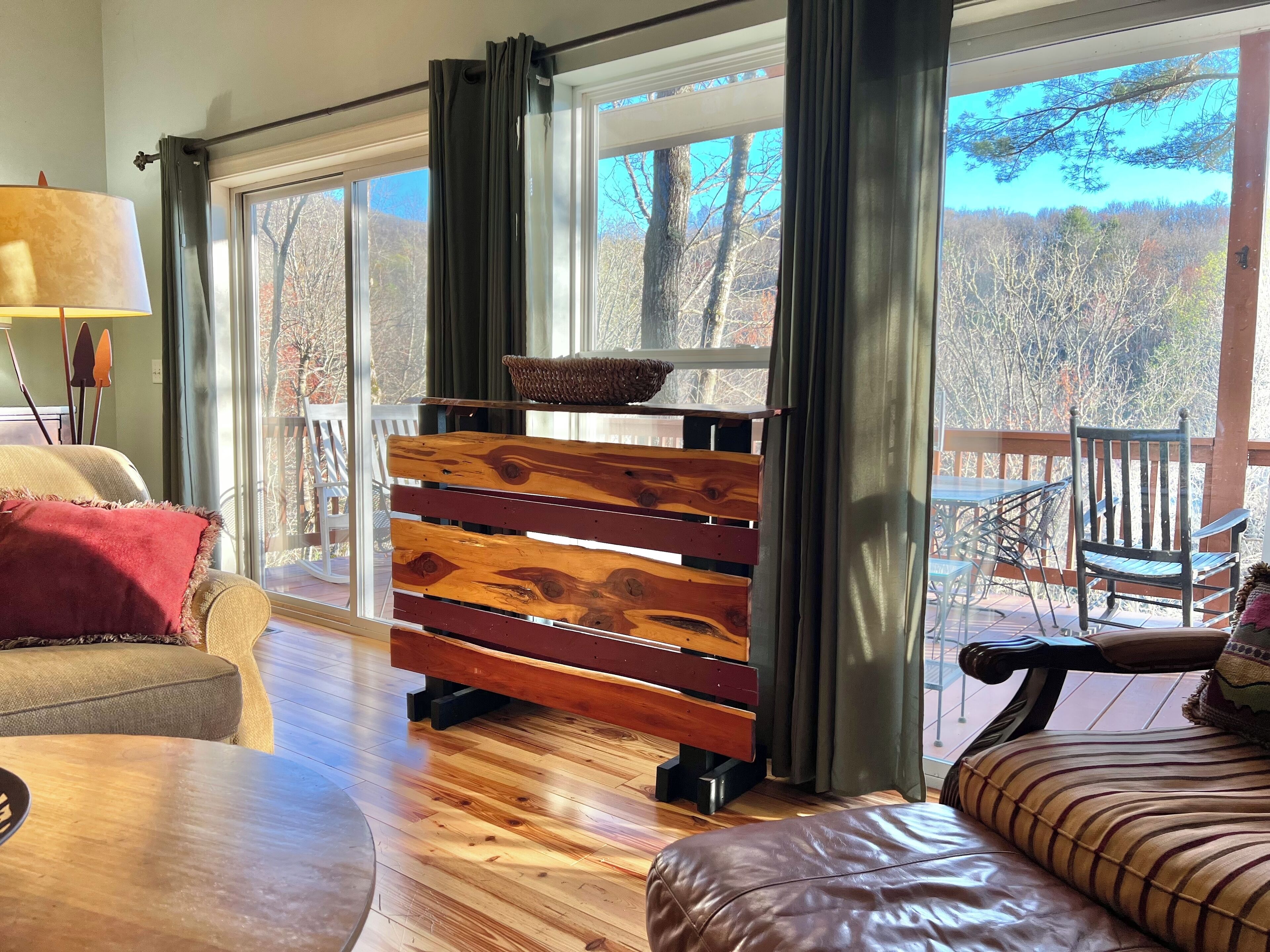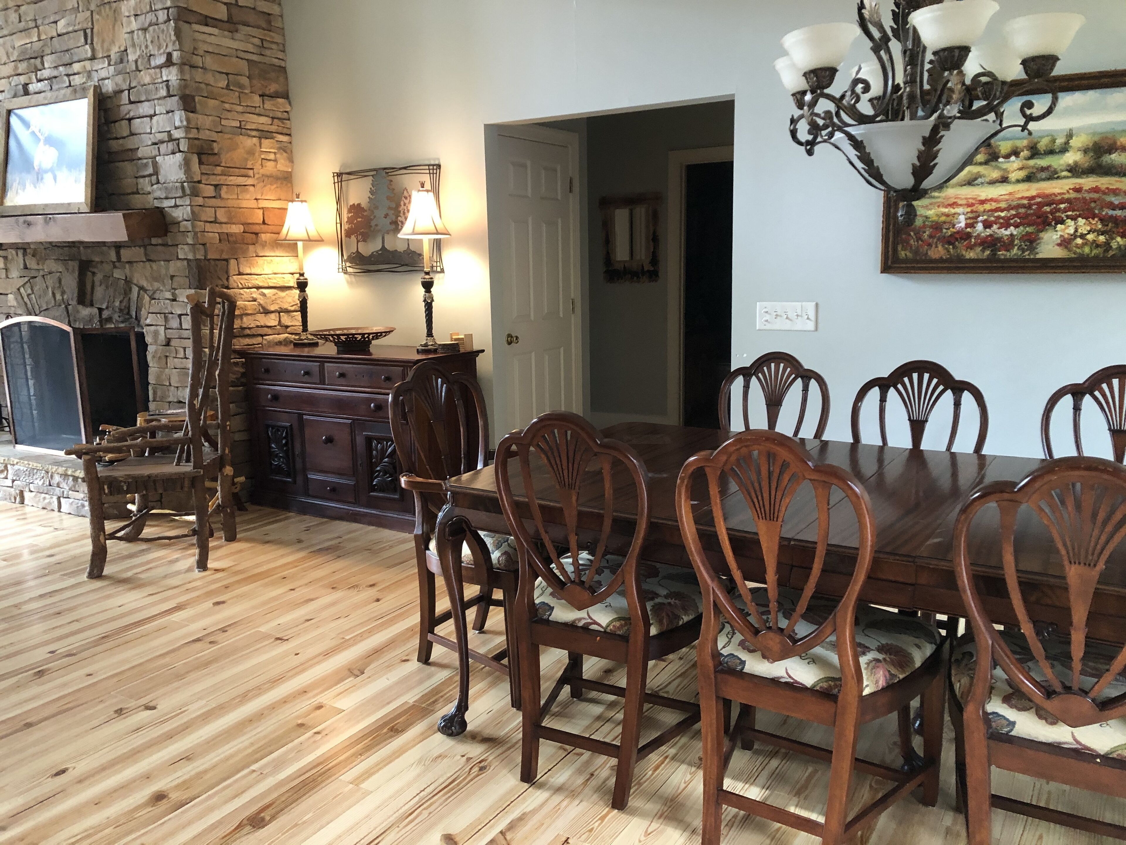 Cozy Fall/Holiday Gathering @ Sky Valley>Highlands Hub! 5BR/4Bs+Pool Table/More! “Skylands" is the perfect place on the Georgia/North Carolina line high up on the Highlands Plateau at 3300' elevation to gather your flock of family or friends for a retreat or to enjoy while you work remotely! Room for 12 max occupancy per county rules, but cozy for just two of you, too. Our high-speed wifi will cover all your needs! We offer 8% off for 7 or more nights and 16% off for 28 or more! There's plenty of space with 5 bedrooms (including 2 masters) and 4 baths over two levels, with covered porches main and lower levels. Pool table and ping pong tables in 2 separate game rooms! Extra den lower level as well. Laundry on main level! Easy access from road to driveway to front door! Skylands is totally non-smoking, and the neighborhood environment is quiet and peaceful. We do not allow pets, and we expect all guests to respect our neighbors insofar as noise/music any time, and rear floodlights after 9 pm. This is truly a paradise where you will hear birds singing and occasional chapel bells chiming! People make multi-generational memories coming year after year due to its location, amenities, and 3300-foot elevation on the "Highlands Plateau" near multiple national and state parks and countless things to do! Skylands' upscale rustic charm exudes as you approach the front door with extension of the house's 20+ foot gable over the front porch, with tongue-in-groove pine ceiling. Once inside the door, you're treated to the grand sight of the huge vaulted great room with massive stone wood-burning fireplace, our well-appointed kitchen with granite-topped custom island and cabinetry created from circle-milled pine, a convenient pantry, stainless steel appliances, heart-of-pine flooring main level, updated bathroom vanities with granite and vessel sinks, local-craftsman-made Appalachian mountain log beds of cedar, pine, hickory and laurel, PEX plumbing, new HVAC, and so much more! The focal point of the lower level game room is an 8-foot oak pool table surrounded by a sassafras and sourwood pub table and hickory stools as well as two large comfy chairs with bear/trout motif and carved bear/trout arms! Nearby is the "ping pong room" with new professional-grade table! The adjoining lower den offers more rustic comfy seating with a drop-leaf table for cards, a board game, or puzzle. There are Roku-smart TV's both levels to connect all your streaming services...next to the fireplace main level and lower level on top of an antique wagon wheel table with old barn wood top. Skylands is within walking distance to the beautiful Sky Valley Resort, including its excellent and beautiful golf course (or an easy 5-minute drive). Our guests enjoy free access to its amenities: exterior heated pool and hot tub, tennis/pickleball courts, and a fitness center open 8 am to 9 pm with sauna and an interior hot tub and locker rooms! There is also a playground for your little ones! Going northeast, Skylands is literally blocks from the trail head to Georgia's 2nd highest peak, Rabun Bald. Jump the GA/NC line, and drive less than 20 minutes to Main Street in Highlands for all its charm, incredible restaurants, shops, and more! Head southwest 10 minutes for Dillard, 20 to Clayton's shops and restaurants and Lakes Burton and Rabun! Skylands is central to so many choices for a long weekend or week or more - any time of year!As for the house itself, both the main and lower levels open to covered porches with the vaulted main level porch offering a gas grill and outdoor dining area. The porches have a south/southwestern view, overlooking a beautiful small lake and the surrounding mountains. No matter the season, the porches are perfect for perching, breathing the fresh air, enjoying the year-round views, and listening to the sounds of birds and distant church chimes! All five Skylands' bedrooms feature rustic log or solid-wood beds, all with heart pine or luxury vinyl plank flooring - no yucky carpet! "Cedar," Skylands' master bedroom (king-sized cedar log bed) is on the main level with a view of the massive great room fireplace from bed! Its windows overlook the lake and mountains. It has an adjoining large private bath with garden tub and shower, double vanity, separate toilet room and walk-in closet. Two other main level bedrooms are on other side of great room with a hall bath. "Pinecones" has a queen-sized forged-iron and wood bed with pinecones & pine branches motif. Its windows overlook the lake and mountains. The main level 3rd bedroom now boasts a hickory log queen bed! "Pinecones" and "Hickory" share a full hall bath. Also nearby is the laundry room with a washer and dryer for your use if you need them. The central great room on the main level includes an ample formal dining area with tiger-mahogany table and 8 chairs, the updated kitchen and new circle-milled pine island with stools, and generous seating options. The fireplace and porch view provide great ambiance whether inside or out. A black walnut game table with live-edge benches provides more dining or game table options. Best of all, relax and visit..."perch"! Interior pine stairs lead down to the lower level with its central game room as described above, with an 8-foot oak pool table, and a den between 2 bedrooms and 2 baths. The lower level porch has an exterior egress to the ground level. Essentially, the lower level has a 2nd king-size master we call "Laurel" (pine logs with laurel accents) with adjoining bath and on the opposite side of the lower level is the "Pine Bunks" bedroom, with now 2 sets of whimsical pine log bunk beds! One is twin over full and other is twin over twin! "Pine Bunks" shares Skylands' 4th full bath with the den and game room.Skylands is situated on 4 wooded lots - very private! Listen for the multitude of birds and other sounds of nature. It's why we have used the word "perch" as a verb...it's a restful, peaceful setting yet so close to s