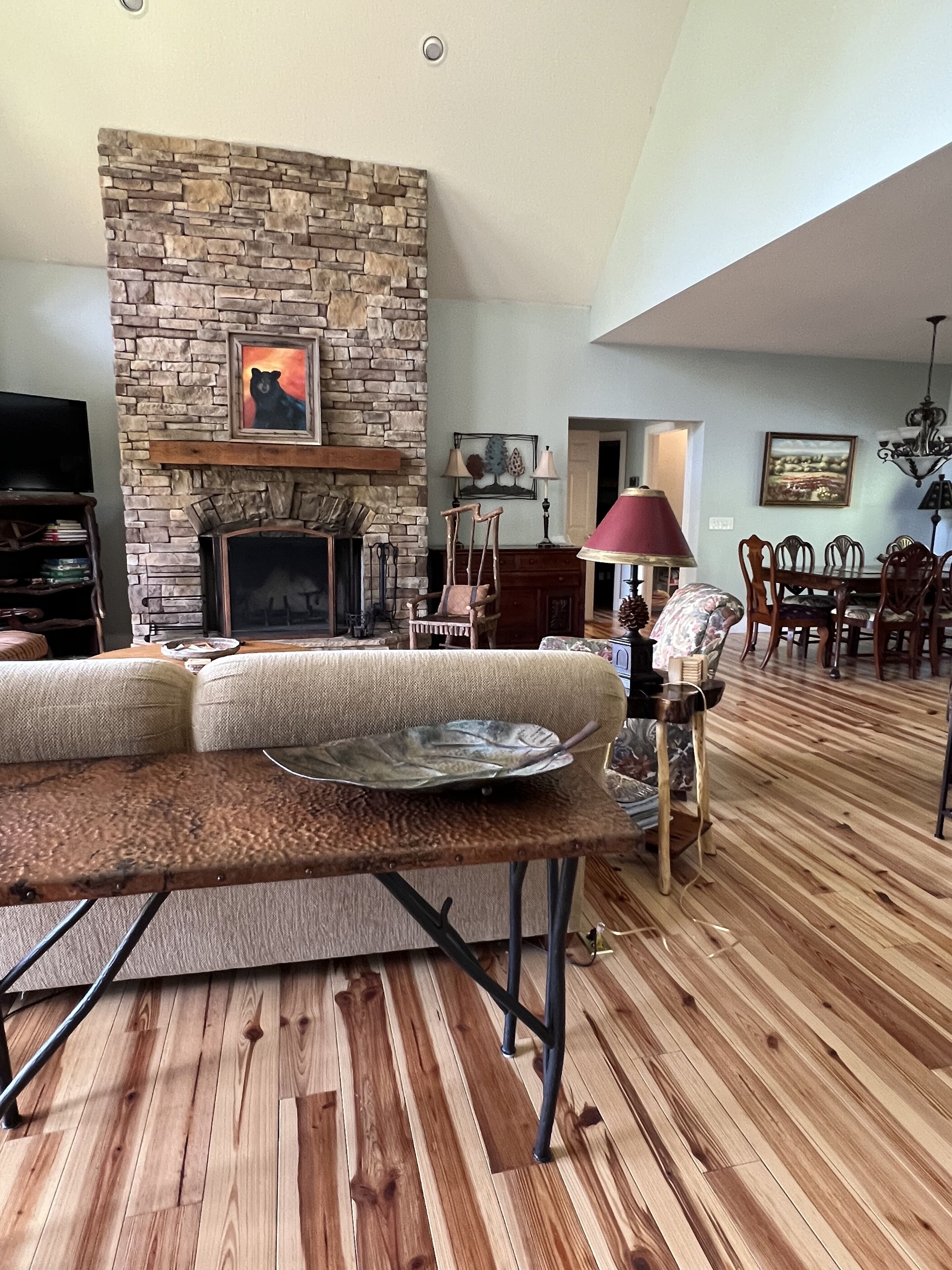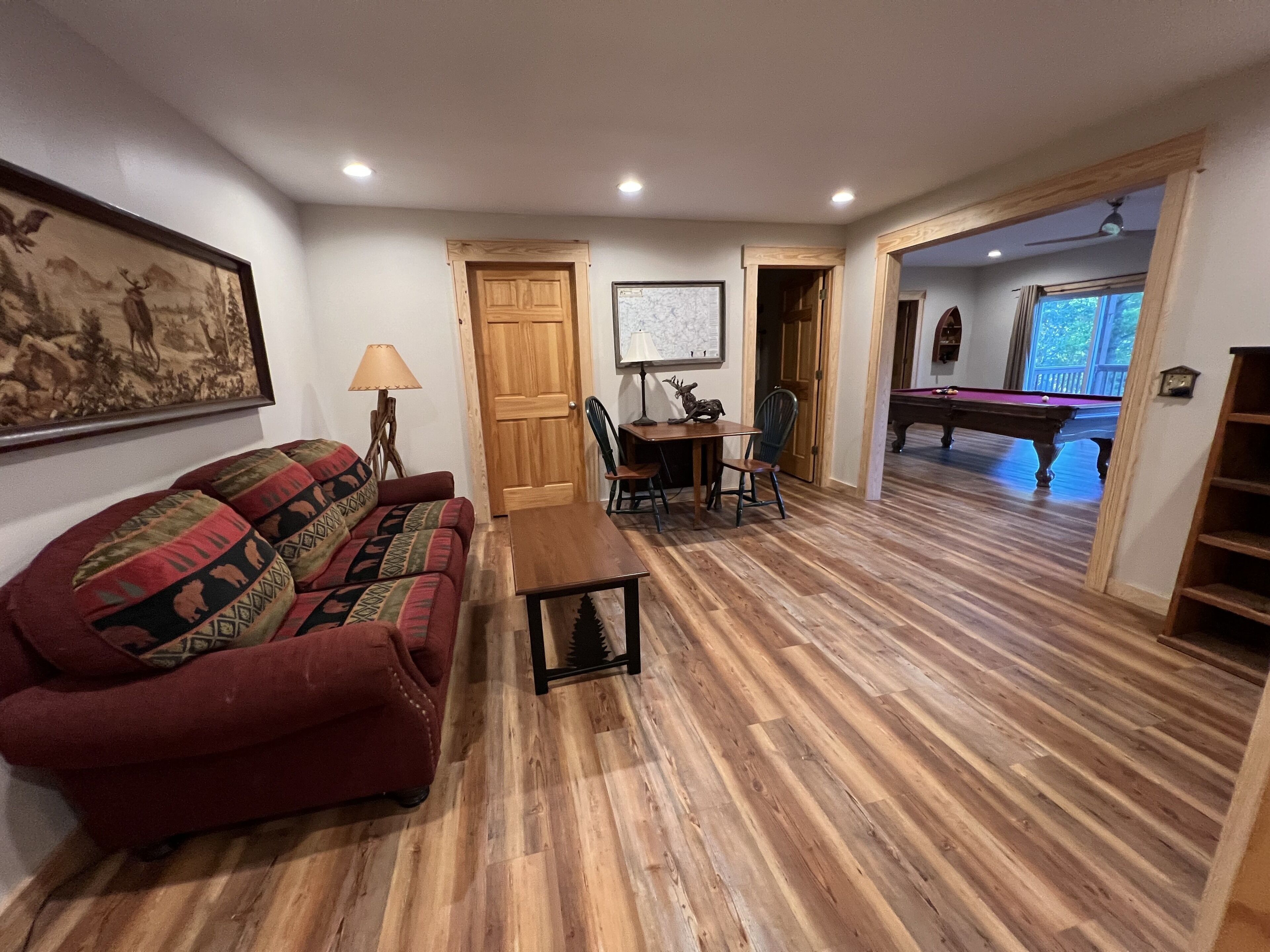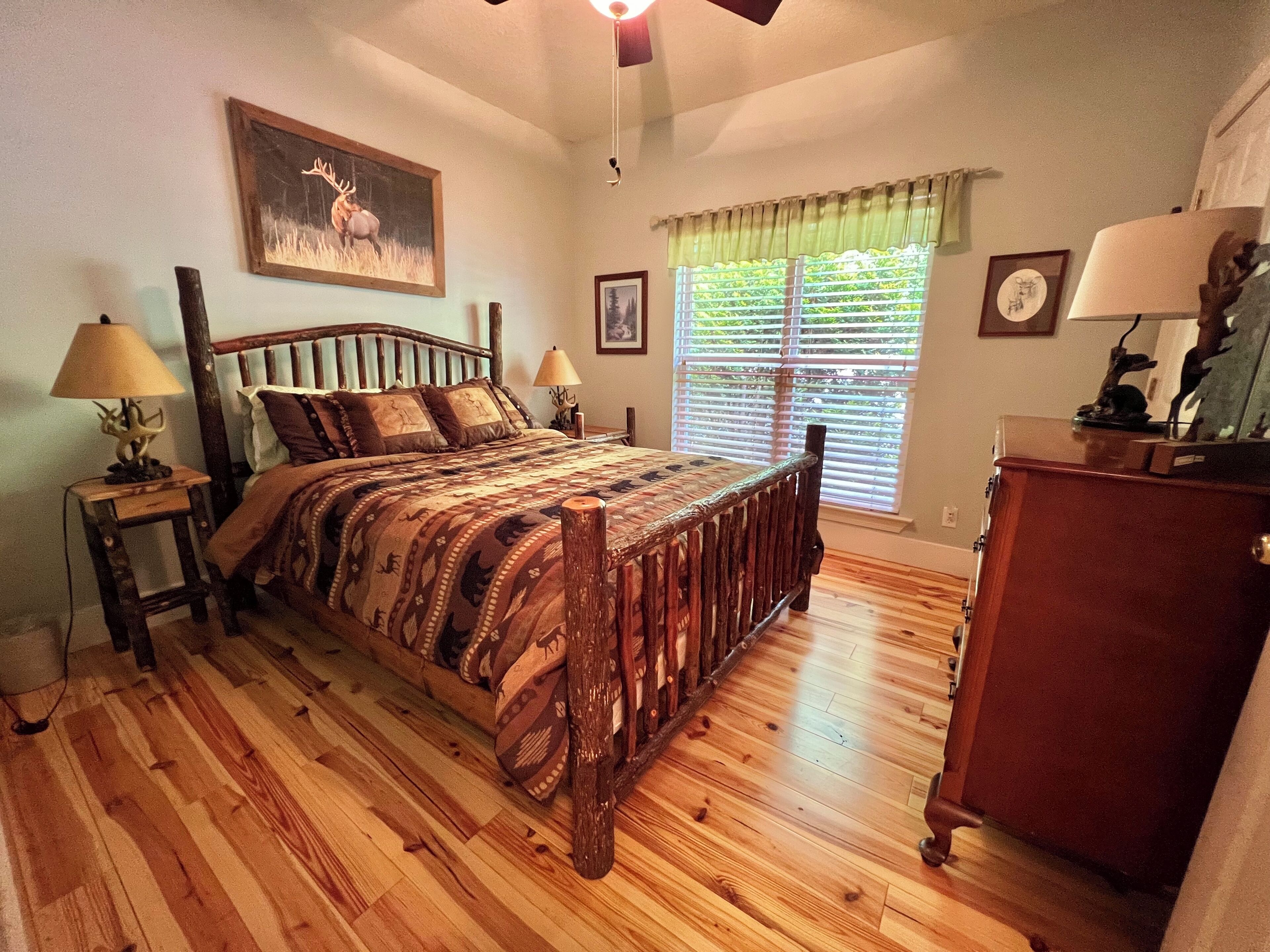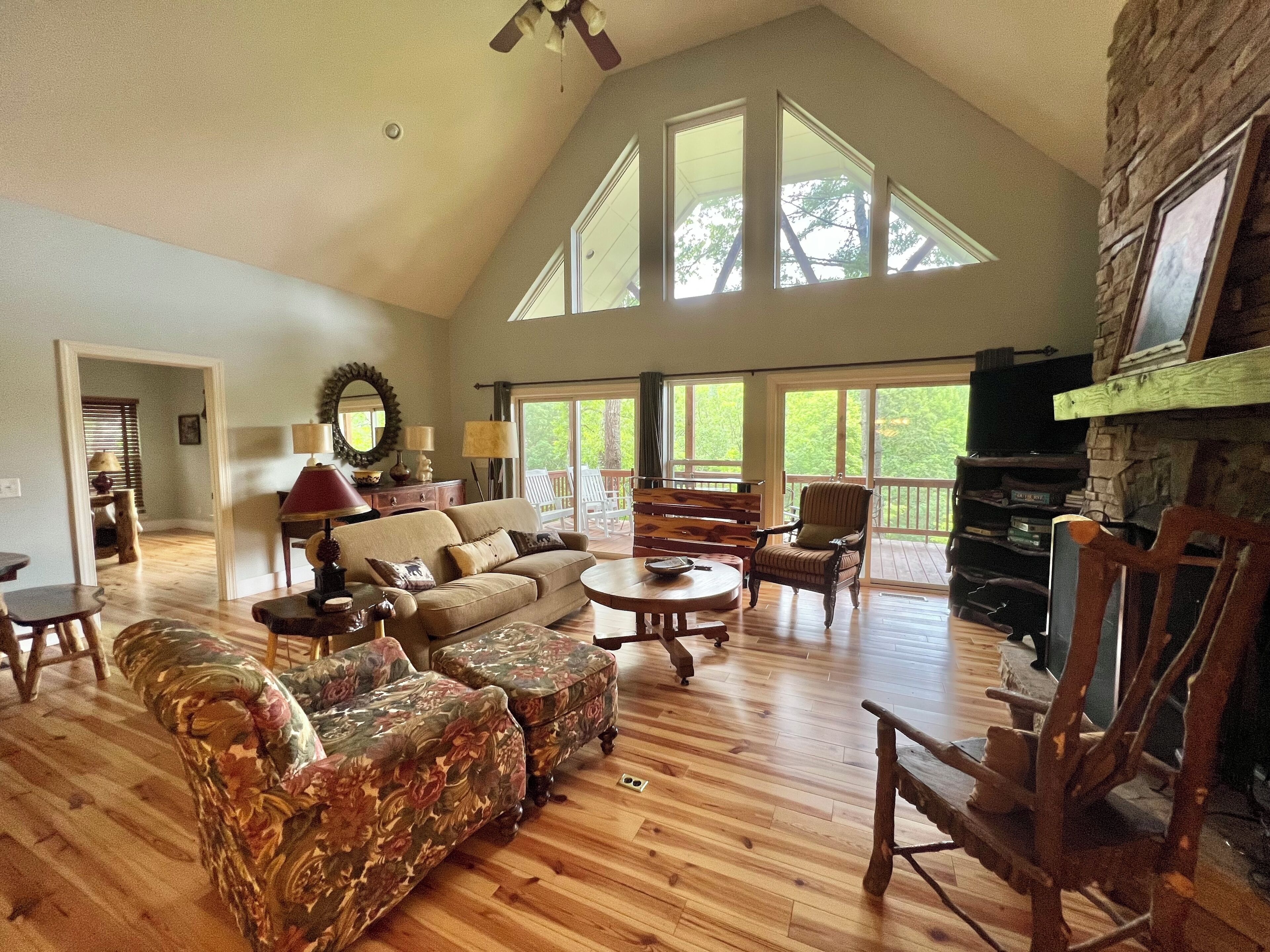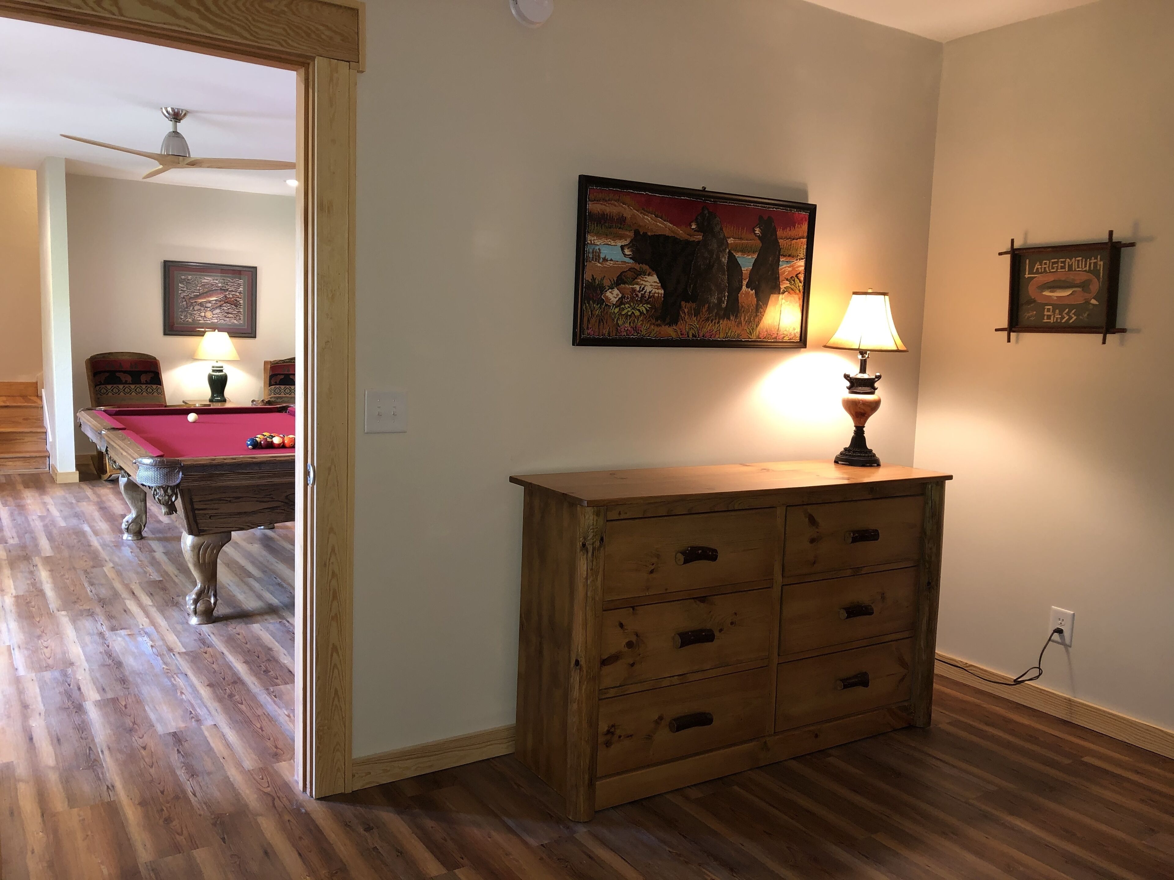 Cozy Fall/Holiday Gathering @ Sky Valley>Highlands Hub! 5BR/4Bs+Pool Table/More! “Skylands" is the perfect place on the Georgia/North Carolina line high up on the Highlands Plateau at 3300' elevation to gather your flock of family or friends for a retreat or to enjoy while you work remotely! Room for 12 max occupancy per county rules, but cozy for just two of you, too. Our high-speed wifi will cover all your needs! We offer 8% off for 7 or more nights and 16% off for 28 or more! There's plenty of space with 5 bedrooms (including 2 masters) and 4 baths over two levels, with covered porches main and lower levels. Pool table and ping pong tables in 2 separate game rooms! Extra den lower level as well. Laundry on main level! Easy access from road to driveway to front door! Skylands is totally non-smoking, and the neighborhood environment is quiet and peaceful. We do not allow pets, and we expect all guests to respect our neighbors insofar as noise/music any time, and rear floodlights after 9 pm. This is truly a paradise where you will hear birds singing and occasional chapel bells chiming! People make multi-generational memories coming year after year due to its location, amenities, and 3300-foot elevation on the "Highlands Plateau" near multiple national and state parks and countless things to do! Skylands' upscale rustic charm exudes as you approach the front door with extension of the house's 20+ foot gable over the front porch, with tongue-in-groove pine ceiling. Once inside the door, you're treated to the grand sight of the huge vaulted great room with massive stone wood-burning fireplace, our well-appointed kitchen with granite-topped custom island and cabinetry created from circle-milled pine, a convenient pantry, stainless steel appliances, heart-of-pine flooring main level, updated bathroom vanities with granite and vessel sinks, local-craftsman-made Appalachian mountain log beds of cedar, pine, hickory and laurel, PEX plumbing, new HVAC, and so much more! The focal point of the lower level game room is an 8-foot oak pool table surrounded by a sassafras and sourwood pub table and hickory stools as well as two large comfy chairs with bear/trout motif and carved bear/trout arms! Nearby is the "ping pong room" with new professional-grade table! The adjoining lower den offers more rustic comfy seating with a drop-leaf table for cards, a board game, or puzzle. There are Roku-smart TV's both levels to connect all your streaming services...next to the fireplace main level and lower level on top of an antique wagon wheel table with old barn wood top. Skylands is within walking distance to the beautiful Sky Valley Resort, including its excellent and beautiful golf course (or an easy 5-minute drive). Our guests enjoy free access to its amenities: exterior heated pool and hot tub, tennis/pickleball courts, and a fitness center open 8 am to 9 pm with sauna and an interior hot tub and locker rooms! There is also a playground for your little ones! Going northeast, Skylands is literally blocks from the trail head to Georgia's 2nd highest peak, Rabun Bald. Jump the GA/NC line, and drive less than 20 minutes to Main Street in Highlands for all its charm, incredible restaurants, shops, and more! Head southwest 10 minutes for Dillard, 20 to Clayton's shops and restaurants and Lakes Burton and Rabun! Skylands is central to so many choices for a long weekend or week or more - any time of year!As for the house itself, both the main and lower levels open to covered porches with the vaulted main level porch offering a gas grill and outdoor dining area. The porches have a south/southwestern view, overlooking a beautiful small lake and the surrounding mountains. No matter the season, the porches are perfect for perching, breathing the fresh air, enjoying the year-round views, and listening to the sounds of birds and distant church chimes! All five Skylands' bedrooms feature rustic log or solid-wood beds, all with heart pine or luxury vinyl plank flooring - no yucky carpet! "Cedar," Skylands' master bedroom (king-sized cedar log bed) is on the main level with a view of the massive great room fireplace from bed! Its windows overlook the lake and mountains. It has an adjoining large private bath with garden tub and shower, double vanity, separate toilet room and walk-in closet. Two other main level bedrooms are on other side of great room with a hall bath. "Pinecones" has a queen-sized forged-iron and wood bed with pinecones & pine branches motif. Its windows overlook the lake and mountains. The main level 3rd bedroom now boasts a hickory log queen bed! "Pinecones" and "Hickory" share a full hall bath. Also nearby is the laundry room with a washer and dryer for your use if you need them. The central great room on the main level includes an ample formal dining area with tiger-mahogany table and 8 chairs, the updated kitchen and new circle-milled pine island with stools, and generous seating options. The fireplace and porch view provide great ambiance whether inside or out. A black walnut game table with live-edge benches provides more dining or game table options. Best of all, relax and visit..."perch"! Interior pine stairs lead down to the lower level with its central game room as described above, with an 8-foot oak pool table, and a den between 2 bedrooms and 2 baths. The lower level porch has an exterior egress to the ground level. Essentially, the lower level has a 2nd king-size master we call "Laurel" (pine logs with laurel accents) with adjoining bath and on the opposite side of the lower level is the "Pine Bunks" bedroom, with now 2 sets of whimsical pine log bunk beds! One is twin over full and other is twin over twin! "Pine Bunks" shares Skylands' 4th full bath with the den and game room.Skylands is situated on 4 wooded lots - very private! Listen for the multitude of birds and other sounds of nature. It's why we have used the word "perch" as a verb...it's a restful, peaceful setting yet so close to s