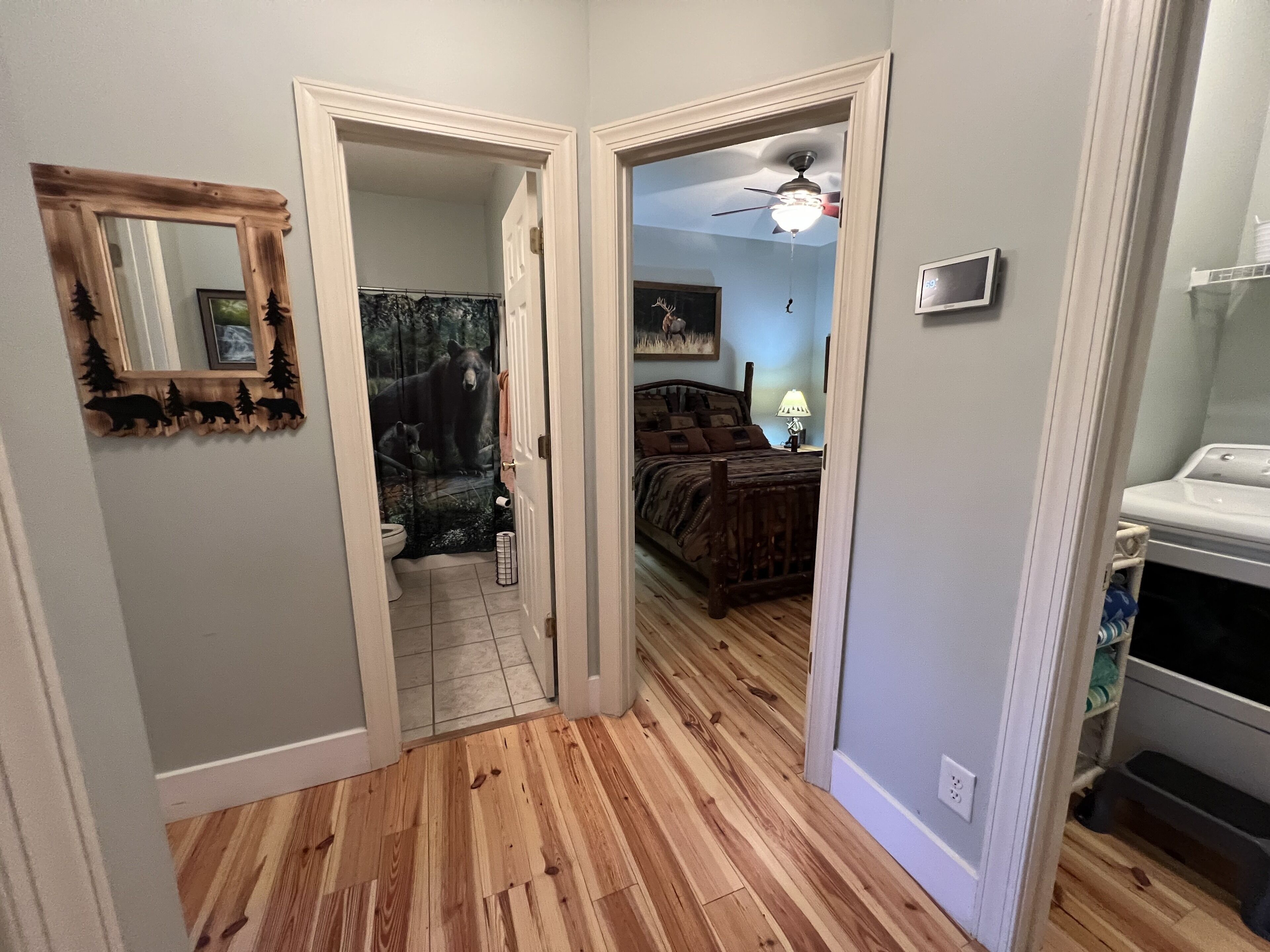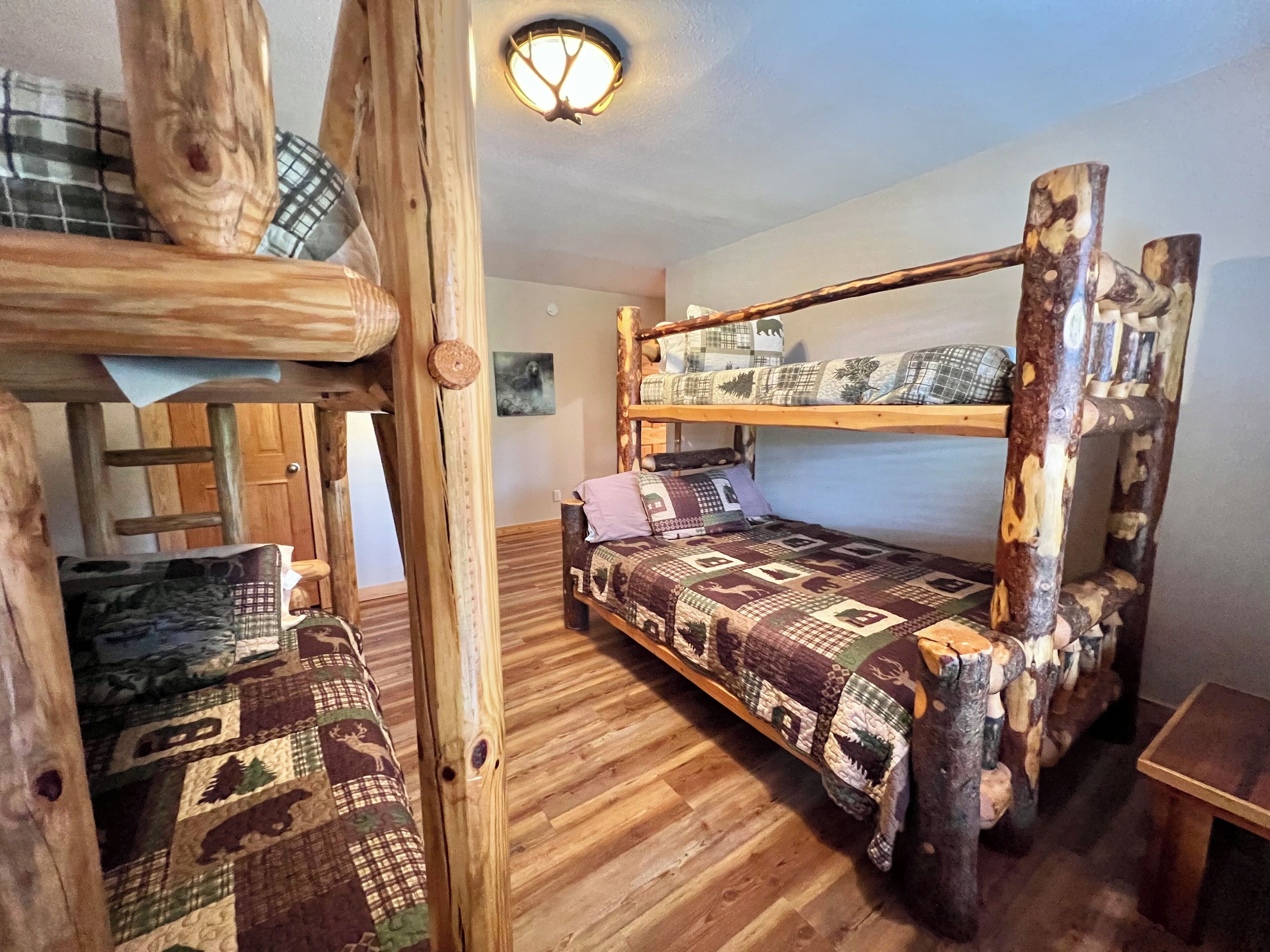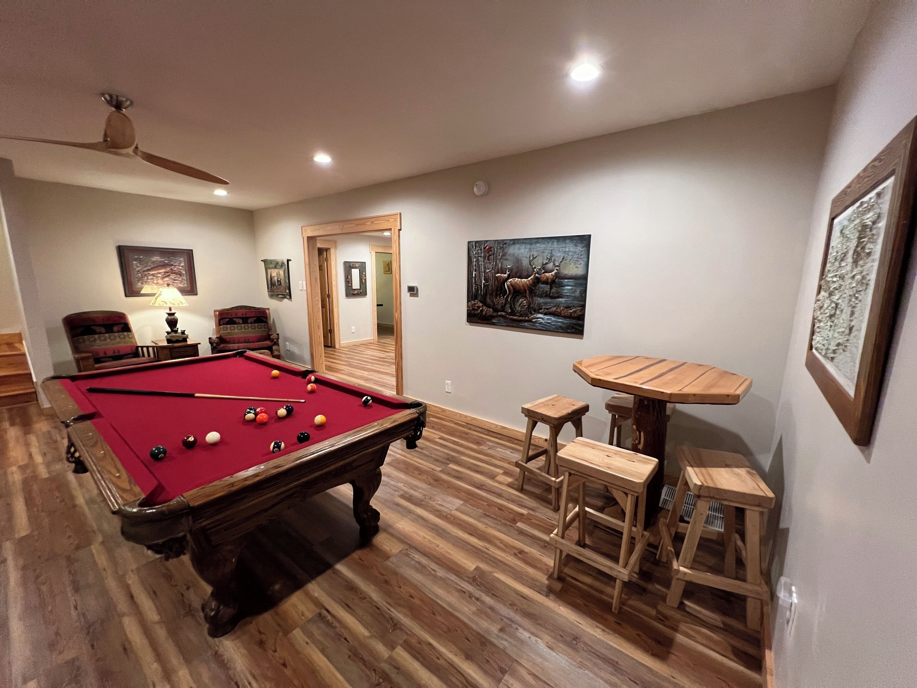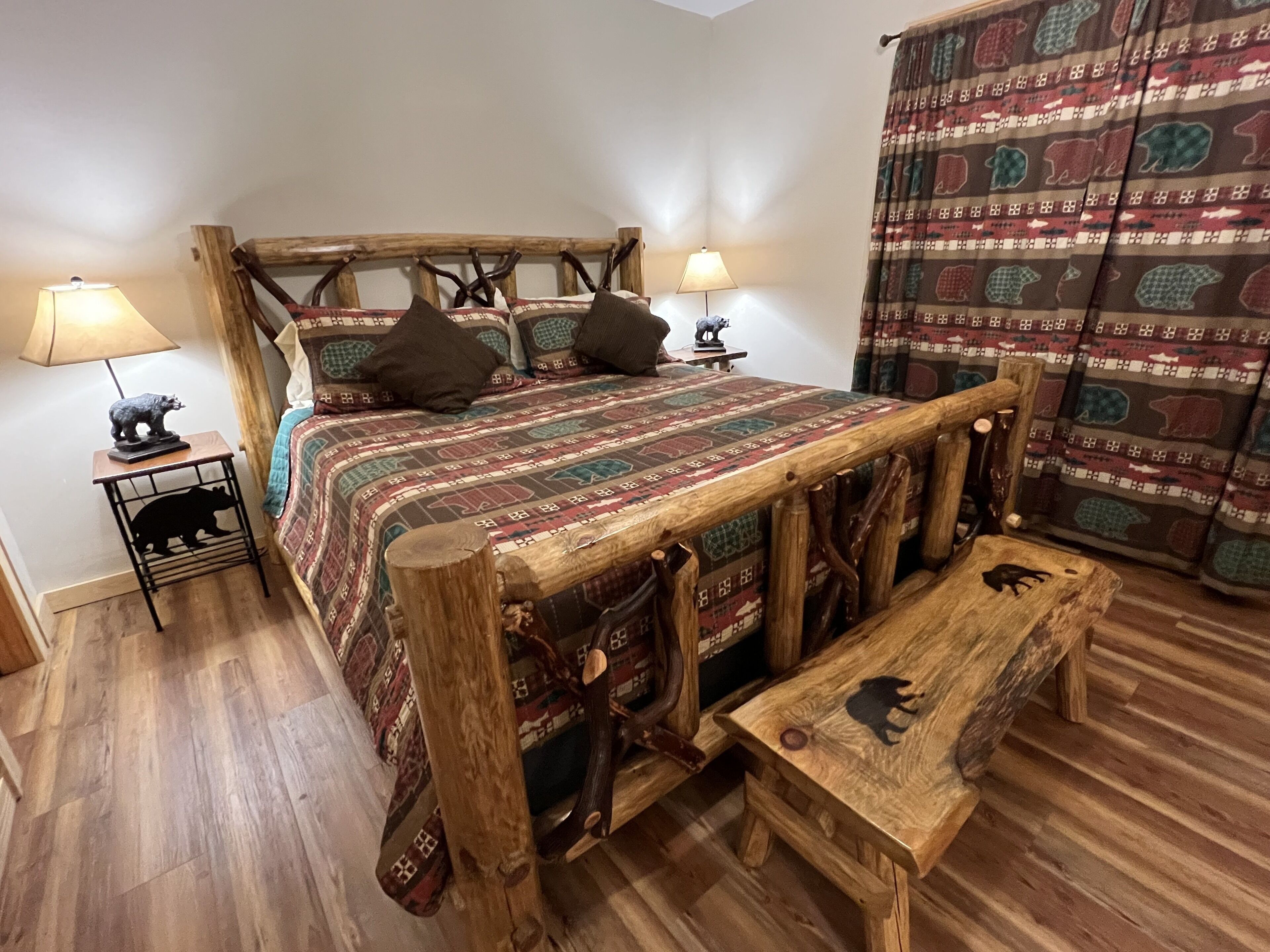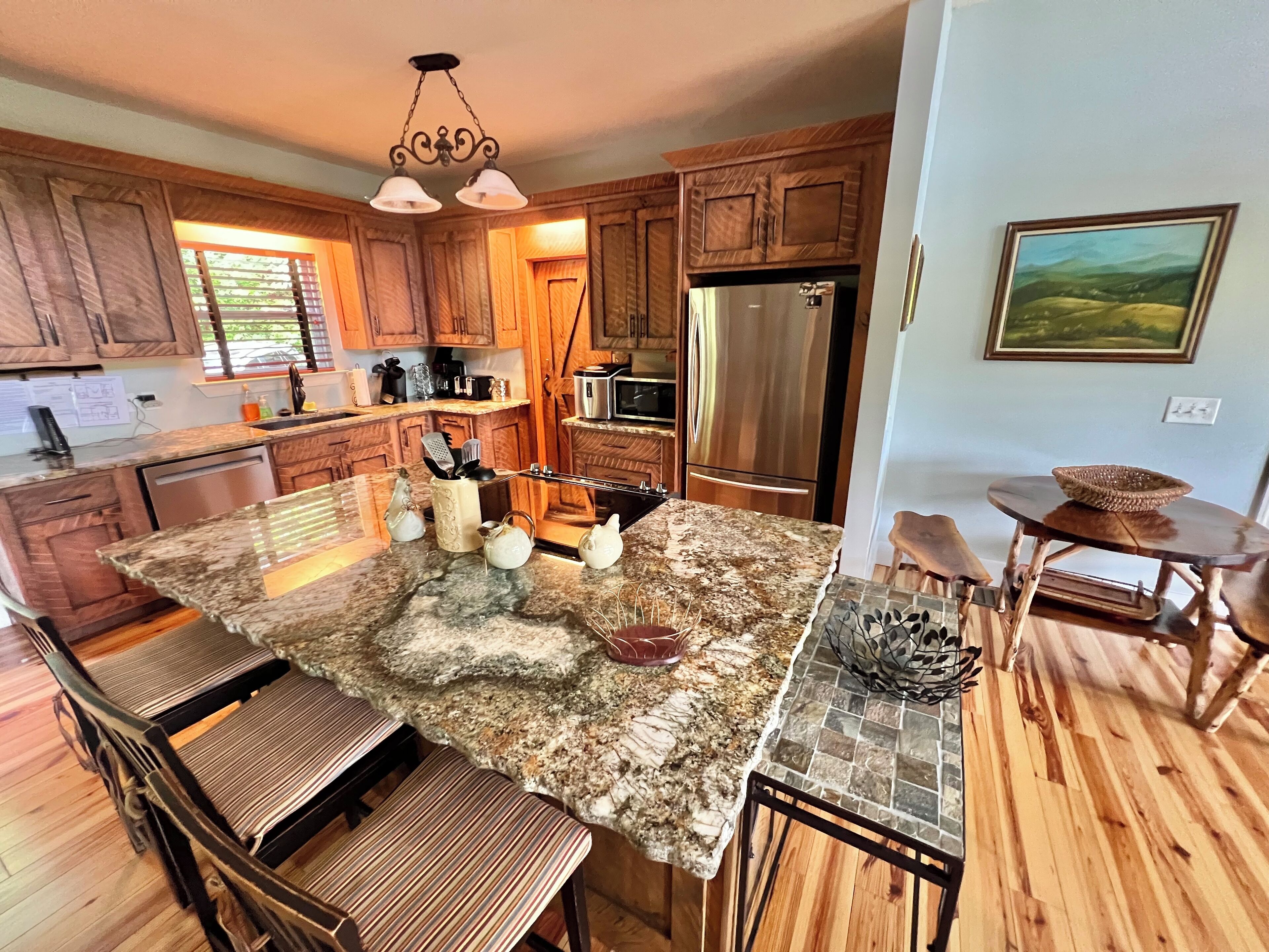 Cozy Fall/Holiday Gathering @ Sky Valley>Highlands Hub! 5BR/4Bs+Pool Table/More! “Skylands" is the perfect place on the Georgia/North Carolina line high up on the Highlands Plateau at 3300' elevation to gather your flock of family or friends for a retreat or to enjoy while you work remotely! Room for 12 max occupancy per county rules, but cozy for just two of you, too. Our high-speed wifi will cover all your needs! We offer 8% off for 7 or more nights and 16% off for 28 or more! There's plenty of space with 5 bedrooms (including 2 masters) and 4 baths over two levels, with covered porches main and lower levels. Pool table and ping pong tables in 2 separate game rooms! Extra den lower level as well. Laundry on main level! Easy access from road to driveway to front door! Skylands is totally non-smoking, and the neighborhood environment is quiet and peaceful. We do not allow pets, and we expect all guests to respect our neighbors insofar as noise/music any time, and rear floodlights after 9 pm. This is truly a paradise where you will hear birds singing and occasional chapel bells chiming! People make multi-generational memories coming year after year due to its location, amenities, and 3300-foot elevation on the "Highlands Plateau" near multiple national and state parks and countless things to do! Skylands' upscale rustic charm exudes as you approach the front door with extension of the house's 20+ foot gable over the front porch, with tongue-in-groove pine ceiling. Once inside the door, you're treated to the grand sight of the huge vaulted great room with massive stone wood-burning fireplace, our well-appointed kitchen with granite-topped custom island and cabinetry created from circle-milled pine, a convenient pantry, stainless steel appliances, heart-of-pine flooring main level, updated bathroom vanities with granite and vessel sinks, local-craftsman-made Appalachian mountain log beds of cedar, pine, hickory and laurel, PEX plumbing, new HVAC, and so much more! The focal point of the lower level game room is an 8-foot oak pool table surrounded by a sassafras and sourwood pub table and hickory stools as well as two large comfy chairs with bear/trout motif and carved bear/trout arms! Nearby is the "ping pong room" with new professional-grade table! The adjoining lower den offers more rustic comfy seating with a drop-leaf table for cards, a board game, or puzzle. There are Roku-smart TV's both levels to connect all your streaming services...next to the fireplace main level and lower level on top of an antique wagon wheel table with old barn wood top. Skylands is within walking distance to the beautiful Sky Valley Resort, including its excellent and beautiful golf course (or an easy 5-minute drive). Our guests enjoy free access to its amenities: exterior heated pool and hot tub, tennis/pickleball courts, and a fitness center open 8 am to 9 pm with sauna and an interior hot tub and locker rooms! There is also a playground for your little ones! Going northeast, Skylands is literally blocks from the trail head to Georgia's 2nd highest peak, Rabun Bald. Jump the GA/NC line, and drive less than 20 minutes to Main Street in Highlands for all its charm, incredible restaurants, shops, and more! Head southwest 10 minutes for Dillard, 20 to Clayton's shops and restaurants and Lakes Burton and Rabun! Skylands is central to so many choices for a long weekend or week or more - any time of year!As for the house itself, both the main and lower levels open to covered porches with the vaulted main level porch offering a gas grill and outdoor dining area. The porches have a south/southwestern view, overlooking a beautiful small lake and the surrounding mountains. No matter the season, the porches are perfect for perching, breathing the fresh air, enjoying the year-round views, and listening to the sounds of birds and distant church chimes! All five Skylands' bedrooms feature rustic log or solid-wood beds, all with heart pine or luxury vinyl plank flooring - no yucky carpet! "Cedar," Skylands' master bedroom (king-sized cedar log bed) is on the main level with a view of the massive great room fireplace from bed! Its windows overlook the lake and mountains. It has an adjoining large private bath with garden tub and shower, double vanity, separate toilet room and walk-in closet. Two other main level bedrooms are on other side of great room with a hall bath. "Pinecones" has a queen-sized forged-iron and wood bed with pinecones & pine branches motif. Its windows overlook the lake and mountains. The main level 3rd bedroom now boasts a hickory log queen bed! "Pinecones" and "Hickory" share a full hall bath. Also nearby is the laundry room with a washer and dryer for your use if you need them. The central great room on the main level includes an ample formal dining area with tiger-mahogany table and 8 chairs, the updated kitchen and new circle-milled pine island with stools, and generous seating options. The fireplace and porch view provide great ambiance whether inside or out. A black walnut game table with live-edge benches provides more dining or game table options. Best of all, relax and visit..."perch"! Interior pine stairs lead down to the lower level with its central game room as described above, with an 8-foot oak pool table, and a den between 2 bedrooms and 2 baths. The lower level porch has an exterior egress to the ground level. Essentially, the lower level has a 2nd king-size master we call "Laurel" (pine logs with laurel accents) with adjoining bath and on the opposite side of the lower level is the "Pine Bunks" bedroom, with now 2 sets of whimsical pine log bunk beds! One is twin over full and other is twin over twin! "Pine Bunks" shares Skylands' 4th full bath with the den and game room.Skylands is situated on 4 wooded lots - very private! Listen for the multitude of birds and other sounds of nature. It's why we have used the word "perch" as a verb...it's a restful, peaceful setting yet so close to s