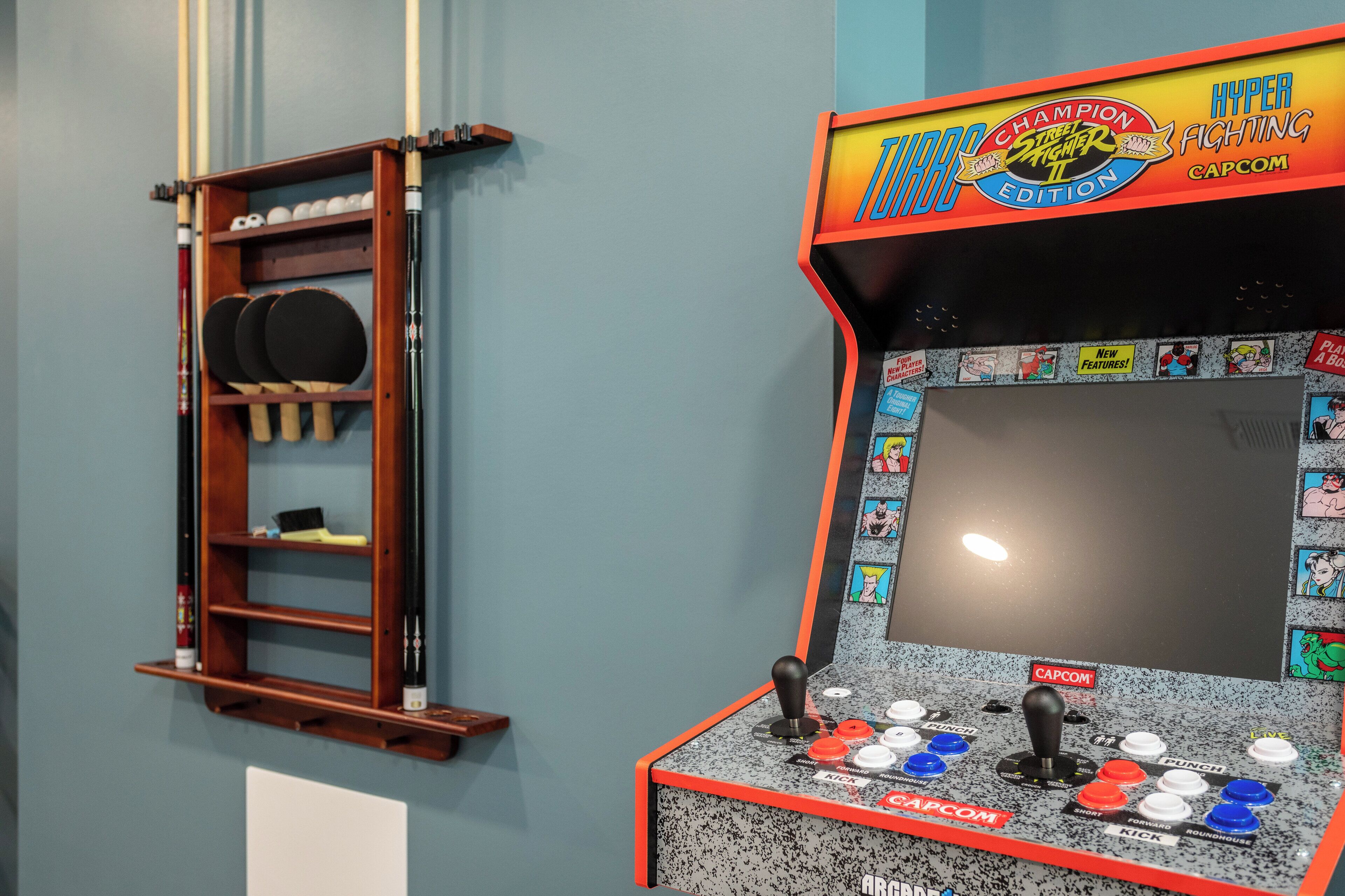 Epic ~ Game Room, Hot Tub, Firepit, BBQ ~ 7 min to Shenandoah National Park Location:🚵♀️ 7 minutes from Shenandoah National Park entrance for hiking and scenic drives.🏂 10 minutes from Massanutten Ski Resort and Water Park for winter sports fun.🥂 Nearby breweries and wineries for those seeking a more relaxed experience.Games and Entertainment:🏓 Expansive game room with pool table, ping pong table, foosball, and fully equipped entertainment center.🕹️ New arcade machines added 2024 - X-men 4-player and Street Fighter 2 Turbo!🎥 Perfect for challenging friends and family or relaxing with a movie night.Relaxation Retreat:🥩 Deck with BBQ grill and outdoor seating for al fresco dining. 🔥 Outdoor firepit for sharing stories under the stars👙 Private 7-person hot tub to soothe muscles after outdoor adventures.Modern Comforts:⭐ Open concept living area with vaulted ceiling and plush seating.📺 65in TVs in the main living areas. 4 televisions throughout the home.💻 Hi-speed wifi and office for remote work👶 Pack-and-play available for small childrenChef's Kitchen:🍝 Fully equipped kitchen with toaster oven/air fryer and pressure cooker/slow cooker.🍴 Cookware, plates/bowls, utensils, baking sheets, and wine glasses provided.Accommodation:🌜 Four bedrooms with a mix of king, queen, and twin beds.👩👩👦👦 Additional sleeping options with sofa bed and futon.🛀 Three full bathrooms stocked with fresh linens and essentials.Family-Friendly Getaway:⛺ Serene mountain retreat for creating lasting memories with loved ones.🚣 Ideal for adventure seekers or those seeking a peaceful escape.Book now and experience all that our mountain home has to offer. Reserve your stay today for an unforgettable getaway!