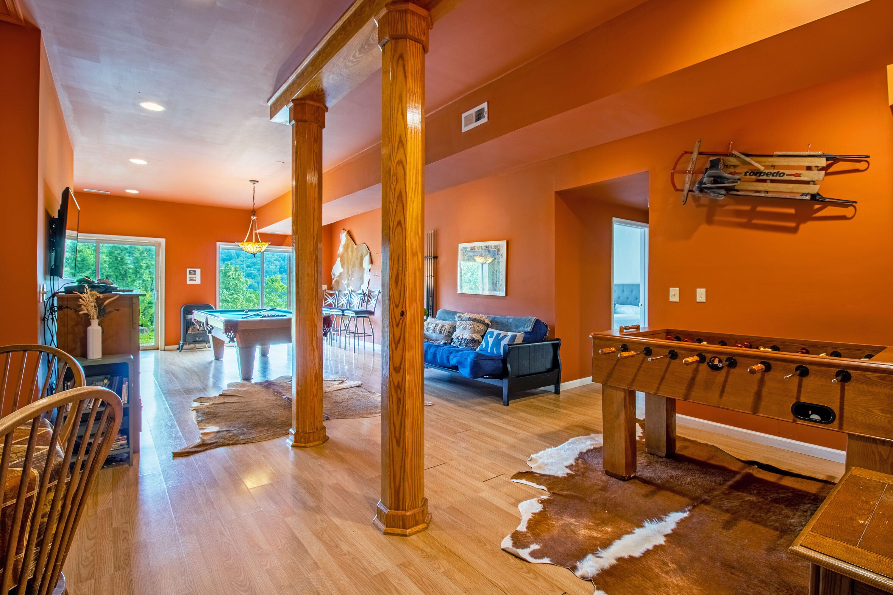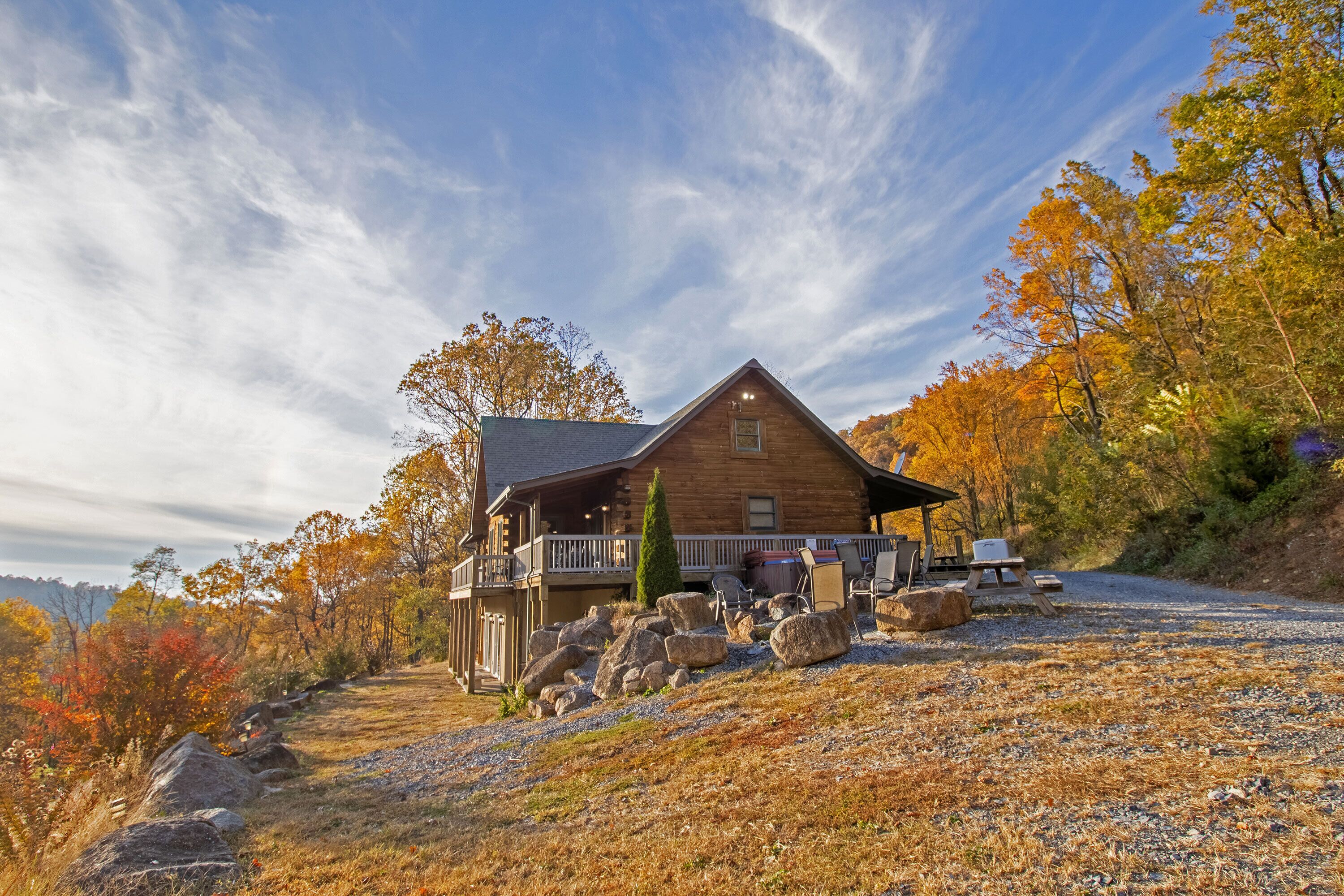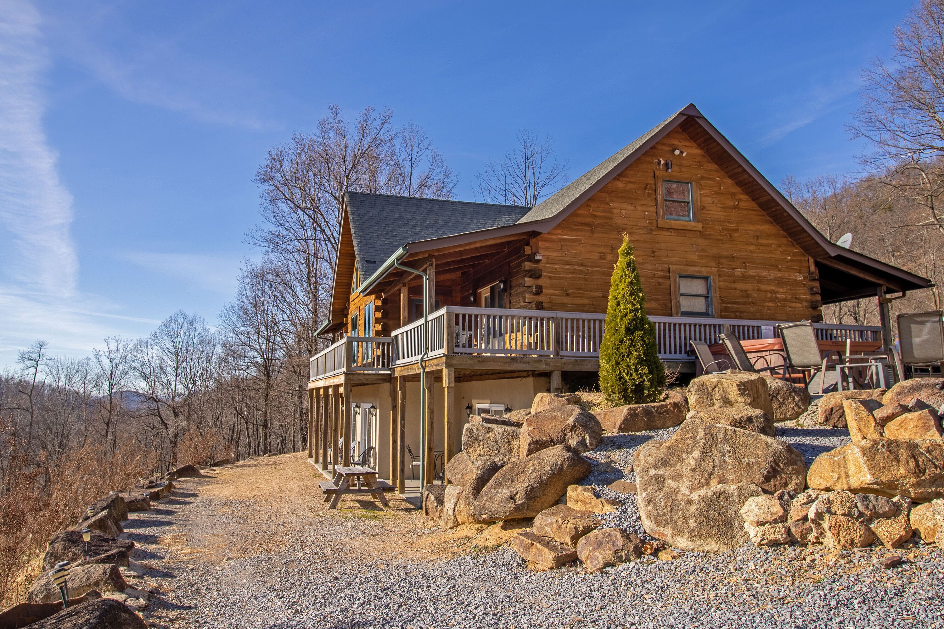 Hot Tub, Scenic Views, Pet Friendly! Peaceful seclusion awaits at Hensley Hollow Lodge! Located in Elkton, VA, this seven-bedroom, four-bathroom log home nestled on 5+ acres offers a truly unique Shenandoah Valley experience. Enjoy unobstructed views of the Blue Ridge Mountains, close proximity to local attractions, and exciting vacation house features that will keep you coming back time and time again.This vacation home sleeps up to 22 people and offers a unique layout with plenty of room to spread out.Four of the seven bedrooms include semi-private decks or patios, two of which also include private full bathrooms, and the two loft area bedrooms with partial walls provide a variety of queen and twin bed arrangements: a great option for the kids! A futon located in the game room and a sleeper sofa located in the loft area provides additional sleeping options. Guests will also enjoy conveniences like a fully equipped kitchen, a gas grill and Blackstone Griddle, a laundry room, gas fireplaces, and more! Although Hensley Hollow Lodge has a weak wifi signal which makes streaming difficult, there are plenty of local attractions to enjoy during your visit instead! Just 15 minutes from the Swift Run Gap entrance to Shenandoah National Park, Hensley Hollow Lodge is a great option for adventure enthusiasts looking to embark on a thrilling hike or scenic drive through the mountains.Interested in river adventures?Kayaks are provided for guests at no additional cost and can be used to float or fish the nearby Shenandoah River. The lodge is also near plenty of local dining and shopping options, unique breweries and wineries, and four-season attractions at Massanutten Resort. Hensley Hollow Lodge guests receive free access to Massanutten Resort's recreation centers which include amenities like indoor and outdoor pools, tennis and basketball courts, fitness centers, racquetball courts, and so much more! Escape to the mountains and enjoy a one-of-a-kind experience at Hensley Hollow Lodge!Click�HERE�to virtually navigate the road to Hensley Hollow Lodge!Check-In begins at 4pm�Your keyless entry code will begin granting access at this time.Check-Out is at 10am.*Hensley Hollow Lodge is a pet-friendly home. Dogs only please. Additional fees apply. *DART BOARD REMOVED 2023*IMPORTANT NOTE:�In order to maintain a flexible cancellation policy, guests may cancel up to 30 days prior to arrival to receive any type of refund. However,�administrative fees and insurances are non-refundable once a reservation is made.� Cancel For Any Reason and Standard Travel Insurance options are available for purchase through TripForth.� Contact us to learn more about protecting your reservation.DRIVEWAY NOTE:��The driveway leading to this property is on an incline, as this home is located within a mountainous region. We do advise each our of guest use caution when navigating entry into and from property. 4WD is not required to access the home during normal weather conditions.HighlightsRecently upgraded Wi-Fi at the lodge, Wi-Fi is via Starlink and has a strong signal.7 Bedrooms4 Full BathroomsGame RoomPrivate Hot TubFire PitSemi-Private Decks & PatiosScenic Mountain ViewsKeyless EntryGround LevelGame Room w/ FutonLaundry RoomExterior Access to Lower-Level Patio1 King Bedroom w/ Twin Over Twin Bunk Bed & Private Full Bathroom1 King Bedroom1 Full BathroomEntry LevelFull KitchenDining AreaLiving Room w/ FireplaceMid-Level Deck1 Queen Bedroom1 King Bedroom w/ Private Full Bathroom1 King Bedroom1 Full BathroomTop Level LoftSitting Area w/ Sleeper Sofa2 Bedrooms w/ Partial WallsFirst Bedroom w/ 1 Queen Bed & 3 Twin Single BedsSecond Bedroom w/ 1 Queen Bed & 3 Twin Single BedsOutdoor8-Person Hot TubFire PitGas GrillBlackstone GriddleScenic Mountain ViewsKayaks ProvidedDog Kennel