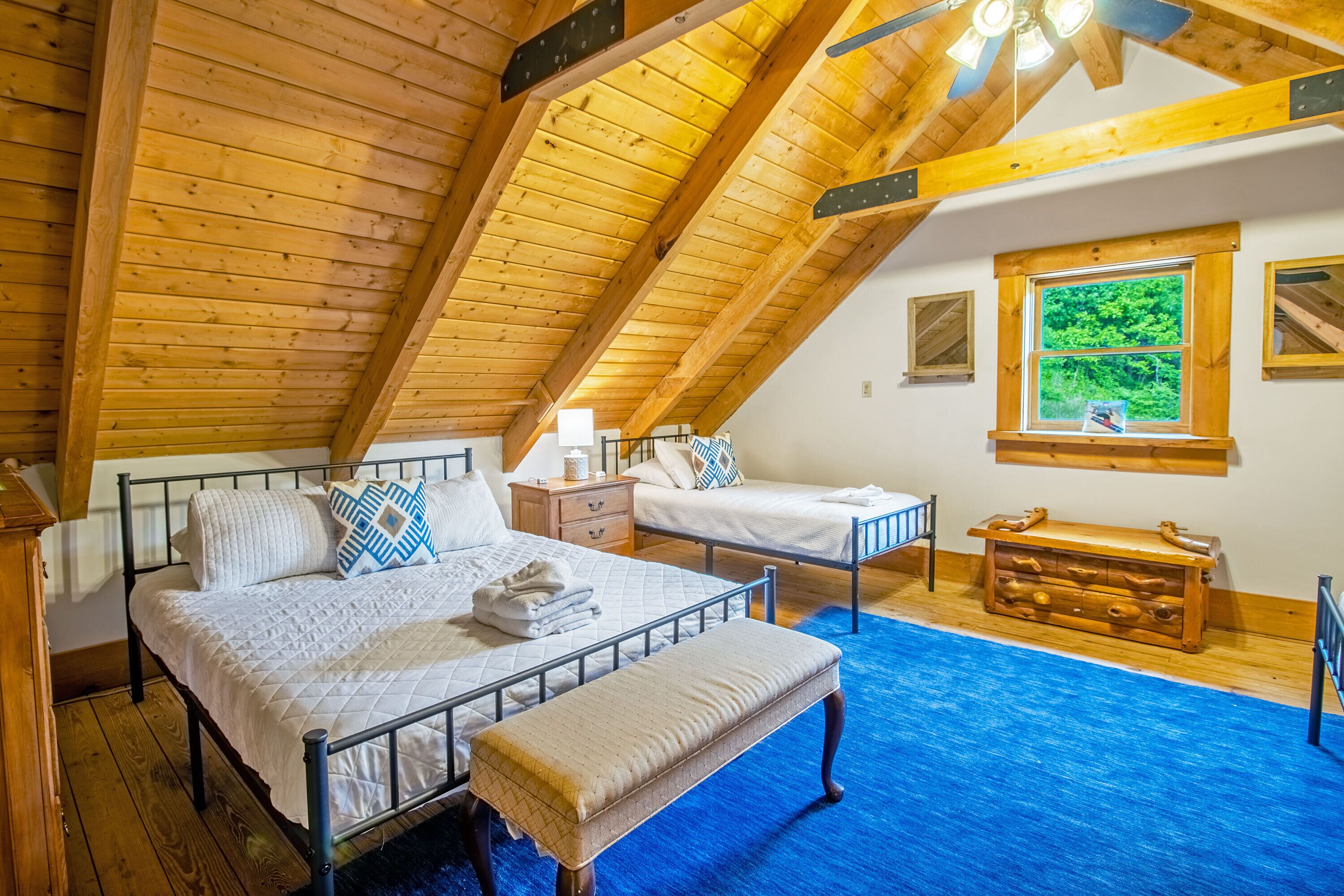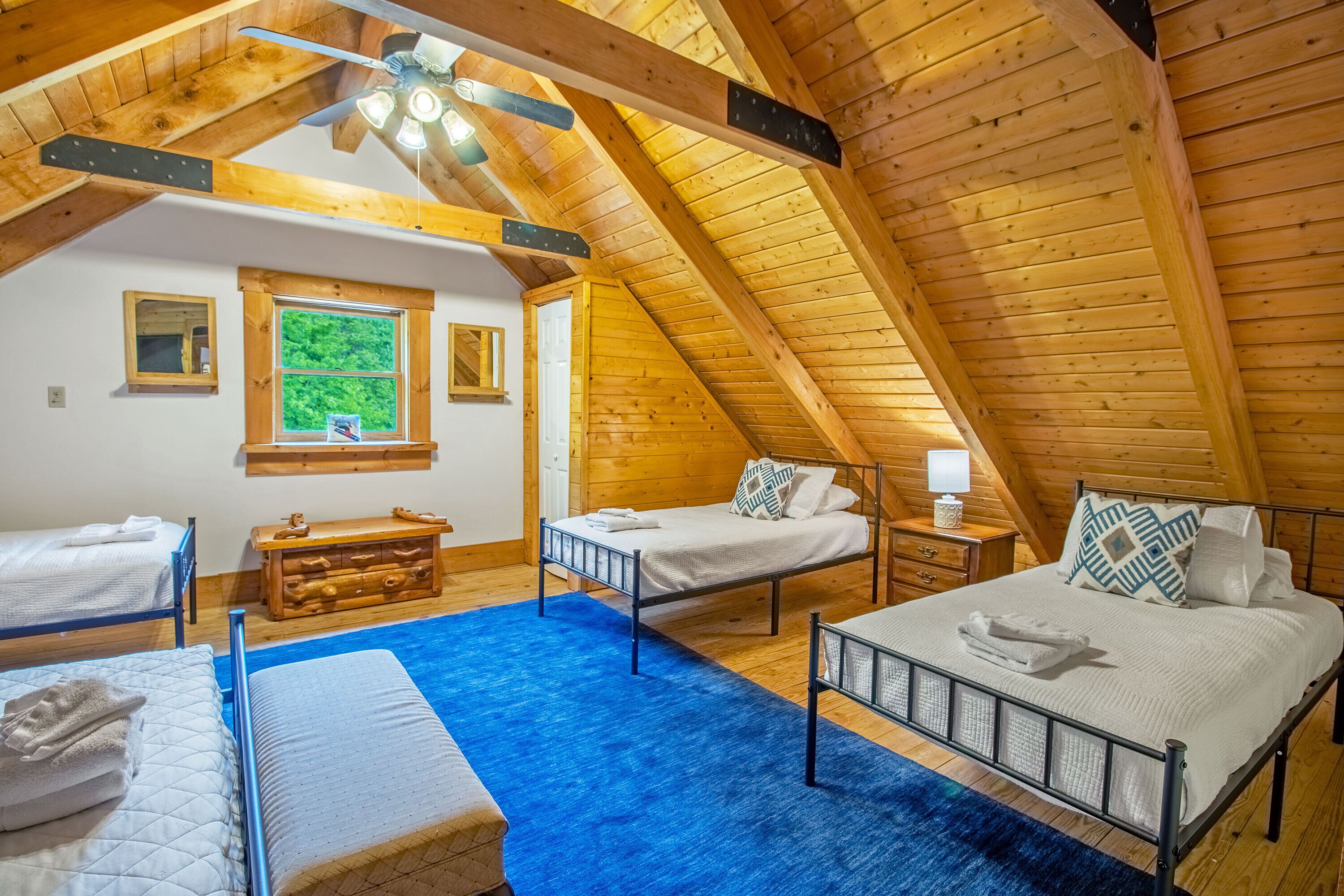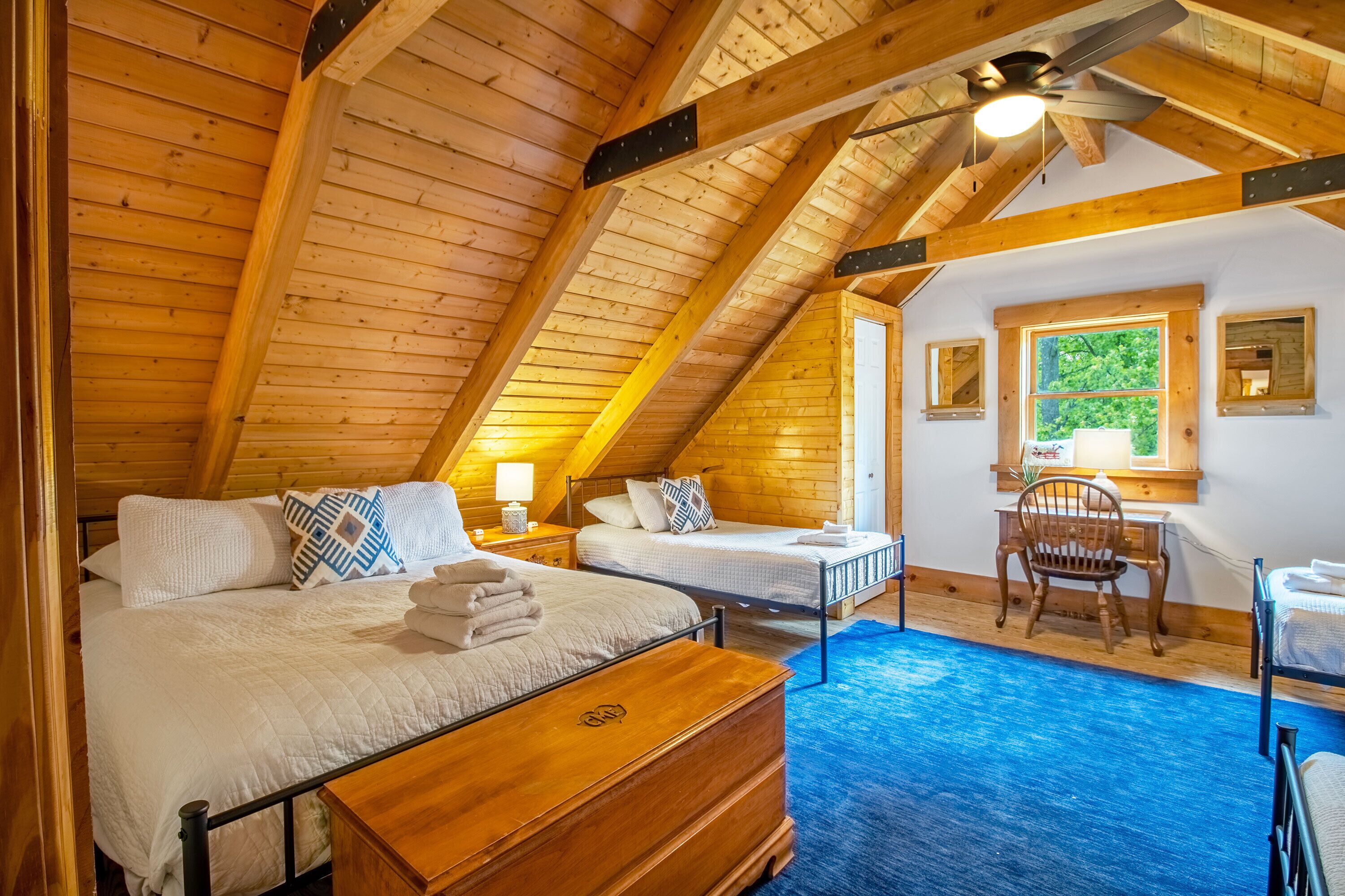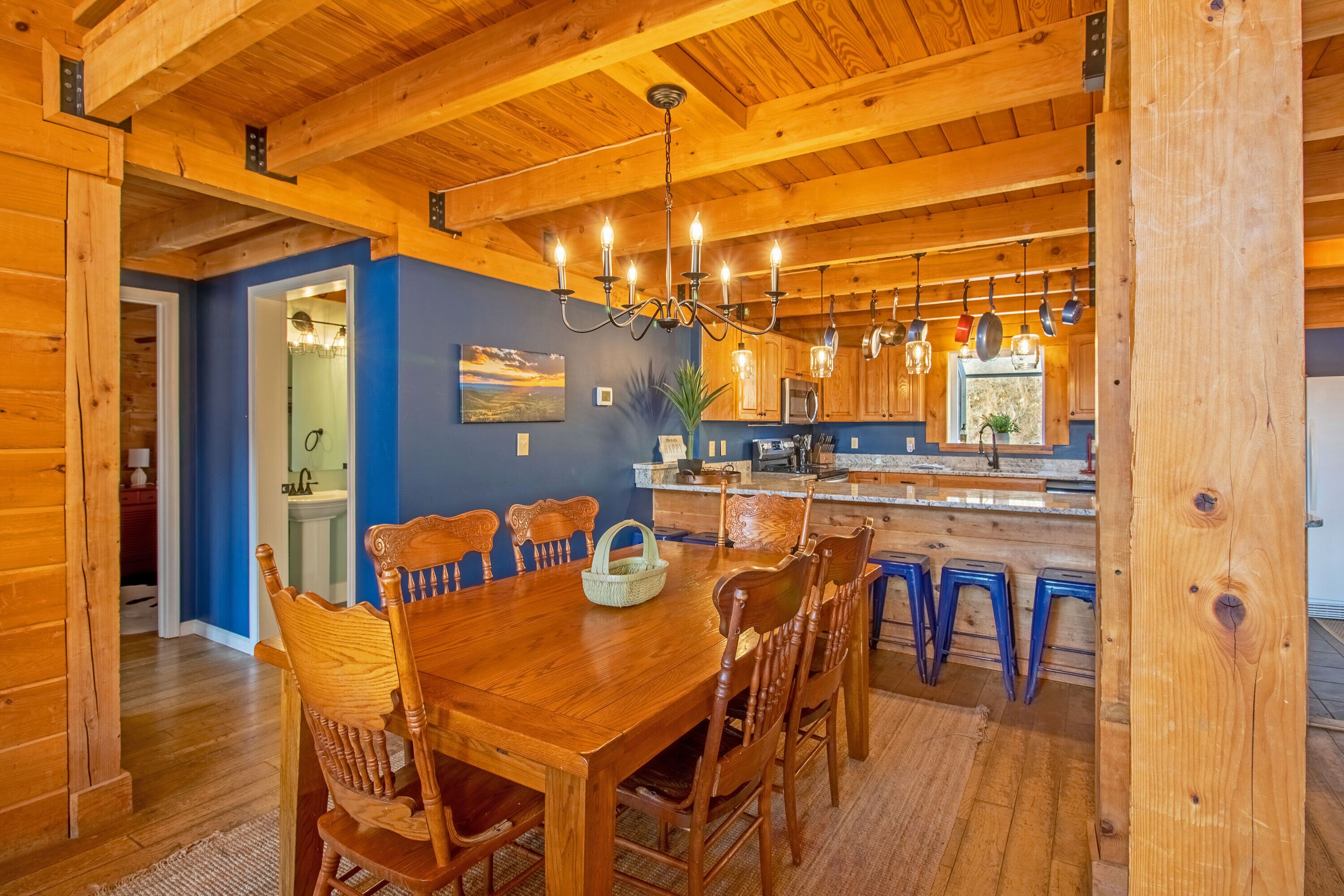 Hot Tub, Scenic Views, Pet Friendly! Peaceful seclusion awaits at Hensley Hollow Lodge! Located in Elkton, VA, this seven-bedroom, four-bathroom log home nestled on 5+ acres offers a truly unique Shenandoah Valley experience. Enjoy unobstructed views of the Blue Ridge Mountains, close proximity to local attractions, and exciting vacation house features that will keep you coming back time and time again.This vacation home sleeps up to 22 people and offers a unique layout with plenty of room to spread out.Four of the seven bedrooms include semi-private decks or patios, two of which also include private full bathrooms, and the two loft area bedrooms with partial walls provide a variety of queen and twin bed arrangements: a great option for the kids! A futon located in the game room and a sleeper sofa located in the loft area provides additional sleeping options. Guests will also enjoy conveniences like a fully equipped kitchen, a gas grill and Blackstone Griddle, a laundry room, gas fireplaces, and more! Although Hensley Hollow Lodge has a weak wifi signal which makes streaming difficult, there are plenty of local attractions to enjoy during your visit instead! Just 15 minutes from the Swift Run Gap entrance to Shenandoah National Park, Hensley Hollow Lodge is a great option for adventure enthusiasts looking to embark on a thrilling hike or scenic drive through the mountains.Interested in river adventures?Kayaks are provided for guests at no additional cost and can be used to float or fish the nearby Shenandoah River. The lodge is also near plenty of local dining and shopping options, unique breweries and wineries, and four-season attractions at Massanutten Resort. Hensley Hollow Lodge guests receive free access to Massanutten Resort's recreation centers which include amenities like indoor and outdoor pools, tennis and basketball courts, fitness centers, racquetball courts, and so much more! Escape to the mountains and enjoy a one-of-a-kind experience at Hensley Hollow Lodge!Click�HERE�to virtually navigate the road to Hensley Hollow Lodge!Check-In begins at 4pm�Your keyless entry code will begin granting access at this time.Check-Out is at 10am.*Hensley Hollow Lodge is a pet-friendly home. Dogs only please. Additional fees apply. *DART BOARD REMOVED 2023*IMPORTANT NOTE:�In order to maintain a flexible cancellation policy, guests may cancel up to 30 days prior to arrival to receive any type of refund. However,�administrative fees and insurances are non-refundable once a reservation is made.� Cancel For Any Reason and Standard Travel Insurance options are available for purchase through TripForth.� Contact us to learn more about protecting your reservation.DRIVEWAY NOTE:��The driveway leading to this property is on an incline, as this home is located within a mountainous region. We do advise each our of guest use caution when navigating entry into and from property. 4WD is not required to access the home during normal weather conditions.HighlightsRecently upgraded Wi-Fi at the lodge, Wi-Fi is via Starlink and has a strong signal.7 Bedrooms4 Full BathroomsGame RoomPrivate Hot TubFire PitSemi-Private Decks & PatiosScenic Mountain ViewsKeyless EntryGround LevelGame Room w/ FutonLaundry RoomExterior Access to Lower-Level Patio1 King Bedroom w/ Twin Over Twin Bunk Bed & Private Full Bathroom1 King Bedroom1 Full BathroomEntry LevelFull KitchenDining AreaLiving Room w/ FireplaceMid-Level Deck1 Queen Bedroom1 King Bedroom w/ Private Full Bathroom1 King Bedroom1 Full BathroomTop Level LoftSitting Area w/ Sleeper Sofa2 Bedrooms w/ Partial WallsFirst Bedroom w/ 1 Queen Bed & 3 Twin Single BedsSecond Bedroom w/ 1 Queen Bed & 3 Twin Single BedsOutdoor8-Person Hot TubFire PitGas GrillBlackstone GriddleScenic Mountain ViewsKayaks ProvidedDog Kennel