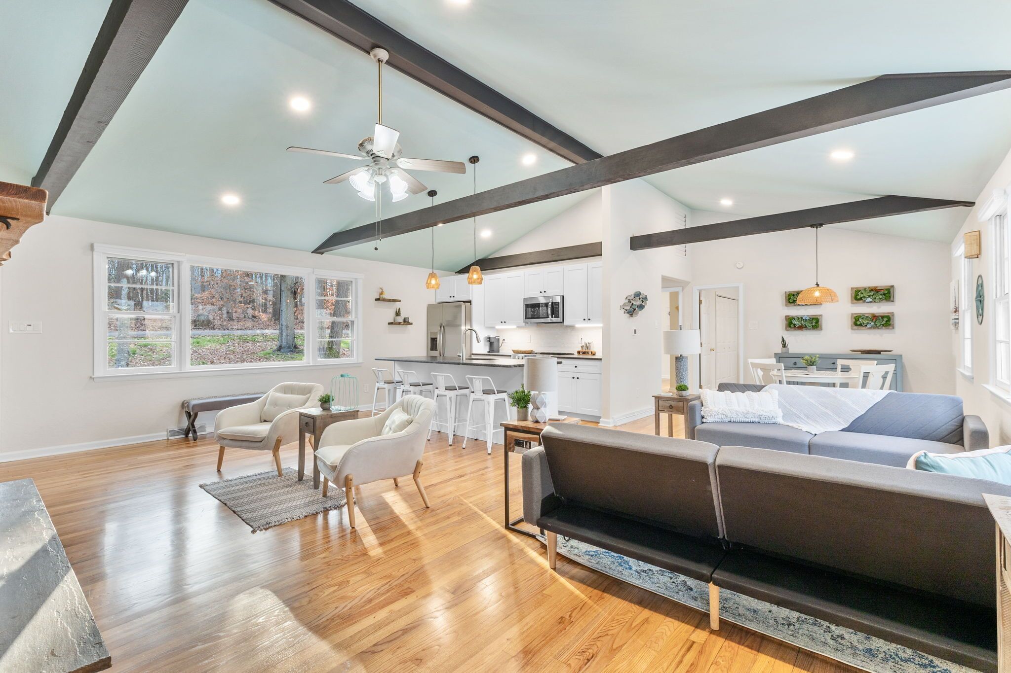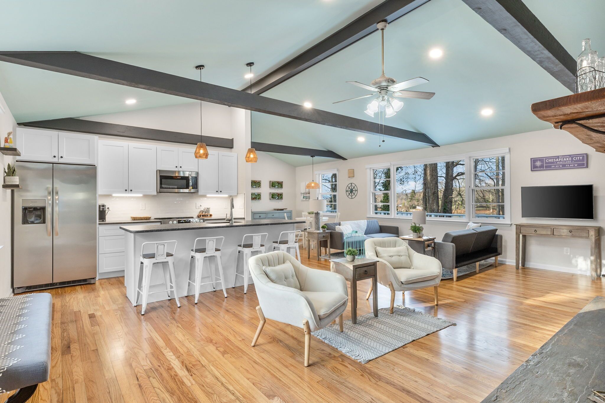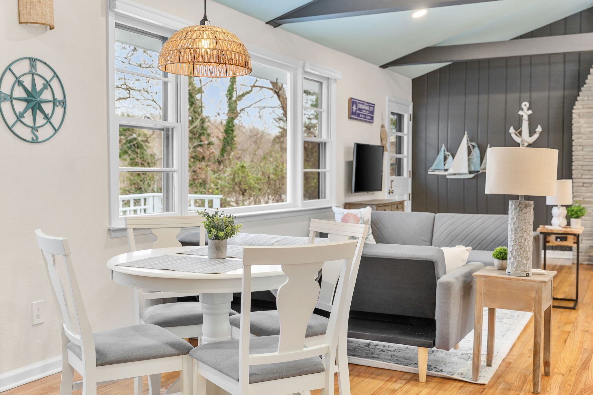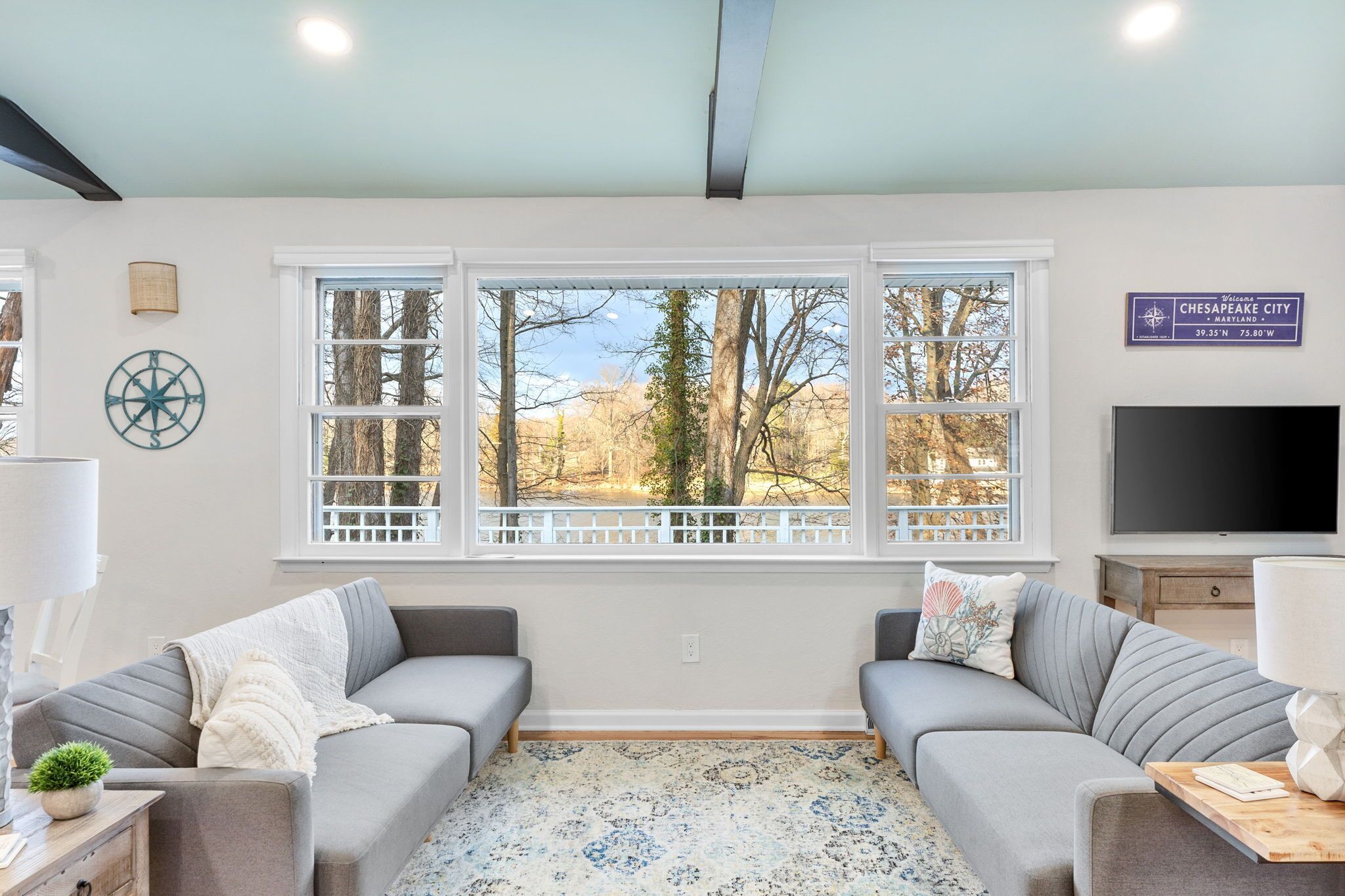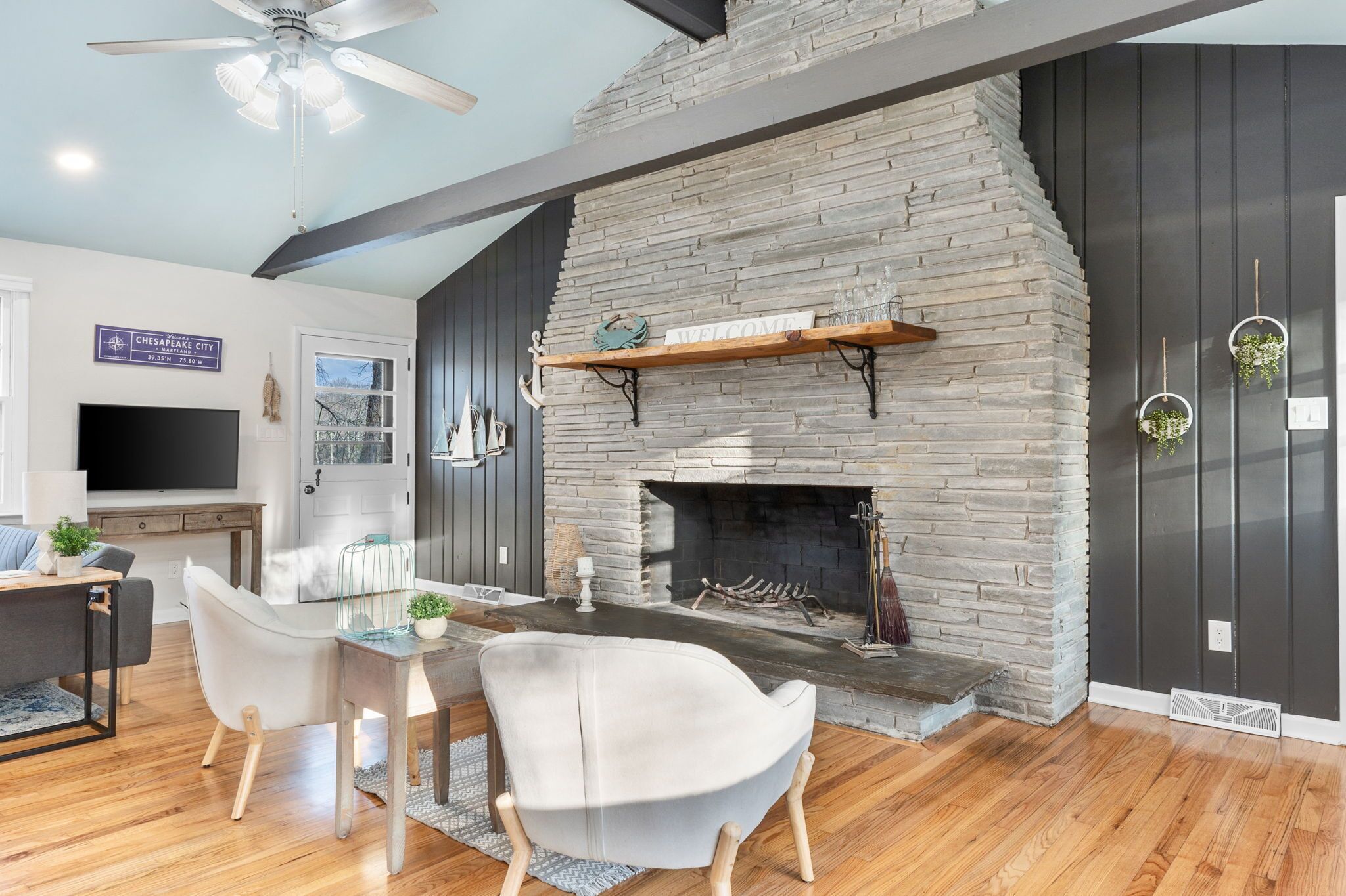 Chesapeake Romantic Waterfront Home with Private Pool Welcome to our beautiful getaway located on the water in a peaceful wooded setting. Our home is situated on over an acre of land, offering plenty of privacy and serene natural surroundings. Inside, you'll find a spacious and inviting open floor plan, with hardwood floors and stylish décor. Outside, you'll find a private oasis, with a large deck overlooking the water and a sparkling pool. There are plenty of outdoor activities to enjoy, from swimming and fishing in the water to hiking and exploring the woods. Our home has been totally renovated and is well-maintained, so you can be sure that you'll have a comfortable and enjoyable stay. We look forward to welcoming you! 10 Minutes from Chesapeake Inn!