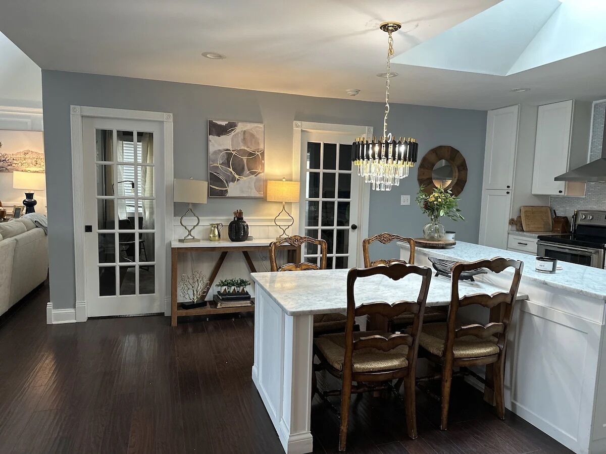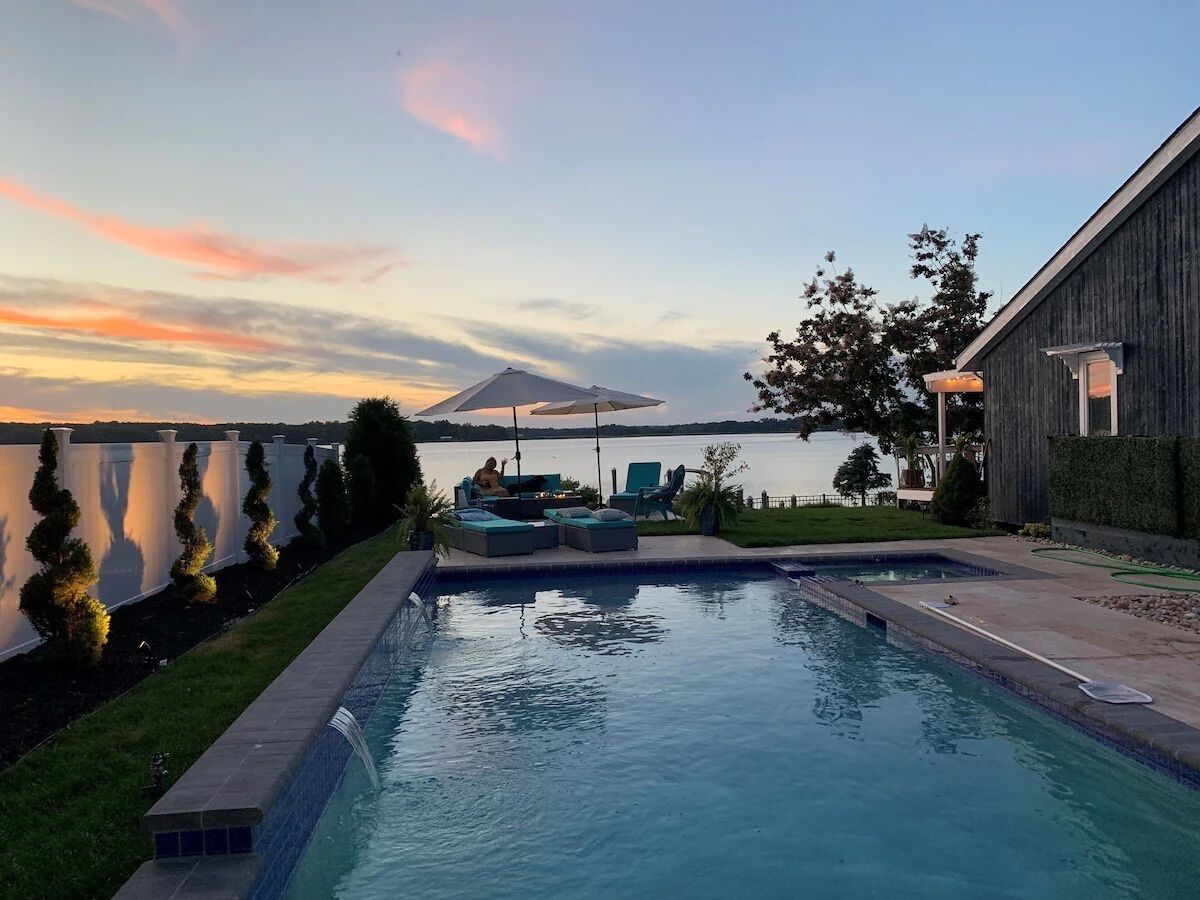 Breathtaking waterfront property w/private pool/ dock Fall dates still available This amazing 4- bedroom, 2- bathroom water front home offers the perfect retreat.Three bedrooms are offered on the main level, with the fourth bedroom on the lower level. Both bathrooms are situated on the main floor. The private property features a fixed boat dock and a floating dock allowing you to easily bring your boat (up to 21 feet), jet ski or fishing gear (with appropriate license). Enjoy a variety of water sports, including the provided kayaks (5) and paddle boards (2), or simply relax on the peaceful deck that spans the back of the home.This is a waterfront property with a pool children must be supervised at all times.If you're looking for a party or larger gathering this home in NOT for you.Property Features:-Grill Seasonal Pool mid May - Sept (saltwater) + Jacuzzi surrounded by Ivory Travertine pavers. Pool is closed Oct - mid. May-Work stations in small private office/wine room, and in one of the bedrooms-Fully equipped gourmet kitchen-Seated fire-pit area overlooking the water-Peaceful, private, Zen-like interior/exterior is sure to refresh and renew you-Cameras on the front & back doors as well as the peer for your security as well as ours (No cameras in the house)Situated on the water just minutes from the Chesapeake Bay, this home offers stunning views and abundant wildlife. Renters can savor a cup of coffee or glass of wine as they take in the scenery and watch water skiers glide by. The fenced yard features an in-ground pool, two patios, umbrellas, and a fire pit, providing ample space for outdoor relaxation and entertainment.This stunning home features an open floor plan with a gourmet kitchen boasting a large island and marble countertops. Enjoy breathtaking water views from the living area, kitchen, and master bedroom. The luxurious master bathroom showcases custom marble and glass finishes. Downstairs, there is a fully furnished recreation area with space for a pool table, games, movie watching, and an additional bedroom. The fenced waterfront lawn provides added safety for children and pets. One dog is permitted with an additional fee.Situated near the charming town of Chesapeake City, this home is just minutes away from fantastic indoor and outdoor dining options, accessible by boat or car.*The saltwater pool and Jacuzzi pool is seasonal. We do not heat it during the winter, but will consider doing so in the spring/summer months for a fee.Summer months June, (last 2 weeks) July and August rentals run Friday to Friday. Beds:Bedroom 1 Master - King BedBedroom 2 - King BedBedroom 3 - Queen BedBedroom 4 - Queen bed (finished basement downstairs)Baths:Bathroom 1 - Full main level, no tubBathroom 2- Full main level, no tubSituated on the waterfront, this vacation home is within 6 mi (10 km) of Elkton Golf and Batting Center, Union Hospital, and Historical Society of Cecil County. West Meadow Park and Elkton Indoor Tennis are also within 6 mi (10 km).Historical Society of Cecil County and Cooch's Bridge are local landmarks, and the area's natural beauty can be seen at White Clay Creek State Park and Elk Neck State Park. Looking to enjoy an event or a game while in town? See what's happening at New Castle 100 Archers or Bob Carpenter Center. Be sure to check out the area's animals with activities such as game walks and birdwatching.What's nearbyUnion Hospital - 11 min driveElkton Indoor Tennis - 12 min driveHistorical Society of Cecil County - 12 min driveCow Pond - 12 min driveC and D Canal Museum - 13 min driveGetting aroundNewark Station - 23 min driveBaltimore Washington Intl. Airport (BWI) - 77 min driveRestaurantsMcDonald's - 10 min driveChipotle Mexican Grill - 11 min driveElk River Brewing Company - 11 min driveDunkin' - 10 min driveChesapeake Inn Restaurant & Marina - 12 min drive