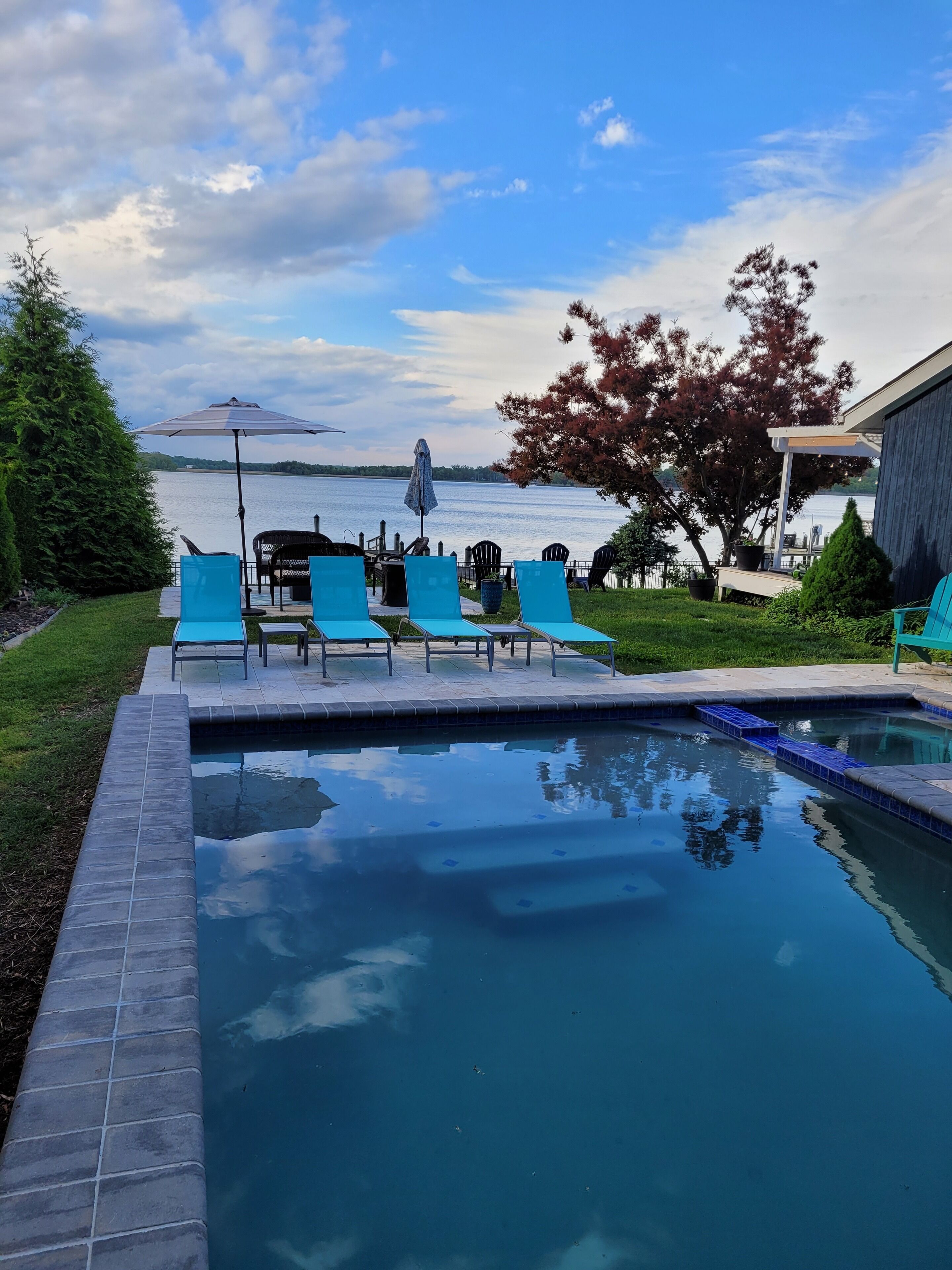 Breathtaking waterfront property w/private pool/ dock Fall dates still available This amazing 4- bedroom, 2- bathroom water front home offers the perfect retreat.Three bedrooms are offered on the main level, with the fourth bedroom on the lower level. Both bathrooms are situated on the main floor. The private property features a fixed boat dock and a floating dock allowing you to easily bring your...
