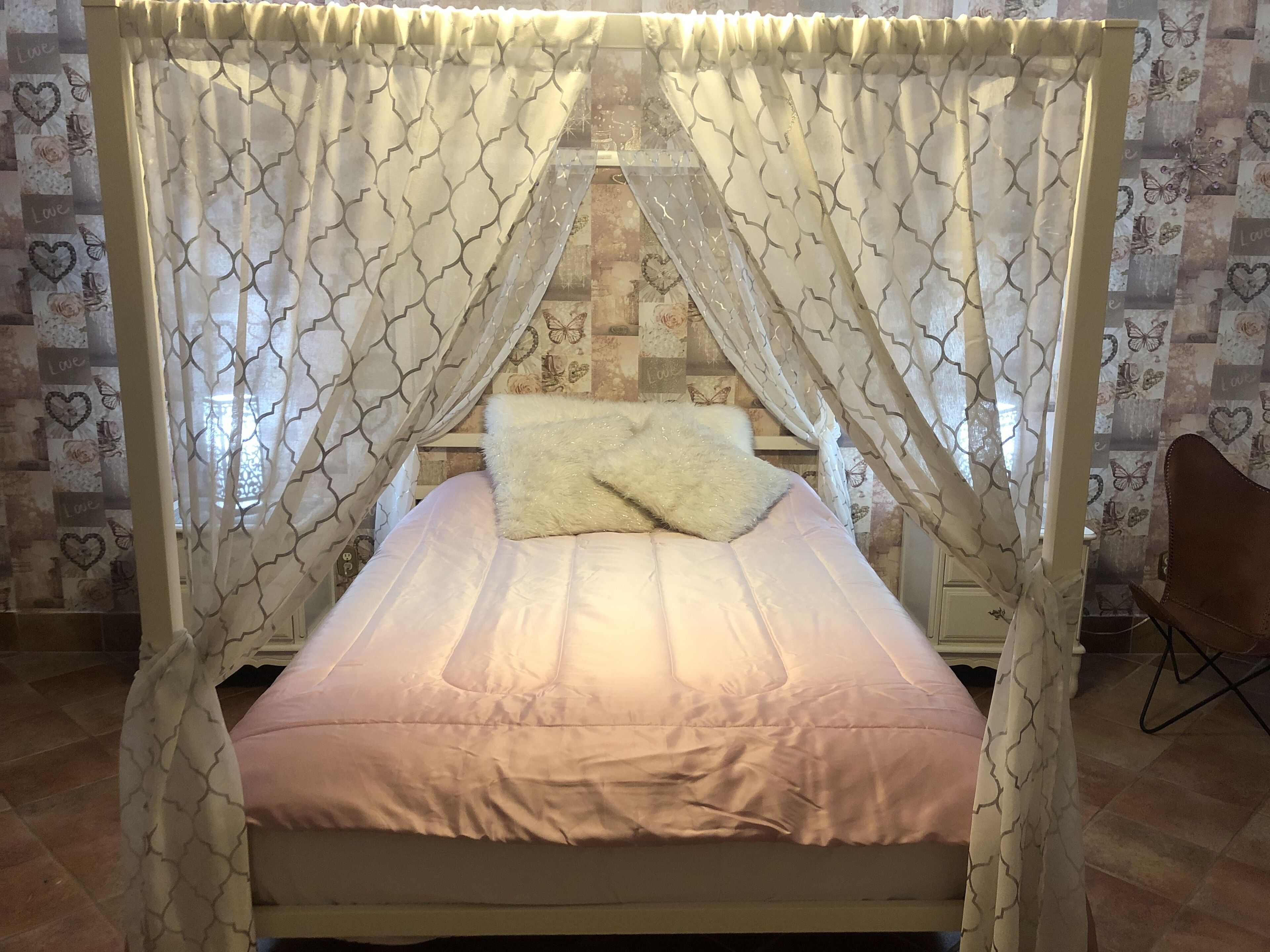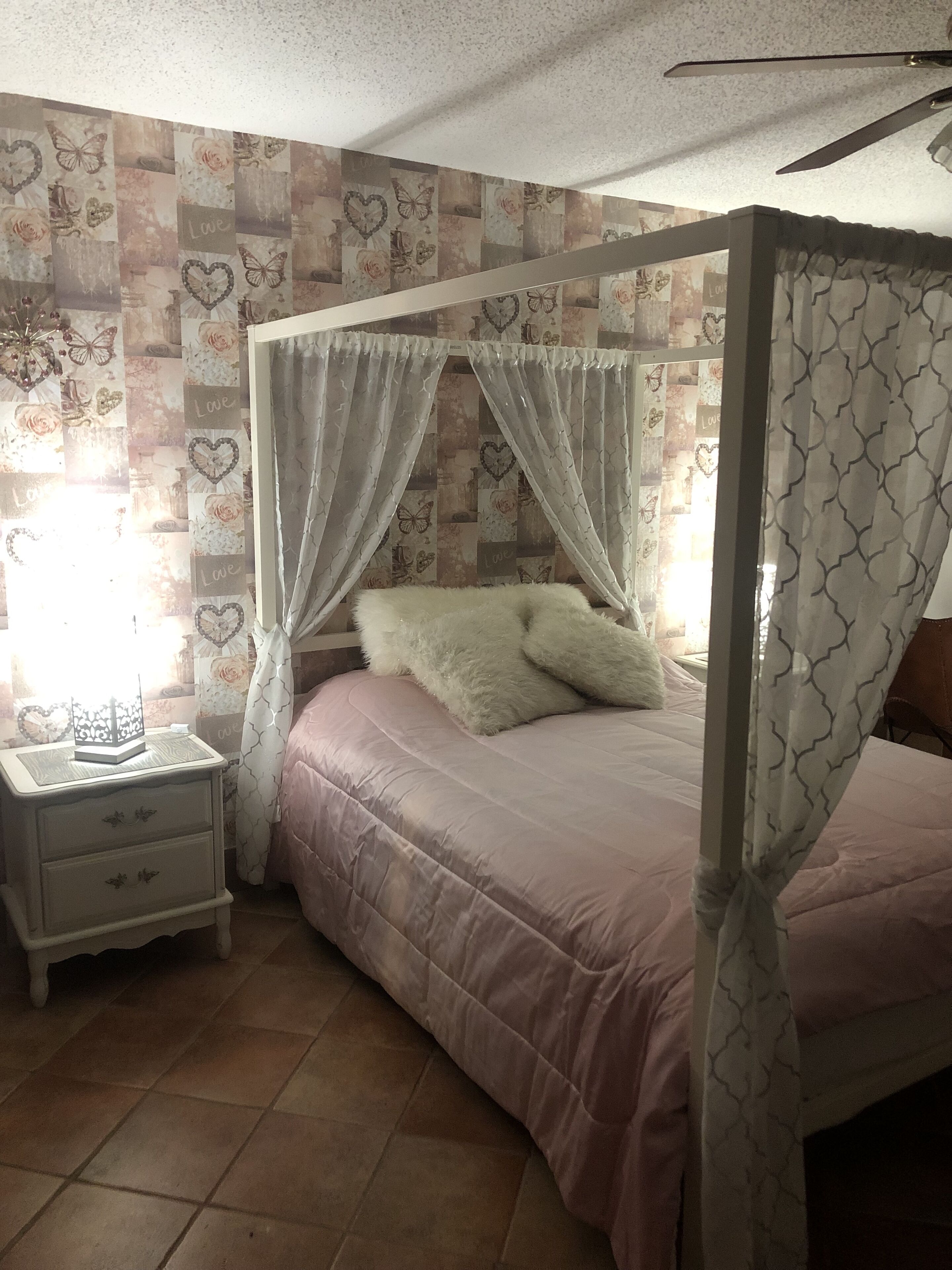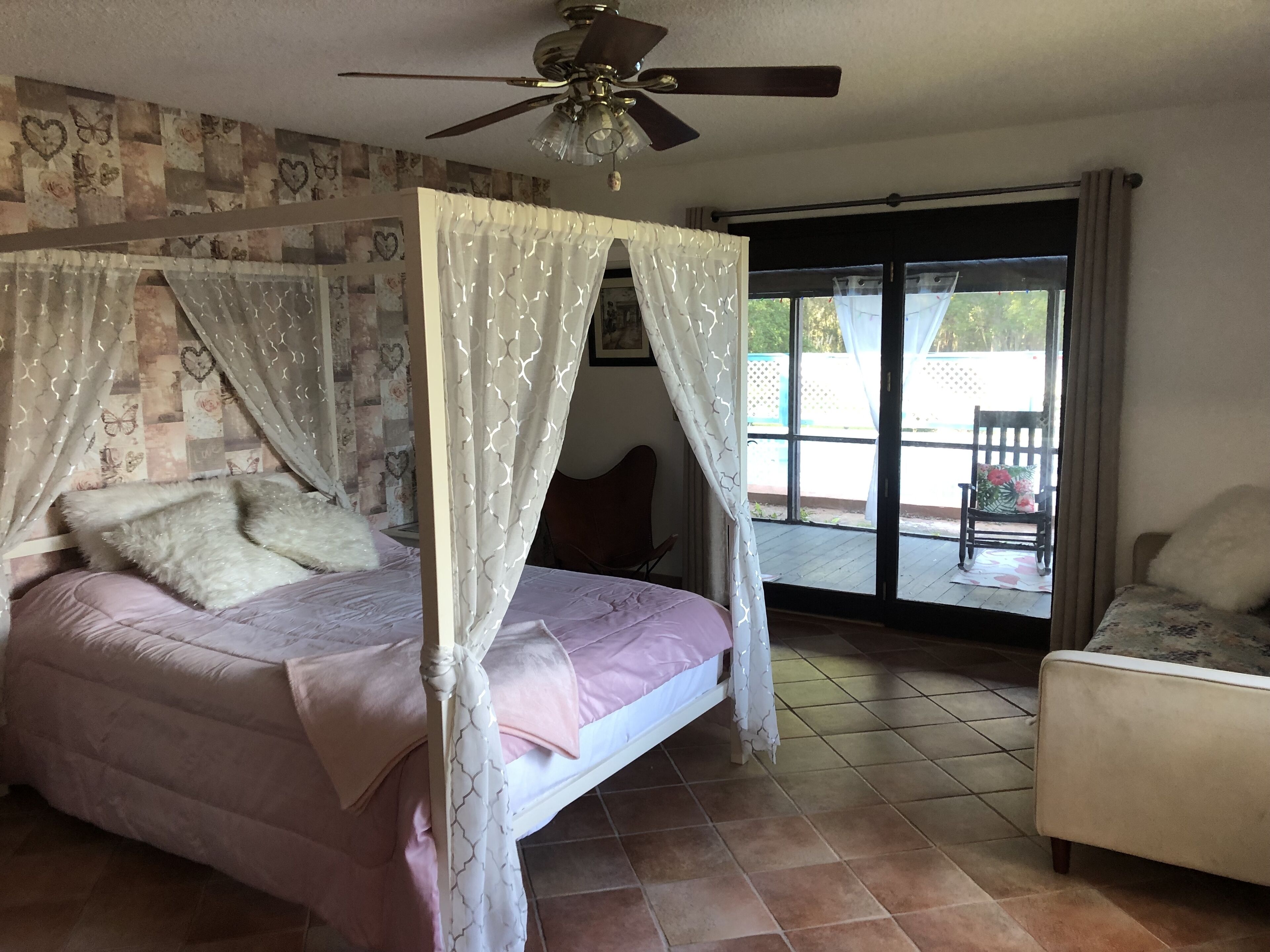 St. Augustine 4 bed/2 bath sleeps 8, pool. Great for families and nature lovers. This tastefully decorated house has all you need for a comfortable, private stay while visiting St. Augustine. Kayla Place sits on a 13-acre equestrian property, Enchanted Horse Acres, a magical place for nature lovers. Beautiful and quiet country setting only 20 minutes from the hustle and bustle of historic St. Augustine and the white sands of Crescent Beach.This is an ideal location between Orlando and Jacksonville with easy access to the freeway, only 45 minutes to Daytona Beach.Kayla Place is 2,000 sf. It includes a large romantic suite with a canopy bed and a private renovated spa-like bathroom, and three additional bedrooms with a queen size bed, two single beds, and a twin size daybed with a twin trundle. A small children bed may also be available upon request.Large kitchen with full size fridge/freezer, coffee maker, gas stove, oven, microwave, dishwasher. A BBQ is also available. No washer/drier.After a day visiting St. Augustine and the surrounding areas, relax on the screened porch or dip in the pool. Please note there are three vacation rentals on property and the pool is shared between them. Pool towels and toys are provided.We are fortunate to be adjacent to the River-to-Sea bike loop, part of Florida's 300-mile rails to trails cycling loop. Feel free to borrow a bike and ride the six-mile paved path though the beauty of "Old Florida."
