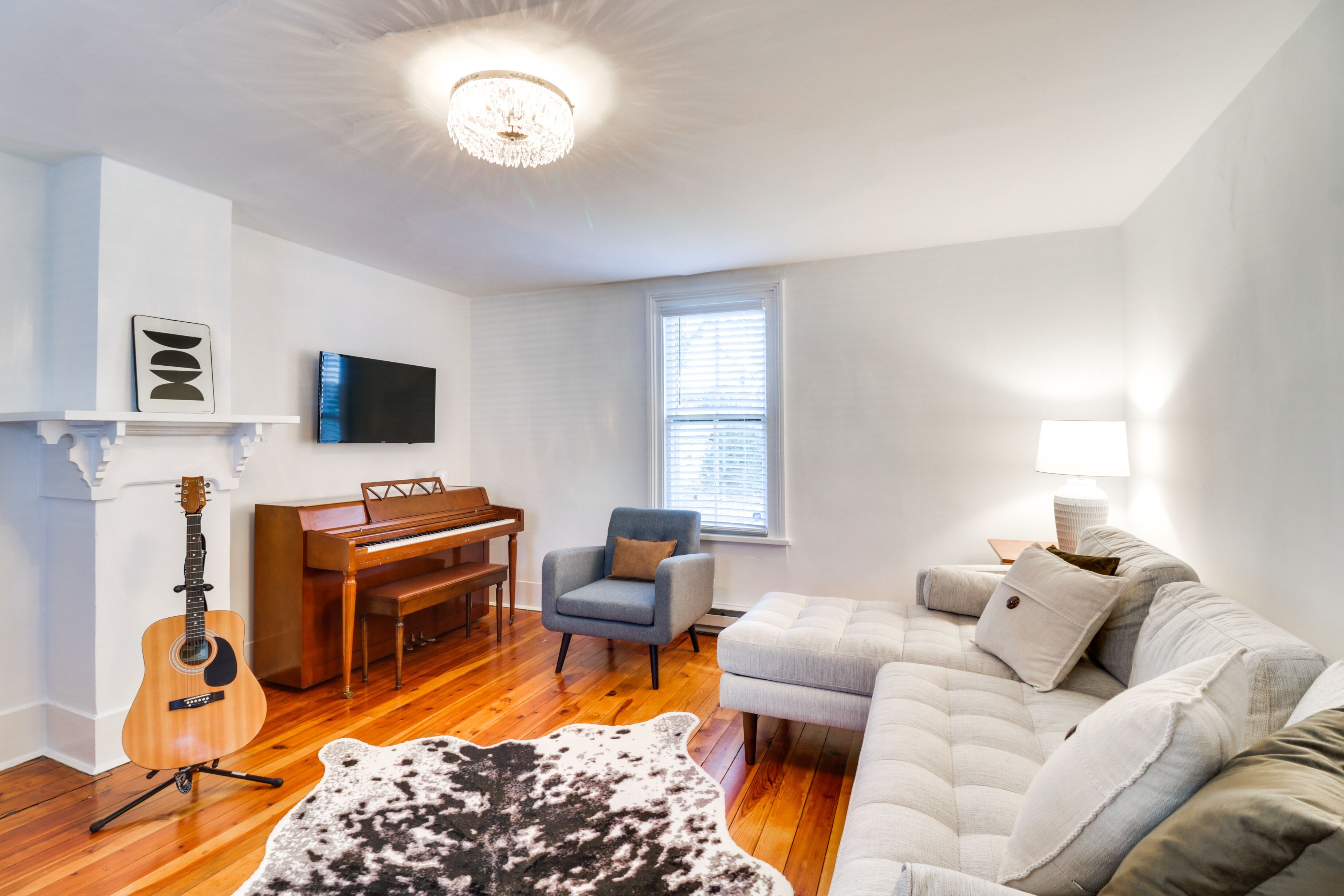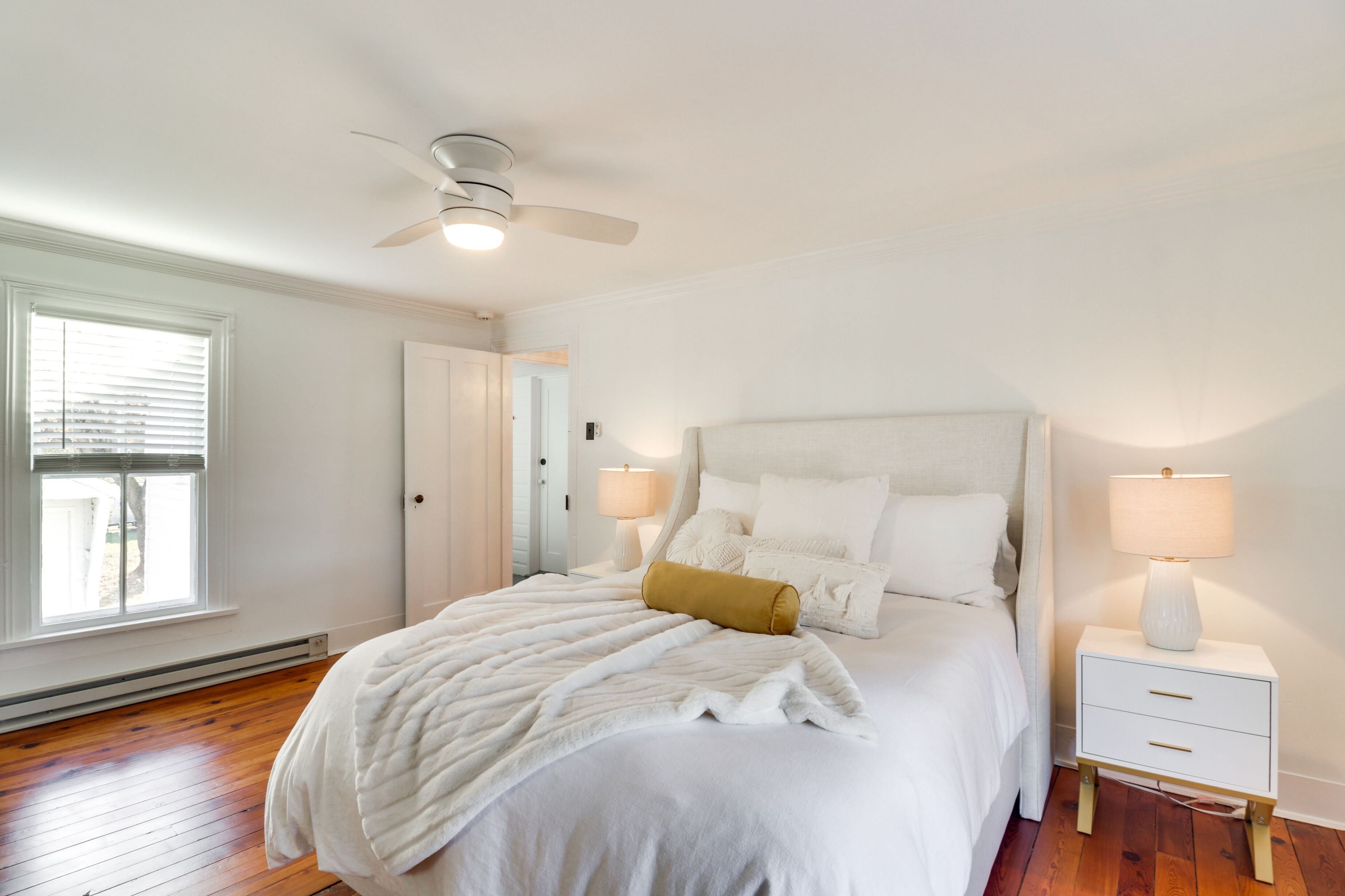 Quiet Farmhouse on 77 Acres Near Shenandoah River! Find peace in the countryside of Elkton and book a getaway to this charming 2-bedroom, 1-bathroom vacation rental. The quaint farmhouse, nestled on 77 acres, boasts panoramic views of the surrounding mountains and greenery. Step outside for a barbeque or chat around the fire pit, and cherish time with your favorite people. With Shenandoah National Park just a short drive away, there are limitless opportunities for fun outdoors. Top off your stay and tour the area's vineyards!-- THE PROPERTY --Naked Creek On-Site | Fire Pit w/ Seating | ~12 Mi to Massanutten Resort | Vintage Claw Foot BathtubBedroom 1: Queen Bed | Bedroom 2: Queen Bed | Sunroom: Twin BedMAIN FEATURES: Private land w/ mountain views, gas grill (propane provided), piano, guitar, 2 Smart TVs, enclosed porch (access via kitchen), ceiling fans in bedrooms, board games, antique mahogany decor, hardwood floorsKITCHEN: Stove/oven, refrigerator, cooking basics, Keurig coffee maker, toaster, hot water kettle, dishware + flatware, water filter, garbage disposal, trash bags + paper towels, organic coffee, tea + snacksGENERAL: Free WiFi, window A/C units, electric heat, washer + dryer, linens/towels, complimentary toiletries/shampoo, hair dryer, hangers, iron/boardFAQ: Stairs required for access, 4 exterior security cameras (facing out), limited cell service/WiFi, working farmPARKING: Gravel parking area (4 vehicles), RV/trailer parking allowed on-site-- THE LOCATION --AREA HIGHLIGHTS: Massanutten Indoor WaterPark (11 miles), Massanutten Resort (12 miles), Shenandoah Heritage Village (20 miles), James Madison University (21 miles)THE GREAT OUTDOORS: Shenandoah River Adventures L.L.C. (4 miles), Shenandoah National Park (11 miles), Lake Shenandoah (19 miles), Luray Caverns (21 miles), Grand Caverns (22 miles), Purcell Park (22 miles), Hillandale Park (24 miles)LOCAL LIBATIONS: Elkton Brewing Company (5 miles), BrewHaha Brewing Company (10 miles), Brix & Columns Vineyards (12 miles), Cave Hill Brewery (12 miles) AIRPORTS: Shenandoah Valley Airport (26 miles), Charlottesville–Albemarle Airport (33 miles), Washington Dulles International Airport (100 miles)-- REST EASY WITH US --Evolve makes it easy to find and book properties you’ll never want to leave. You can relax knowing that our properties will always be ready for you and that we’ll answer the phone 24/7. Even better, if anything is off about your stay, we’ll make it right. You can count on our homes and our people to make you feel welcome--because we know what vacation means to you.-- POLICIES --- No smoking- No pets allowed- No events, parties, or large gatherings- Must be at least 25 years old to book- Additional fees and taxes may apply- Photo ID may be required upon check-in- NOTE: The property requires stairs to access- NOTE: The property does have cell phone service and WiFi, but service may be spotty since the property is located in a rural area. Please check with your provider to confirm your service quality- NOTE: Please note that this property is located on a working farm, so there may be workers present during your stay- NOTE: Your safety matters. This property features 4 exterior security cameras. There are cameras located under the gutters on each of the 4 corners of the home, facing the entrances and driveway. The cameras are outward facing and do not look into interior spaces. The back camera records video and sound when activated by motion. It will record when it first senses motion and 30 seconds after the last motion is detected. The remaining 3 cameras do not actively record sound or video while guests are in residence