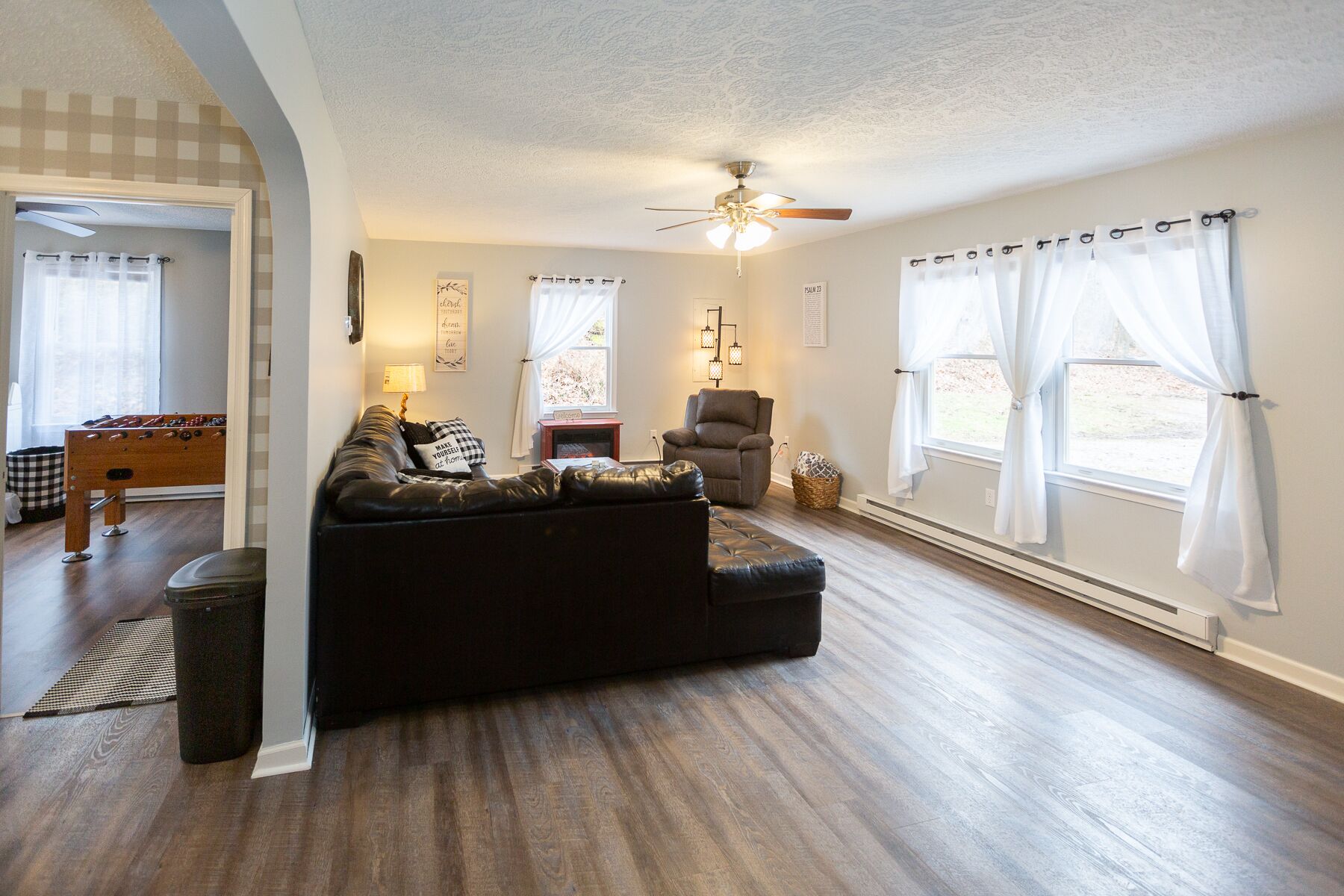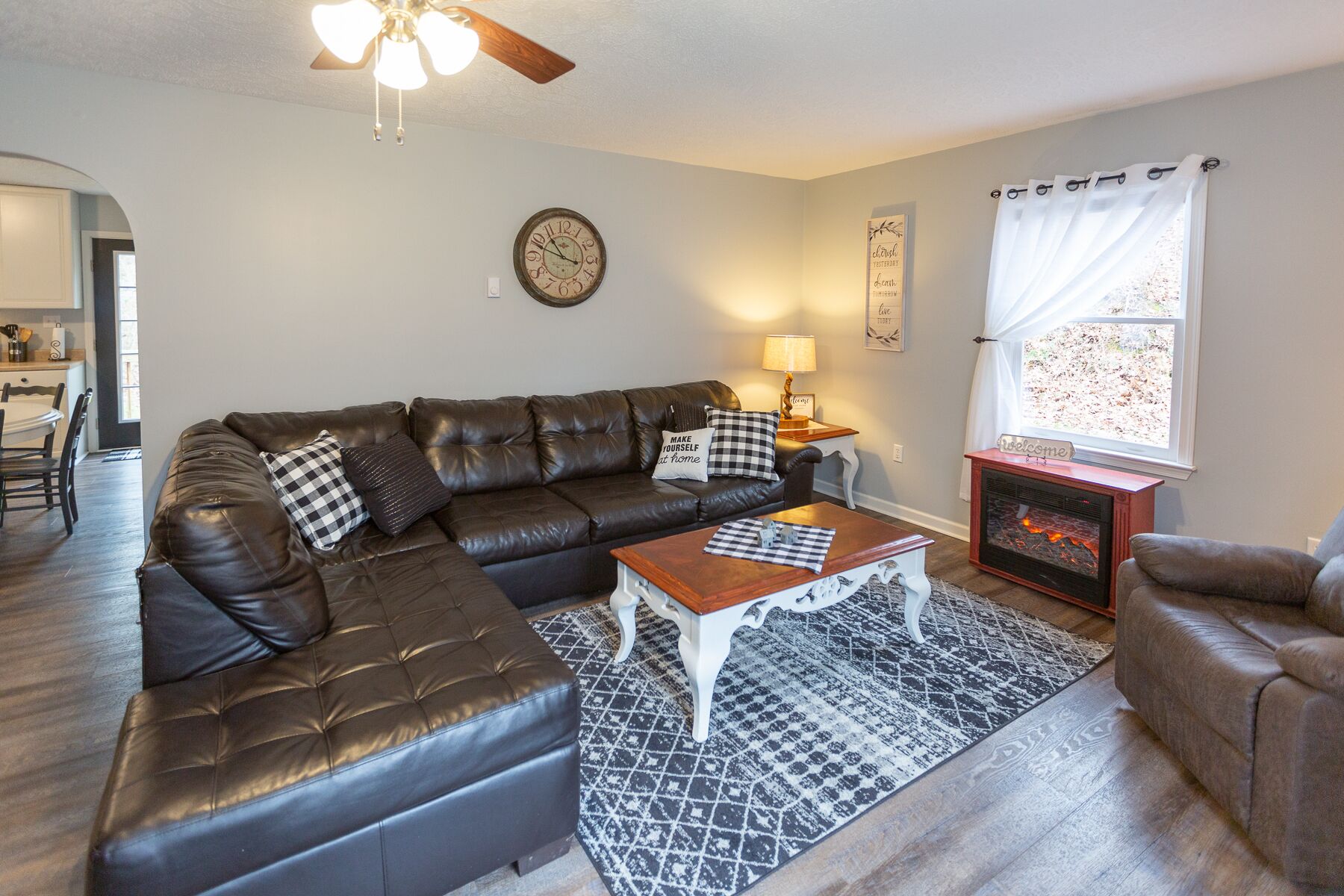 Hillside Hideaway.Quiet, clean, Hot tub. hidden gem, Skyline Park & Massanutten. A cozy and secluded cottage getaway... perfect for the smaller group or family. Hidden away in the trees, it gives you a quiet, private setting to sit outside by the fire, throw those steaks on the grill, or play yard games, or enjoy relaxing in the hot tub! Inside... brew a pot or french press of coffee and relax in the spacious living room, play games, and just enjoy the family together & get away from the TV… (a projector and wifi are supplied) Everything is sparkling clean and beds are comfy. The master bedroom has a Sleep Number bed that you can adjust to however firm or soft you like! There's a few books, games, & toys , foosball table & corn toss game for enjoying your time together. Its only 7.8 miles from the Massanutten ski resort! 5 miles from Merck & Co. So come relax and enjoy your quiet woodland setting away from the hustle an bustle, but just minutes away from the resort, skyline drive and hiking, the caverns, & university.