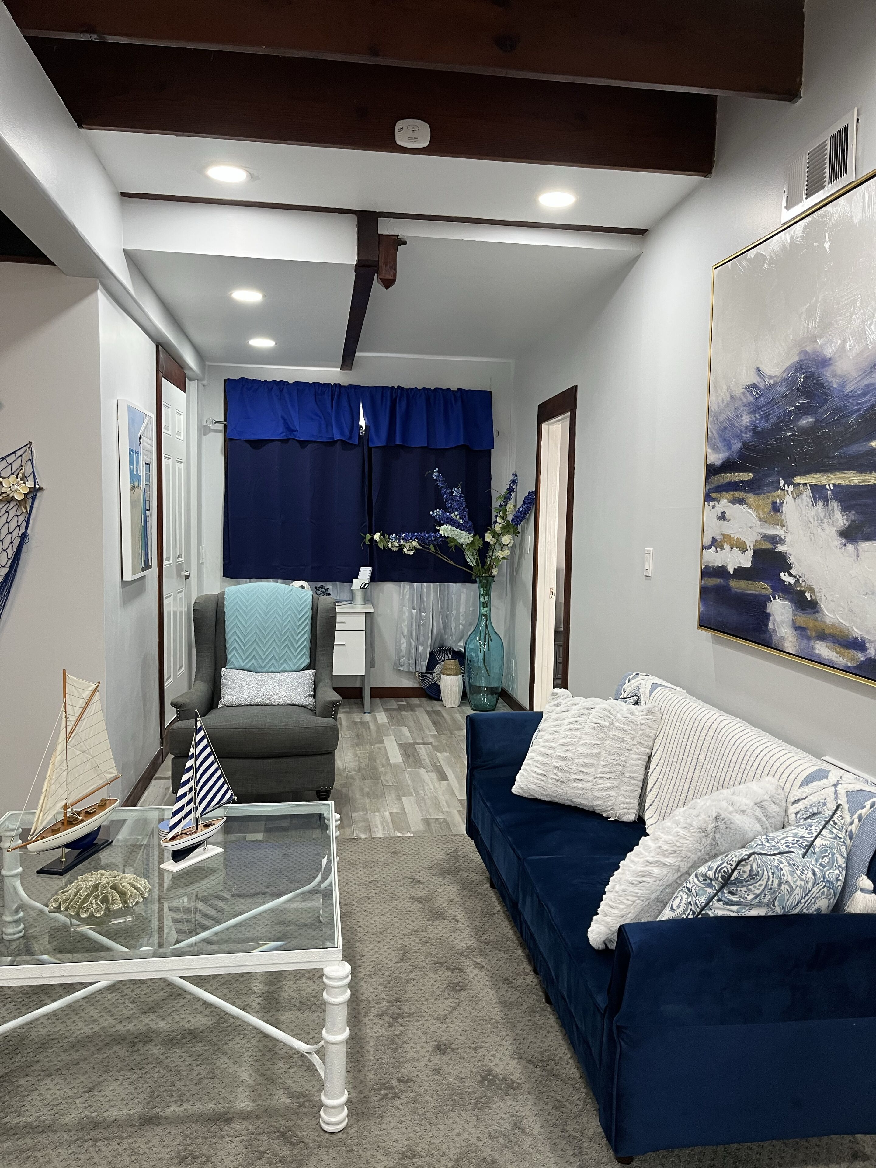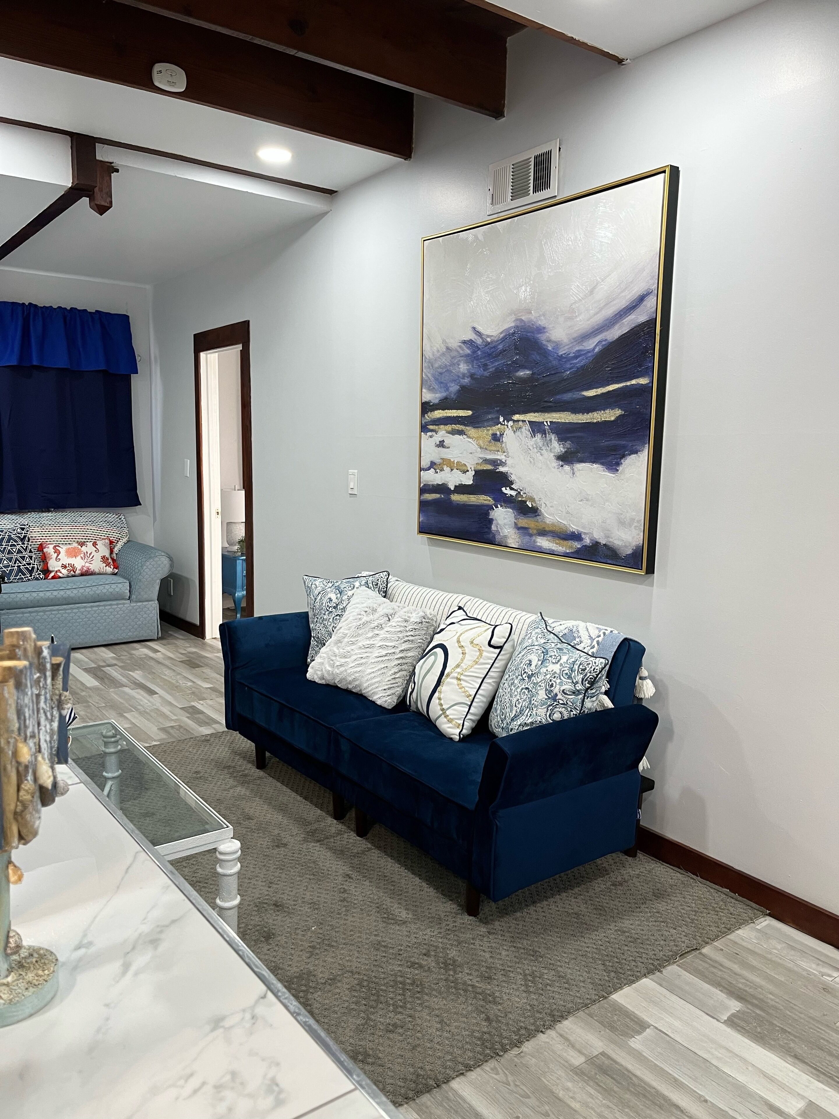 Seabreeze in the Valley/spacious 822 sq.ft. Spacious 822 sq. ft. is yours!...for that leisure and quiet time you've been looking forward to. Forget your worries in this vibrant blue space, beach/ocean-inspired first floor apartment. Airy space with waves of blues, turquoise & ocean foam decor will refresh and recharge. You've got to see it. You just might fall in love. Centrally located for travel...