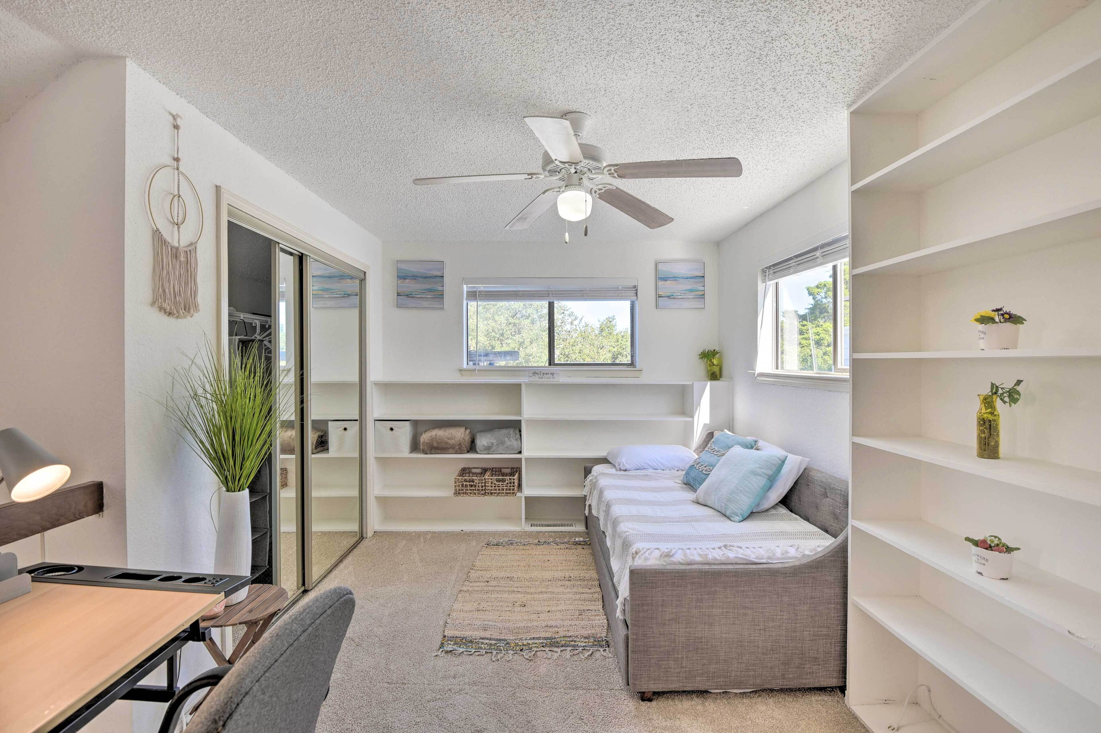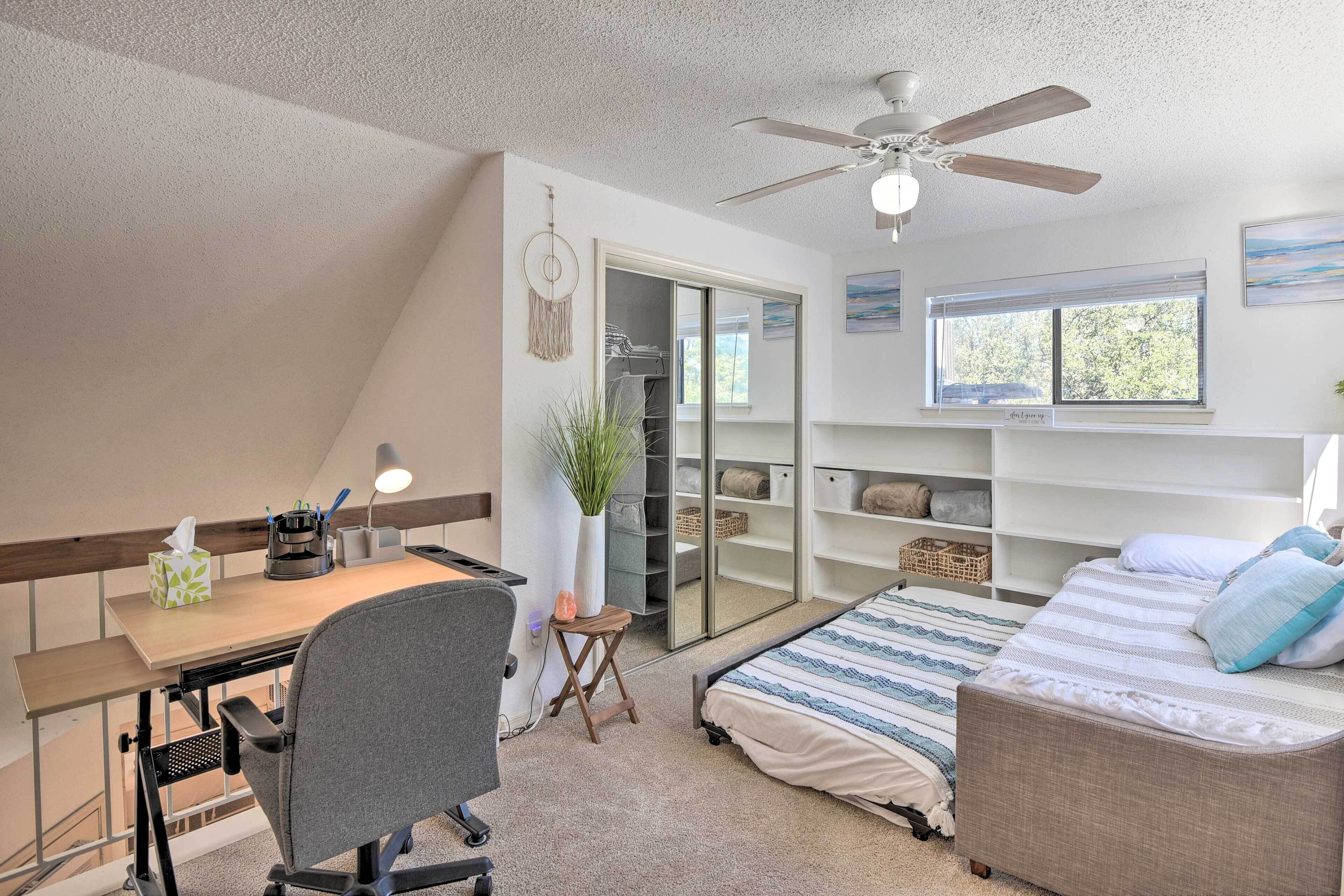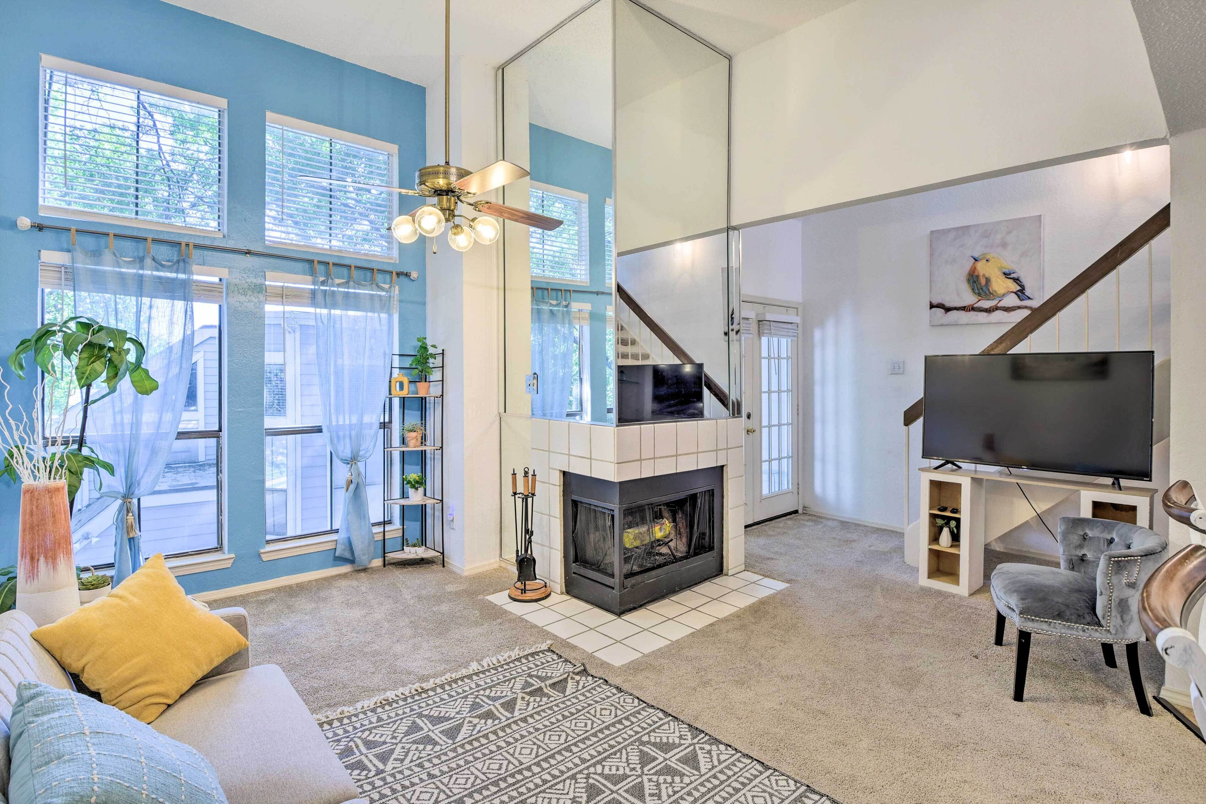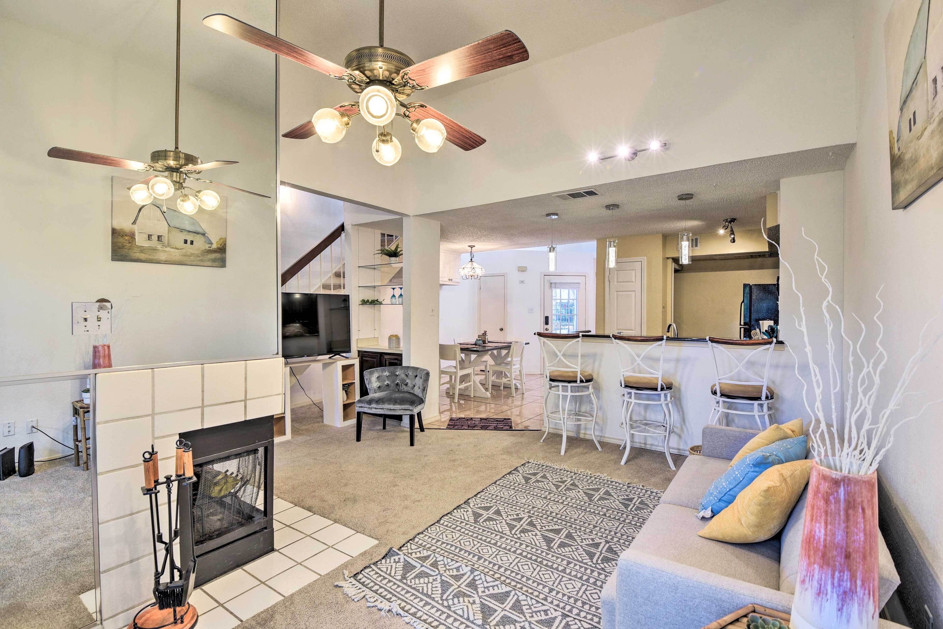 Cozy Irving Condo 15 Mi to Downtown Dallas! Breathe a sigh of relief when you arrive at this 1-bedroom + loft, 1-bath Irving condo. Situated between Dallas and Fort Worth, this vibrant, cozy vacation rental offers the ideal home base for small families or crews to get in on all the fun while retreating to quiet quarters. After a day of catching a Cowboys game, perusing the Dallas Arts District, or seeing all the sights and stops right in Irving, return to a fully equipped kitchen, 2 Smart TVs, a fireplace, a work/study space, and more!-- THE PROPERTY --Central A/C | Gas Fireplace | Private Balcony Bedroom Suite: Queen Bed | Loft: Twin Daybed w/ Twin Trundle | Living Room: Twin Sleeper SofaCONDO HIGHLIGHTS: 2 Smart TVs, dining table & bar, desk workspace, shower/tub combo (w/ jetted tub)KITCHEN: Stove/oven, refrigerator, dishwasher, microwave, Keurig coffee maker, blender, toaster, cooking basics & spices, dishware/flatware, coffee/teaGENERAL: Free WiFi, electric heating, washer/dryer, linens/towels, iron/board, complimentary toiletries, hair dryer, hangers, trash bags/paper towelsFAQ: Stairs required for entry, 1 exterior security camera (facing front entry)PARKING: Designated covered space (1 vehicle), guest parking (first-come, first-served)-- THE LOCATION --DISCOVER DALLAS: Design District (13.1 miles), Downtown Dallas (15.7 miles), Uptown (16.5 miles), Highland Park Village (19.6 miles)NEARBY FUN: Irving Arts Center (2.4 miles), Cottonwood Valley Golf Course (2.7 miles), Mandalay Canal Walk at Las Colinas (4.1 miles), Toyota Music Factory (5.5 miles), Six Flags Over Texas (11.1 miles), Fort Worth Zoo (29.1 miles)SPORTING EVENTS: AT&T Stadium (13.6 miles), American Airlines Center (13.8 miles), Cotton Bowl Stadium (18.2 miles)AIRPORT: Dallas/Fort Worth International Airport (4.5 miles)-- REST EASY WITH US --Evolve makes it easy to find and book properties you’ll never want to leave. You can relax knowing that our properties will always be ready for you and that we’ll answer the phone 24/7. Even better, if anything is off about your stay, we’ll make it right. You can count on our homes and our people to make you feel welcome--because we know what vacation means to you.-- POLICIES --- No smoking- No pets allowed- No events, parties, or large gatherings- Must be at least 25 years old to book- Additional fees and taxes may apply- Photo ID may be required upon check-in- NOTE: This condo is on the building’s 2nd floor and requires stairs to access- NOTE: To access the Smart TV features, guests must log in to their own Netflix, Prime, or Hulu account- NOTE: Your safety matters. This property features 1 exterior security camera located on the front door, facing outward toward the entrance. It does not look into any interior spaces. The camera records video and sound when activated by motion