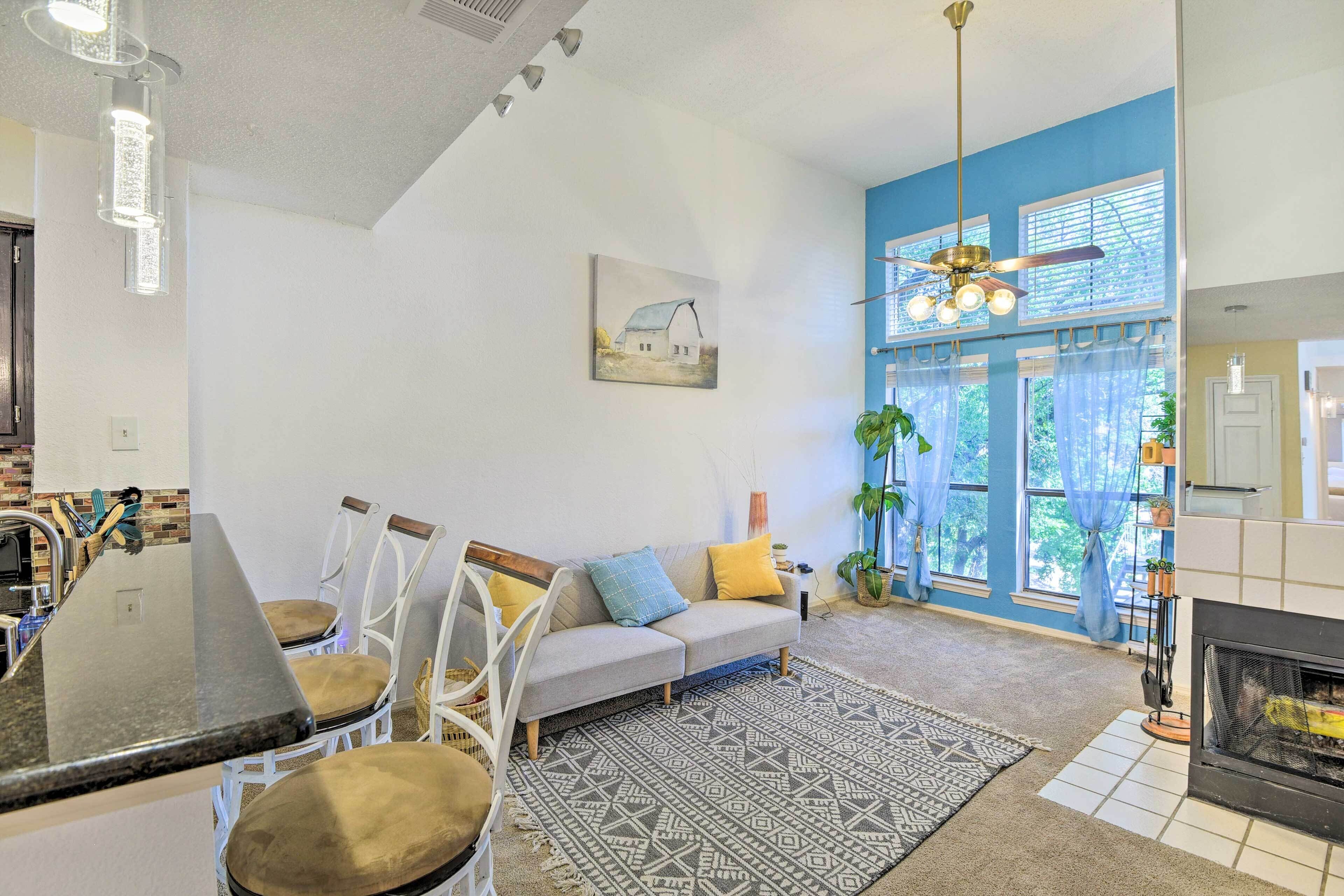 Cozy Irving Condo 15 Mi to Downtown Dallas! Breathe a sigh of relief when you arrive at this 1-bedroom + loft, 1-bath Irving condo. Situated between Dallas and Fort Worth, this vibrant, cozy vacation rental offers the ideal home base for small families or crews to get in on all the fun while retreating to quiet quarters. After a day of catching a Cowboys game, perusing the Dallas Arts District, or...