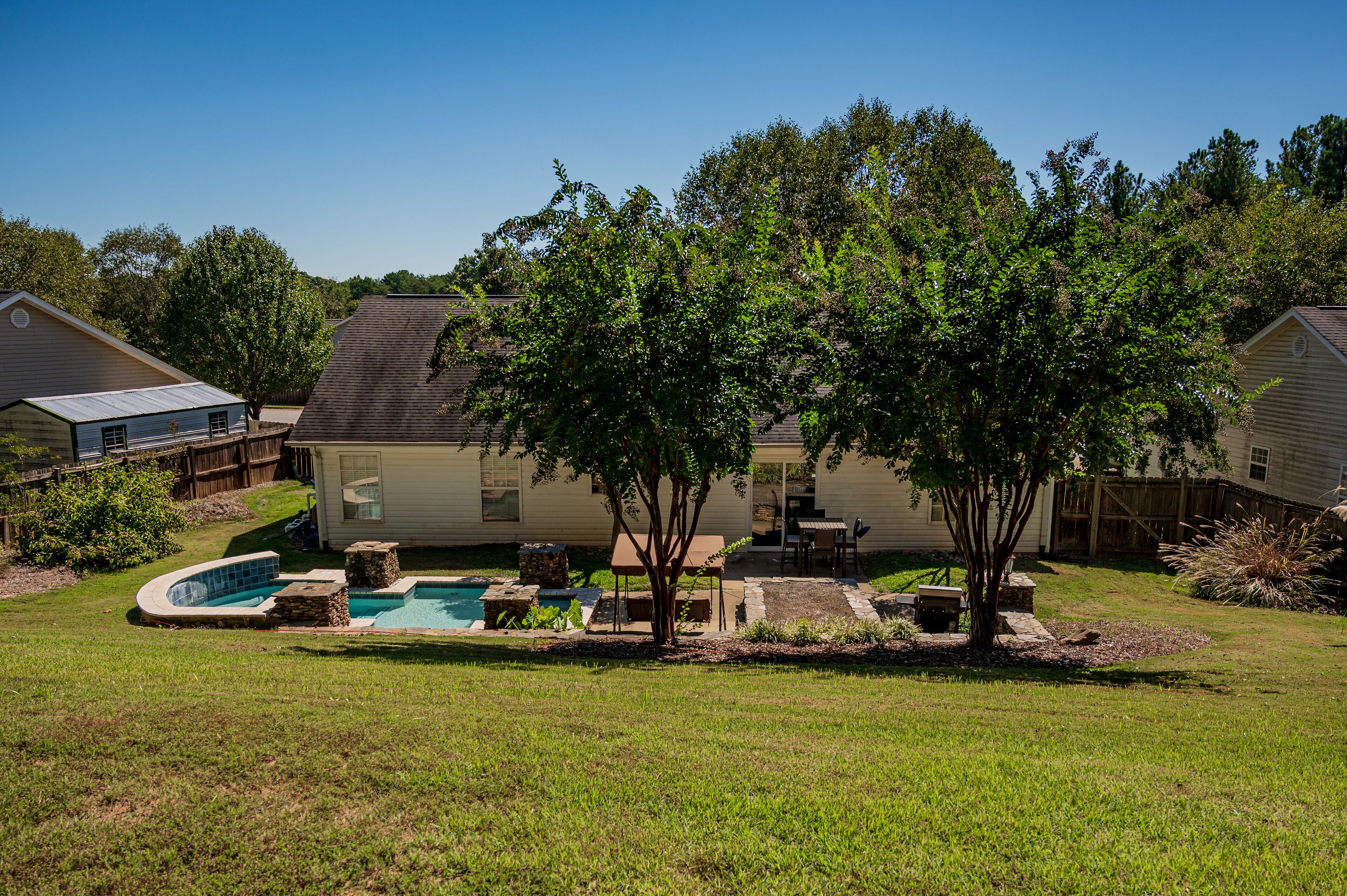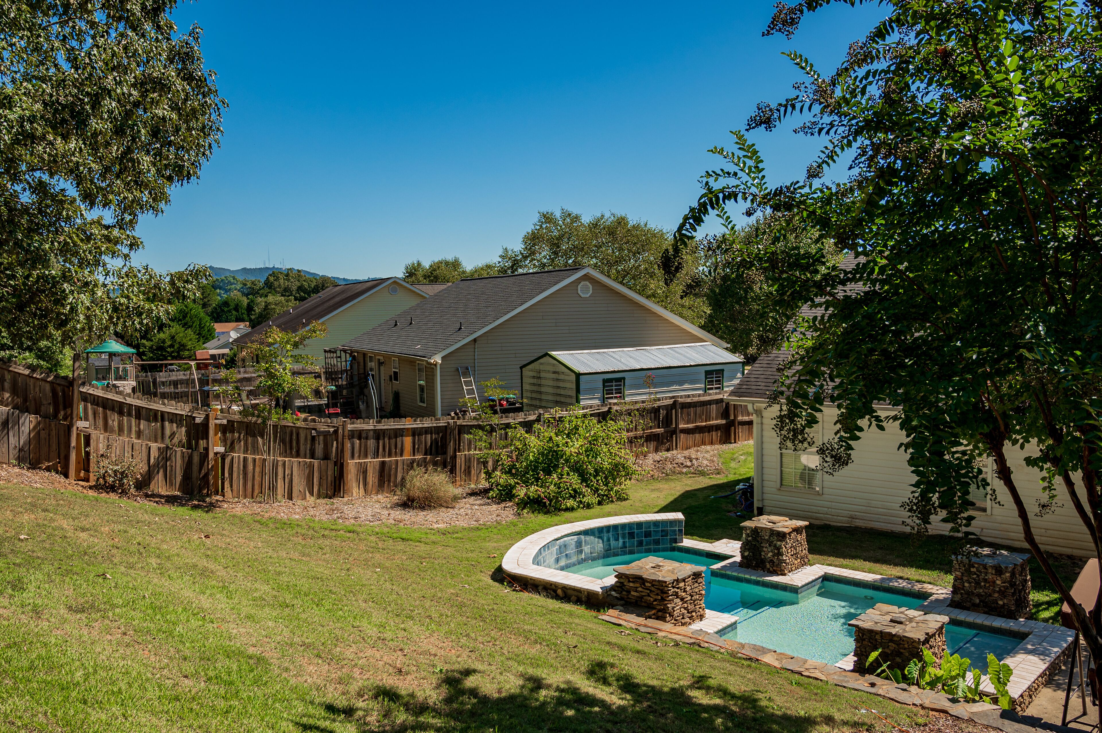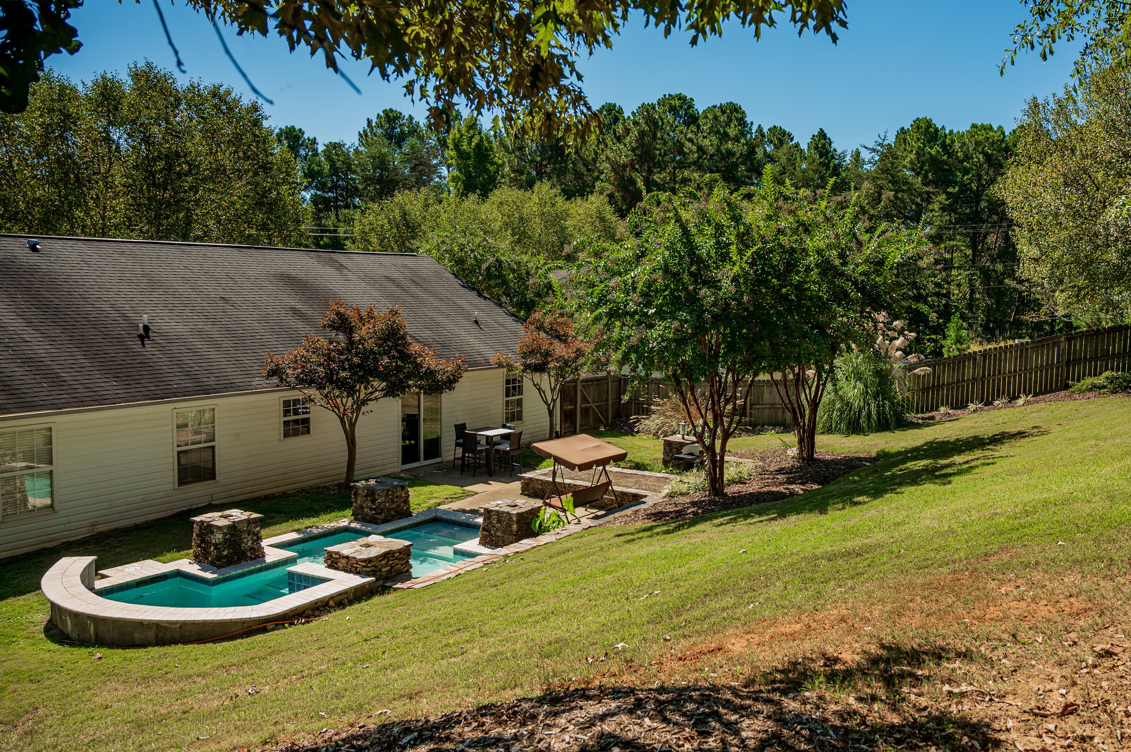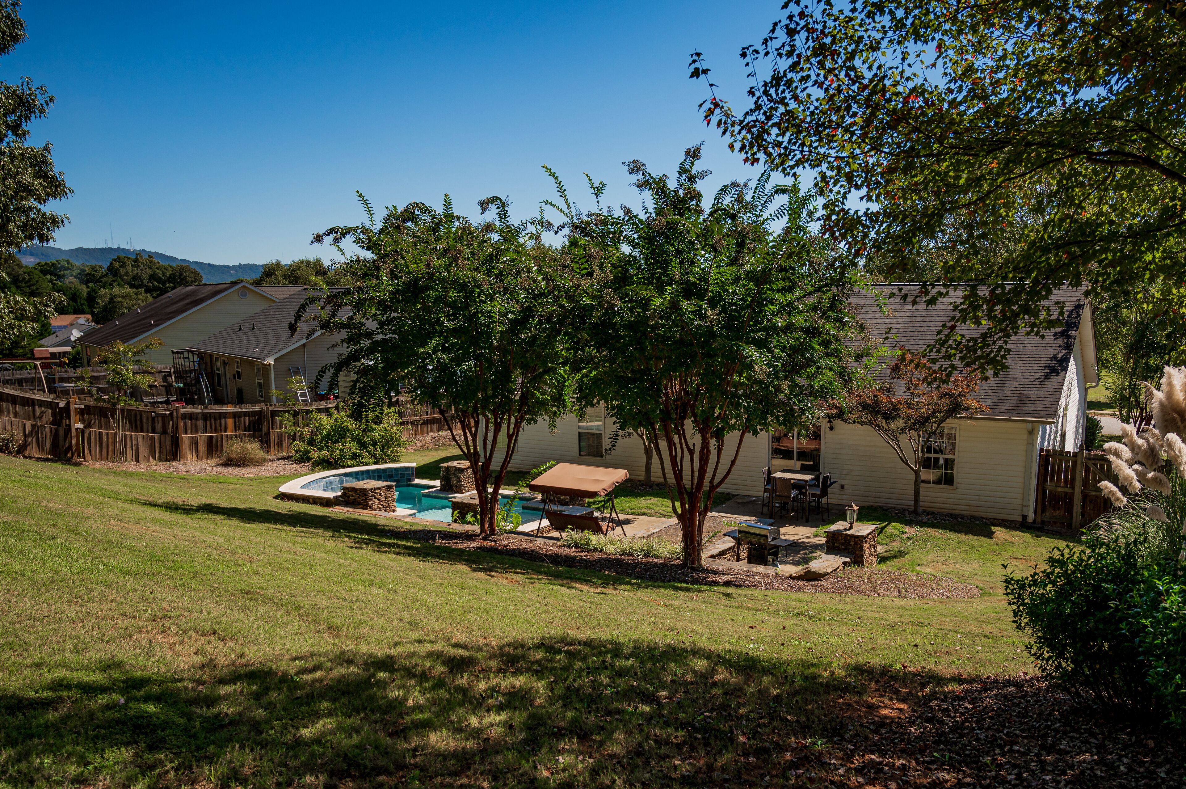 Pet + Family Friendly 4BR Pool House Near Furman Welcome to Paris Mountain Pool House, a lovely 4 bedroom, 2 bathroom home complete with a gorgeous pool.Paris Mountain can be seen from the top of the hill in our backyard, and the State Park is only 15 minutes away! Additionally, we are located15 min from Downtown Greenville8 min from Downtown Traveler's Rest3 min from Furman UniversityOur freshly remodeled, open floor plan home is the perfect getaway for your friends and family. We can't wait to have you!Welcome to Paris Mountain Pool House! We can't wait to welcome you into our home.Upon arriving, guests can park in our driveway, or in our 2 car garage (must be opened from the inside).Our front door is equipped with a smart lock for easy, keyless entry.Once inside, you will be in our open living area, complete with a large, cozy sectional sofa, bench seating, and Smart TV (guests can log in to their streaming services. No cable). Off to the corner is a beautiful kitchen with stainless-steel appliances and all you will need to whip up a great meal.Our dining room table seats 6, with 4 chairs and an upholstered bench. There is also additional bar seating for two at the kitchen island.Surrounding the living space are our bedrooms, with the Master on its own end of the house, and the other three taking up the opposite side. The Master Bedroom is spacious and lush, featuring a King Bed, large side tables and reading lamps, a reading nook, TV (guests can login to their own streaming services, no cable), and an en suite bathroom featuring a tub/shower combination, toilet, and single vanity.At the front corner of the home is our second bedroom, the King bedroom. This bedroom features a King bed, small side tables, above bed reading lights, dresser, and closet.Next door to this room is our hall bath, featuring a large single vanity, toilet, and tub/shower combination.Next door is the twin room, featuring two twin beds and fun decor such as a trunk as a nightstand, butterfly art, and a vintage globe. At the back corner of the house is our 4th bedroom/office. This room has a screen to function as a door for privacy and has a day bed (twin sized) with a trundle that pulls out from underneath. It also features its own closet and a corner desk with a lamp and a chair for those who have work to get done.Guests traveling with small children should note that we have a pack and play and highchair provided for your use.Finally, we have our beautiful fenced in backyard, complete with a custom pool. The salt water pool is open year-round, but is not heated-- please use at your own discretion. Also, this pool features multiple levels, with seating areas, a step-down, step up, and then a more abrupt deep end. It is not a standard slanted pool.In addition to the pool, we have a covered swing, high top seating for 4, and a gas grill for your use.~Pets~We are pet friendly here at Paris Mountain Pool House and welcome your furry friends with a one-time fee, which is requested during or after booking. We know you'll love our home as much as we do, and we can't wait to have you!We tend to allow our guests to keep to themselves, but are always a message away if needed.Our neighborhood is a small residential one located near Furman University off of Hwy 25.A car is best for exploring the surrounding areas, as there is no reliable public transportation.Smoking is permitted outside, provided all exterior doors are closed and buds are disposed of safely (i.e., not in a trash bag/paper cup/or other flammable container).Smoking indoors or leaving buds in the yard is prohibited and will incur a $250 fine.