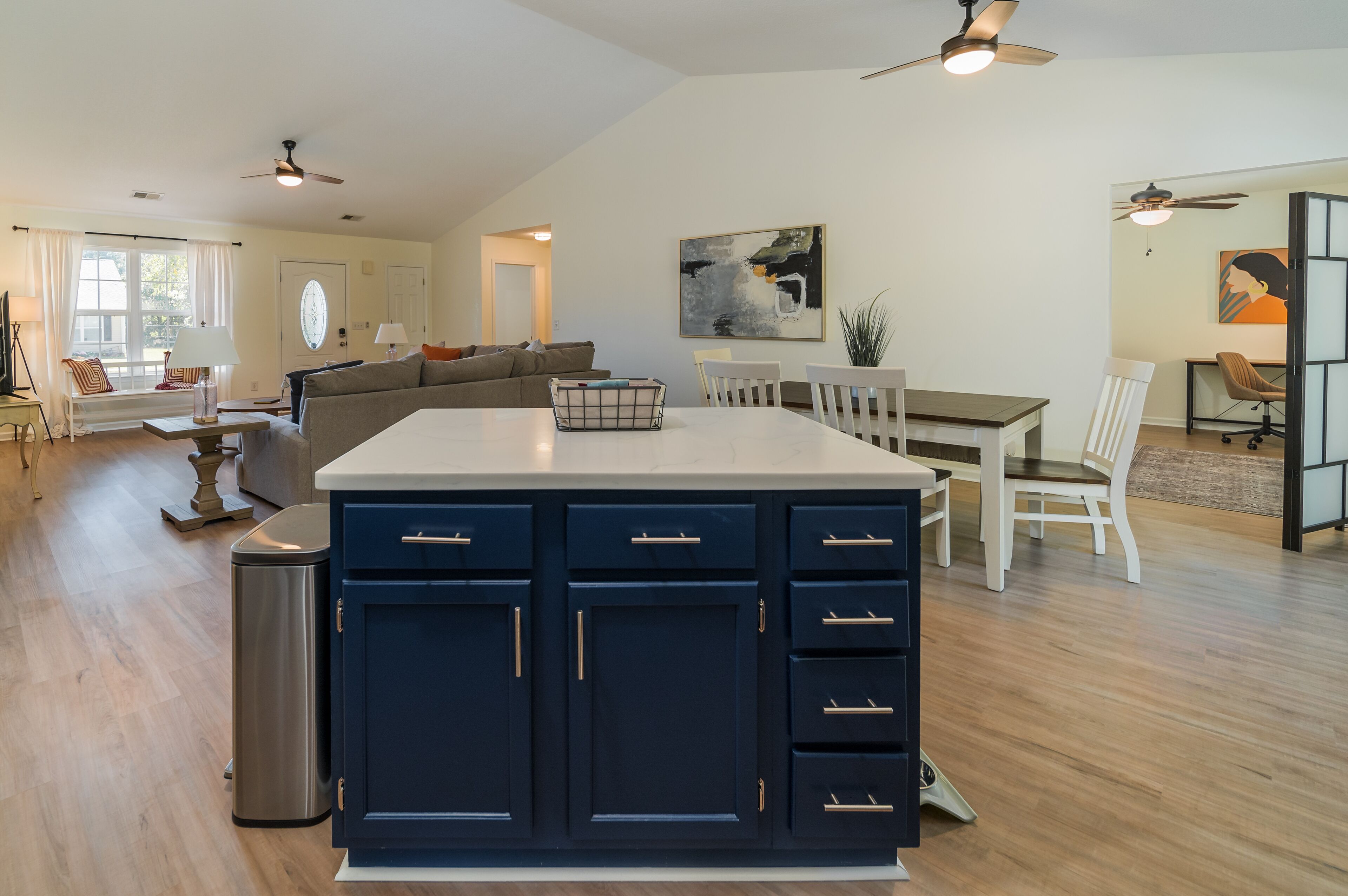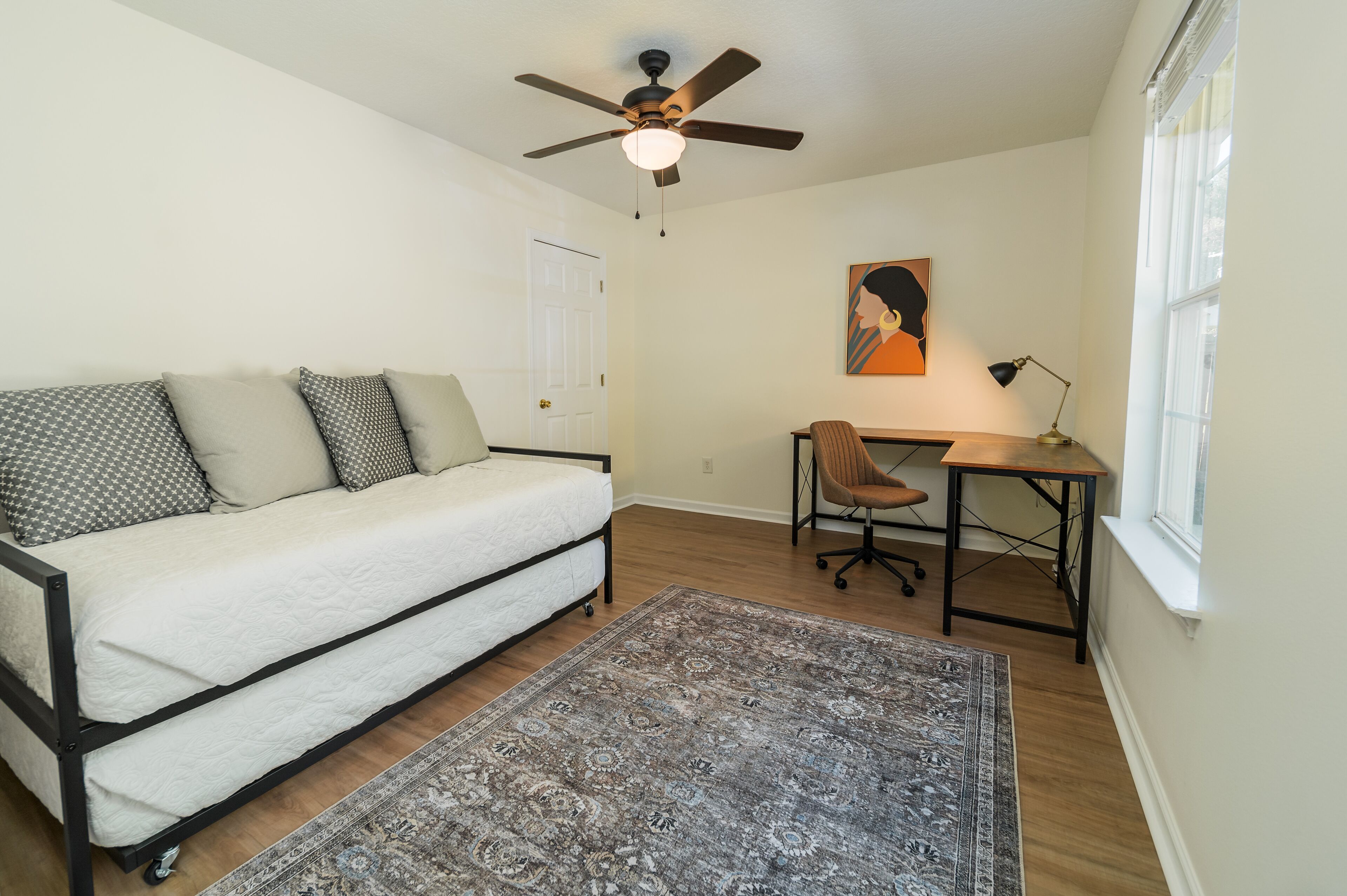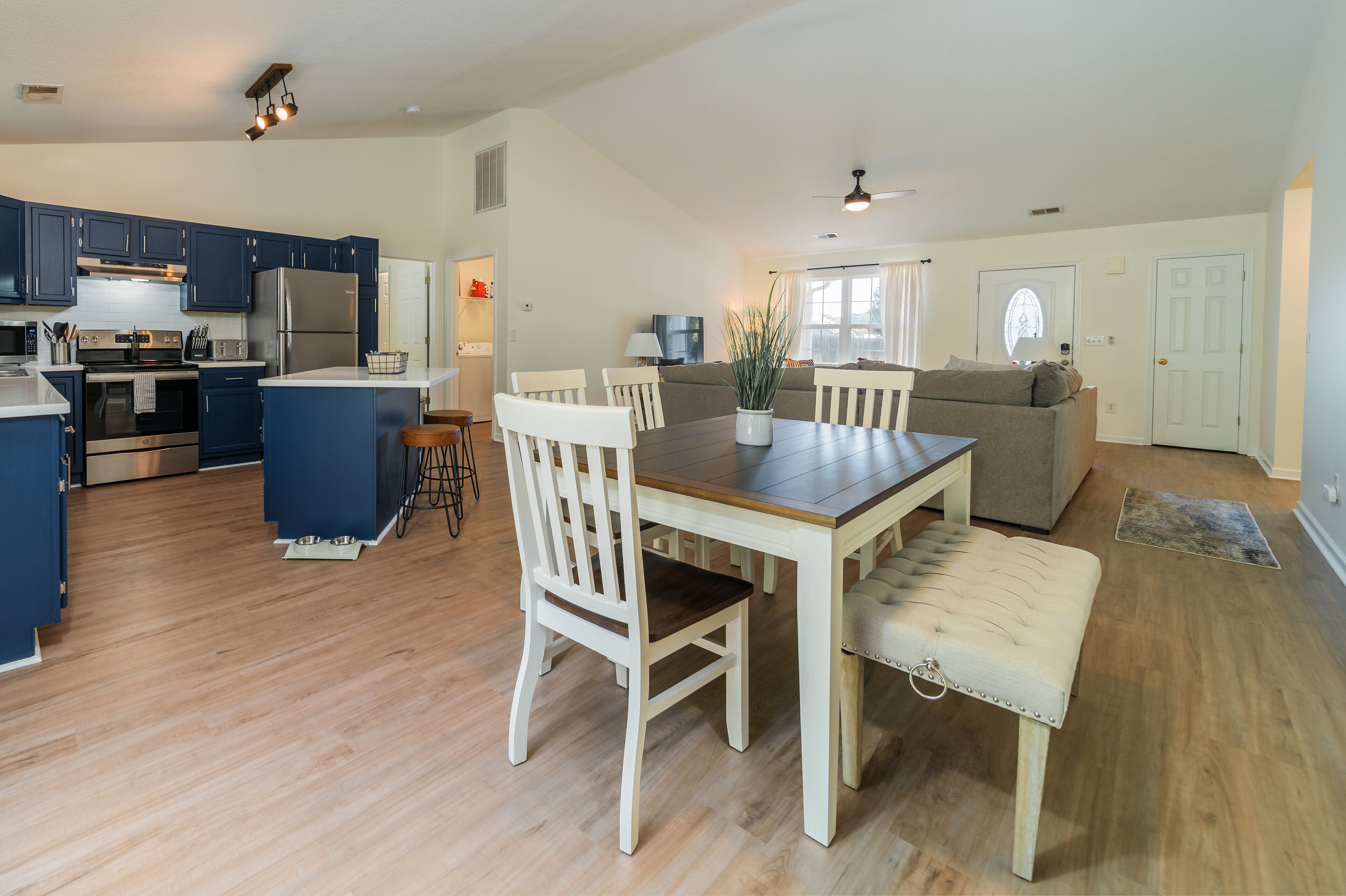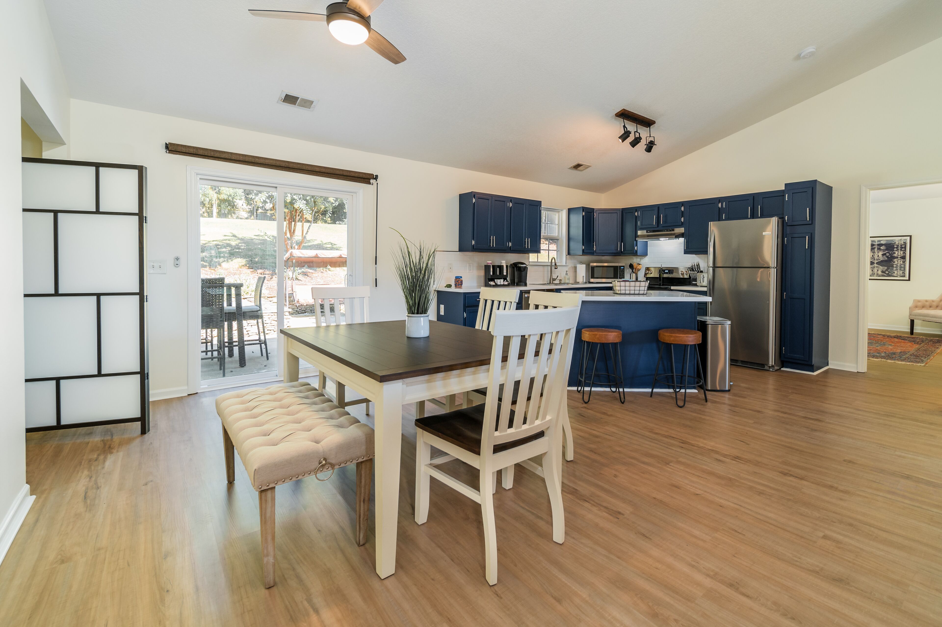 Pet + Family Friendly 4BR Pool House Near Furman Welcome to Paris Mountain Pool House, a lovely 4 bedroom, 2 bathroom home complete with a gorgeous pool.Paris Mountain can be seen from the top of the hill in our backyard, and the State Park is only 15 minutes away! Additionally, we are located15 min from Downtown Greenville8 min from Downtown Traveler's Rest3 min from Furman UniversityOur freshly remodeled, open floor plan home is the perfect getaway for your friends and family. We can't wait to have you!Welcome to Paris Mountain Pool House! We can't wait to welcome you into our home.Upon arriving, guests can park in our driveway, or in our 2 car garage (must be opened from the inside).Our front door is equipped with a smart lock for easy, keyless entry.Once inside, you will be in our open living area, complete with a large, cozy sectional sofa, bench seating, and Smart TV (guests can log in to their streaming services. No cable). Off to the corner is a beautiful kitchen with stainless-steel appliances and all you will need to whip up a great meal.Our dining room table seats 6, with 4 chairs and an upholstered bench. There is also additional bar seating for two at the kitchen island.Surrounding the living space are our bedrooms, with the Master on its own end of the house, and the other three taking up the opposite side. The Master Bedroom is spacious and lush, featuring a King Bed, large side tables and reading lamps, a reading nook, TV (guests can login to their own streaming services, no cable), and an en suite bathroom featuring a tub/shower combination, toilet, and single vanity.At the front corner of the home is our second bedroom, the King bedroom. This bedroom features a King bed, small side tables, above bed reading lights, dresser, and closet.Next door to this room is our hall bath, featuring a large single vanity, toilet, and tub/shower combination.Next door is the twin room, featuring two twin beds and fun decor such as a trunk as a nightstand, butterfly art, and a vintage globe. At the back corner of the house is our 4th bedroom/office. This room has a screen to function as a door for privacy and has a day bed (twin sized) with a trundle that pulls out from underneath. It also features its own closet and a corner desk with a lamp and a chair for those who have work to get done.Guests traveling with small children should note that we have a pack and play and highchair provided for your use.Finally, we have our beautiful fenced in backyard, complete with a custom pool. The salt water pool is open year-round, but is not heated-- please use at your own discretion. Also, this pool features multiple levels, with seating areas, a step-down, step up, and then a more abrupt deep end. It is not a standard slanted pool.In addition to the pool, we have a covered swing, high top seating for 4, and a gas grill for your use.~Pets~We are pet friendly here at Paris Mountain Pool House and welcome your furry friends with a one-time fee, which is requested during or after booking. We know you'll love our home as much as we do, and we can't wait to have you!We tend to allow our guests to keep to themselves, but are always a message away if needed.Our neighborhood is a small residential one located near Furman University off of Hwy 25.A car is best for exploring the surrounding areas, as there is no reliable public transportation.Smoking is permitted outside, provided all exterior doors are closed and buds are disposed of safely (i.e., not in a trash bag/paper cup/or other flammable container).Smoking indoors or leaving buds in the yard is prohibited and will incur a $250 fine.