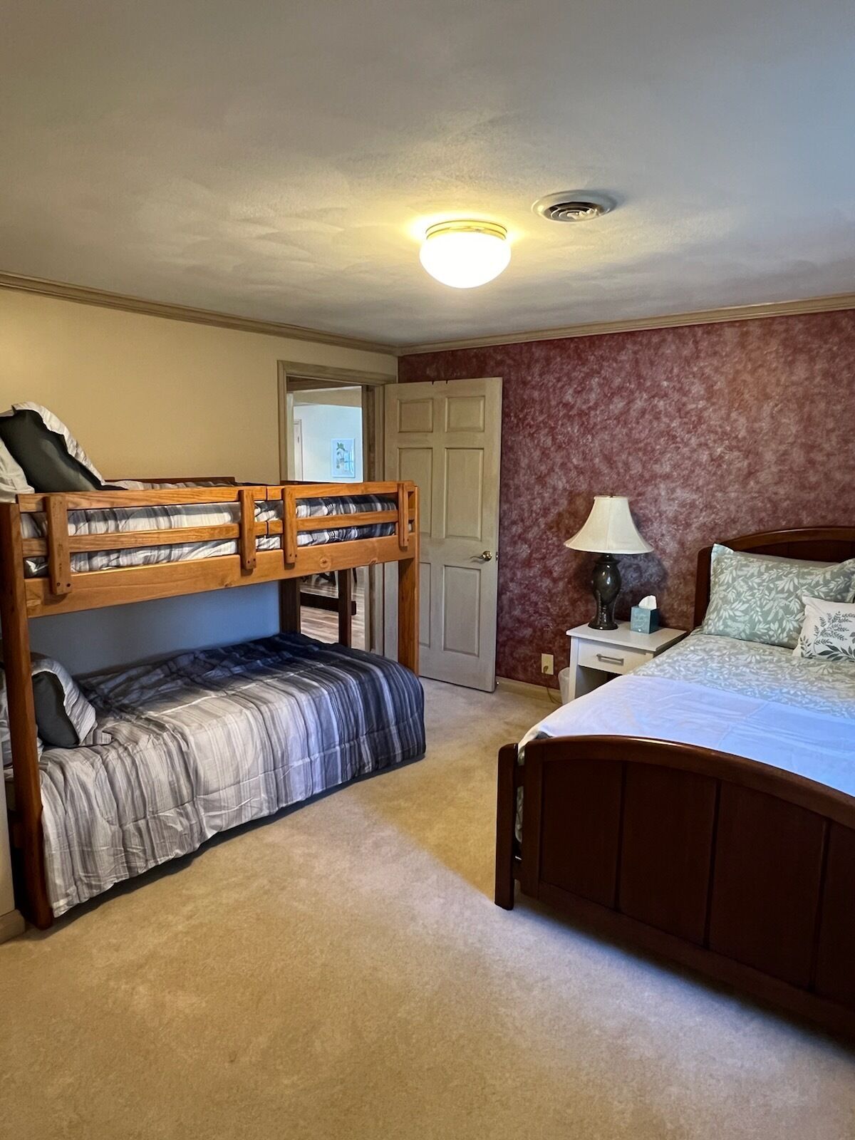 Charming 3-bedroom house in tranquil Greenville with WiFi, AC, and game room. Located in Greenville, enjoy what this 3-bedroom house has to offer. With 2 queen beds, 1 bunk bed, and 1 full bed, our lovely property provides comfortable accommodations for guests. The house features heating, WiFi, AC, and a washing machine, ensuring an enjoyable and convenient stay. You'll also find a jetted bathtub...
