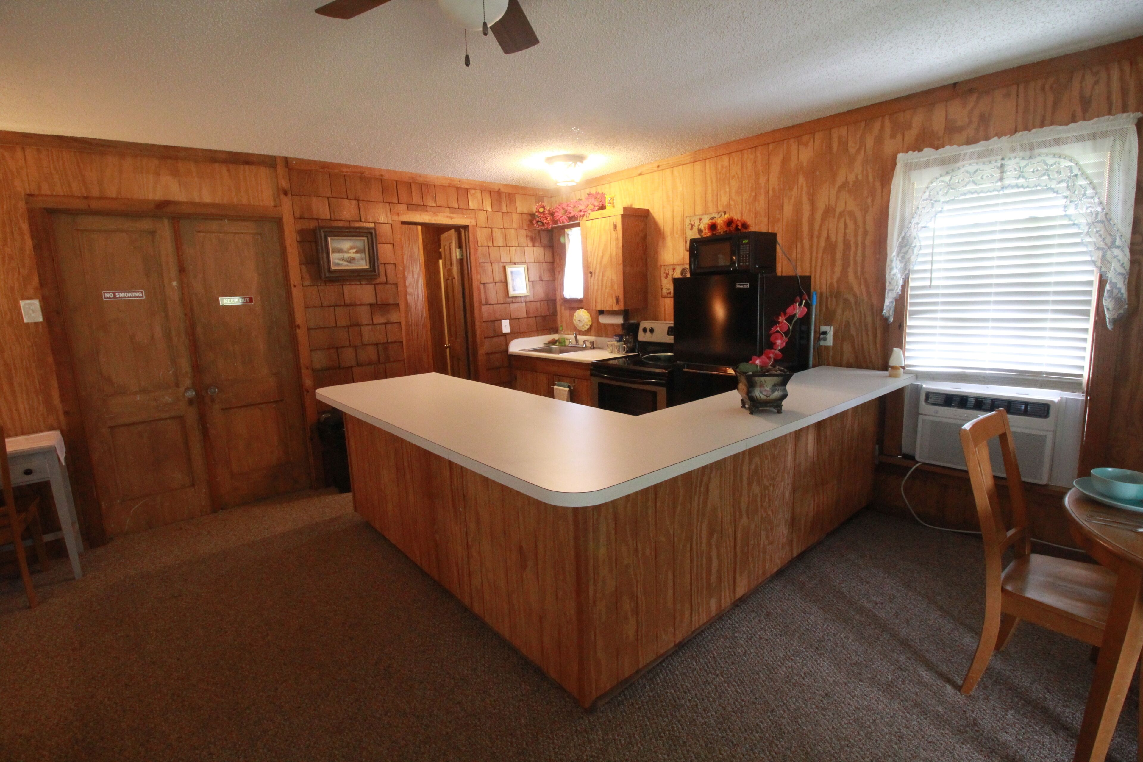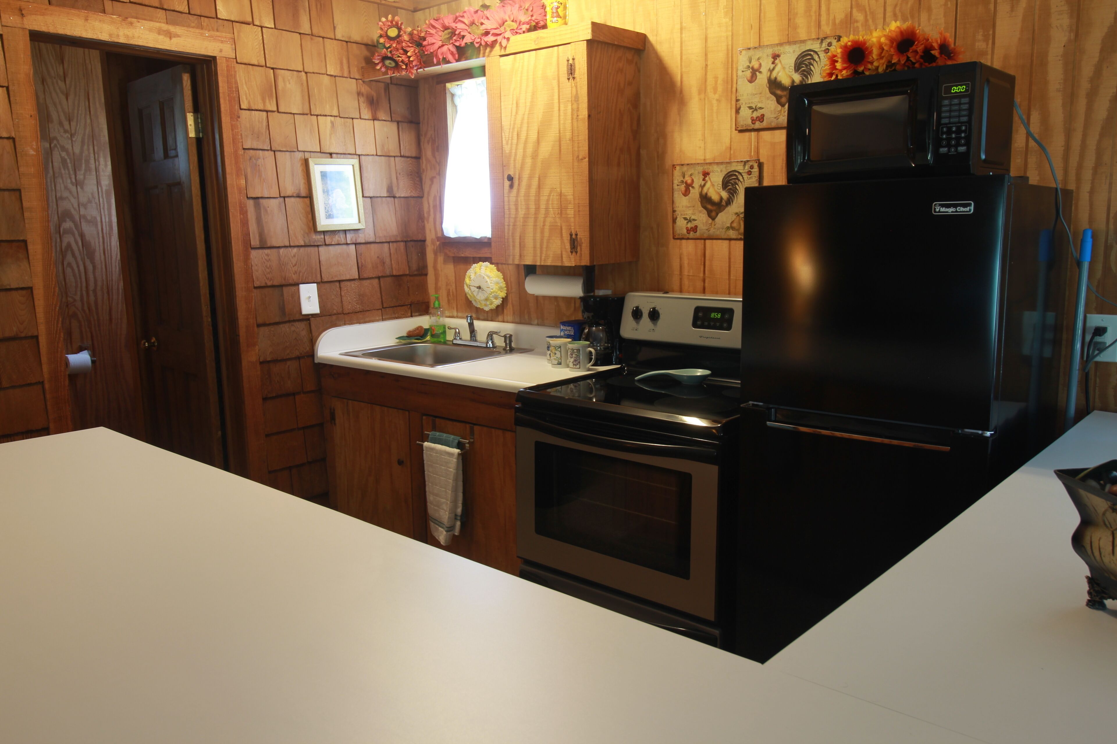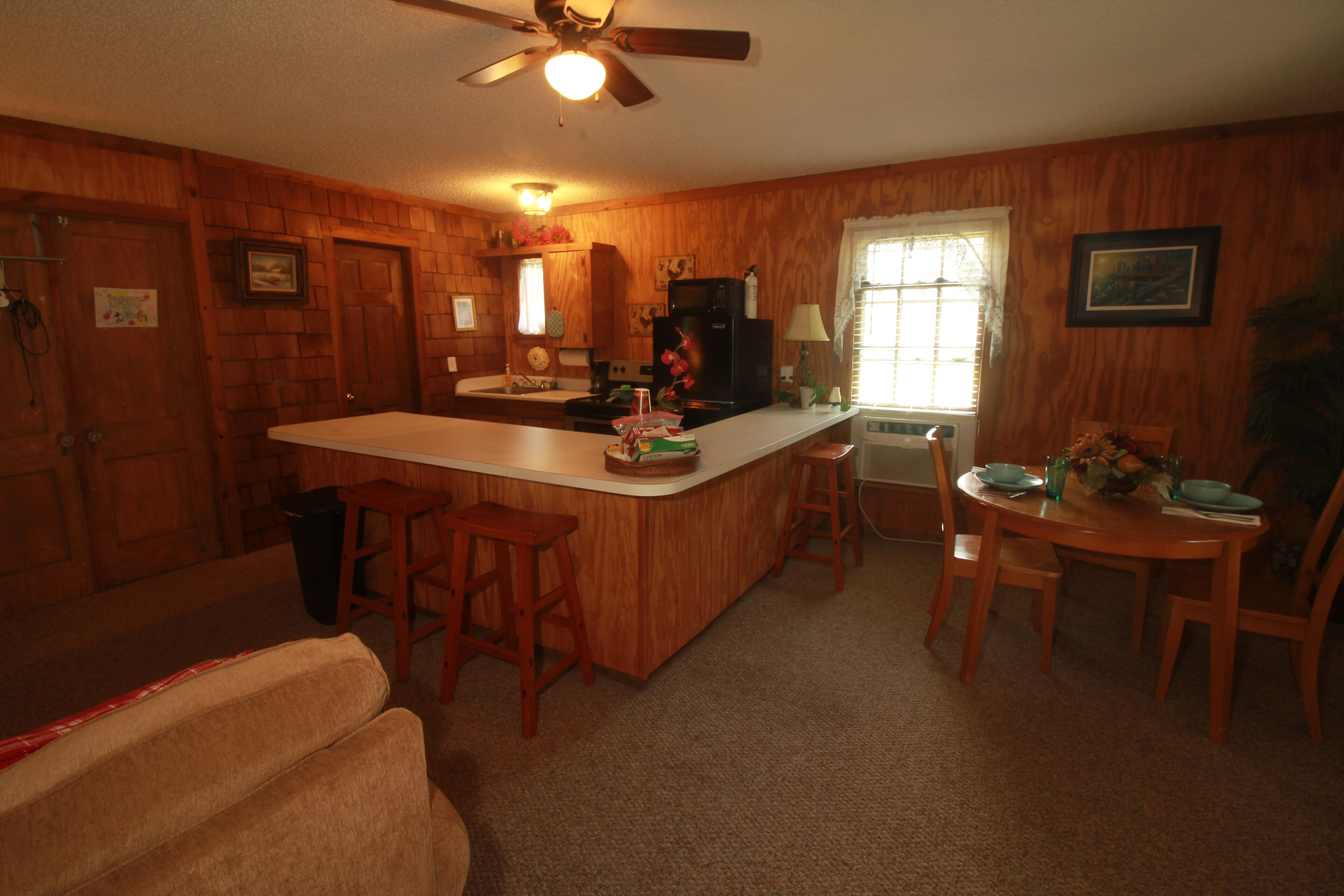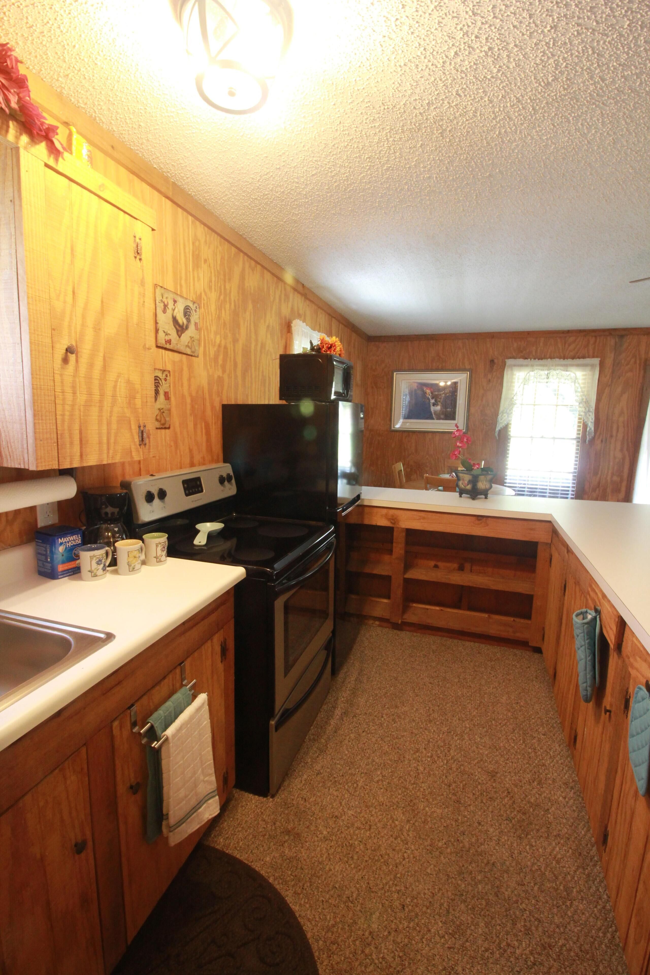 Eclectic Country Studio Guest House Quick Escape Cute open concept with charmingly rustic vibe. A desk with drawers give a nice spot to get some work done, if needed. Has standup shower in the bathroom and towels provided. Kitchen has coffee maker, flat top stove with oven, microwave and plenty of counter space. The kitchen also has a decent sized fridge and freezer with ice trays. Brand new...