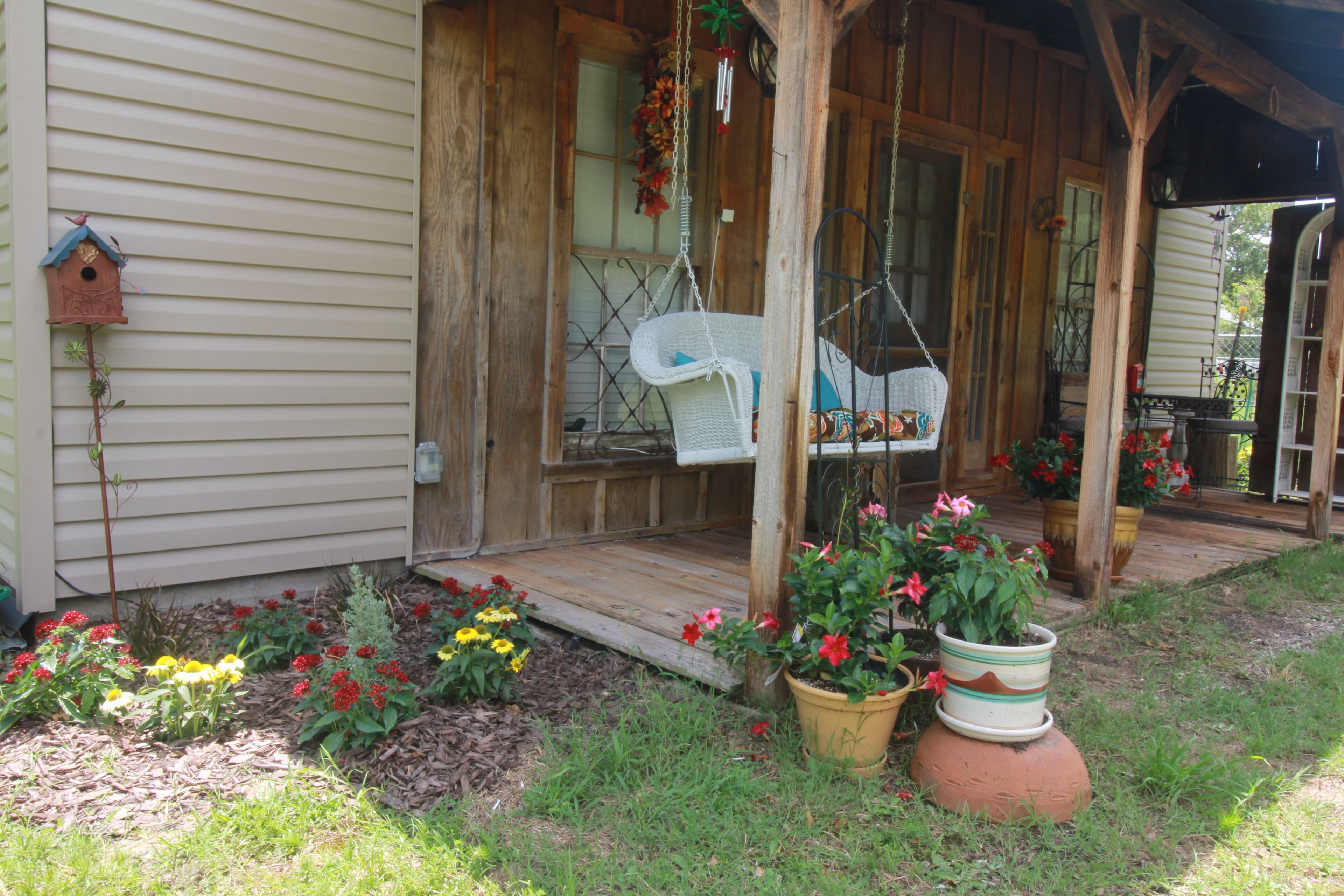 Eclectic Country Studio Guest House Quick Escape Cute open concept with charmingly rustic vibe. A desk with drawers give a nice spot to get some work done, if needed. Has standup shower in the bathroom and towels provided. Kitchen has coffee maker, flat top stove with oven, microwave and plenty of counter space. The kitchen also has a decent sized fridge and freezer with ice trays. Brand new window AC unit to keep you comfortable. The porch has plenty of seating to hang out including a comfy swing. There is a wall mounted TV and Roku available for use. Comfortable King size bed and small pullout floor mattress. All things you will find at this country get away. Just minutes from Greenville shopping and dining. Just 4 miles Southtown of Walmart in a rural neighborhood. Stay close to the sports park, or restaurants but still enjoy staying in the country. WiFi and self check in. ID Required before check-in and Short term rental agreement.