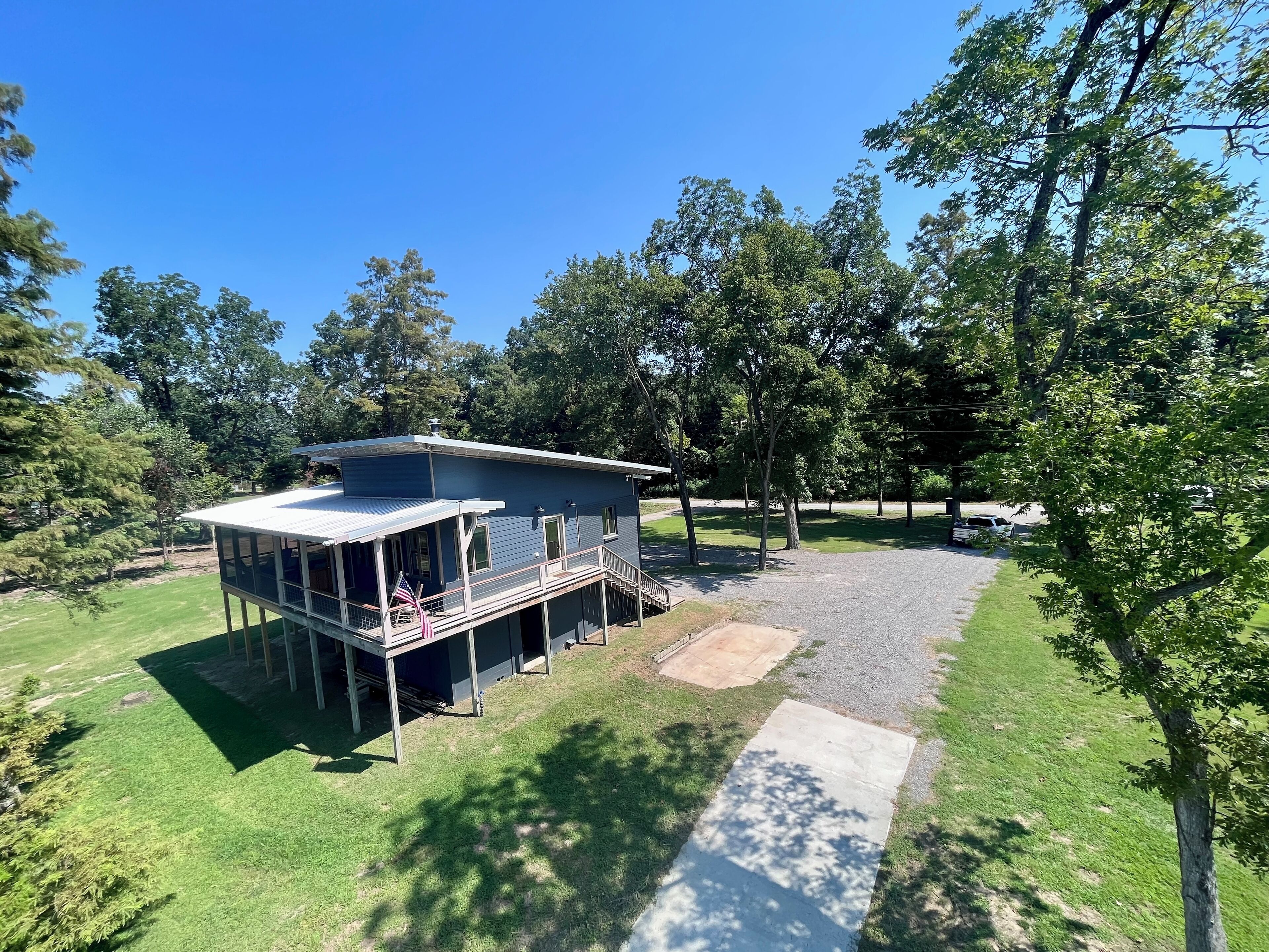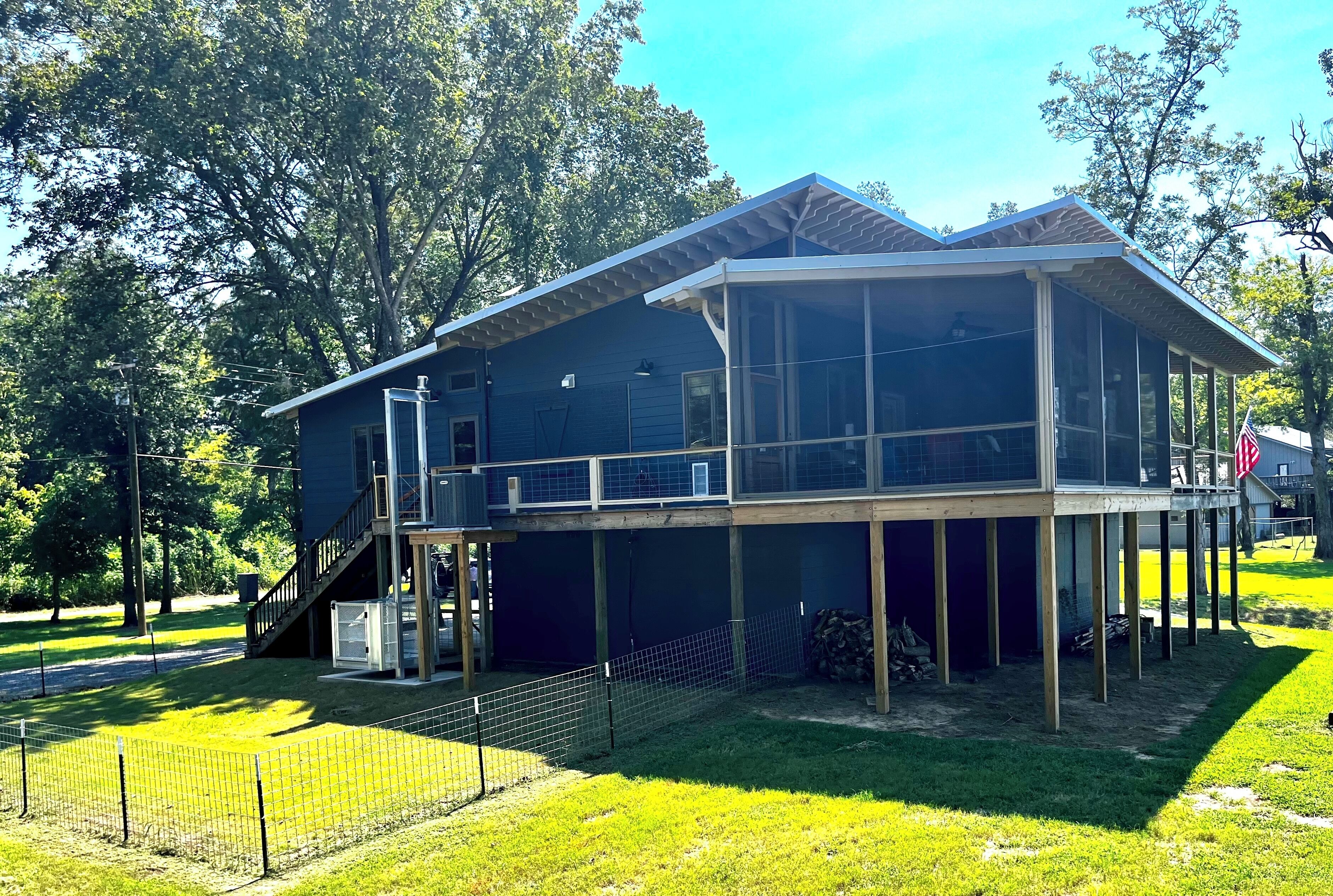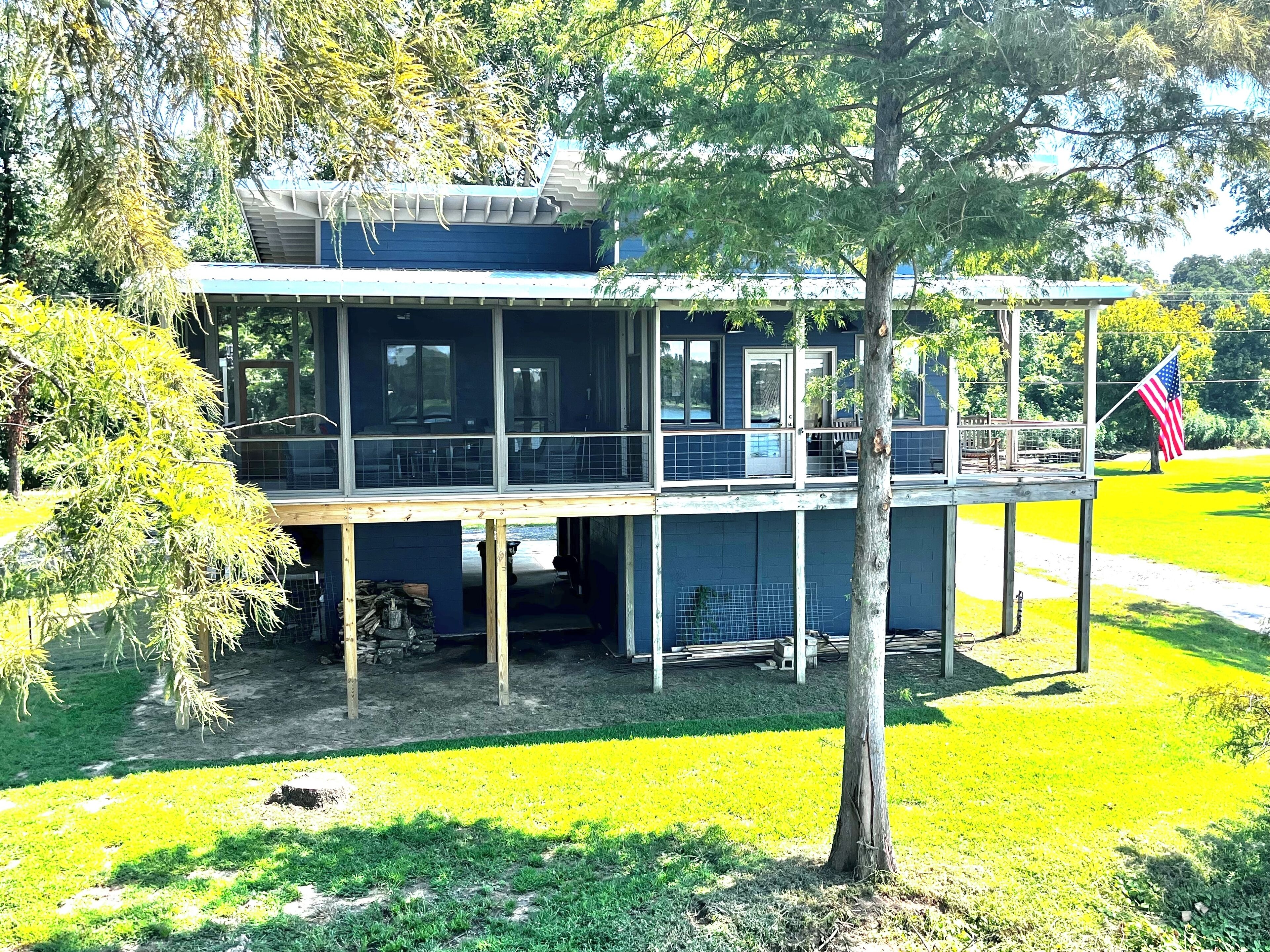 Pet friendly lakefront home with boat ramp~ The Overlook at Bachelor Bend The Overlook at Batchelor Bend offers all you need for the perfect stay on Lake Ferguson- spacious screened porch, boat ramp with ample parking of truck & trailer, loop driveway for easy approach and exit, 2 bedrooms, 2 baths with extra single sleeper chair, outdoor shower and covered storage for lake gear on bottom level. C...