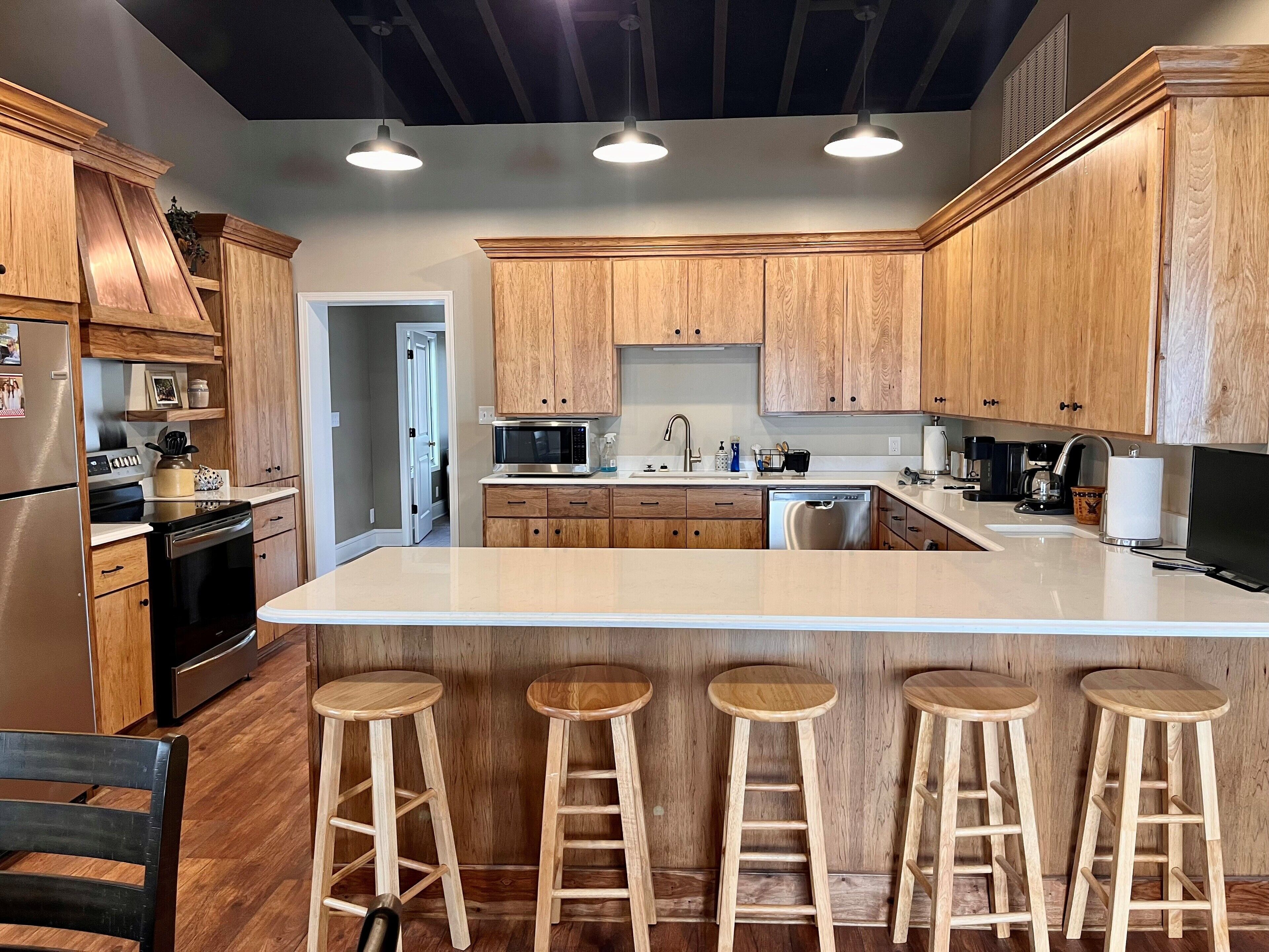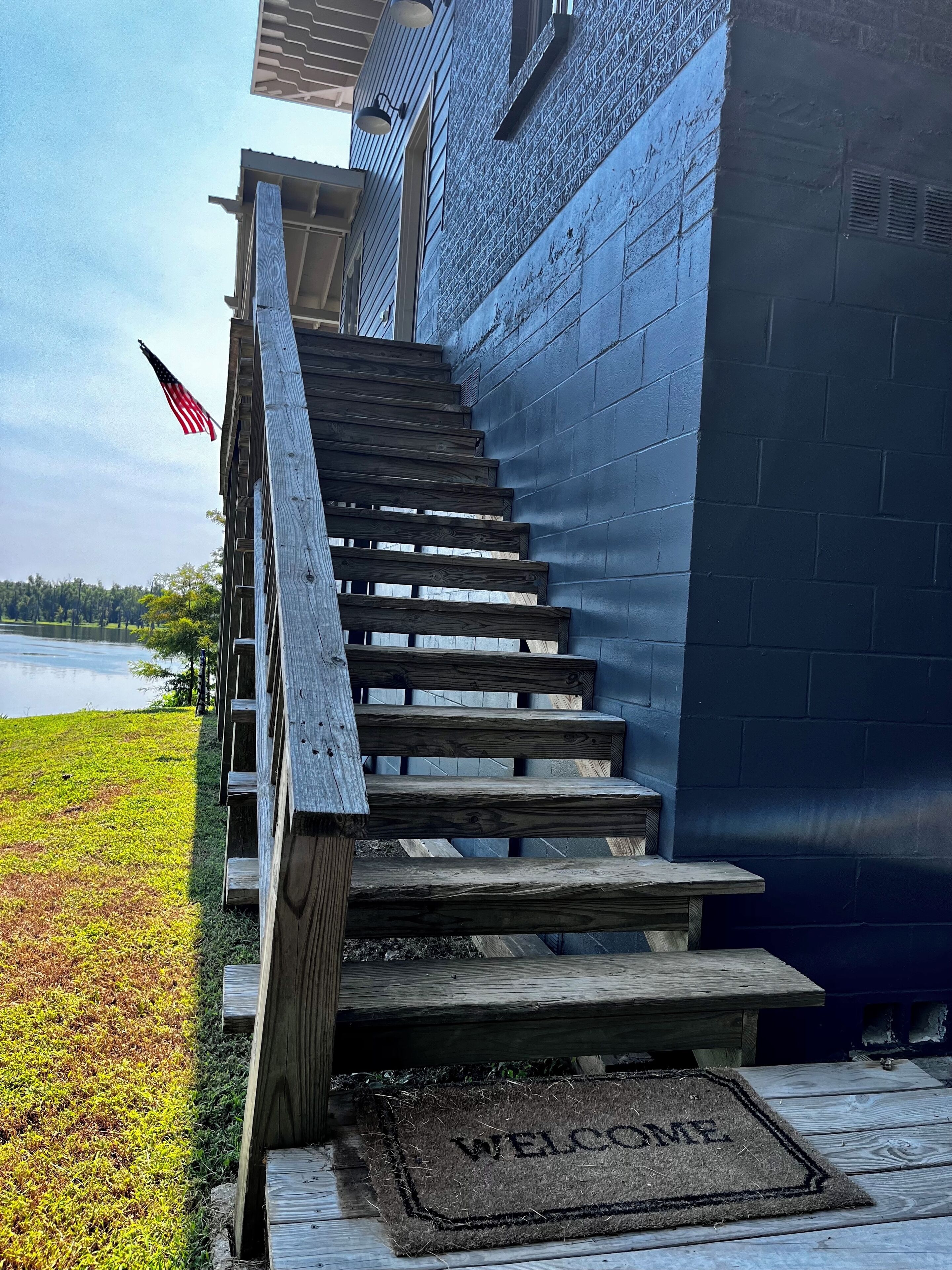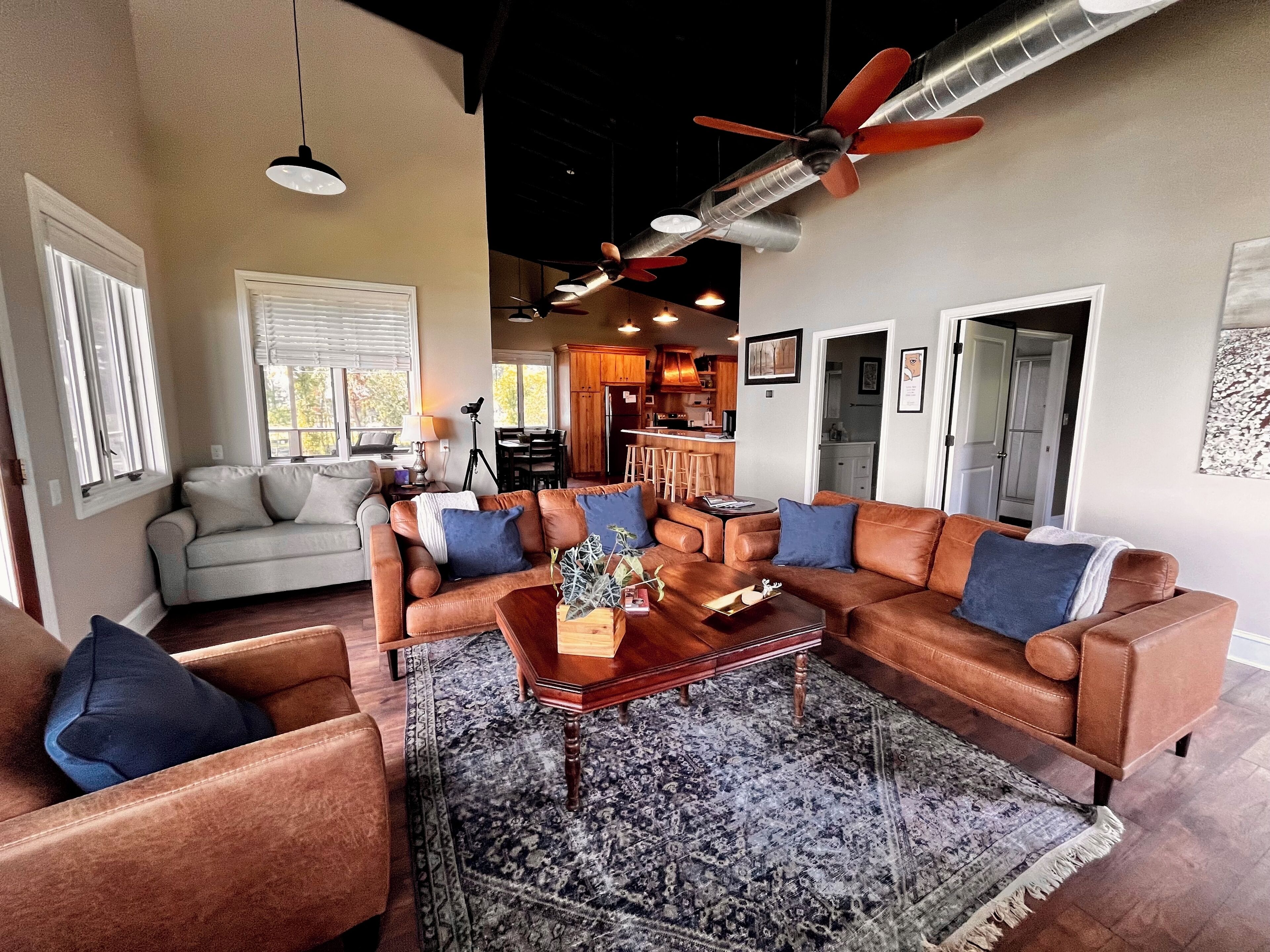 Pet friendly lakefront home with boat ramp~ The Overlook at Bachelor Bend The Overlook at Batchelor Bend offers all you need for the perfect stay on Lake Ferguson- spacious screened porch, boat ramp with ample parking of truck & trailer, loop driveway for easy approach and exit, 2 bedrooms, 2 baths with extra single sleeper chair, outdoor shower and covered storage for lake gear on bottom level. C...