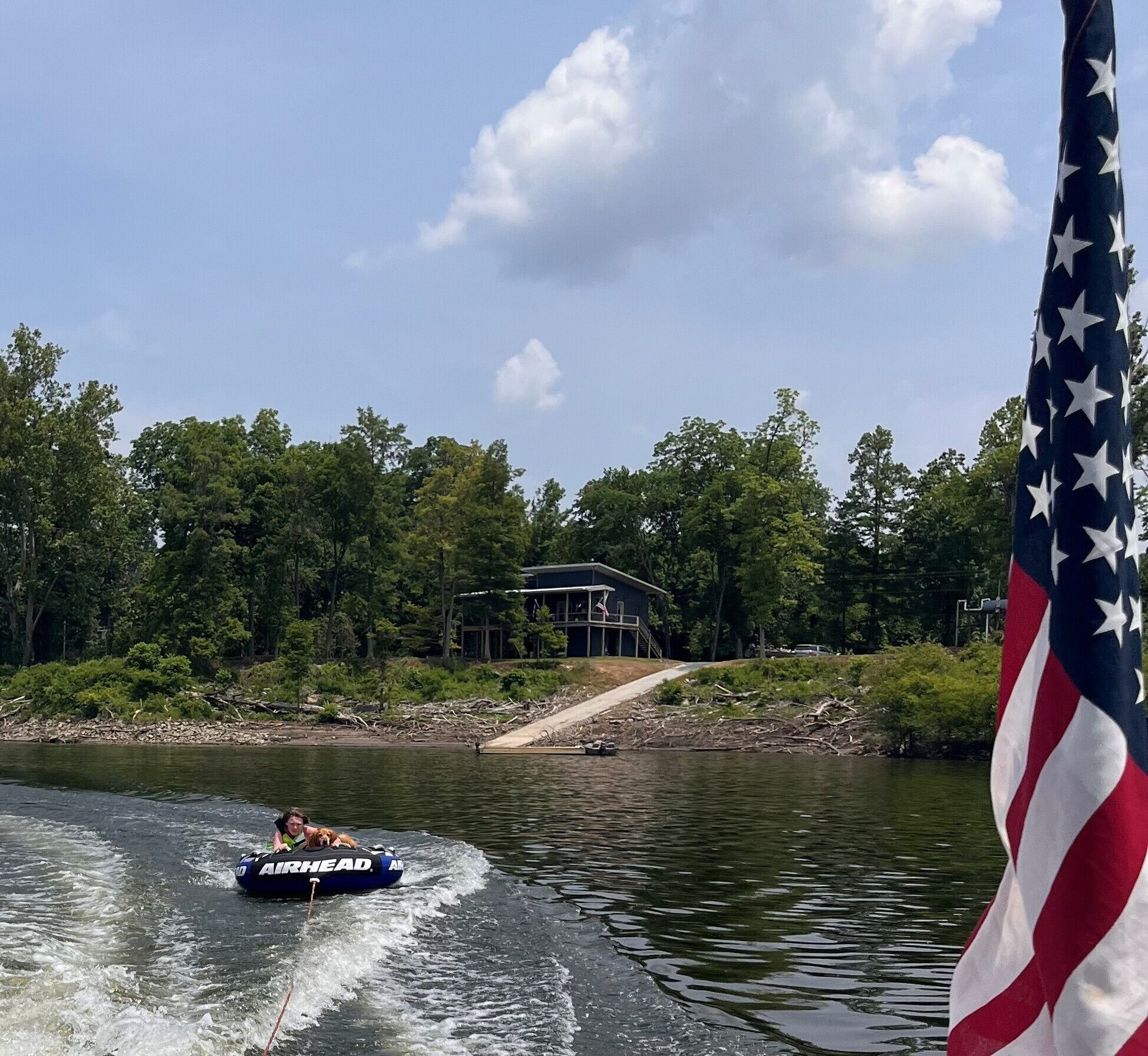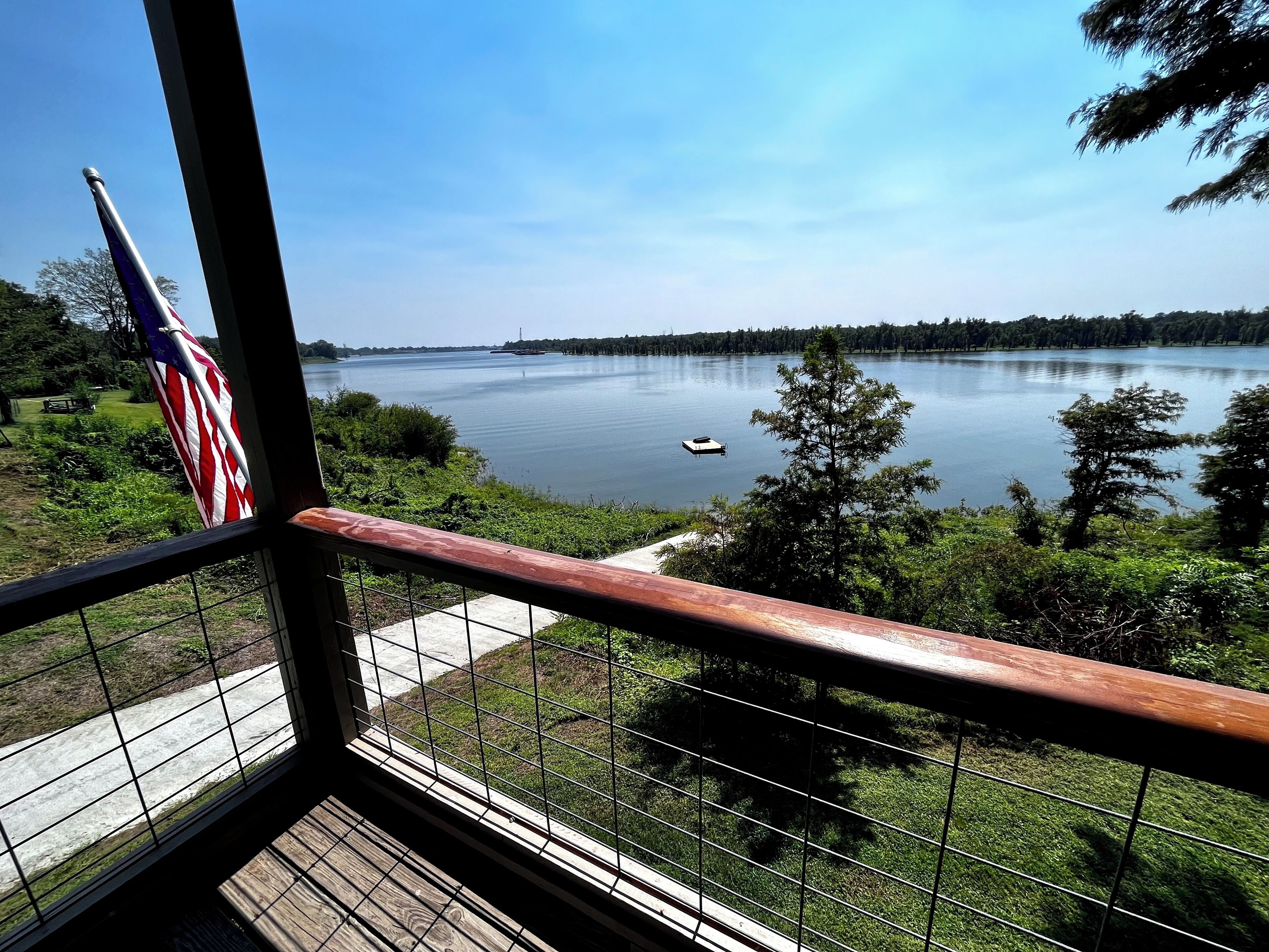 Pet friendly lakefront home with boat ramp~ The Overlook at Bachelor Bend The Overlook at Batchelor Bend offers all you need for the perfect stay on Lake Ferguson- spacious screened porch, boat ramp with ample parking of truck & trailer, loop driveway for easy approach and exit, 2 bedrooms, 2 baths with extra single sleeper chair, outdoor shower and covered storage for lake gear on bottom level. Ceiling fans, spacious den, dining, and kitchen. Stunning sunset views. Pet friendly with fenced area and dog door. Cargo elevator. *** Please note that boat ramp is useable to "about" 23' lake level. At that point, you will need to use the Greenville Marina (about 10 minutes to put-in) or the neighborhood boat ramp (1 minute away with small fee) to launch your boat.