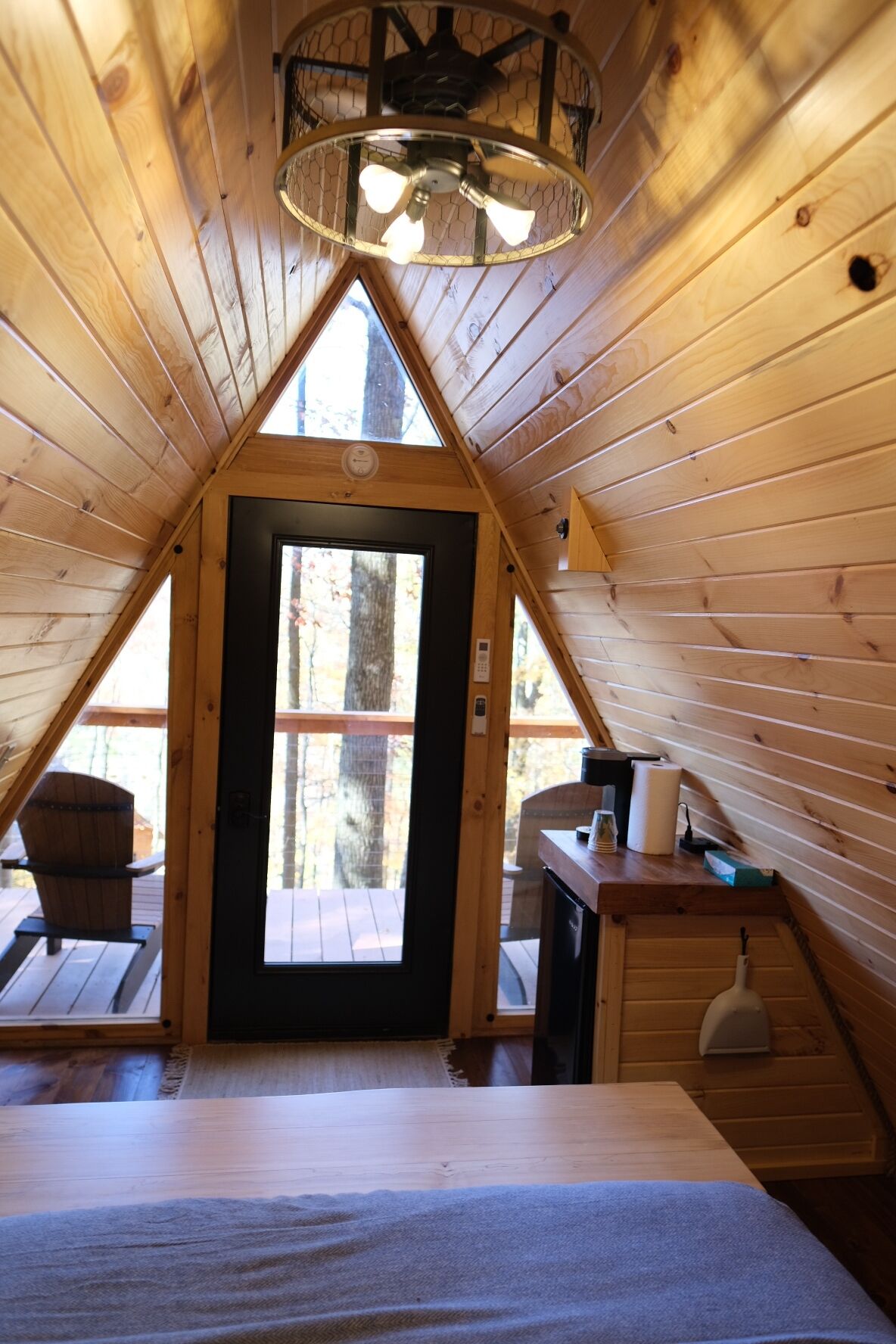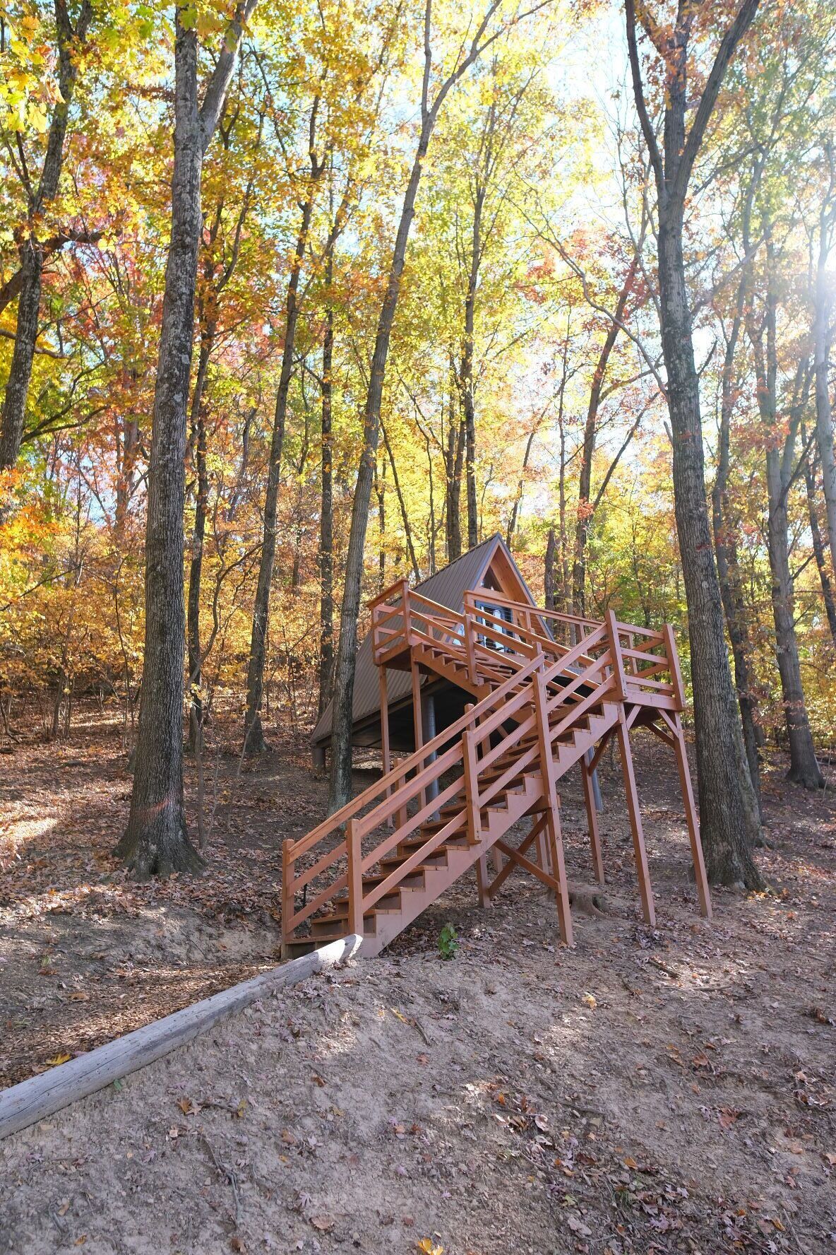 Redwood/Rustic Lakeview Cabin- 2 Person A-Frame Two-person "Glamper" A-Frame Cabin - RedwoodOhio’s newest resort, Tappan Lakeside Resort: New construction, 2-person "Glamper" a-frame cabin nestled amongst the trees with beautiful views. Watch the sunset from a large private deck overlooking Tappan Lake, Ohio complete with handcrafted Adirondack chairs. Enjoy a wonderful night's rest in a queen bed with all luxury linens & pillows provided. Mini refrigerator, Keurig, USB charging station, central air + heat add comfort to your peaceful & rustic stay. Grills, towels, and private shower & bathroom facility available at the resort’s recreation building a short walk away. Additionally, there is parking available at the recreation building that you can opt to drive. Cabin Amenities:• Hillside Raised Treehouse Feel• Large Private Deck Overlooking Tappan Lake• Adirondack Chairs • Private Parking for One (1) Vehicle - Additional Parking Available• Mini Fridge• Keurig Coffee Maker (Coffee Pods Included)• Queen Bed Sleeps Two (2)• All Luxury Linens & Pillows Provided• Central Air Conditioning & Heating• Modern Electrical Resort Amenities:• Shower House w/ Restrooms• Vending Machine Washer & Dryer • Soda Vending Machine• Rec Center w/ Pool Table and Table Games• Community Deck w/ Seating Overlooking Tappan Lake• Grilling Area w/ Multiple Grills Available Free of Charge• Playground Located within Eyesight of Rec Center (perfect to let the kids play while Mom and Dad enjoy a drink while taking in the breathtaking scenery)• Unique GIANT Twelve-Person (12) Swing #TheTappanLakeSwing• Community Firepit w/ Provided Wood for Making the Most Awesome S'mores Ever!Amenities Available Nearby:• Convenience Store Located within Walking Distance (Beer, Hot Food, and Essentials)• Hiking• Boating• Fishing• Biking• Kayaking• Marina Located One (1) Mile Away (Restaurant & Boat Rentals)• Public Boat Launch Nearby