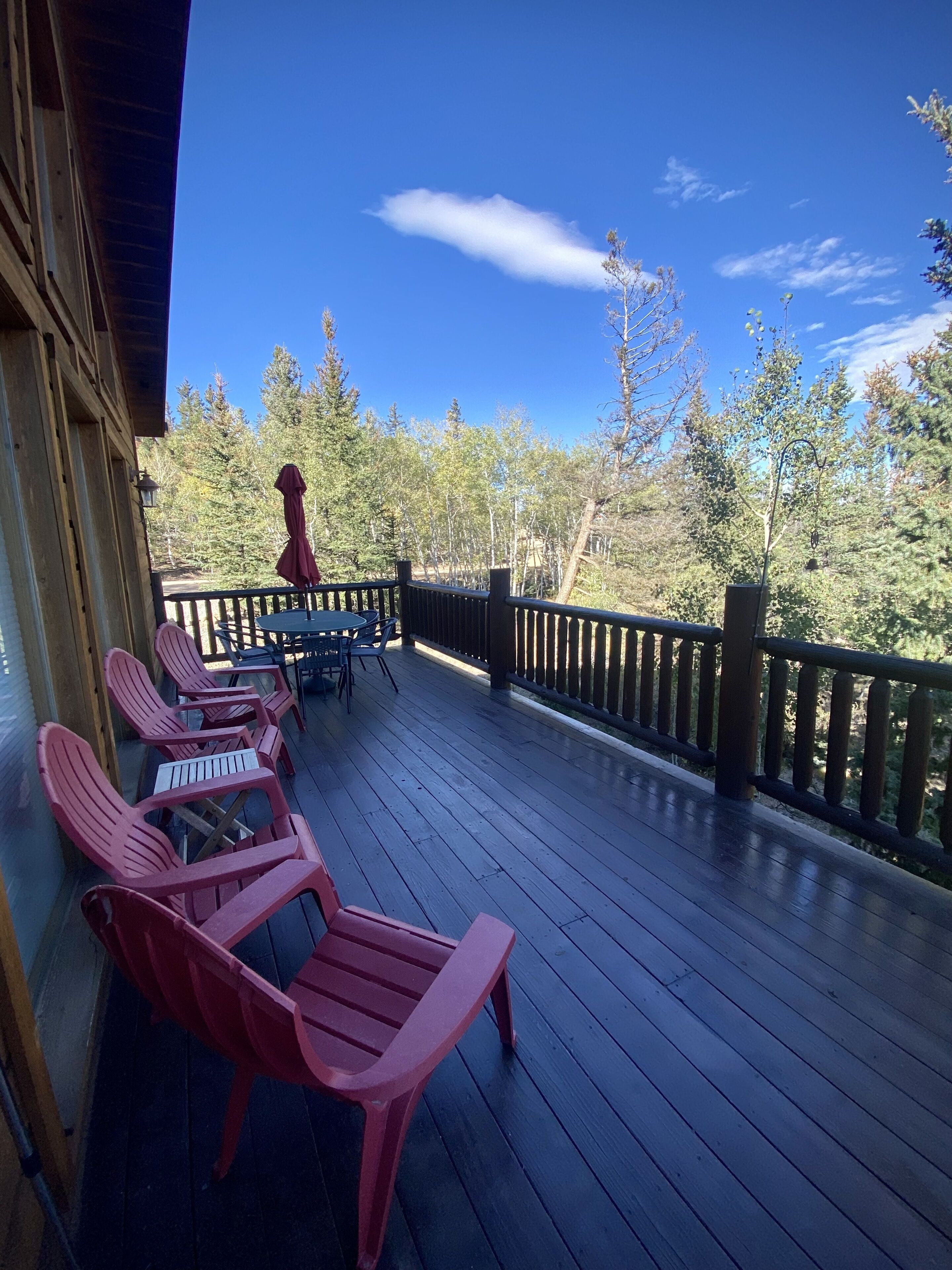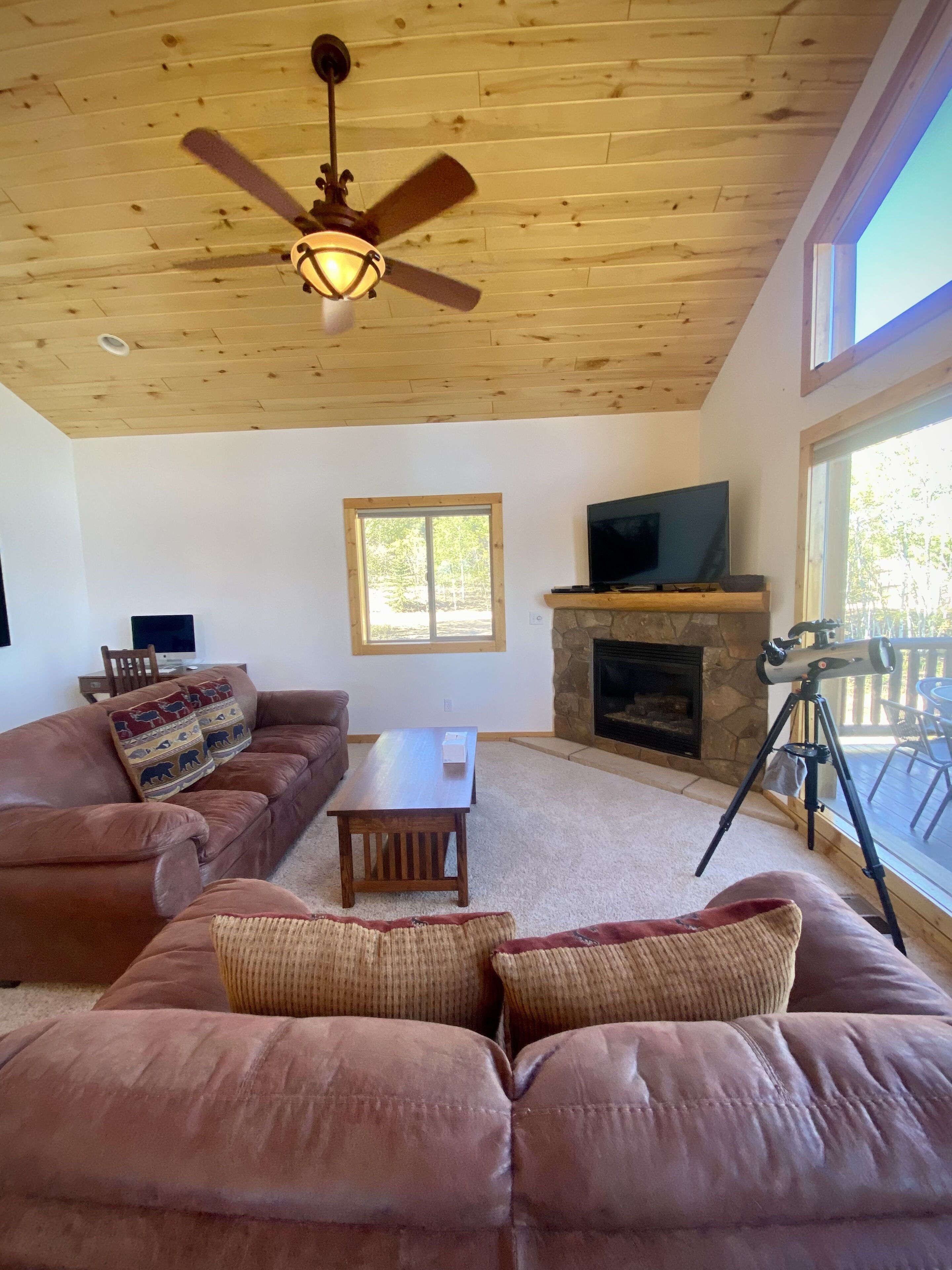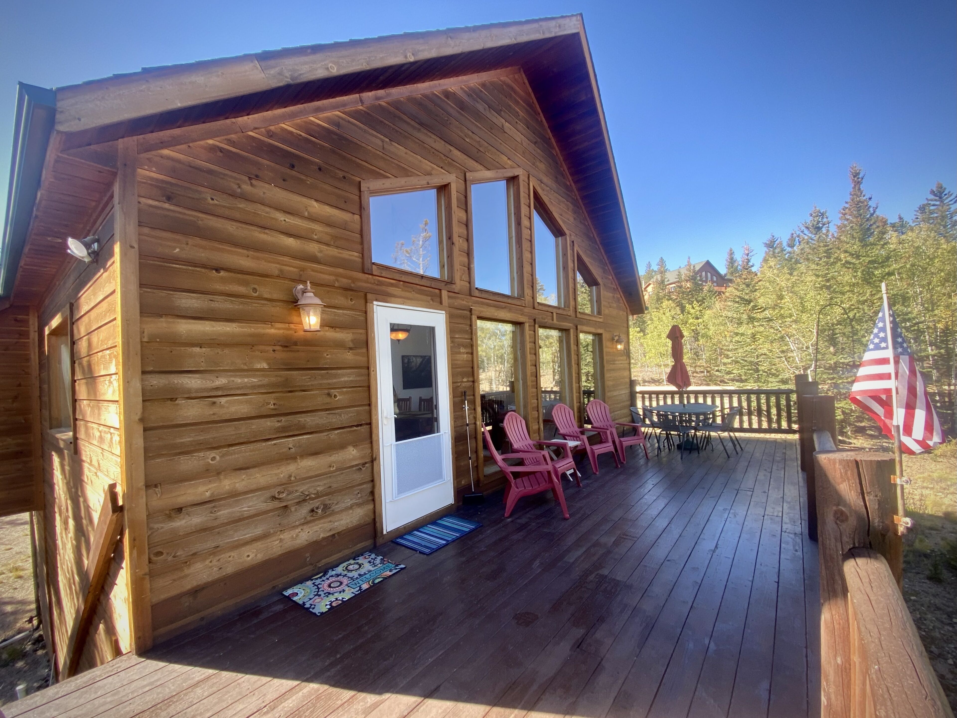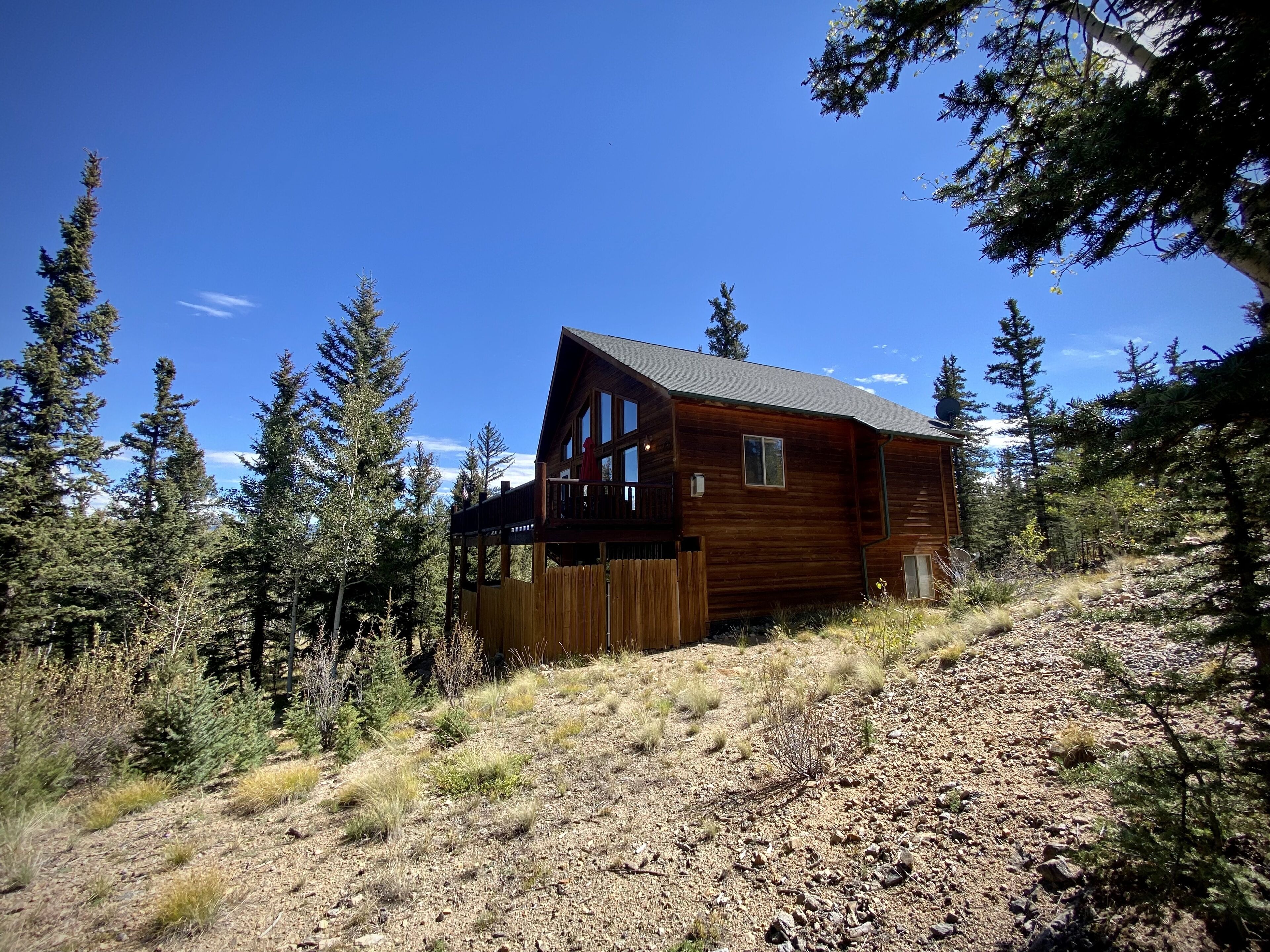 New! Beautiful Mountain Home with Playground on Treed Acreage - Woodland Vista Retreat The Woodland Vista Retreat is a beautiful, 3 bedroom / 2 bathroom, family friendly modern mountain home on gorgeous aspen and pine treed acreage. Wind your way across the prairie valley to adventure with incredible mountains in your rearview mirror. As you make your way up the quiet, scenic country roads, enjoy the ever changing aspens, ever enduring pines and sightings of deer, elk, foxes, squirrels and other wildlife native to the area. As you enter the upper level of the home, you are greeted by the floor to ceiling windows of the great room that feature beautiful views on the heavily wooded property. The open concept great room and kitchen make spending quality time as a family easy! The ample counter space of the well appointed kitchen ensures that you have everything you need to whip up a delicious meal for your loved ones, then settle in for your meal time or a good game around the dining table. Comfortable seating around the gas fireplace and television with Roku streaming provides a cozy central living space for all to share with a nearby corner desk space, convenient for work or play.The forest east bedroom features a large window with elevated woodland views facing east, a queen size bed fitted with luxurious cotton bed linens, a large dresser and a spacious closet.The rex room features a large window with elevated woodland views, 2 twin size beds fitted with luxurious cotton bed linens, a bookcase filled with kids books and games, a dresser and a spacious closet. The central 2nd floor bathroom offers a standard vanity and toilet with a bathtub/shower combo so you can choose to start the day with a quick and refreshing rinse or you can sink in for a long, hot soak after all the activities a day in the Colorado Rocky Mountains may afford.Up a small ladder to the loft, you'll find a quiet, cozy kid's nook. A child's dream perch, with a small window looking over the woodland, an activity table, toy bins and bean bag chairs. Wander down the bright and cheerful stairway to the ground floor of the home. A large entryway ensures that you have all the storage space you need for hunting supplies, ski gear, hiking equipment, or anything else needed for your high alpine adventures. The spacious entertainment room offers plentiful seating and a variety of activity options including board games, darts, a freestanding punching bag and television with Roku streaming. The master suite features a large ground level window, a queen size bed fitted with luxurious cotton bed linens, a dresser and spacious closet and ensuite access to the Jack-'n-Jill style bathroom.The ground floor bathroom offers a standard vanity and toilet with a large walk-in shower and the ground floor utility room contains a full size washer and dryer set available for guest use, so no need to waste precious vacation time making the trek to town and waiting at the laundromat.The large elevated deck of the home offers comfortable seating, an outdoor dining table and chairs, and a propane BBQ grill. From the deck, keep a watchful eye on the youngsters as they play the day away on the woodland playground equipment that includes a climbing wall to the top of the playhouse and a variety of swing options among the pines. A fenced in space under the deck provides the perfect place to store gear. A short walk from the deck, the propane fire pit offers a quintessential high alpine experience and is the perfect place to set up the telescope for an evening spent stargazing. Indian Mountain is home to a variety of wildlife and this spectacular location affords opportunities to observe elk, deer and foxes (just to name a few!) right on the property. Additionally, you may be able to see moose in their natural habitat in the wetland areas located around the nearby town of Fairplay.The Woodland Vista Retreat driveway is plowed in the winter and the roadways are maintained by the county, but FOUR-WHEEL DRIVE VEHICLES ARE REQUIRED from November through May due to the frequent snow storms in this area.Park County is an activity center of the Colorado Rocky Mountains, it's a great "Base Camp!" If you can think of an outdoor activity, you will probably find it within 10-20 minutes of the cabin. Activities include skiing, snowboarding, hiking, mountain climbing, snow-shoeing, horseback riding (winter too!), ice climbing, fishing, hunting, rafting, snowmobiling, 4-wheeling, mine exploration, canoeing, kayaking, and much much more.DISCLOSURES* This home is located in the Central Rockies at approx.9,600 ft Please be advised that elevation and weather should be considered when deciding if this location is appropriate.* Guests are required to have a four-wheel drive vehicle with adequate snow tires or chains during the winter months from November through May. The area is subject to frequent unpredictable and adverse weather conditions which can make travel difficult. * This home is located in a rural high alpine mountain environment where wildlife, insects and rodents may be encountered. The home is also equipped with a well water system and may have variability in taste, smell or mineral content based on time of year and usage.* Guests will be required to sign a vacation rental agreement after booking.* Outdoor security camera(s) are in use at this property, and may be used to verify guest occupancy. Security camera(s) are solely for visual (no audio) monitoring outside the property and are not present inside the property.