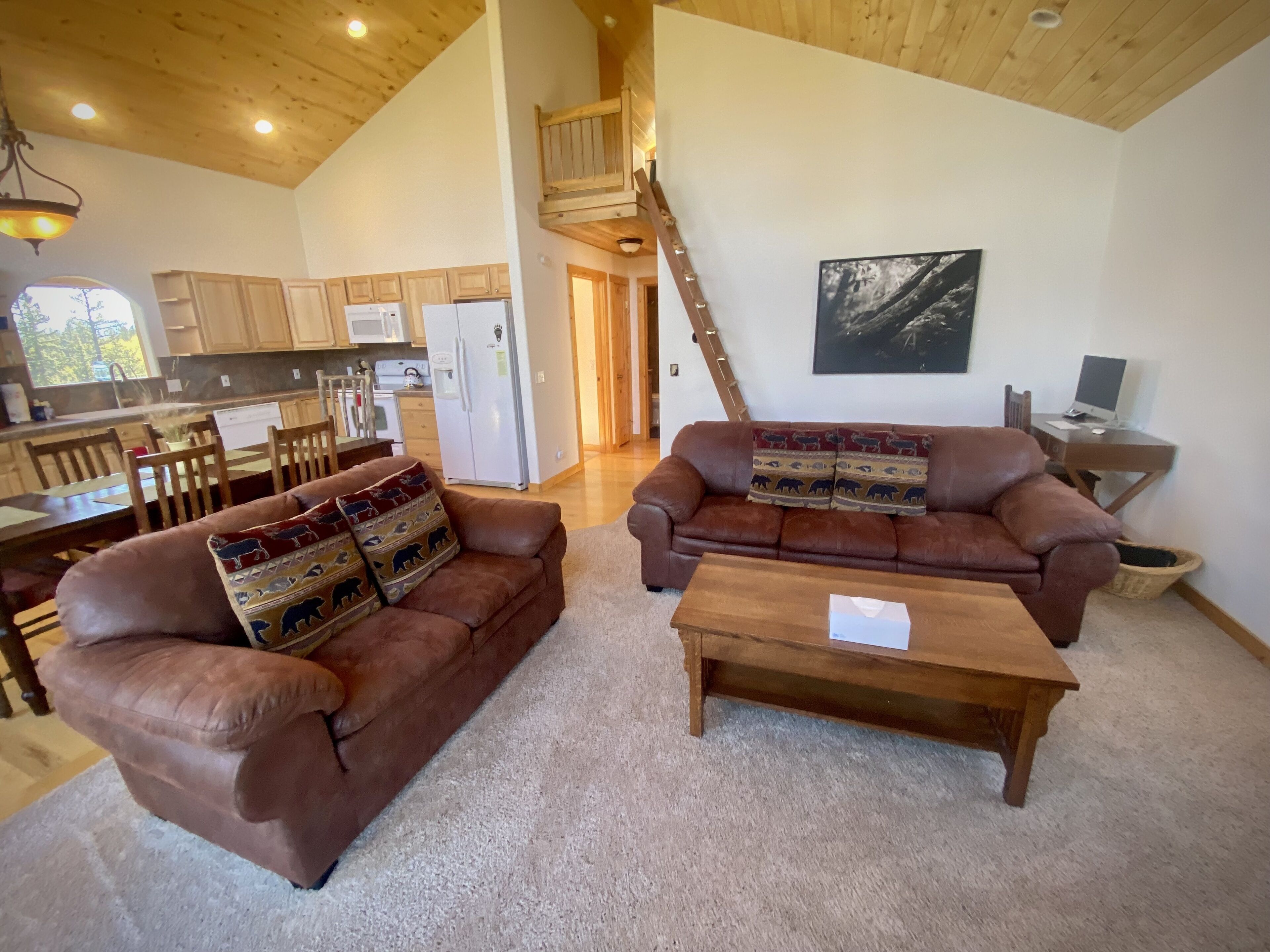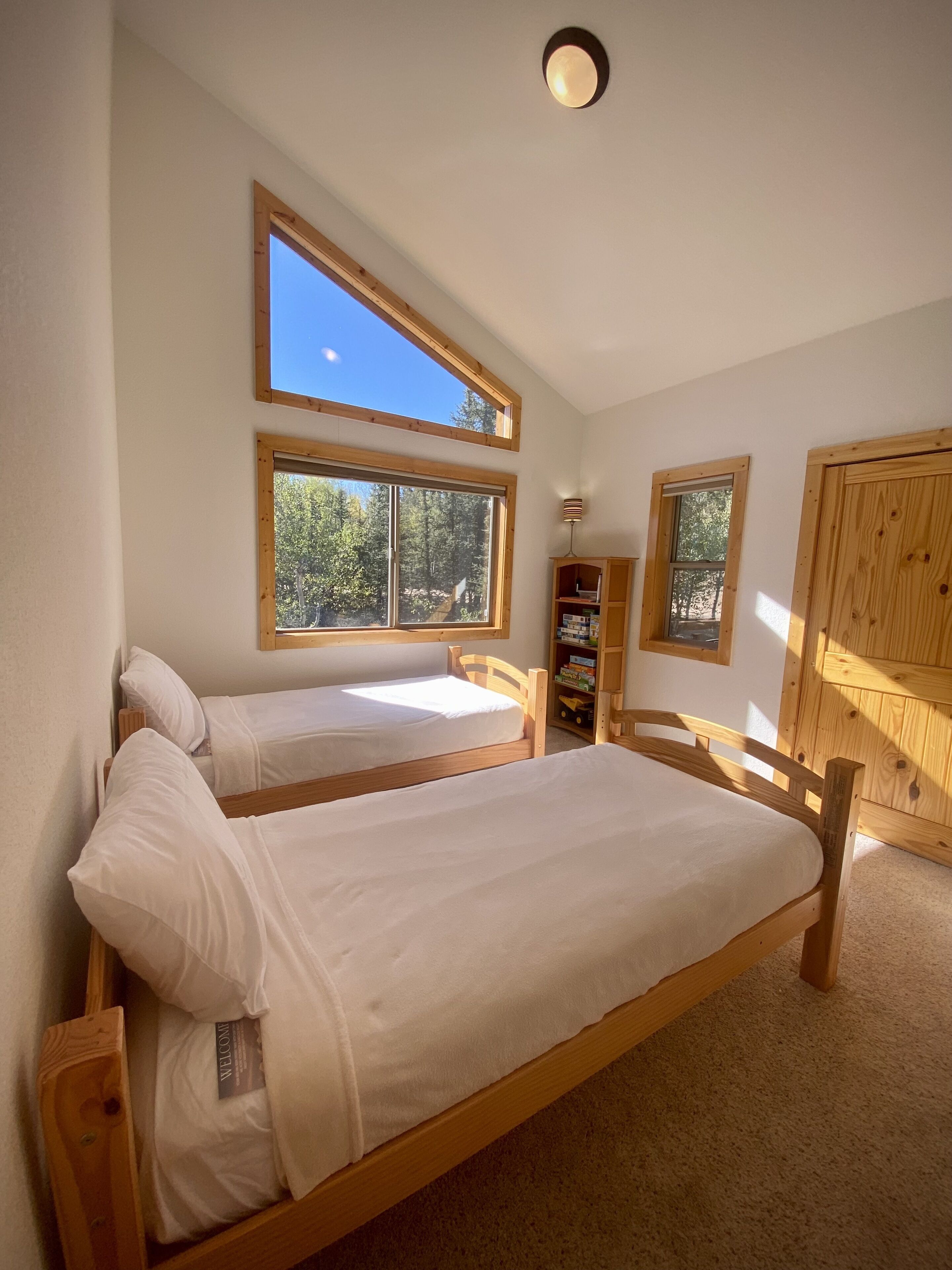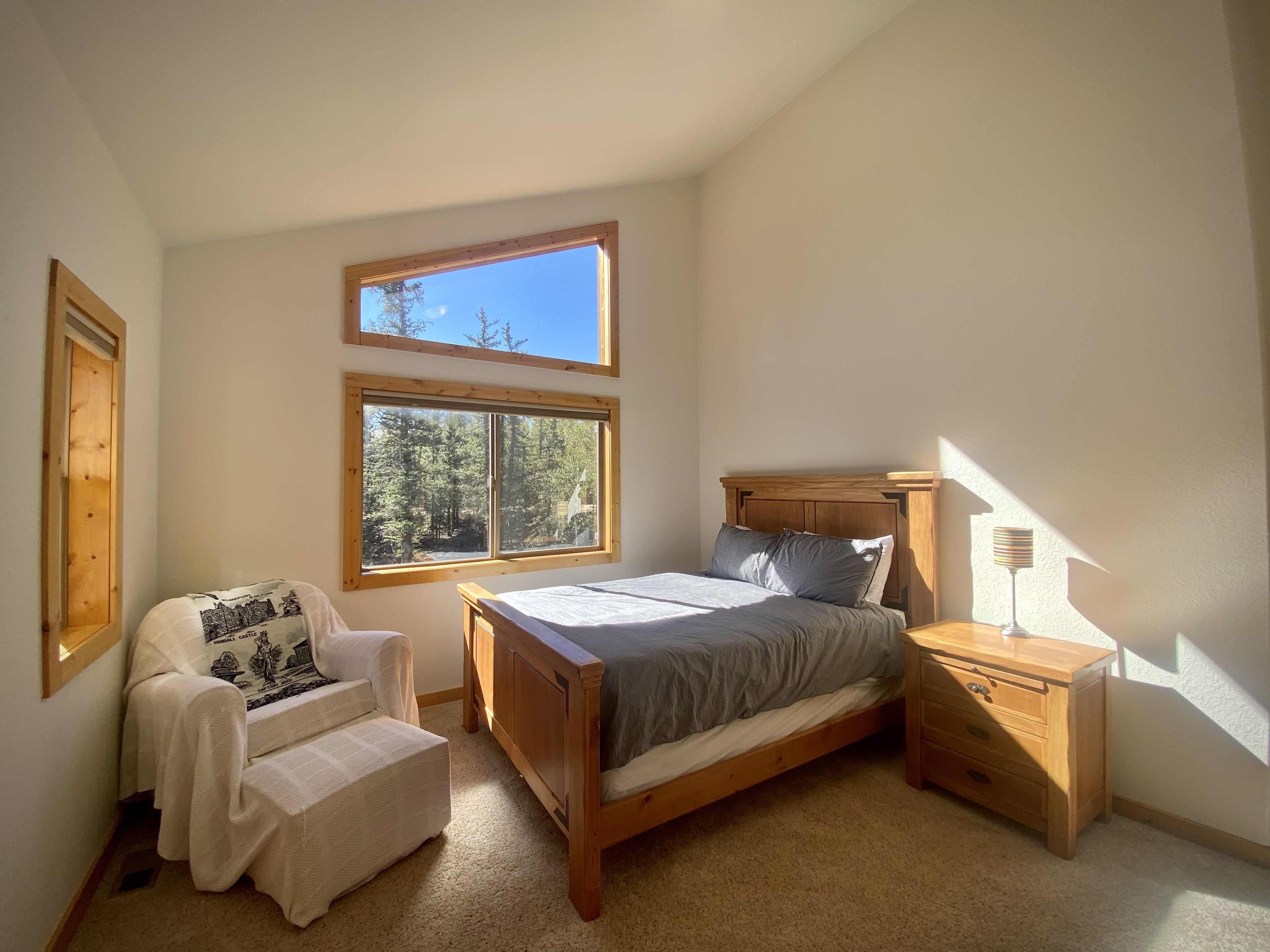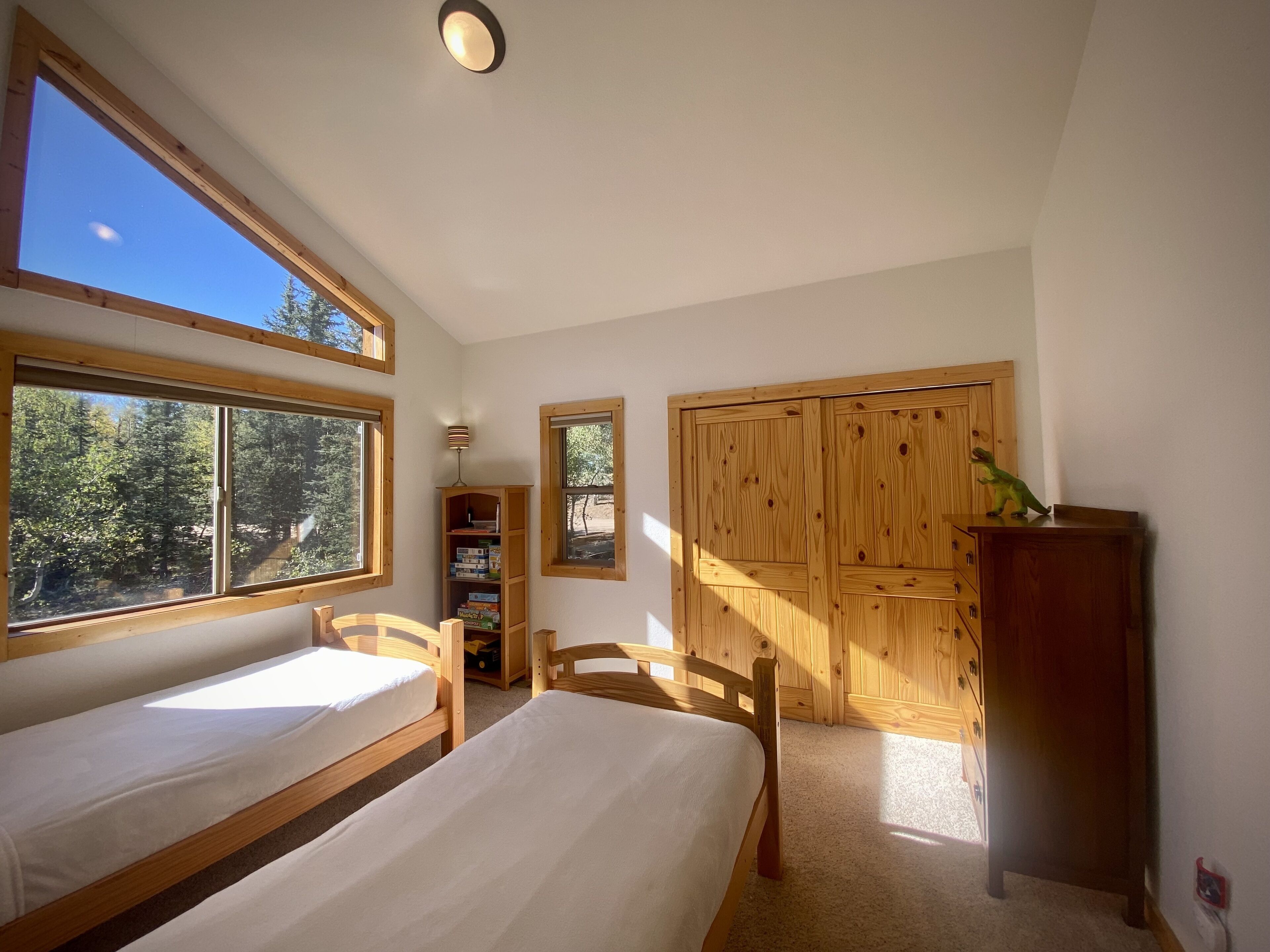 New! Beautiful Mountain Home with Playground on Treed Acreage - Woodland Vista Retreat The Woodland Vista Retreat is a beautiful, 3 bedroom / 2 bathroom, family friendly modern mountain home on gorgeous aspen and pine treed acreage. Wind your way across the prairie valley to adventure with incredible mountains in your rearview mirror. As you make your way up the quiet, scenic country roads, enjoy the ever changing aspens, ever enduring pines and sightings of deer, elk, foxes, squirrels and other wildlife native to the area. As you enter the upper level of the home, you are greeted by the floor to ceiling windows of the great room that feature beautiful views on the heavily wooded property. The open concept great room and kitchen make spending quality time as a family easy! The ample counter space of the well appointed kitchen ensures that you have everything you need to whip up a delicious meal for your loved ones, then settle in for your meal time or a good game around the dining table. Comfortable seating around the gas fireplace and television with Roku streaming provides a cozy central living space for all to share with a nearby corner desk space, convenient for work or play.The forest east bedroom features a large window with elevated woodland views facing east, a queen size bed fitted with luxurious cotton bed linens, a large dresser and a spacious closet.The rex room features a large window with elevated woodland views, 2 twin size beds fitted with luxurious cotton bed linens, a bookcase filled with kids books and games, a dresser and a spacious closet. The central 2nd floor bathroom offers a standard vanity and toilet with a bathtub/shower combo so you can choose to start the day with a quick and refreshing rinse or you can sink in for a long, hot soak after all the activities a day in the Colorado Rocky Mountains may afford.Up a small ladder to the loft, you'll find a quiet, cozy kid's nook. A child's dream perch, with a small window looking over the woodland, an activity table, toy bins and bean bag chairs. Wander down the bright and cheerful stairway to the ground floor of the home. A large entryway ensures that you have all the storage space you need for hunting supplies, ski gear, hiking equipment, or anything else needed for your high alpine adventures. The spacious entertainment room offers plentiful seating and a variety of activity options including board games, darts, a freestanding punching bag and television with Roku streaming. The master suite features a large ground level window, a queen size bed fitted with luxurious cotton bed linens, a dresser and spacious closet and ensuite access to the Jack-'n-Jill style bathroom.The ground floor bathroom offers a standard vanity and toilet with a large walk-in shower and the ground floor utility room contains a full size washer and dryer set available for guest use, so no need to waste precious vacation time making the trek to town and waiting at the laundromat.The large elevated deck of the home offers comfortable seating, an outdoor dining table and chairs, and a propane BBQ grill. From the deck, keep a watchful eye on the youngsters as they play the day away on the woodland playground equipment that includes a climbing wall to the top of the playhouse and a variety of swing options among the pines. A fenced in space under the deck provides the perfect place to store gear. A short walk from the deck, the propane fire pit offers a quintessential high alpine experience and is the perfect place to set up the telescope for an evening spent stargazing. Indian Mountain is home to a variety of wildlife and this spectacular location affords opportunities to observe elk, deer and foxes (just to name a few!) right on the property. Additionally, you may be able to see moose in their natural habitat in the wetland areas located around the nearby town of Fairplay.The Woodland Vista Retreat driveway is plowed in the winter and the roadways are maintained by the county, but FOUR-WHEEL DRIVE VEHICLES ARE REQUIRED from November through May due to the frequent snow storms in this area.Park County is an activity center of the Colorado Rocky Mountains, it's a great "Base Camp!" If you can think of an outdoor activity, you will probably find it within 10-20 minutes of the cabin. Activities include skiing, snowboarding, hiking, mountain climbing, snow-shoeing, horseback riding (winter too!), ice climbing, fishing, hunting, rafting, snowmobiling, 4-wheeling, mine exploration, canoeing, kayaking, and much much more.DISCLOSURES* This home is located in the Central Rockies at approx.9,600 ft Please be advised that elevation and weather should be considered when deciding if this location is appropriate.* Guests are required to have a four-wheel drive vehicle with adequate snow tires or chains during the winter months from November through May. The area is subject to frequent unpredictable and adverse weather conditions which can make travel difficult. * This home is located in a rural high alpine mountain environment where wildlife, insects and rodents may be encountered. The home is also equipped with a well water system and may have variability in taste, smell or mineral content based on time of year and usage.* Guests will be required to sign a vacation rental agreement after booking.* Outdoor security camera(s) are in use at this property, and may be used to verify guest occupancy. Security camera(s) are solely for visual (no audio) monitoring outside the property and are not present inside the property.