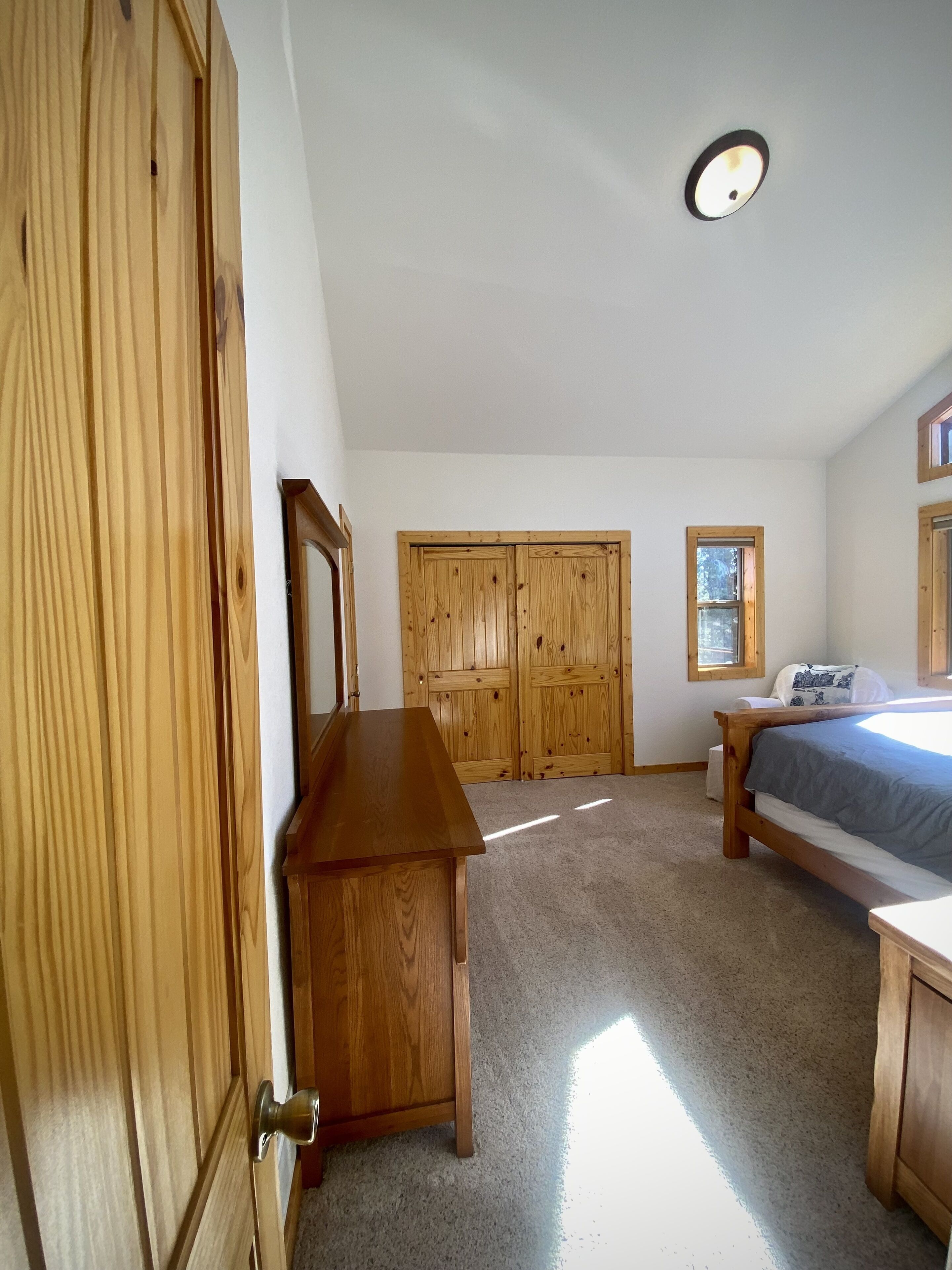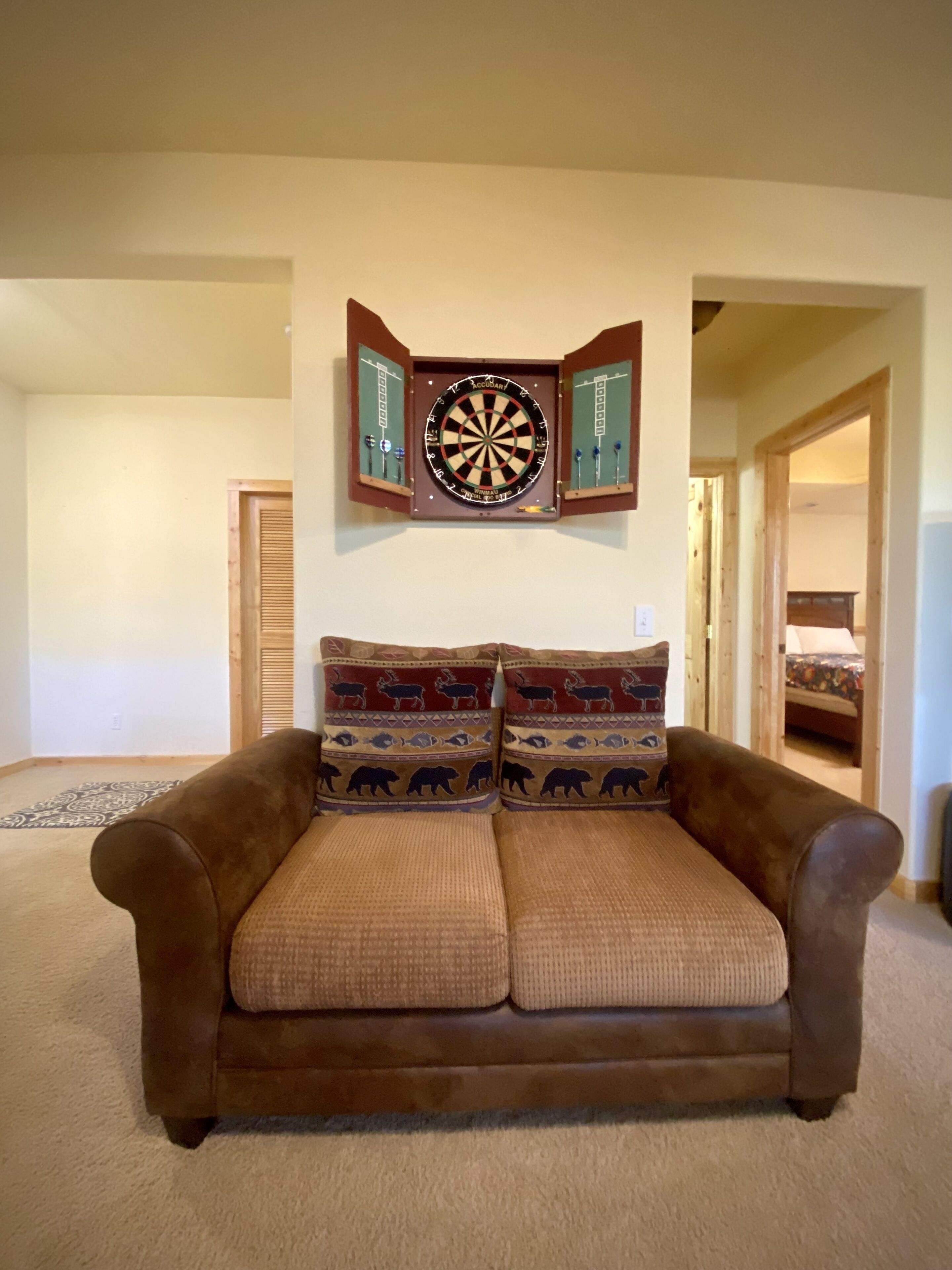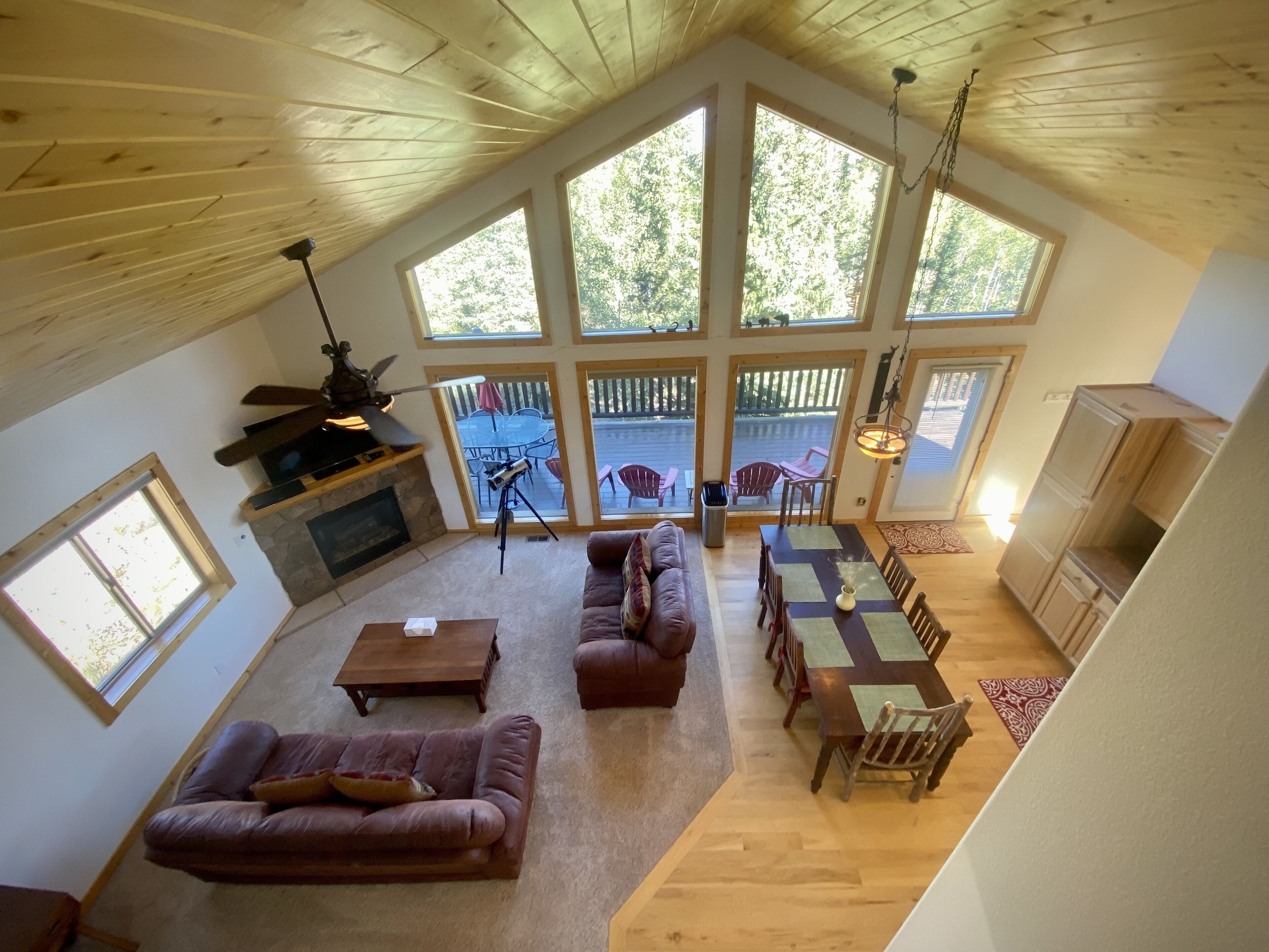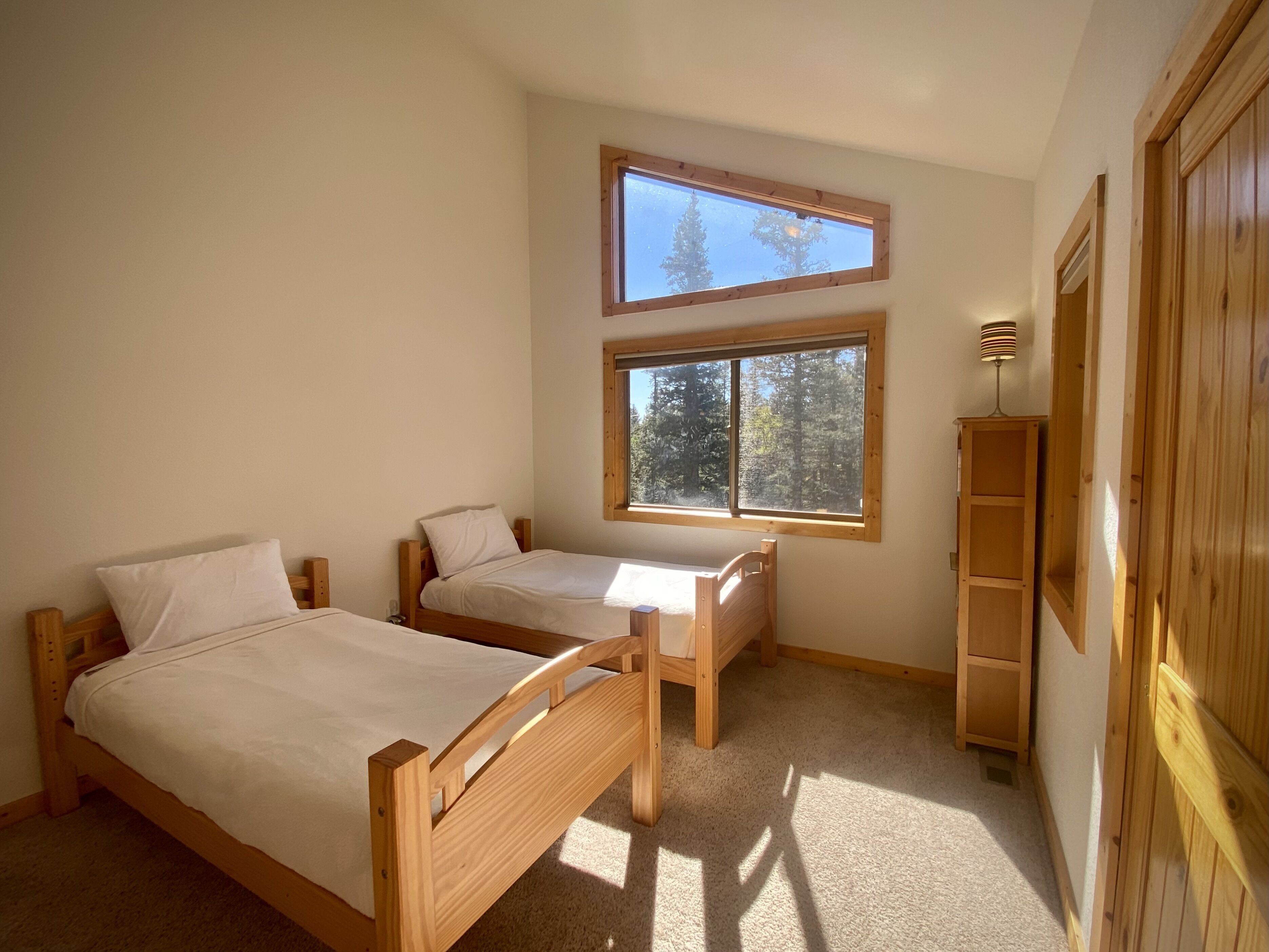 New! Beautiful Mountain Home with Playground on Treed Acreage - Woodland Vista Retreat The Woodland Vista Retreat is a beautiful, 3 bedroom / 2 bathroom, family friendly modern mountain home on gorgeous aspen and pine treed acreage. Wind your way across the prairie valley to adventure with incredible mountains in your rearview mirror. As you make your way up the quiet, scenic country roads, enjoy the ever changing aspens, ever enduring pines and sightings of deer, elk, foxes, squirrels and other wildlife native to the area. As you enter the upper level of the home, you are greeted by the floor to ceiling windows of the great room that feature beautiful views on the heavily wooded property. The open concept great room and kitchen make spending quality time as a family easy! The ample counter space of the well appointed kitchen ensures that you have everything you need to whip up a delicious meal for your loved ones, then settle in for your meal time or a good game around the dining table. Comfortable seating around the gas fireplace and television with Roku streaming provides a cozy central living space for all to share with a nearby corner desk space, convenient for work or play.The forest east bedroom features a large window with elevated woodland views facing east, a queen size bed fitted with luxurious cotton bed linens, a large dresser and a spacious closet.The rex room features a large window with elevated woodland views, 2 twin size beds fitted with luxurious cotton bed linens, a bookcase filled with kids books and games, a dresser and a spacious closet. The central 2nd floor bathroom offers a standard vanity and toilet with a bathtub/shower combo so you can choose to start the day with a quick and refreshing rinse or you can sink in for a long, hot soak after all the activities a day in the Colorado Rocky Mountains may afford.Up a small ladder to the loft, you'll find a quiet, cozy kid's nook. A child's dream perch, with a small window looking over the woodland, an activity table, toy bins and bean bag chairs. Wander down the bright and cheerful stairway to the ground floor of the home. A large entryway ensures that you have all the storage space you need for hunting supplies, ski gear, hiking equipment, or anything else needed for your high alpine adventures. The spacious entertainment room offers plentiful seating and a variety of activity options including board games, darts, a freestanding punching bag and television with Roku streaming. The master suite features a large ground level window, a queen size bed fitted with luxurious cotton bed linens, a dresser and spacious closet and ensuite access to the Jack-'n-Jill style bathroom.The ground floor bathroom offers a standard vanity and toilet with a large walk-in shower and the ground floor utility room contains a full size washer and dryer set available for guest use, so no need to waste precious vacation time making the trek to town and waiting at the laundromat.The large elevated deck of the home offers comfortable seating, an outdoor dining table and chairs, and a propane BBQ grill. From the deck, keep a watchful eye on the youngsters as they play the day away on the woodland playground equipment that includes a climbing wall to the top of the playhouse and a variety of swing options among the pines. A fenced in space under the deck provides the perfect place to store gear. A short walk from the deck, the propane fire pit offers a quintessential high alpine experience and is the perfect place to set up the telescope for an evening spent stargazing. Indian Mountain is home to a variety of wildlife and this spectacular location affords opportunities to observe elk, deer and foxes (just to name a few!) right on the property. Additionally, you may be able to see moose in their natural habitat in the wetland areas located around the nearby town of Fairplay.The Woodland Vista Retreat driveway is plowed in the winter and the roadways are maintained by the county, but FOUR-WHEEL DRIVE VEHICLES ARE REQUIRED from November through May due to the frequent snow storms in this area.Park County is an activity center of the Colorado Rocky Mountains, it's a great "Base Camp!" If you can think of an outdoor activity, you will probably find it within 10-20 minutes of the cabin. Activities include skiing, snowboarding, hiking, mountain climbing, snow-shoeing, horseback riding (winter too!), ice climbing, fishing, hunting, rafting, snowmobiling, 4-wheeling, mine exploration, canoeing, kayaking, and much much more.DISCLOSURES* This home is located in the Central Rockies at approx.9,600 ft Please be advised that elevation and weather should be considered when deciding if this location is appropriate.* Guests are required to have a four-wheel drive vehicle with adequate snow tires or chains during the winter months from November through May. The area is subject to frequent unpredictable and adverse weather conditions which can make travel difficult. * This home is located in a rural high alpine mountain environment where wildlife, insects and rodents may be encountered. The home is also equipped with a well water system and may have variability in taste, smell or mineral content based on time of year and usage.* Guests will be required to sign a vacation rental agreement after booking.* Outdoor security camera(s) are in use at this property, and may be used to verify guest occupancy. Security camera(s) are solely for visual (no audio) monitoring outside the property and are not present inside the property.
