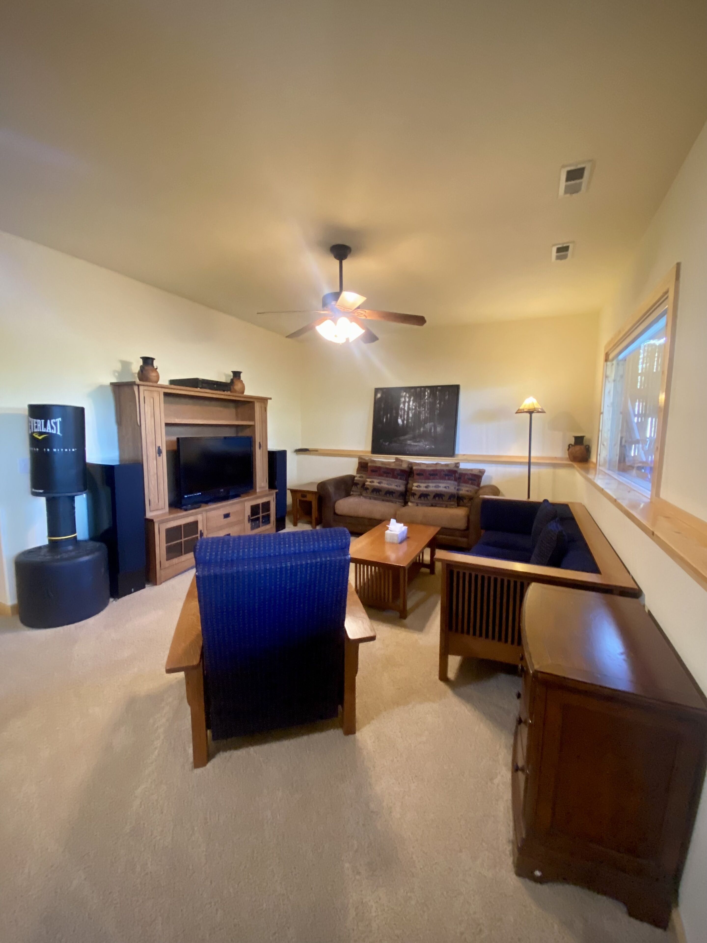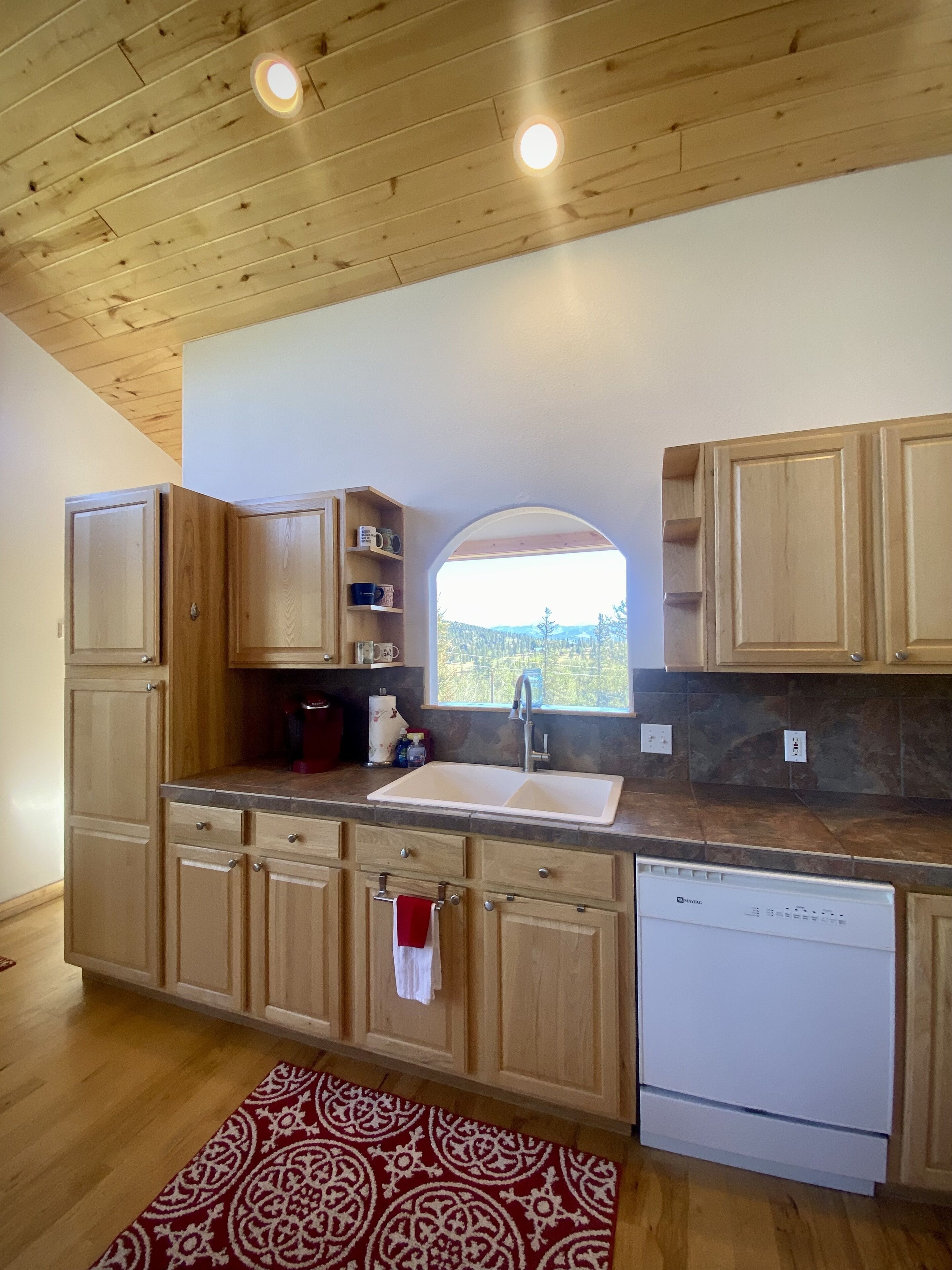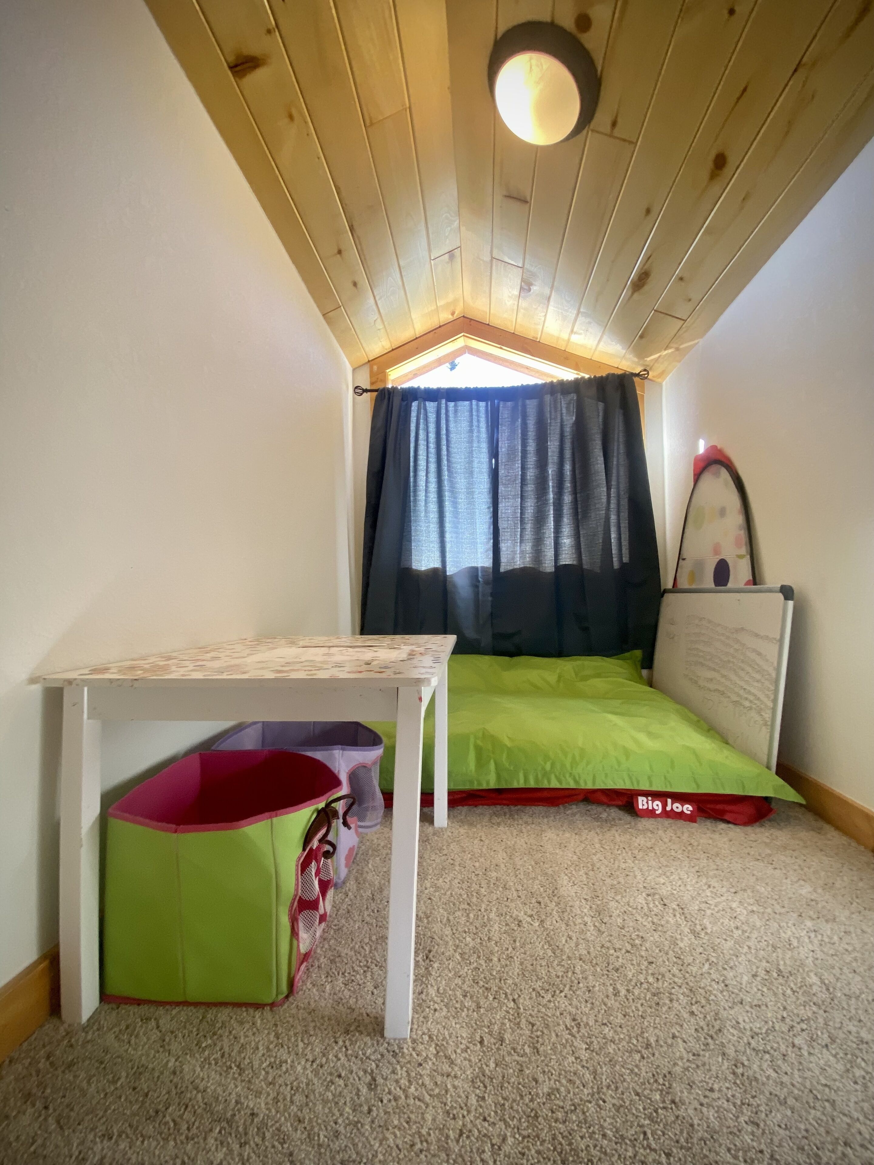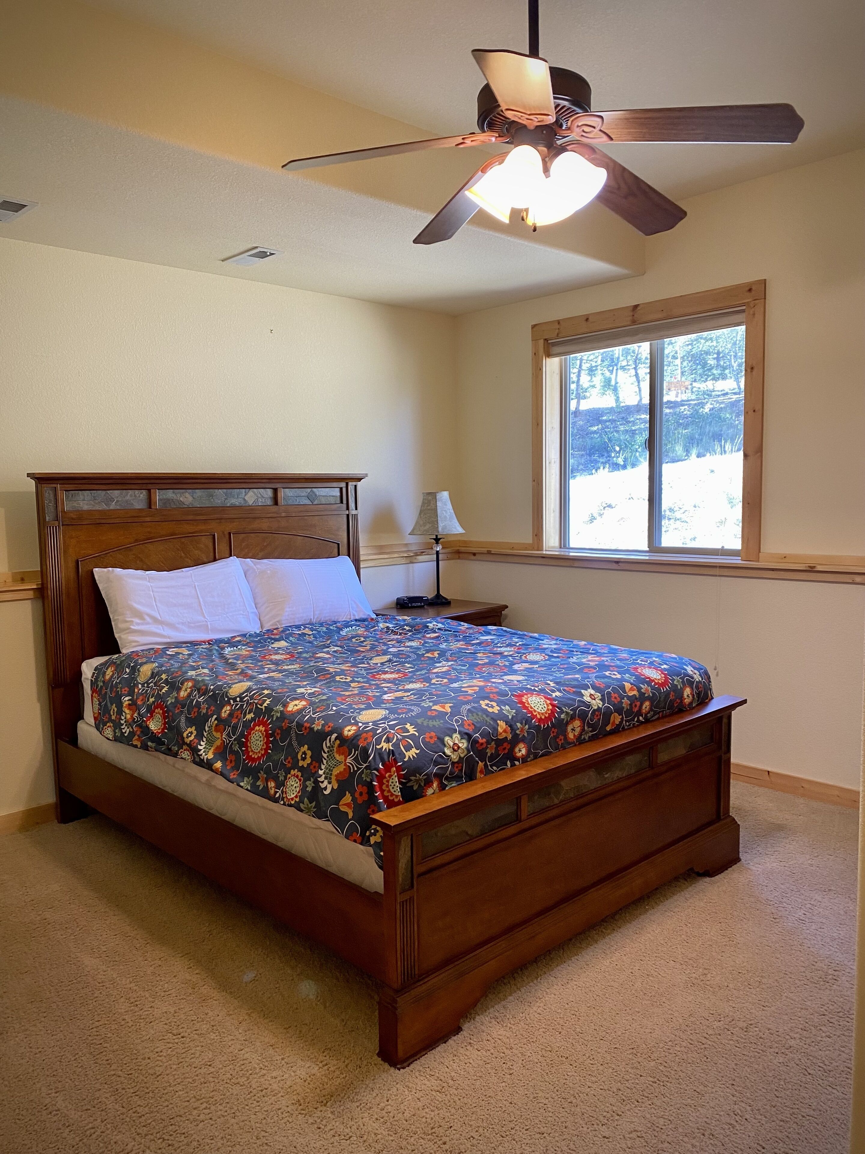 New! Beautiful Mountain Home with Playground on Treed Acreage - Woodland Vista Retreat The Woodland Vista Retreat is a beautiful, 3 bedroom / 2 bathroom, family friendly modern mountain home on gorgeous aspen and pine treed acreage. Wind your way across the prairie valley to adventure with incredible mountains in your rearview mirror. As you make your way up the quiet, scenic country roads, enjoy the ever changing aspens, ever enduring pines and sightings of deer, elk, foxes, squirrels and other wildlife native to the area. As you enter the upper level of the home, you are greeted by the floor to ceiling windows of the great room that feature beautiful views on the heavily wooded property. The open concept great room and kitchen make spending quality time as a family easy! The ample counter space of the well appointed kitchen ensures that you have everything you need to whip up a delicious meal for your loved ones, then settle in for your meal time or a good game around the dining table. Comfortable seating around the gas fireplace and television with Roku streaming provides a cozy central living space for all to share with a nearby corner desk space, convenient for work or play.The forest east bedroom features a large window with elevated woodland views facing east, a queen size bed fitted with luxurious cotton bed linens, a large dresser and a spacious closet.The rex room features a large window with elevated woodland views, 2 twin size beds fitted with luxurious cotton bed linens, a bookcase filled with kids books and games, a dresser and a spacious closet. The central 2nd floor bathroom offers a standard vanity and toilet with a bathtub/shower combo so you can choose to start the day with a quick and refreshing rinse or you can sink in for a long, hot soak after all the activities a day in the Colorado Rocky Mountains may afford.Up a small ladder to the loft, you'll find a quiet, cozy kid's nook. A child's dream perch, with a small window looking over the woodland, an activity table, toy bins and bean bag chairs. Wander down the bright and cheerful stairway to the ground floor of the home. A large entryway ensures that you have all the storage space you need for hunting supplies, ski gear, hiking equipment, or anything else needed for your high alpine adventures. The spacious entertainment room offers plentiful seating and a variety of activity options including board games, darts, a freestanding punching bag and television with Roku streaming. The master suite features a large ground level window, a queen size bed fitted with luxurious cotton bed linens, a dresser and spacious closet and ensuite access to the Jack-'n-Jill style bathroom.The ground floor bathroom offers a standard vanity and toilet with a large walk-in shower and the ground floor utility room contains a full size washer and dryer set available for guest use, so no need to waste precious vacation time making the trek to town and waiting at the laundromat.The large elevated deck of the home offers comfortable seating, an outdoor dining table and chairs, and a propane BBQ grill. From the deck, keep a watchful eye on the youngsters as they play the day away on the woodland playground equipment that includes a climbing wall to the top of the playhouse and a variety of swing options among the pines. A fenced in space under the deck provides the perfect place to store gear. A short walk from the deck, the propane fire pit offers a quintessential high alpine experience and is the perfect place to set up the telescope for an evening spent stargazing. Indian Mountain is home to a variety of wildlife and this spectacular location affords opportunities to observe elk, deer and foxes (just to name a few!) right on the property. Additionally, you may be able to see moose in their natural habitat in the wetland areas located around the nearby town of Fairplay.The Woodland Vista Retreat driveway is plowed in the winter and the roadways are maintained by the county, but FOUR-WHEEL DRIVE VEHICLES ARE REQUIRED from November through May due to the frequent snow storms in this area.Park County is an activity center of the Colorado Rocky Mountains, it's a great "Base Camp!" If you can think of an outdoor activity, you will probably find it within 10-20 minutes of the cabin. Activities include skiing, snowboarding, hiking, mountain climbing, snow-shoeing, horseback riding (winter too!), ice climbing, fishing, hunting, rafting, snowmobiling, 4-wheeling, mine exploration, canoeing, kayaking, and much much more.DISCLOSURES* This home is located in the Central Rockies at approx.9,600 ft Please be advised that elevation and weather should be considered when deciding if this location is appropriate.* Guests are required to have a four-wheel drive vehicle with adequate snow tires or chains during the winter months from November through May. The area is subject to frequent unpredictable and adverse weather conditions which can make travel difficult. * This home is located in a rural high alpine mountain environment where wildlife, insects and rodents may be encountered. The home is also equipped with a well water system and may have variability in taste, smell or mineral content based on time of year and usage.* Guests will be required to sign a vacation rental agreement after booking.* Outdoor security camera(s) are in use at this property, and may be used to verify guest occupancy. Security camera(s) are solely for visual (no audio) monitoring outside the property and are not present inside the property.