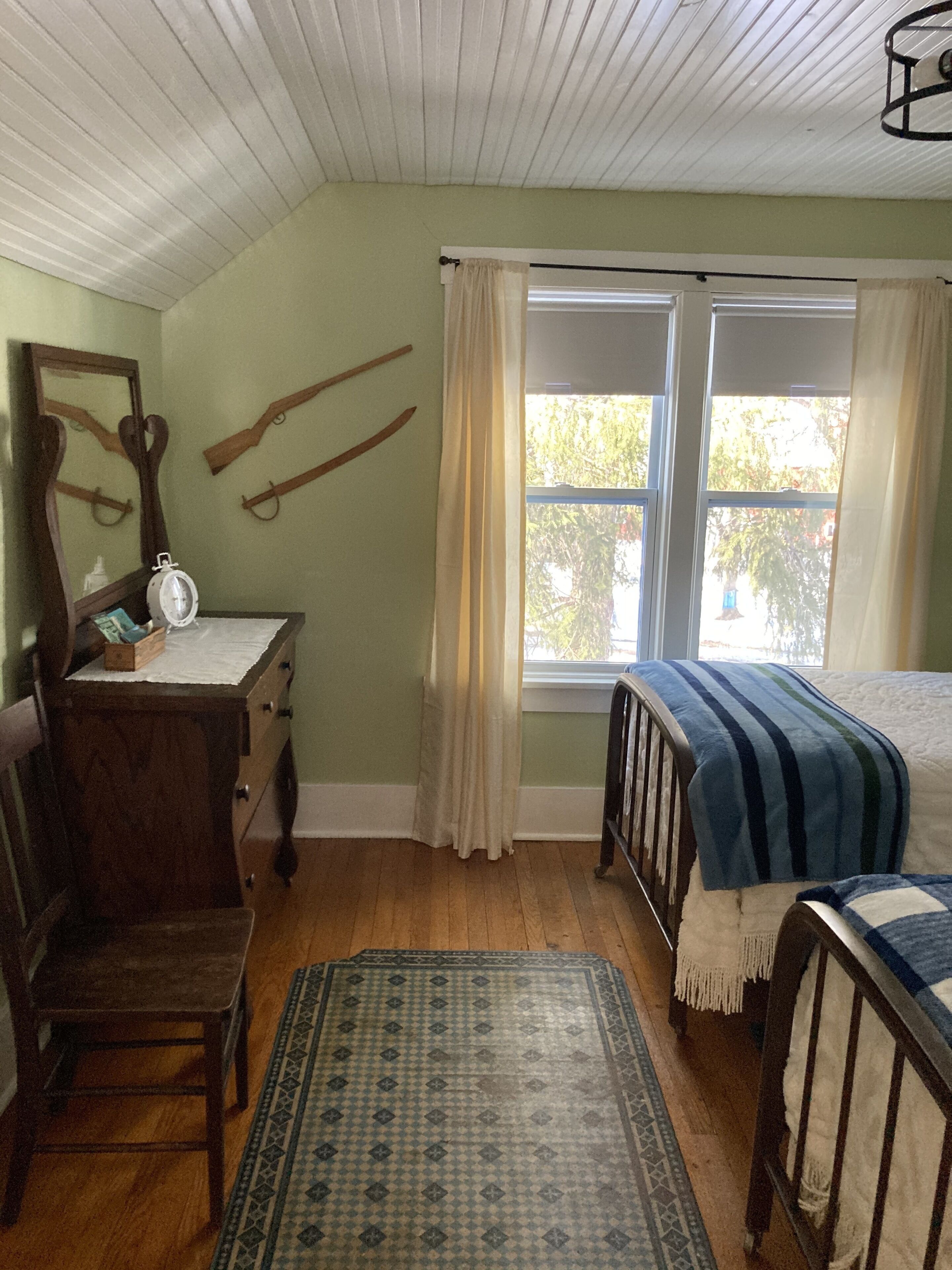 Step back in time at Clarence's Place retreat, our little farm in the woods. We invite you to stay at our little farm in the woods. It is a quiet and serene setting in the town of Aurora, Florence County, a very rural area in northern Wisconsin. We have over 100 acres, which you are welcome to explore. In the winter, we have sleds and sledding hills; there are always a couple sets of snowshoes available for your use. Weather permitting, you will be our guests on a complimentary horse drawn sleigh or wagon ride, which winds down through the fields and virgin timber forrest. There is a fire pit in the woods, which is a stop on our winter rides. We also have a fire pit near the house which is available for your use during seasons when burning is permitted. Our working farm is adjacent to Clarence's Place and you are welcome to observe and/or participate in activities which are going on there, so pack your "play clothes" if that is of interest to you. We make maple syrup in the early spring (guests receive a complimentary bottle); calves arrive a little later in the spring. We have cows, horses, mules and a donkey named Clover. There is a pond where the little "peeps" (frogs) can be heard singing. Wildlife is common here and we can always count on deer and turkey sightings. Eagles are not uncommon. From your windows you will see horses grazing in the nearby fields. In addition to farm activities, we have an abundance of beautiful water falls in the county. There are also many lakes for swimming and fishing.; You can "float" the oxbow on the Pine River, which is about a 10 minute drive from Clarence's Place. Bring your own tube or rentals are available at the landing. The float is free. There is great trout fishing on the area's many wild rivers and streams. In winter, we have nearby downhill ski hills as well as cross country ski trails. We boast of many fine restaurants in the area. You'll take a step back in time when you walk into the 3 bedroom, one bath home, which we refer to as the "Retreat at Clarence's Place". It is a very peaceful home. Although it has a large TV and WiFi, you may find that you prefer to relax, pick up a book to read or just sit on the porch listening to the birds sing. We are often frustrated when we visit "museum homes" with rope barriers, as we can only look into the rooms. In the Retreat, you may go right in and make yourself comfortable. The house was built in 1920 and is much the same as it was 100 years ago. We encourage you to use and enjoy the antiques which you will find throughout the home. There are furniture, dishes, magazines (some dating back to the late teens of the 20th century), which we think you'll be interested in. We are sorry, but this home is not suitable for those who have trouble getting around. There are steps to get in and out of the house, as well as a second floor. The tub/shower is an antique clawfoot. The downstairs bedroom has a queen size bed. One bedroom upstairs has a queen and a twin, while the other has two twin beds. all bedding is furnished, as well as dishes, pots and pans, coffee pot, blender, microwave, tv and wifi. You'll have to wash your dishes in the antique cast iron sink. There is no washer and dryer but a laundromat is available in nearby Kingsford, MI. Check us out on Facebook.