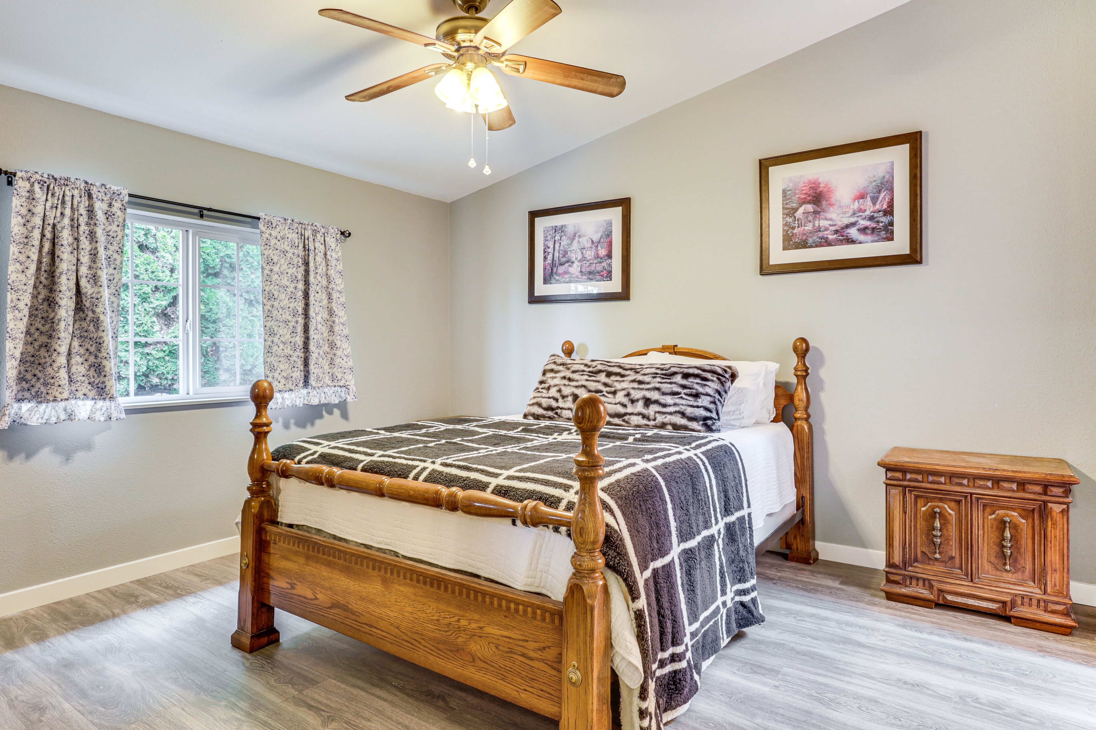 Charming Stayton Home w/ Deck + Smart TV! Discover a peaceful and relaxing escape at this 2-bedroom, 2-bath vacation rental in Stayton! The abode is nestled in a tranquil neighborhood and offers a well-equipped kitchen, a cozy living area, and a deck where you can sit and enjoy the surrounding natural beauty. Explore Bush's Pasture Park, take the kids to the Enchanted Forest for a day of thrills, or visit the Oregon Garden to see beautiful botanicals. This Stayton home has everything you need for a rejuvenating stay!-- THE PROPERTY --Washer + Dryer | Free WiFi | Stainless Steel AppliancesBedroom 1: Queen Bed | Bedroom 2: Queen Bed | Living Room: Queen Sleeper Sofa | Additional Sleeping: Pack 'n PlayOUTDOOR LIVING: Deck, front yardINDOOR LIVING: Smart TVs, dining table, shower, board games, walk-in closetKITCHEN: Stove/oven, refrigerator, microwave, Keurig coffee maker, dishwasher, dishware/flatware, cooking basicsGENERAL: Linens, hair dryer, iron/board, complimentary toiletries, high chair, laundry detergent, towels, trash bags/paper towels, free WiFi, washer, dryer, central furnace heating, central air conditioningFAQ: Quiet hours (10:00 PM-8:00 AM)ACCESSIBILITY: Single-story home, 2 steps required for entryPARKING: Gravel driveway (1 vehicle), free street parking (first-come, first-served)-- THE LOCATION --GET OUTSIDE: Pioneer Park (1 mile), Silver Falls State Park (13 miles), Bush's Pasture Park (16 miles), Coolidge McClaine Park (16 miles), Minto-Brown Island Park (19 miles), Claggett Creek Park (21 miles)CULTURAL GEMS: The Oregon Garden (15 miles), Deepwood Museum & Gardens (16 miles), Gilbert House Children's Museum (17 miles), Evergreen Aviation & Space Museum (40 miles)AREA ATTRACTIONS: Enchanted Forest (14 miles), Salem's Riverfront Carousel (16 miles), Mt Angel Oktoberfest (20 miles), Wings & Waves Waterpark (40 miles)AIRPORT: Portland International Airport (72 miles)-- REST EASY WITH US --Evolve makes it easy to find and book properties you’ll never want to leave. You can relax knowing that our properties will always be ready for you and that we’ll answer the phone 24/7. Even better, if anything is off about your stay, we’ll make it right. You can count on our homes and our people to make you feel welcome — because we know what vacation means to you.-- POLICIES --- No smoking- No pets allowed- No events, parties, or large gatherings- Must be at least 21 years old to book- Additional fees and taxes may apply- Photo ID may be required upon check-in- NOTE: This single-story home requires 2 steps for entry- NOTE: Please observe quiet hours from 10:00 PM to 8:00 AM