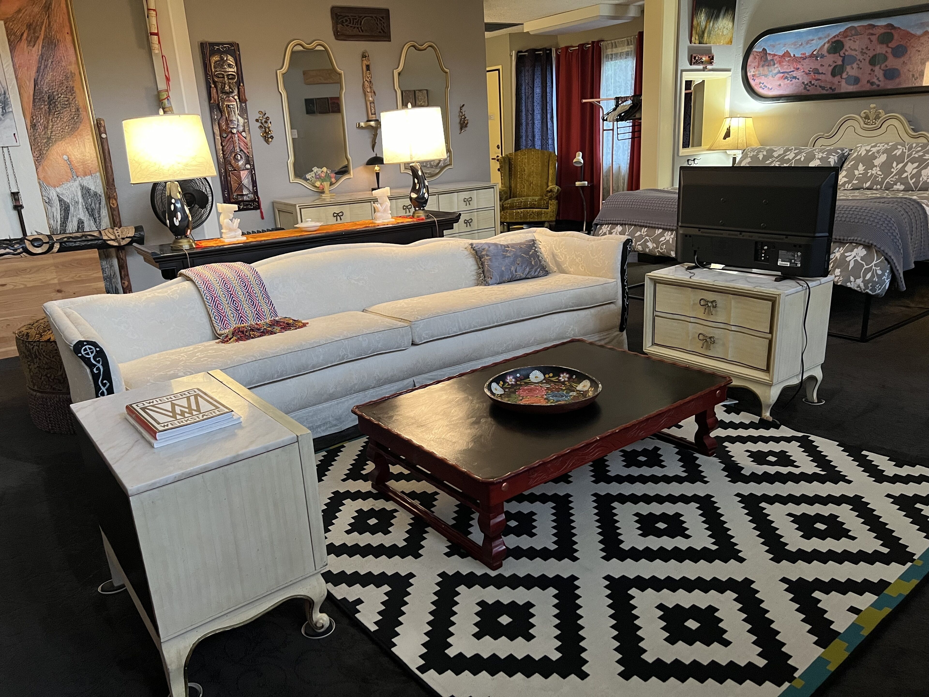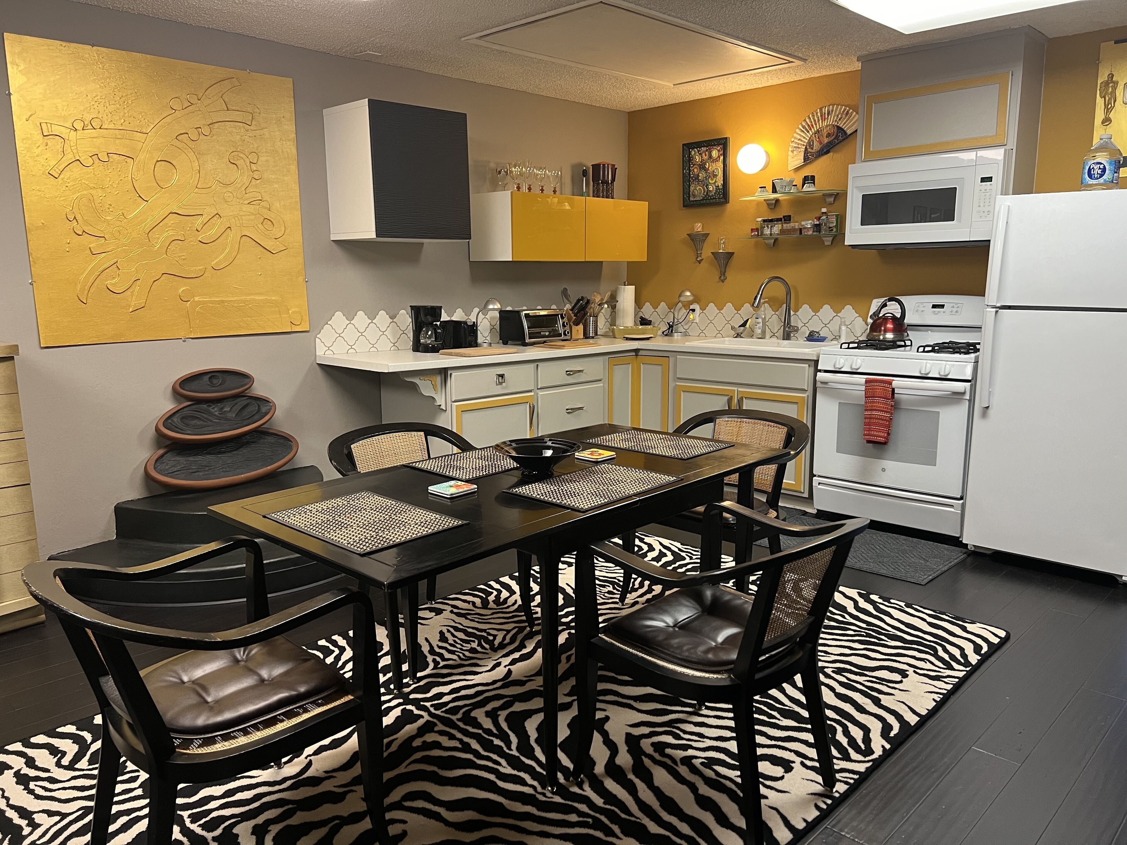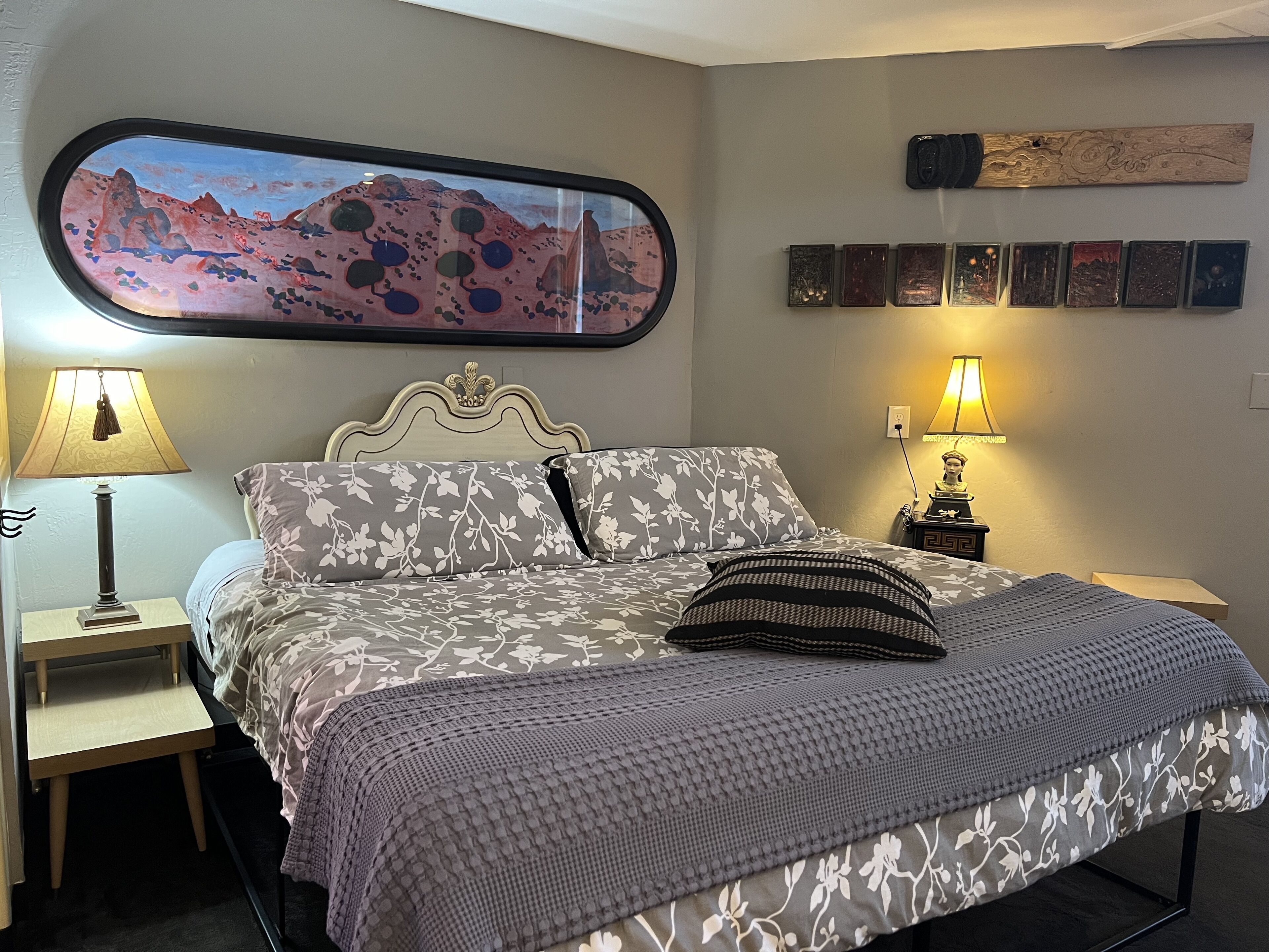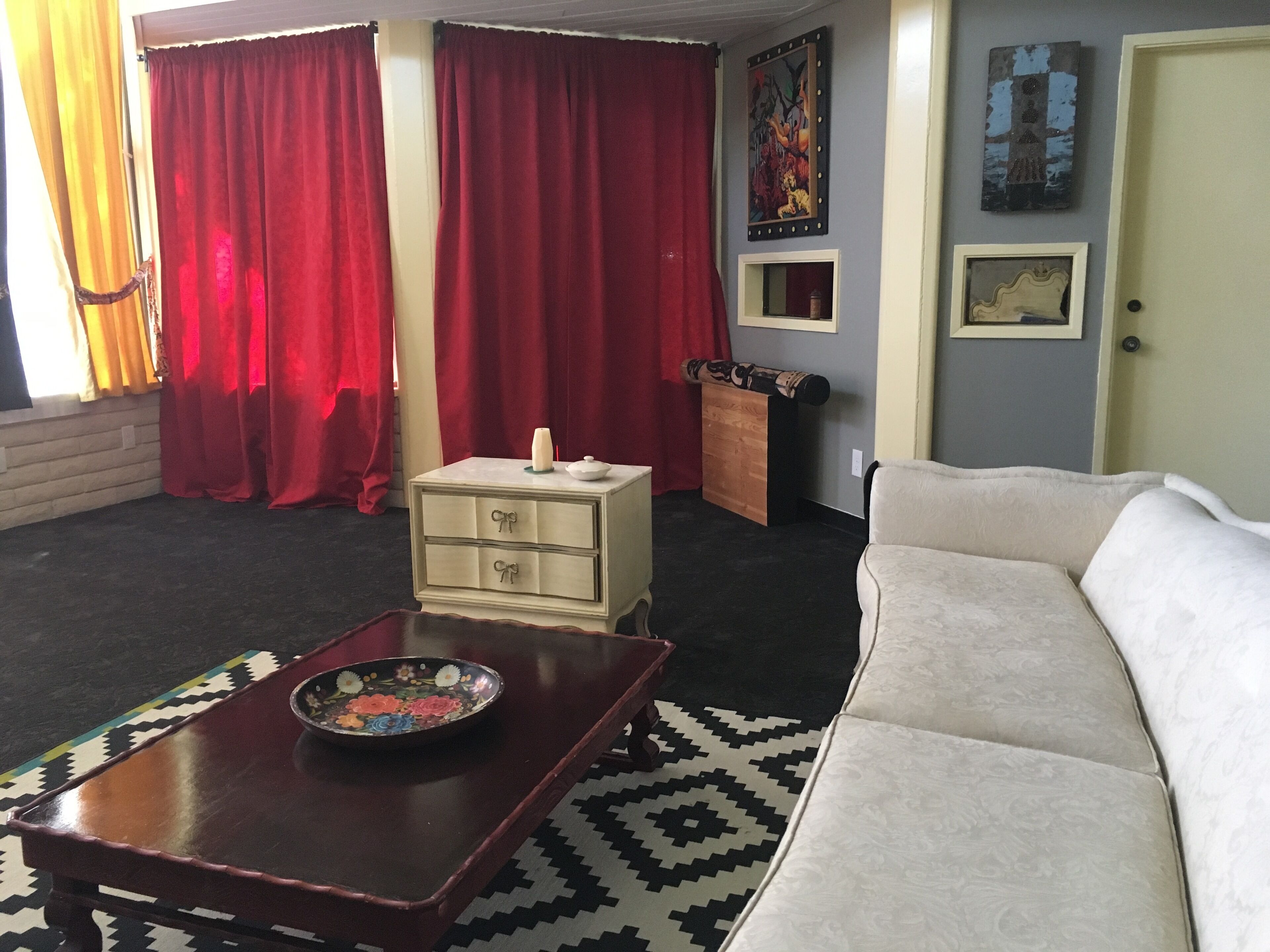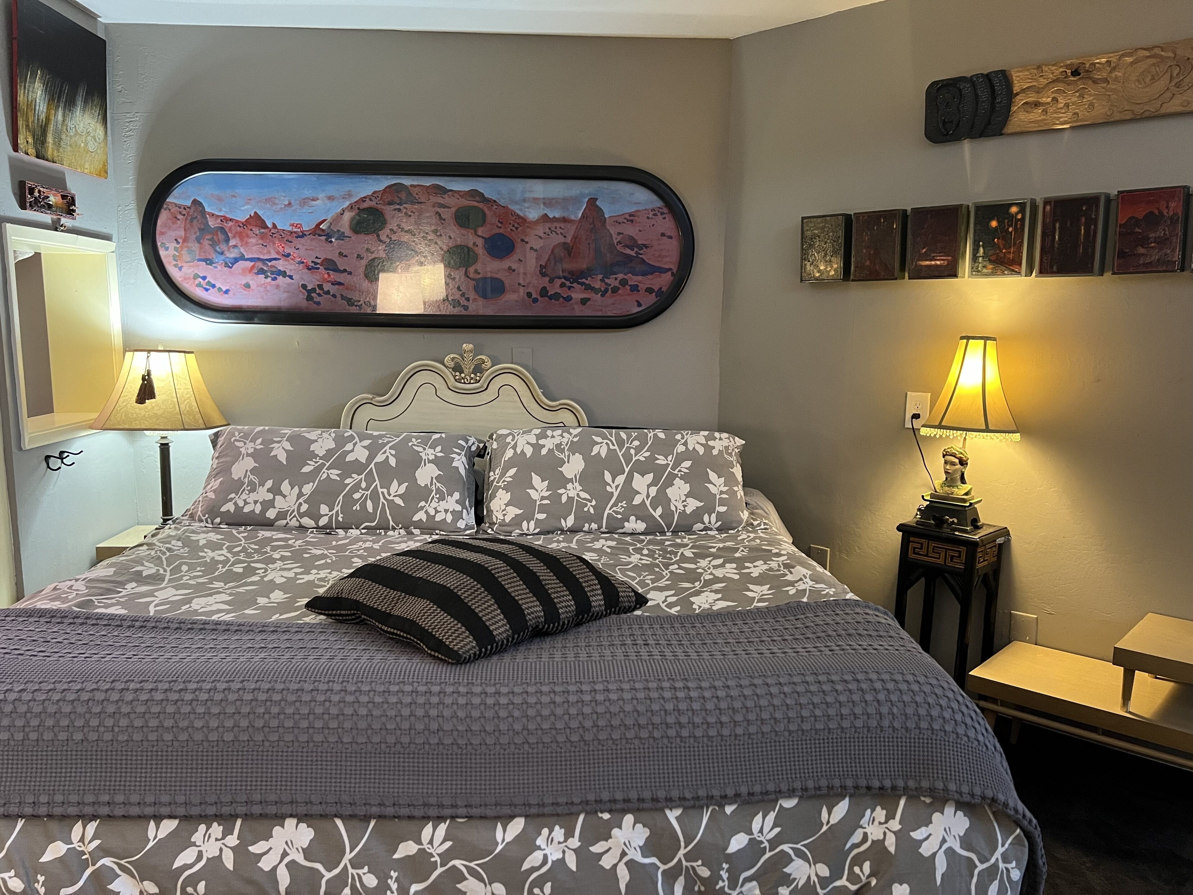 Our 1971 mid-century STAR DOME PLANET, unique architecture, centrally located IDEAL for TRAVELING PROFESSIONALS... minimum. 30 nights stays.Ideal for Traveling Nurses, only one mile from Adventist Health Ukiah Valley Hospital.MONTHLY DISCOUNT(Long term guests, over 30 days, we don't charge extra fees for over two guests)Imagine yourself within a Dome Pavilion of eight Star segments.. Our 1971 mid-century STAR DOME PLANET, most unique architecture, has been restored for your visit. Located in the center of town; a walk to restaurants, movie theater, surrounded by paradise of lakes, hot springs & wineries. Ample room for yoga. Private Parking. Come add your own Stardust Memories. The spaceThe Star Dome Planet is a 1,000 sqft with an open space interior design that allows for maximum entertaining. Safe and Cozy Sleeping for Four guests (2): Two guests on a comfortable KS bed, and a QS floor mattress for occasional visitors. Both the KS bed and the floor mattress are under one Star Dome roof. The walls are filled with unique art and sculpture by artist JQ, while the furnishings mirror the mid-century aesthetic of the architecture. We have designed a unique environment customized and filled with magic. An outside clawfoot hot tub for soaking under the stars. A full working kitchen, bathroom with shower, office with dedicated computer desk, and private off street parking. Fully equipped Kitchen is supplied with teas and coffee.House Rules:- Please read notes posted on walls- Please do not touch the Art- NO RV hookups available. Hooking an RV into our electricity is a Fire Hazard and a Code Violation.- NO PETS.- NO PARTIES please!- When leaving for a short or long while, please extinguish all candles, TURN OFF all appliances as well as the AC/Heating unit, and lock the top lock only with a key, to avoid getting locked out.- Plenty off-street Private parking next to entrance door, and plenty street parking. The entrance to our parking driveway is on Mill st just before reaching Dora as you drive up Mill st.- Star Dome Planet is the front unit within a duplex building. Please keep the noise down next to the shared wall.- Trash bins outside will be taken to the curb and back by our manager- Please let our manager know if any issues occur, or if you have any questions, always communicate with our manager and don't hesitate to call us if you need. LivArt: Within the history of contemporary art, various movements have arisen, and are represented by the style of the artists. We have the following categories in art: portraiture, landscape, color field, pop, super realism, and performance art. All of these forms of art have traditionally been exhibited in galleries and museums. There are vacation stays, and there are museum stays. We offer the latter with a large exhibit space of spiritual art. It is our intent that every visitor encounters at least one piece of art, that remains in their heart.... LivArt invites a person to dream with the art in a prolonged living situation. Through staying within our environments for a few days, both day and night, the experience transcends an exhibition. Every person is allowed to interact with the art at their own pace, but more importantly, to be absorbed by the experience.Other things to note- Intimate lighting available all throughout with some dimmers.- An outside clawfoot hot tub for soaking under the stars.- 32" Roku TV for your streaming services- Dedicated office space and desk with Free high speed internet access.- Two local Hot springs nearby: Orr Hotsprings and Vichy Springs Resort. - Swimming & boating lakes nearby, Wine tours, Redwoods, and just over the hill awaits the Pacific ocean.- We are minutes away from 101 Freeway and plenty gas stations on State st.- Coop Natural Foods is only 10min. walk from Star Dome - All the big stores are available in Ukiah including Safeway, Wallmart, Costco, Home Depot, Staples, Michaels, etc...***REVIEWS from other sites:Perry Feb 22The hosts have made a very nice and unique place to stay here. You can tell they take pride in how their space looks and feels. It is decorated with the host's own artwork and there is quite a bit to look at. It is located only a couple blocks away from downtown Ukiah, centrally located and close to everything in Ukiah. It is priced very fair for the size and well worth the price when you include the atmosphere inside and out. I will definitely be staying here again if I am back in the area.Patricia Sep 19This place exceeded our expectations for our long extended stay. Q and Twila were very attentive, responsive, and accommodating of our needs. The building and interior are unique, creative, and pleasant. The inside of the place is a museum displaying Q’s artwork. Good vibes and energy all around. Would definitely recommend this place and would stay here again. Thanks Q and Twila!Lisa May 19Neat spot!! Used to be a pharmacy! Now it's a spicy little get away in quaint Ukiah!Peggy May 19Spacious unit with well equipped kitchen. Great heating/cooling system. Interesting art. Lots of good instructions for guests and very good check in.Kimberly May 19We were passing through Ukiah and so glad we discovered Star Dome. An amazing, unique space with exceptional fine Art, very clean!Great location, a short walk from great restaurants in downtown, and an easy drive back to the Freeway. Comfortable KS bed, Open space layout, beautiful kitchen, stayed in the shower for hours.. We enjoyed a very peaceful time, not to mention dancing in the Spacious Star Dome, and will definitely be back, maybe for a few nights…