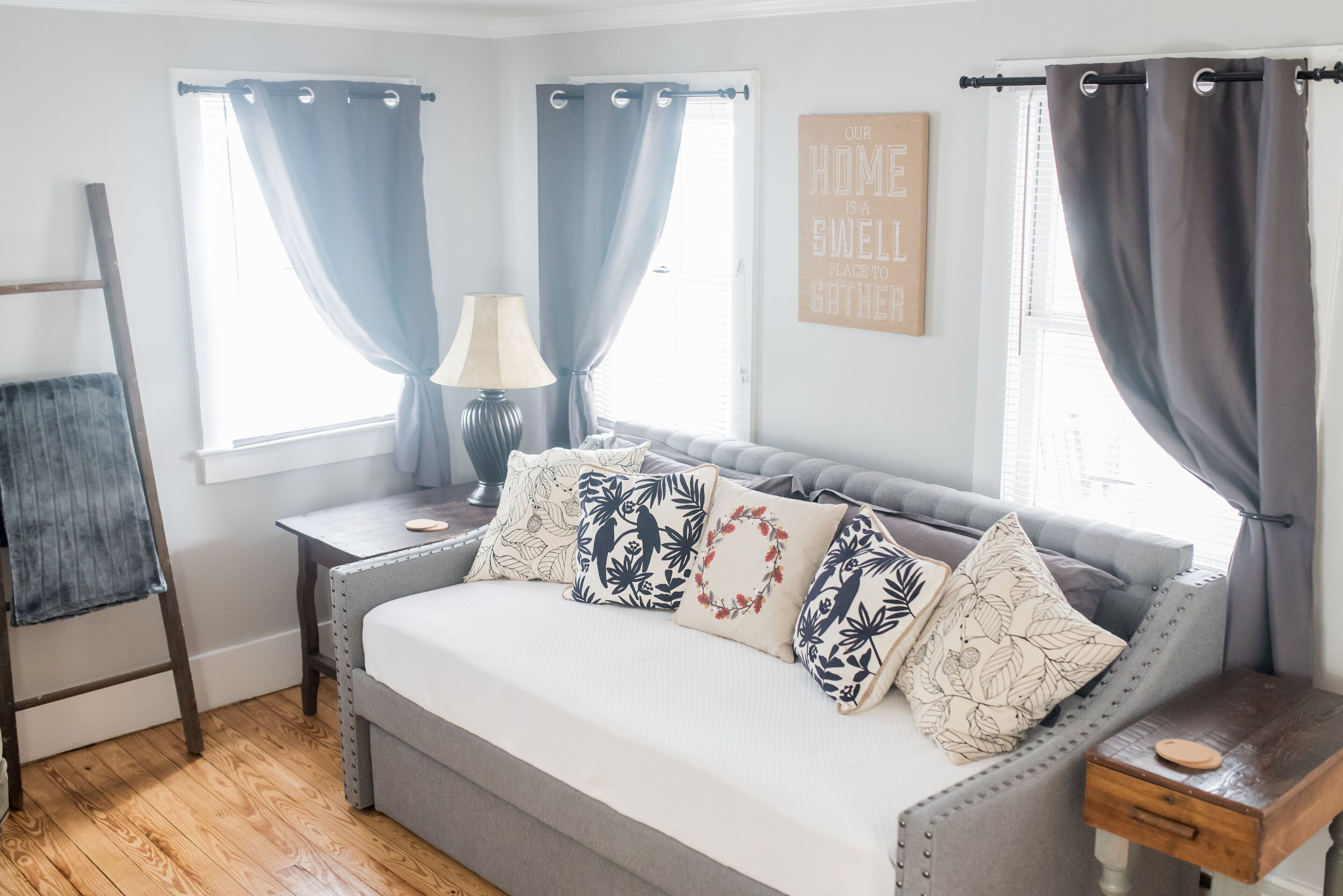 Tranquil Farmhouse Escape 🌟 Welcome to "The Farmhouse Cottage" in the heart of historic downtown Summerville, SC! Our cozy retreat is more than just a place to stay; it's a warm embrace of Southern hospitality. Ideal for couples seeking a romantic escape or a family of four looking for a peaceful yet vibrant setting. Nestled just one walking block from the historic downtown square, our beautifully furnished cottage invites you to unwind in comfort, style, and modern amenities to make your stay comfortable. Take a leisurely stroll to explore the charming downtown, filled with historic landmarks, delicious dining options, and family-friendly activities. Experience the perfect blend of relaxation and adventure at The Farmhouse – where cherished memories begin! 🏡💖Space DetailsStep into our charming farmhouse cottage and discover a spacious living room, thoughtfully designed with a daybed that effortlessly transforms into two twin beds, perfect for bringing along your little ones or accommodating an extra guest. Retreat to the private bedroom just down the hall, featuring a luxurious king-size bed with a coil-wrapped spring core and a gel-infused mattress, nestled on a stunning nailhead charcoal blue linen frame. Whether you're in the mood for a relaxing show or a movie night, enjoy the view on our LED Smart TVs (50 inches in the living room, 32 inches in the bedroom). The bathroom offers a lavish walk-in shower, plush towels, toiletries, and a hair dryer.The spacious kitchen is equipped with a fridge, oven, toaster, microwave, coffee maker, and a laundry station with a stackable washer/dryer set. Gather around the large farmhouse-inspired dining table for delightful mealsOur aim is to make your stay effortless, so leave the little things to us and immerse yourself in a quiet retreat. Indulge in the beauty of the outdoors from your private porch swing, where you can sip on wine or our famous sweet tea (fun fact: sweet tea originated here in Summerville) while enjoying the summer breezes. If you're here on a Saturday, don't miss the local farmer's market, just steps away from your front door from May through November. With easy walking access to historic downtown Summerville, your Southern small-town vacation awaits!Guest AccessEnjoy the exclusive use of the entire cottage during your stay. Additionally, guests are welcome to explore and relax in the various charming sitting areas scattered throughout the property. Unwind and soak up the atmosphere while making use of our shared charcoal grill area. Your comfort and enjoyment are our top priorities!Cameras:Please note to ensure all guests have a peaceful, safe, and secure stay, we have added security cameras located on the exterior of the home. The devices are located on the four corners of our property and monitor the exterior activities of the home, including the driveway and all walkways. Pets: We welcome your furry companions and are open to accommodating one small dog (maximum weight of 25 lbs) for your stay. If you plan to bring your beloved pet along, kindly submit a booking request along with the following details as outlined below. Please note that our Pet Rules, as outlined in the House Rules section of this listing, will also apply to your stay. The information below must be provided prior to us approving your furry friend. - Breed (including any mix),- Age and weight of your pet,- Confirmation of whether your pet is housebroken and crate trained,- Verification that your pet is up to date on vaccinations. A copy of your pet's shot record is required for booking.By booking, you agree to adhere to the following pet rules:- A non-refundable pet fee of $100 will be applicable. If we can accommodate your pet, I will send a separate payment request for this fee.We reserve the right to approve or deny any pet, and we will notify you of our decision within 24 hours of your booking. Thank you for your understanding and cooperation.We look forward to hosting you and your furry friend!Frequently Asked Questions: How far away are you from Charleston & the beach?Summerville is “at the heart of it all” as the ideal & central location of the Lowcountry. Summerville sits in the center between downtown Charleston and our historic plantations as well as many local beaches. We are located 22 miles from downtown Charleston and 33 miles from the nearest beach. The Charleston Airport is 12 miles from our listing. Are your rates negotiable? Unfortunately, no. You can't put a price on great memories! We extend a 10% discount on all stays 7+ nights or more and a 15% discount on stays 28+ days or more. The discount will automatically be applied at the checkout screen. I work remotely, is there wifi?Yes, we provide wifi in all of our listings. We have hosted several remote workers over the years and have not had a report of weak wifi. Is there anywhere to store luggage before check in or after check out in case I’m not able to check in early or check out late?Unfortunately, we are unable to accept and hold luggage for guests. What is there to do in the area?Please visit our digital guidebook for our favorite places to check out!Where is the nearest grocery store?Harris Teeter is our favorite & closest grocery store. Harris Teeter is 1.4 miles away from the listing. How do I check in?We have electronic locks at our listings. Guests will be provided with their unique access code on the morning of their arrival.