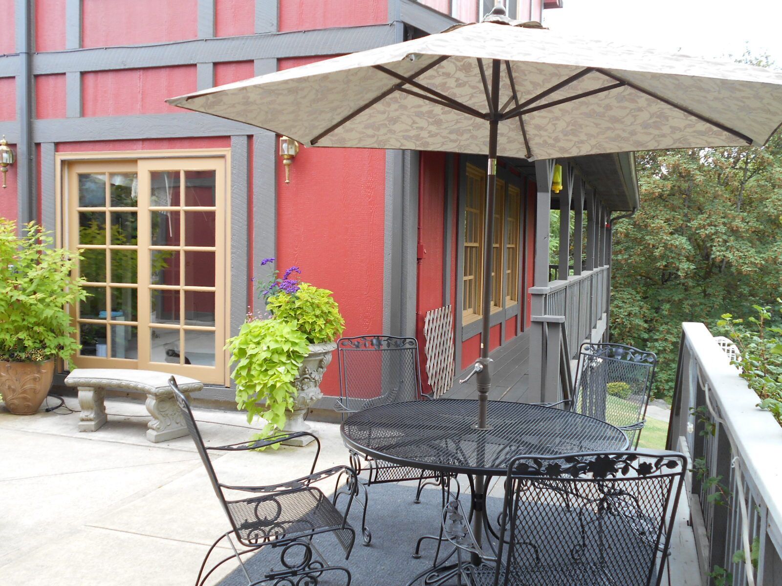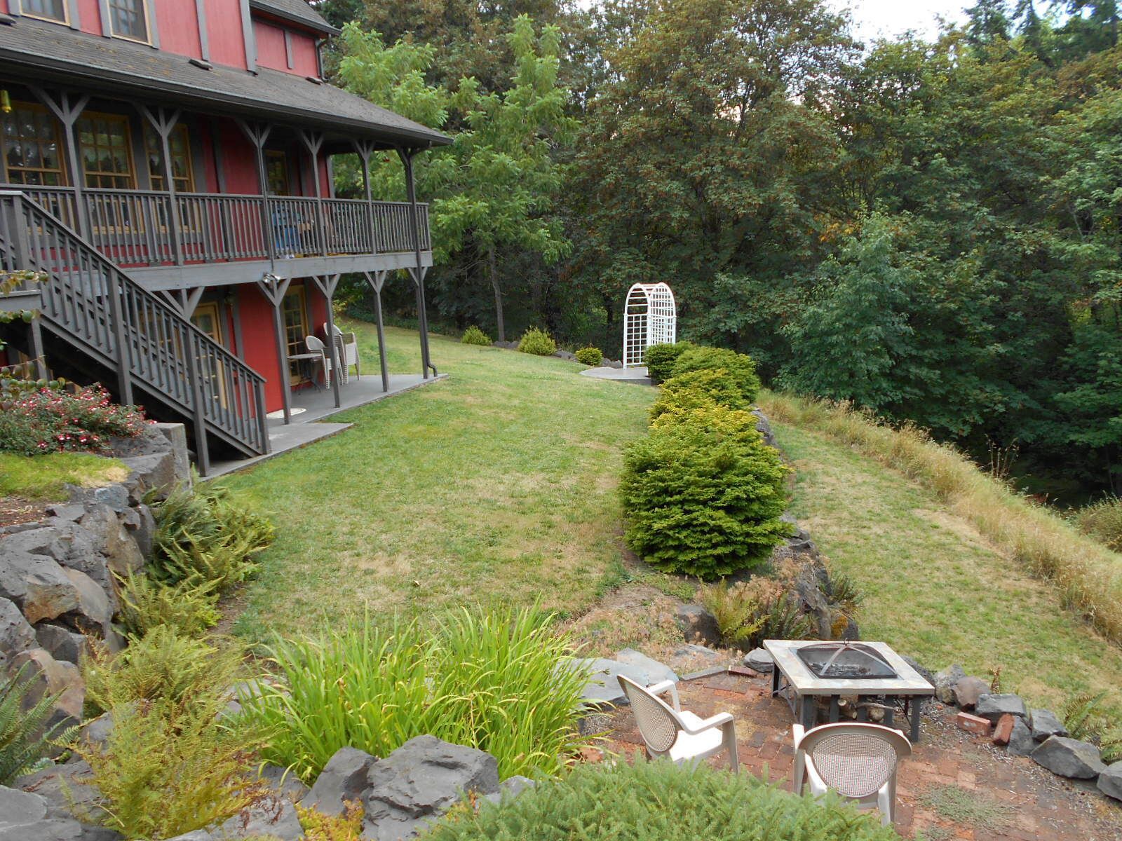 One Bedroom Suite on 1.5 Acres in Wine Country Windrose Vacation Rental is a one bedroom, 1.5 bathroom suite with a living room, kitchenette, sitting area, and walk-in closet. It is located in the lower level of a 3500 square foot European style home. It is perfect for a couple visiting Oregon’s premier wine country (over 70 wineries located within a 5 mile radius!), a centrally located point to many of Oregon's classic attractions (Oregon Coast 1 hour away, Columbia River Gorge and hiking 1.5 hours away, Mt. Hood 1.5 hours away) or you want to experience a few of our local 4-5 star restaurants. Your suite looks out onto 1.5 acres of park like setting with deer, squirrels, beaver, and other wildlife. It overlooks a creek and wooded area and you can take your glass of wine and walk the loop trail down to the creek. Inside you have TV, iPhone station so you can plug in your Pandora, walk in closet, hot plate for cooking, sitting area for reading, dining table and chairs. Outside you have your own patio that overlooks the canyon which is perfect for your glass of wine in the evening (after that walk along the trail). It is private, quiet, and you kind of feel like you are out in the country with no one around you, but you are almost within walking distance to town.George Fox University parents – need a place to stay after bringing your student to school, or for parents weekend, or graduation, or after a football game? This is the perfect place and your son/daughter can come visit you here! GFU campus is only 2 miles away!You have your own private patio with a table and chairs to sit and enjoy the view. Windrose is also a Meeting and Event Center. So you can have your wedding or family reunion or Thanksgiving Dinner here with loved ones. It is close-in yet private. NEW!!!!! Windrose Vacation Rental has been completely updated and refurbished in March of 2016. All rooms have been freshly painted, all new flooring and carpeting in all rooms, new toilets, new appliances, new king sized bed, everything is almost brand new. Come experience the new Windrose!