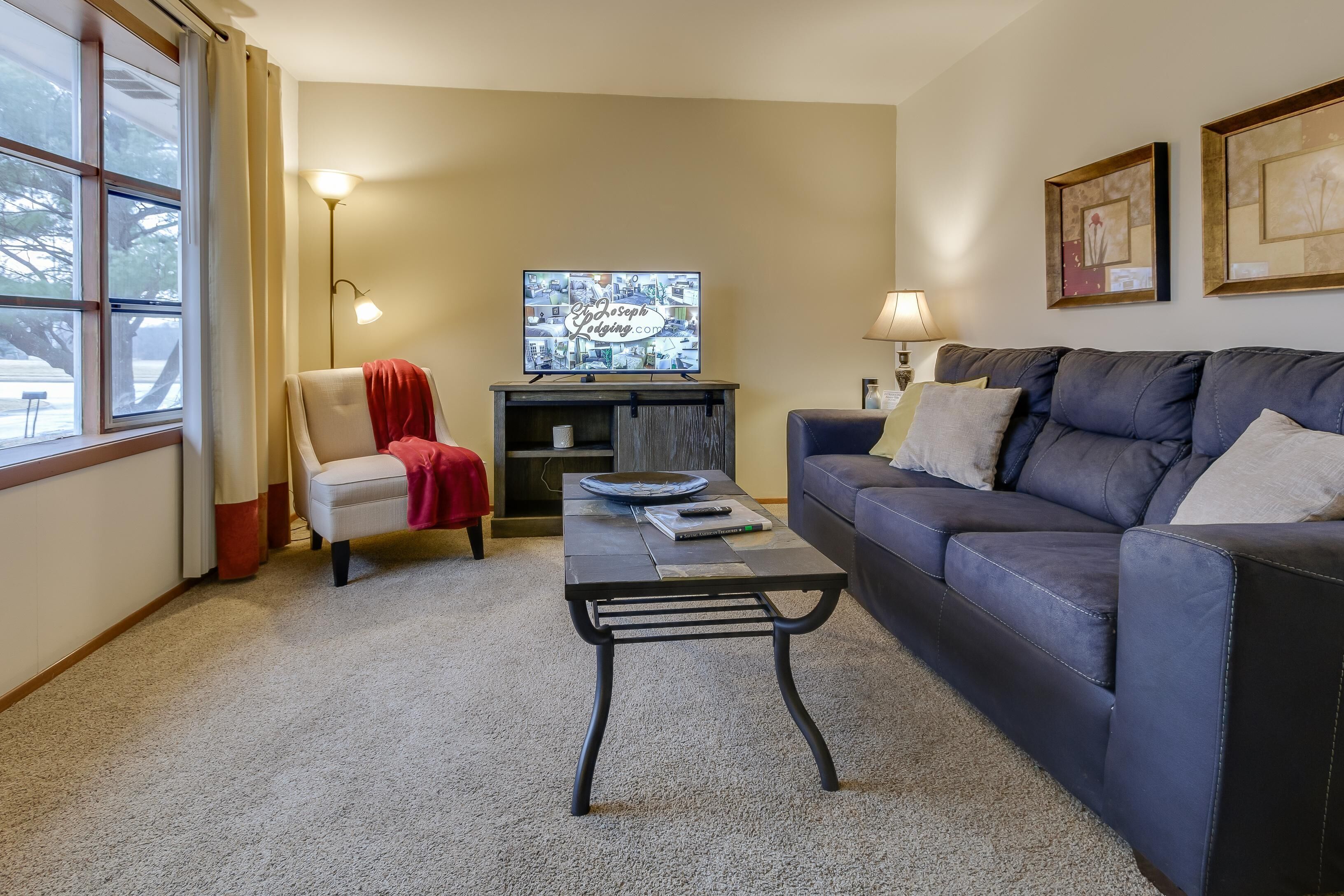 Lots Of Amenities & Very Clean 2-Bedroom Home! DEAR WONDERFUL GUEST: Please read the ENTIRE description of this wonderful property BEFORE booking. This description explains all of the features, amenities, house rules and the process for check-in. To insure that everyone is "on the same page", we ask that you PLEASE read this important information PRIOR to reserving this property. Particularly, if you are booking this property via a third-party platform other than our direct website, you need to be familiar with this information PRIOR to booking. We cannot offer refunds through third-party booking platforms beyond the published standard cancellation policies. Again, please read this entire description. Thank you! This charming 2-bedroom home is beautifully decorated and offers many great amenities including stylish furnishings and appliances (stove, dishwasher, refrigerator, microwave, washer/dryer, etc). It's located just off the Belt Highway near I-29 and 36 Highway. You’ll love my place because of the coziness, the cleanliness, the amenities, the quiet street, off-street parking, etc.As a host, I enjoy meeting new people! I love hosting visitors to St. Joseph and will do everything I can to make sure your stay is comfortable and enjoyable! Because I am a "clean freak" myself, I am very particular about the cleanliness of my places. We do all of the cleaning ourselves (after all, no one can do it to meet my high standards!).I provide amazing amenities like wonderful decor, complimentary high-speed Wifi, hair dryer, cooking utensils, shampoo, soap, laundry detergent, iron & ironing board, coffee and coffee maker, washer & dryer, smart TVs, and so much more! All of our properties are very close to restaurants, shopping, grocery stores, and more. In addition, our properties are located near Mosaic Life Care hospital and Missouri Western State University. You can also enjoy music, news, weather, and tons of information with the Amazon Echo (Alexa)! There's one in each room! She's installed and ready to serve you! This particular property has a one-car garage that MAY be to store personal belongings, bicycles, etc. We cannot allow vehicles in the garage because there is no floor drain and the garage door height is quite low. VERY SAFE AND SECURE AREA! Our properties are located in very safe and secure neighborhoods. All are in the “newer” part of town, east of the Belt Highway. To give you added security and peace of mind, all of our properties are equipped with a user-friend security alarm system which you control from a key fob that we provide to you upon check-in. In addition, outdoor video surveillance provides you with the extra comfort of safety and security (video surveillance is on the OUTSIDE of the property ONLY). You’ll rest well at one of our properties!WHAT ABOUT PETS? Unfortunately, we do not accept pets on our properties. We LOVE animals, however, in order to be fair and consistent from guest to guest, we've had to adopt a "no pets" policy. In addition to the possibility of a pet soiling the carpet or causing some damage, pets can leave a dander behind that future guests may be allergic to. Because we want ALL of our guests to enjoy a clean, non-allergenic environment, this is another reason we don't allow pets in our properties. Thank you for understanding!PROPERTY ACCOMMODATIONS: Please note that this is a two-bedroom property complete with a very nice and comfy queen-size bed in the master bedroom and two twin beds (one is a trundle twin) in the secondary bedroom. This property is suitable for no more than four guests (including children/infants). In order to maintain compliance with our insurance carrier and keep our properties in tip-top shape and the furnishings looking new, overnight sleeping is NOT allowed on the sofa and air mattresses are not permitted (our insurance carrier mandates that only bedrooms may be used for overnight sleeping). Because of the decor, electronic technology, electrical outlets and some furnishings, our properties are not suitable for curious toddlers. We want every member your family to remain safe and have an enjoyable stay! Our properties are not designed to host parties, reunions, or social functions for people who are not actually registered guests staying at the property. Only registered guests should be occupying and using the property. Thank you for understanding!IMPORTANT THINGS TO NOTE: Absolutely NO drugs or illegal substances in the state of Missouri may be brought into our property. Due to our insurance regulations, we can only check in the guest whose name is on the reservation. We cannot check in or turn possession of the place over to ANYONE other than the person who actually made the reservation or is listed as a GUEST on the reservation. The reservation must accurately reflect the number of guests staying at the property including children/infants. Thank you!I'M LOOKING FORWARD TO MEETING YOU! Upon your arrival, I will meet you at the property to program your own unique custom access code, show you how to operate the security alarm system, and get you checked-in. Additionally, you'll sign a check-in form stating that you're familiar with the house rules and to confirm your check-out date. You will show your identification and complete a basic guest registration card for our insurance purposes. Check-In time is anywhere from 3:00pm until 11:00pm. We will attempt to accommodate a check-in prior to 3:00pm if the unit is available and ready. If you plan to arrive after 11:00pm, please let us know at least 24 hours in advance so we can make the necessary arrangements, otherwise a $50 late check-in fee may apply. We are required to meet guests at the property for check-in, verify ID, and show you where the fire extinguisher is located. NOTE: Our properties are not the typical AirBNB, VRBO or HomeAway short-term rental. Most of our reservations come through our own website. So, if you are booking this property through one of