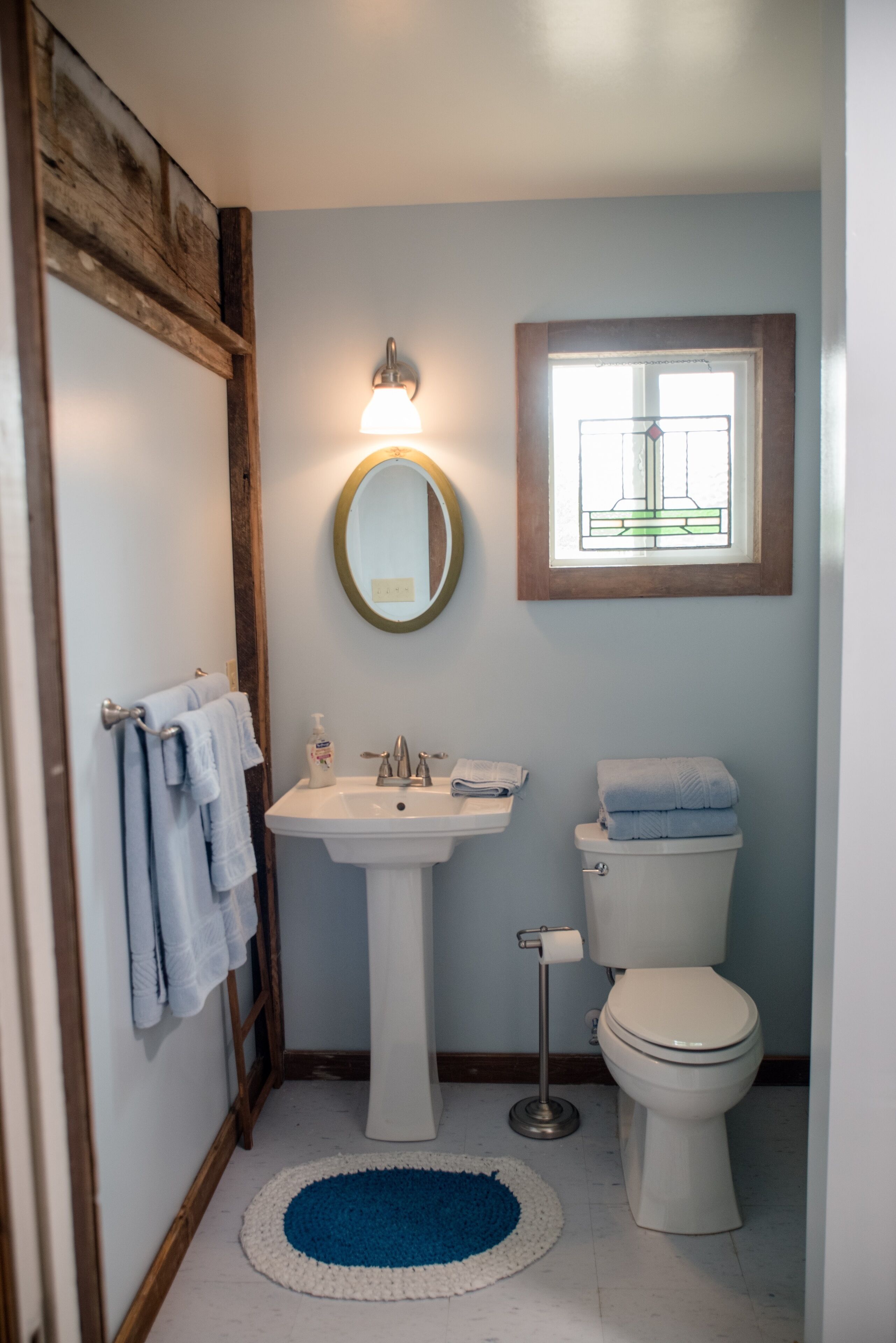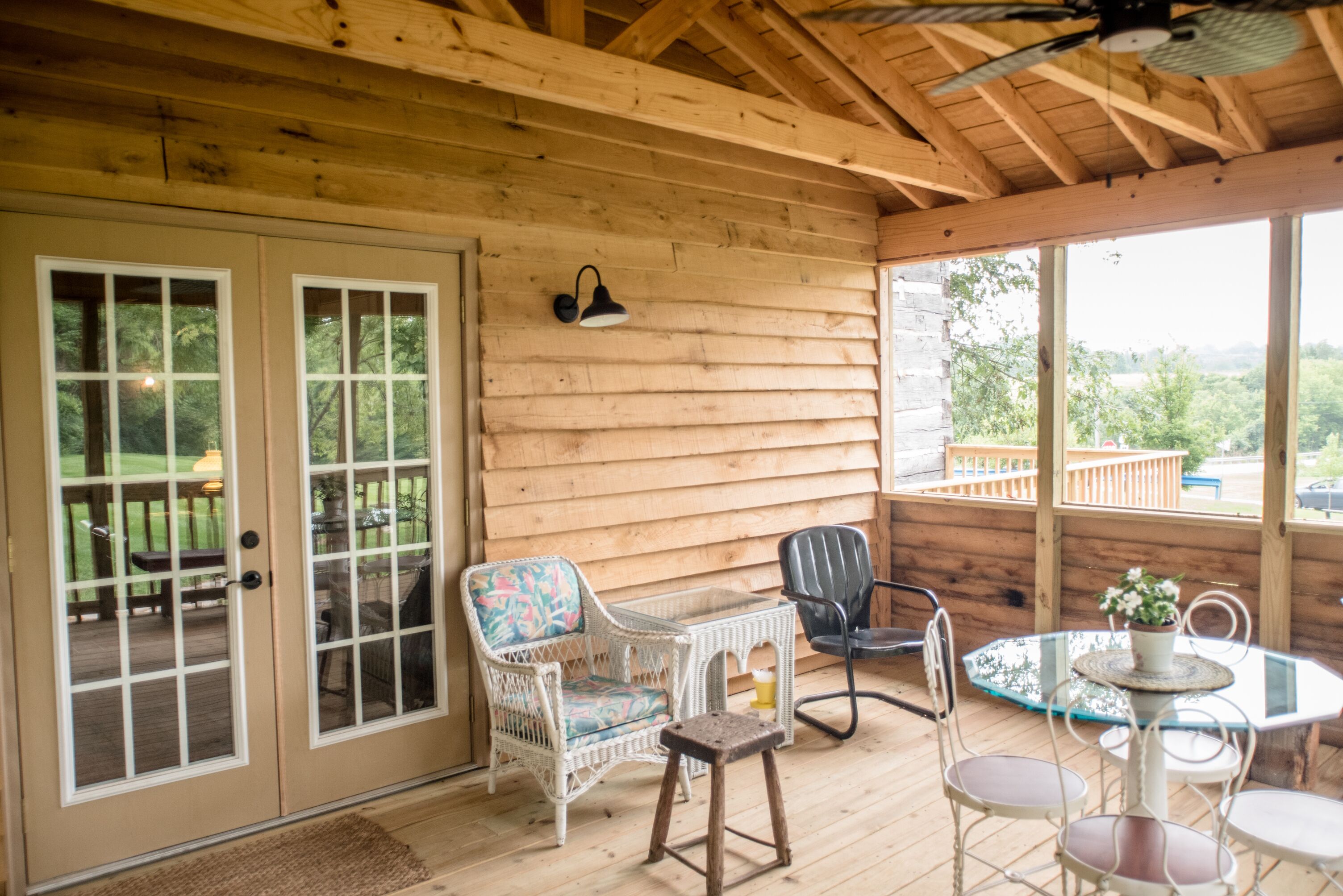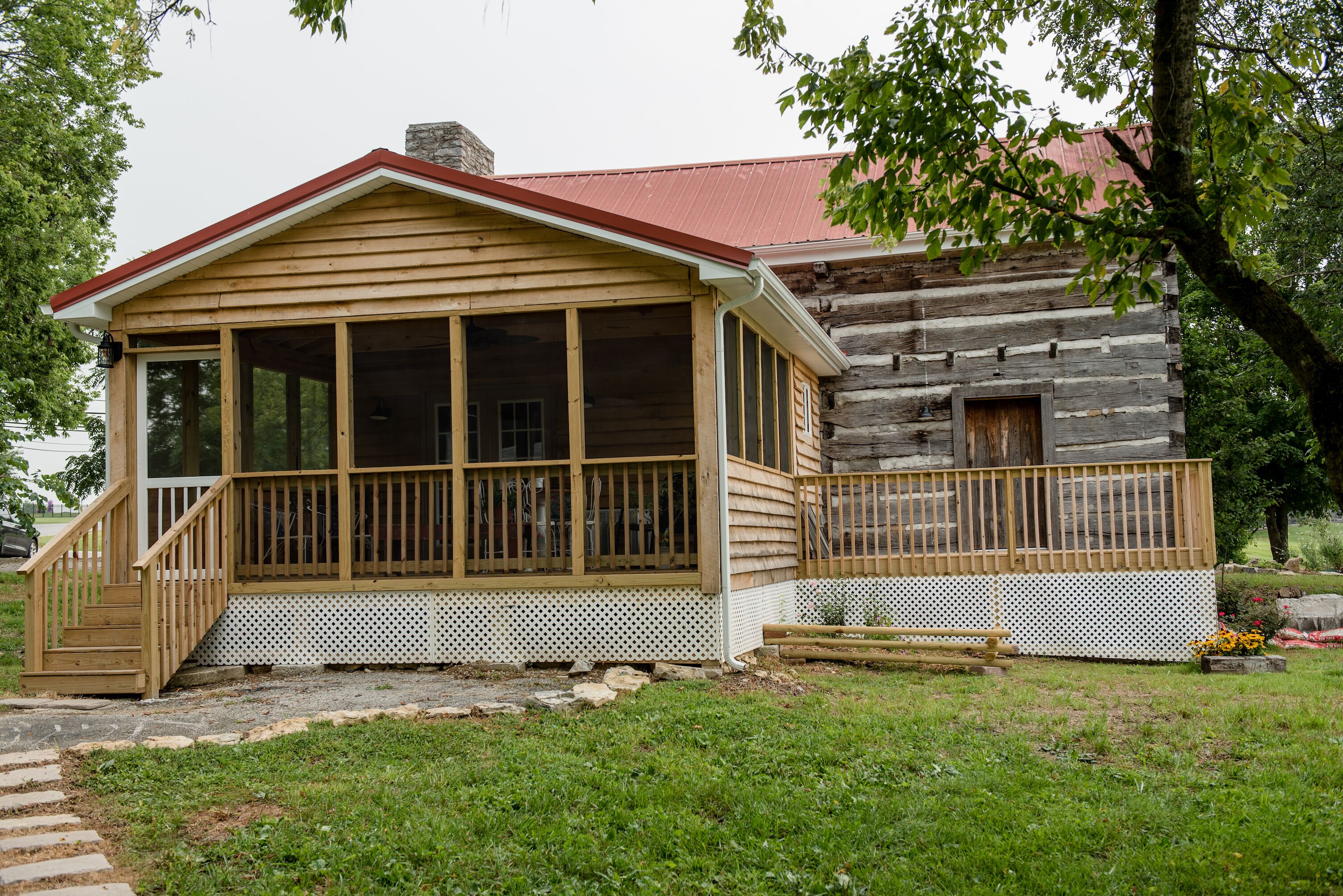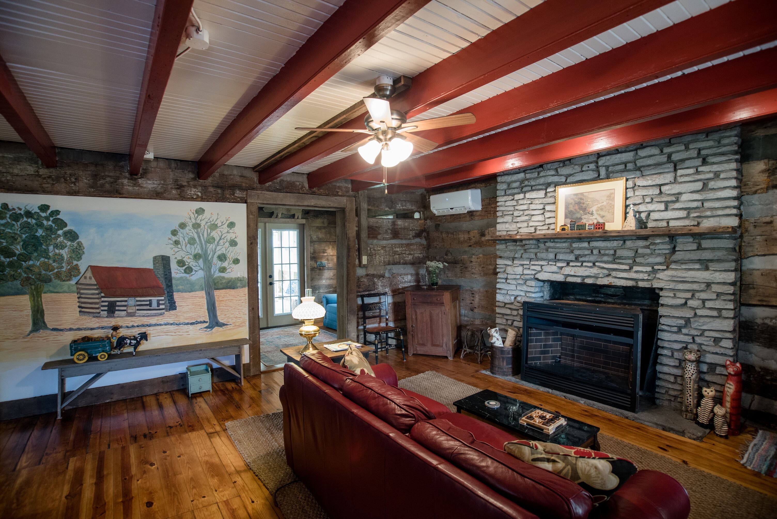 Original Circa 1818 Oak Lodge Totally restored 1818 cabin, with original oak logs and pine plank floors. Once inside the cabin, it has all the comforts you have come to expect, granite island, gas logs, modern bath, and new comfy double beds and much more. The comfy double beds are upstairs in the open private loft area, the second sleeping area is downstairs on a fold out sofa bed. There are no bedroom doors on either sleeping area.