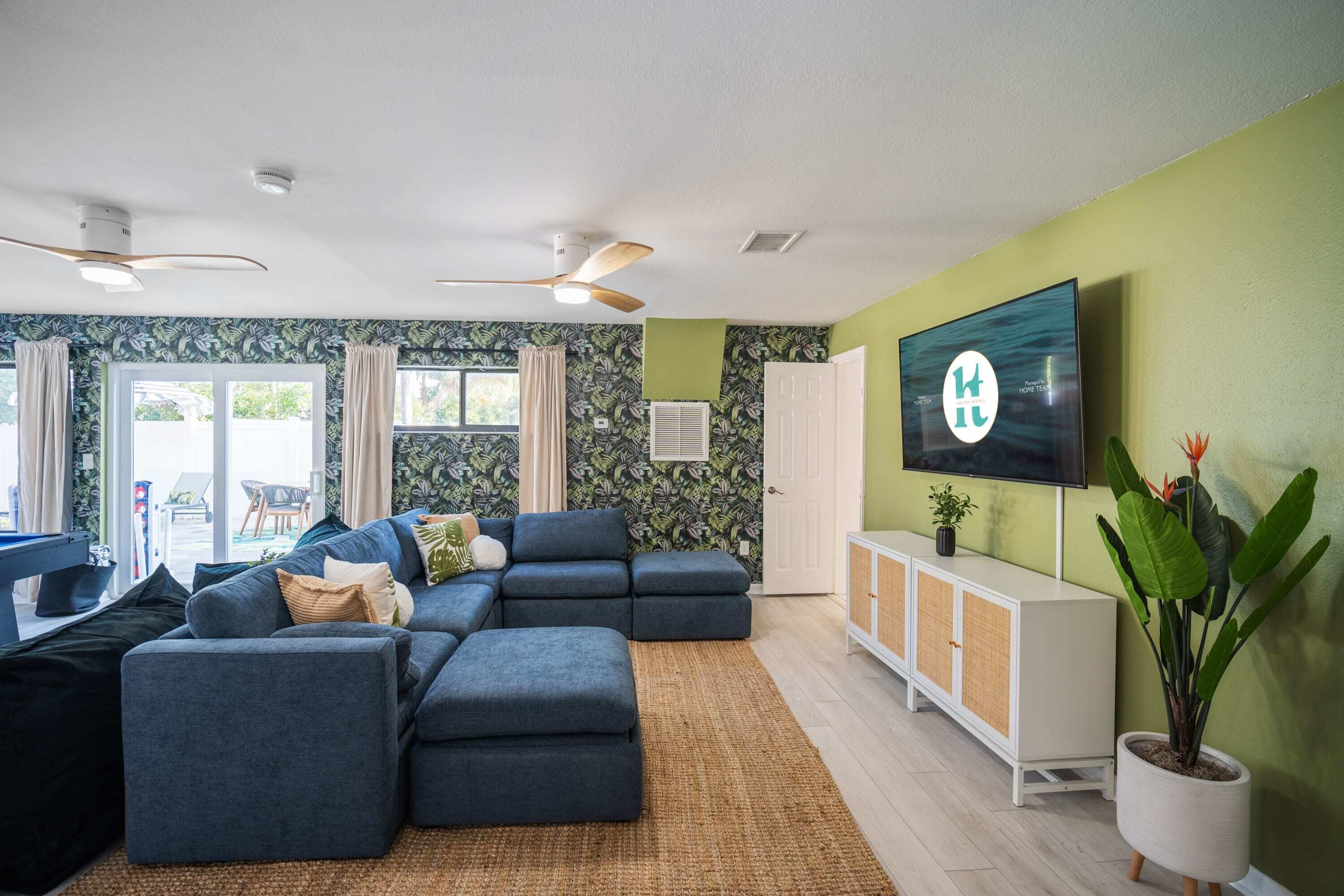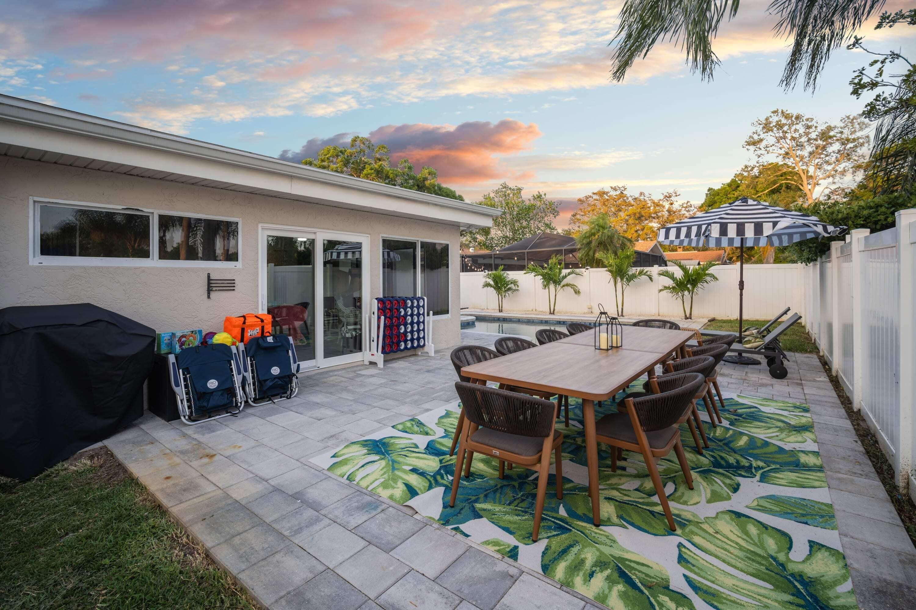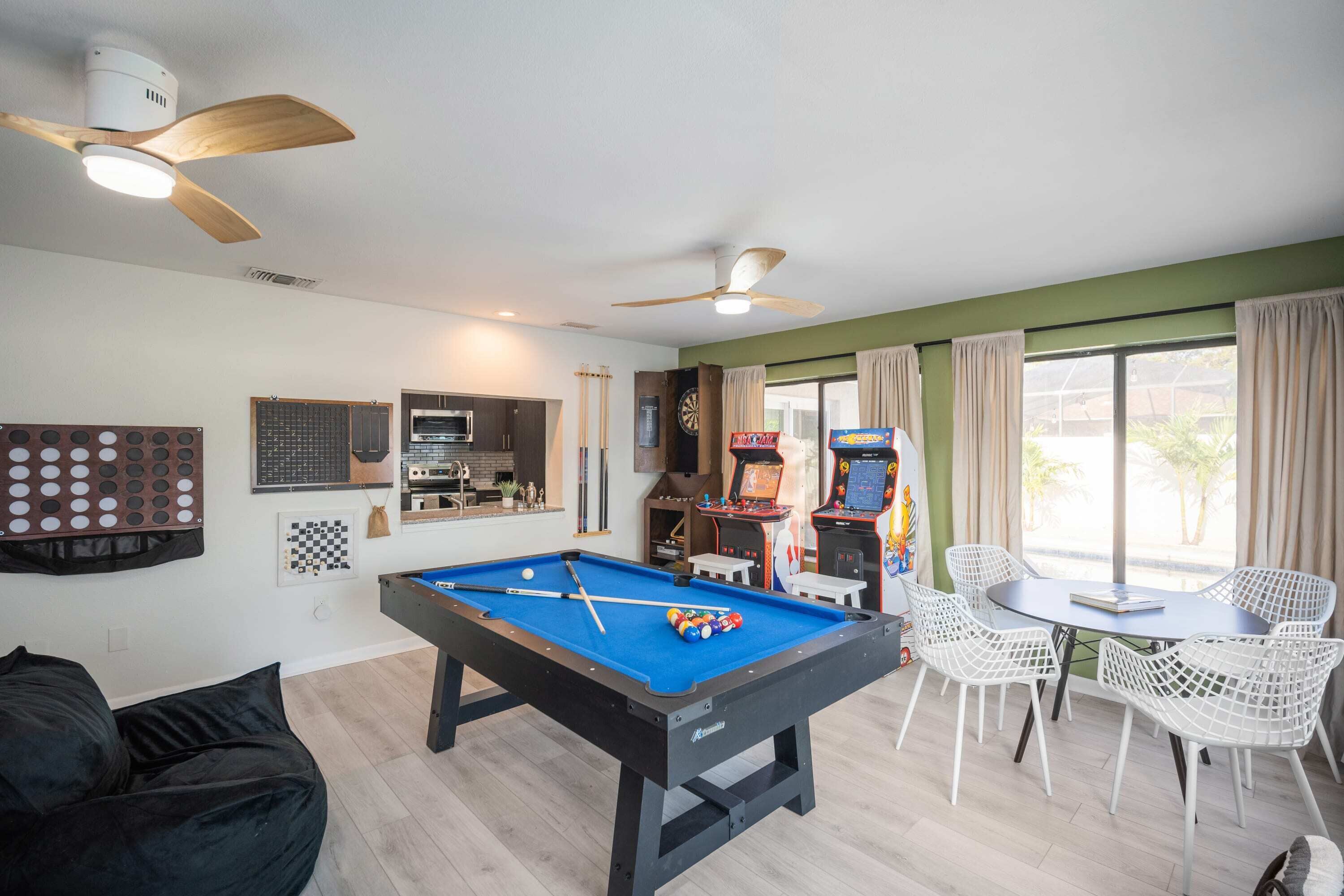 Epic Yard~ Pool ~Movie Theater~ Arcade Games Summary:This house is located just 3 miles from the beach (Indian Shores) & has EVERYTHING you need for a fun filled stay! Newly renovated in April 2024!*Game room- Pool Table, NBA Jam, PacMan, Darts*Movie Theater w/ plush couch & screen*Fire Pit + BBQ*Private Pool*Outdoor Dining*Cornhole *Pet Friendly*Family Friendly- Pack n Play & High Chair Included*Fully Stocked Kitchen *Smart TV's in every bedroom *High Speed Wifi *Desk- Perfect for Remote Workers*Close to Restaurants & Grocery StoresThe Space:MAIN SPACES OF THE HOME:– 6 BEDROOMS & 4 FULL BATHROOMS (SINGLE LEVEL HOME) –BEDROOM 1 (Primary):* Plush King-sized bed* Roku TV* Full ensuite bathroom with a dual-sink vanity* Spacious stand-in shower*Overhead fan *Full body mirrorBEDROOM 2:* Plush King-sized bed*Ensuite bathroom with walk in shower*Roku TV*Full body mirror *Desk*Overhead fan BEDROOM 3:*Queen bed*Roku TV*Overhead FanBEDROOM 4:*2 twin over full bunk beds*Roku TV*Overhead fan FULL BATHROOM 3:* Located in the hallway with shower/tub comboBEDROOM 5:* Two Queen beds*Roku TV*Full body mirror *Overhead fan BEDROOM 6:*Queen bed*Roku TV *Overhead fan FULL BATHROOM 4:* Located in the hallway with shower/tub combo– CHEF’S KITCHEN –* Electric range & plenty of cooking space* Fully-equipped* Counter seating* A Keurig & a filtered coffee maker– 2 LIVING ROOMS –* Lots of natural lighting* Large Sofa* Roku TV*Board games*Pool Table*Arcade Games*Darts– MOVIE THEATER –*Huge, plush couch *Popcorn machine *Movie Screen with Roku Stick- Netflix, Hulu, etc.*Connect 4 Game– SPECTACULAR RESORT-STYLE BACKYARD & POOL –* Private pool * Poolside loungers* BBQ Grill*Outdoor dining *String lights for added ambiance*Cornhole *Jenga*Connect 4– ADDITIONAL ITEMS –*Dogs are allowed for $125 per stay, up to 2 dogs allowed. No cats please. Your dog must be crate trained and please pick up after your petGuest Access:Guests have access to the entire house (minus the locked owner's closet) via keypad entryGetting Around:Uber and Lyft are reliable modes of transportation in the area.Other Things to Note:First, we must inform you there are NO parties or events allowed at this property. There are state and city laws that must be respected, as well as our neighbors. Any parties or gatherings of any kind will result in a minimum fine of $2,000, and will be asked to check out with no refund. The home is outfitted with a Minut device (measures volume decibels; does not record) that notifies us when noise levels at the property exceed the set limit. This is a tranquil neighborhood that's best suited for guests looking for a relaxing getaway. We appreciate your understanding. Dogs are allowed for $125 per stay, up to 2 dogs included. Dog must be crate trained and please clean up after your dog.There is one exterior camera are solely to keep track of our cleaning team.We use SUPERHOG as part of our guest screening process. Your SUPERHOG application must match the primary guest name on the reservation, and your background check must be completed within 48 hours of receiving your booking confirmation as per State and City law. Your booking is NOT confirmed until these requirements have been fulfilled. Once the reservation is confirmed, and prior to check-in, guests must sign a Rental Agreement outlining the terms of the stay, stating that they agree with and acknowledge:- to abide by our rental terms and conditions.- to provide a copy of a valid government-issued ID and matching credit card prior to check-in.- we collect a non-refundable damage waiver of $50, paid via SUPERHOG- the waiver will cover you for any accidental damage during your stayHOUSE RULES:Renters agree to cover any cost related to damages that occurred during their stay, including extra-cleaning charges if needed or any unauthorized pets if discovered during or within a reasonable amount of time after their stay. These amounts are charged to the credit card on file and followed by an email breaking down the fees and damages. No charges are ever processed without prior written notice. The minimum fine for damages is $500.