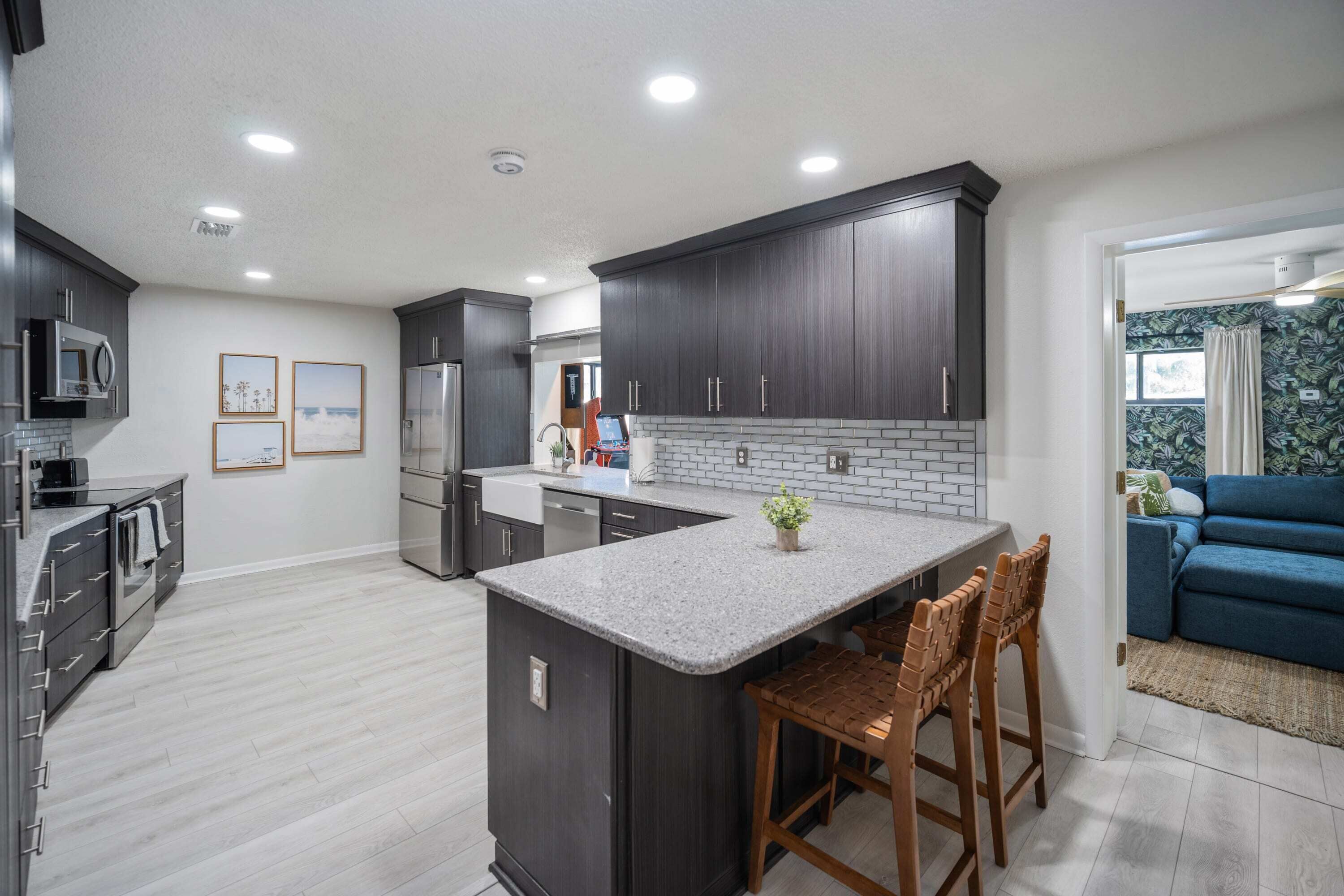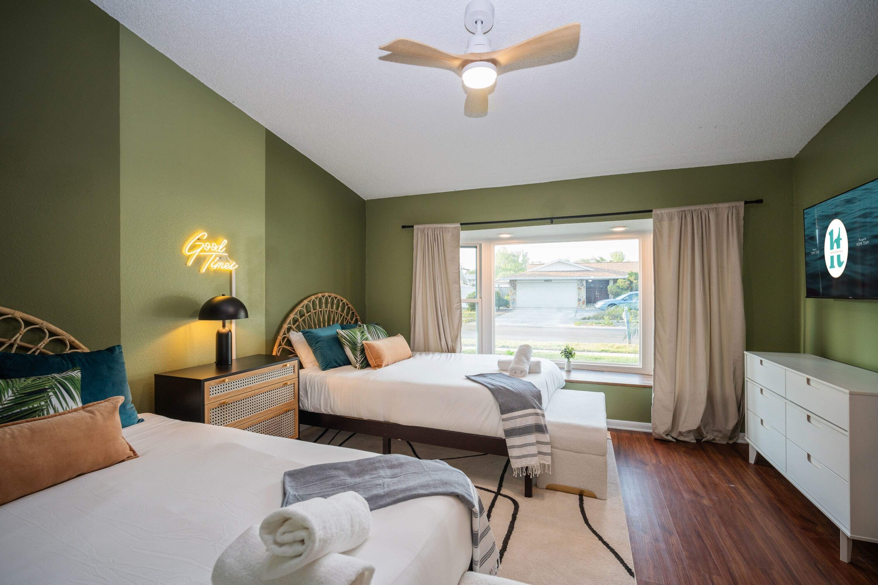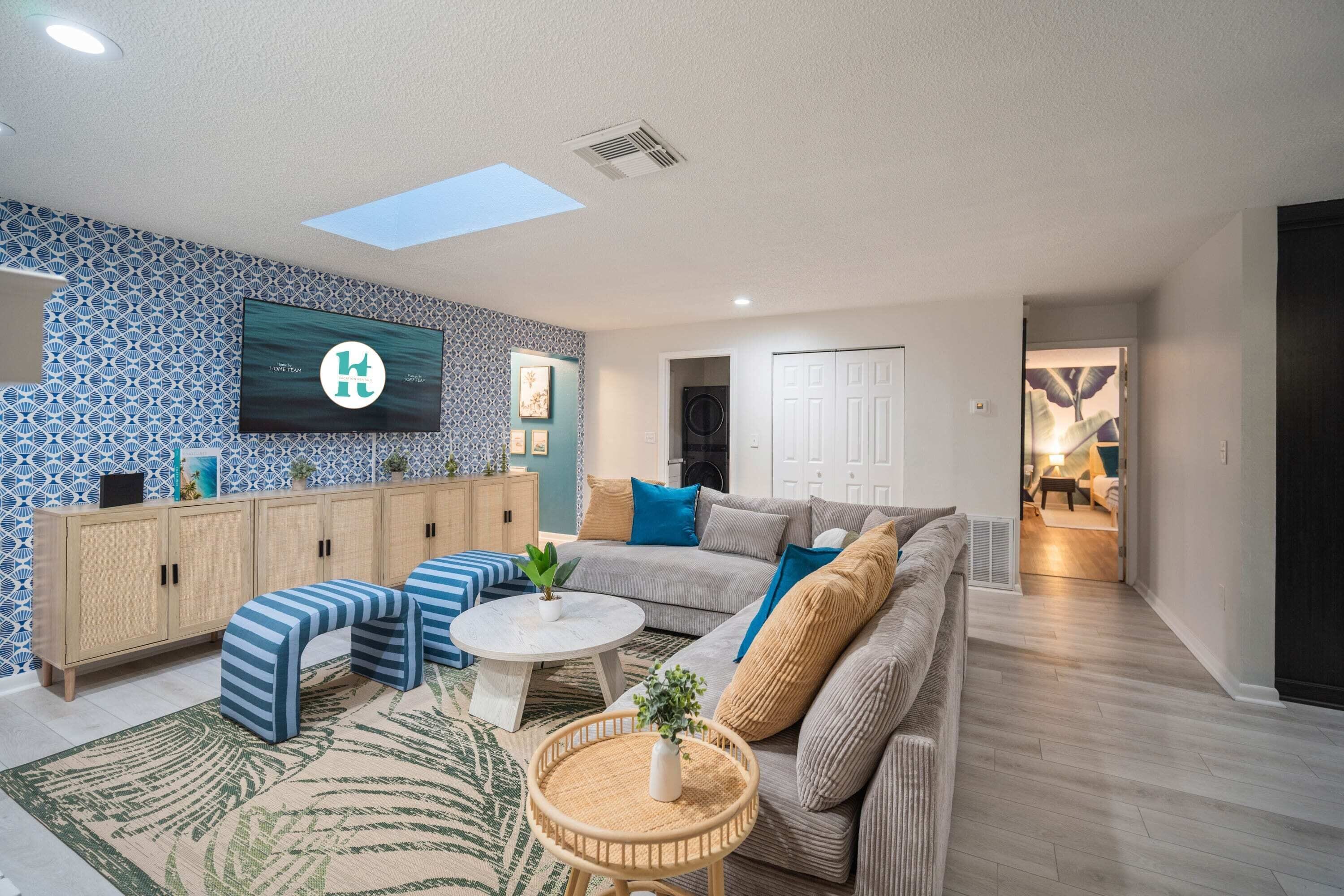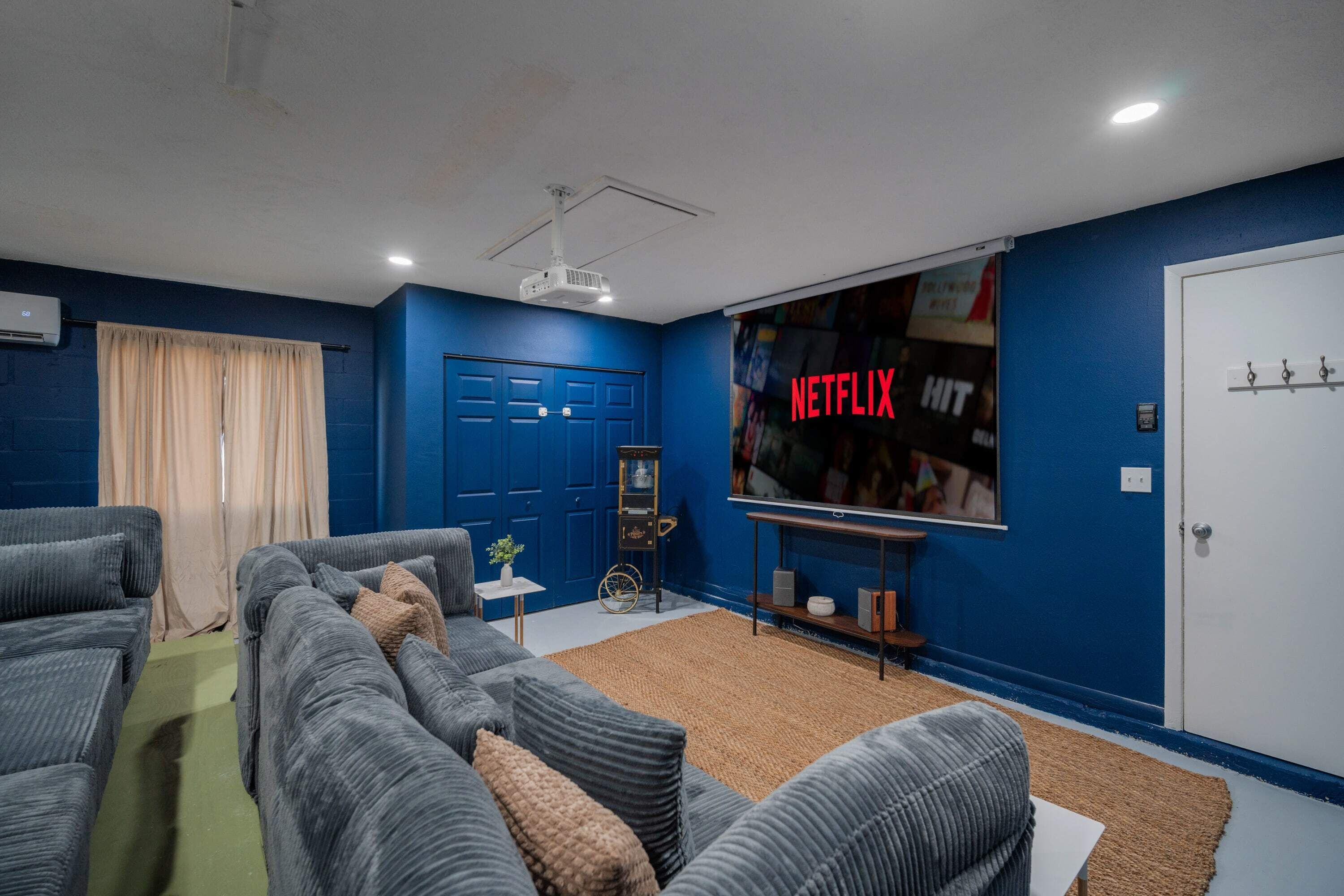 Epic Yard~ Pool ~Movie Theater~ Arcade Games Summary:This house is located just 3 miles from the beach (Indian Shores) & has EVERYTHING you need for a fun filled stay! Newly renovated in April 2024!*Game room- Pool Table, NBA Jam, PacMan, Darts*Movie Theater w/ plush couch & screen*Fire Pit + BBQ*Private Pool*Outdoor Dining*Cornhole *Pet Friendly*Family Friendly- Pack n Play & High Chair Included*Fully Stocked Kitchen *Smart TV's in every bedroom *High Speed Wifi *Desk- Perfect for Remote Workers*Close to Restaurants & Grocery StoresThe Space:MAIN SPACES OF THE HOME:– 6 BEDROOMS & 4 FULL BATHROOMS (SINGLE LEVEL HOME) –BEDROOM 1 (Primary):* Plush King-sized bed* Roku TV* Full ensuite bathroom with a dual-sink vanity* Spacious stand-in shower*Overhead fan *Full body mirrorBEDROOM 2:* Plush King-sized bed*Ensuite bathroom with walk in shower*Roku TV*Full body mirror *Desk*Overhead fan BEDROOM 3:*Queen bed*Roku TV*Overhead FanBEDROOM 4:*2 twin over full bunk beds*Roku TV*Overhead fan FULL BATHROOM 3:* Located in the hallway with shower/tub comboBEDROOM 5:* Two Queen beds*Roku TV*Full body mirror *Overhead fan BEDROOM 6:*Queen bed*Roku TV *Overhead fan FULL BATHROOM 4:* Located in the hallway with shower/tub combo– CHEF’S KITCHEN –* Electric range & plenty of cooking space* Fully-equipped* Counter seating* A Keurig & a filtered coffee maker– 2 LIVING ROOMS –* Lots of natural lighting* Large Sofa* Roku TV*Board games*Pool Table*Arcade Games*Darts– MOVIE THEATER –*Huge, plush couch *Popcorn machine *Movie Screen with Roku Stick- Netflix, Hulu, etc.*Connect 4 Game– SPECTACULAR RESORT-STYLE BACKYARD & POOL –* Private pool * Poolside loungers* BBQ Grill*Outdoor dining *String lights for added ambiance*Cornhole *Jenga*Connect 4– ADDITIONAL ITEMS –*Dogs are allowed for $125 per stay, up to 2 dogs allowed. No cats please. Your dog must be crate trained and please pick up after your petGuest Access:Guests have access to the entire house (minus the locked owner's closet) via keypad entryGetting Around:Uber and Lyft are reliable modes of transportation in the area.Other Things to Note:First, we must inform you there are NO parties or events allowed at this property. There are state and city laws that must be respected, as well as our neighbors. Any parties or gatherings of any kind will result in a minimum fine of $2,000, and will be asked to check out with no refund. The home is outfitted with a Minut device (measures volume decibels; does not record) that notifies us when noise levels at the property exceed the set limit. This is a tranquil neighborhood that's best suited for guests looking for a relaxing getaway. We appreciate your understanding. Dogs are allowed for $125 per stay, up to 2 dogs included. Dog must be crate trained and please clean up after your dog.There is one exterior camera are solely to keep track of our cleaning team.We use SUPERHOG as part of our guest screening process. Your SUPERHOG application must match the primary guest name on the reservation, and your background check must be completed within 48 hours of receiving your booking confirmation as per State and City law. Your booking is NOT confirmed until these requirements have been fulfilled. Once the reservation is confirmed, and prior to check-in, guests must sign a Rental Agreement outlining the terms of the stay, stating that they agree with and acknowledge:- to abide by our rental terms and conditions.- to provide a copy of a valid government-issued ID and matching credit card prior to check-in.- we collect a non-refundable damage waiver of $50, paid via SUPERHOG- the waiver will cover you for any accidental damage during your stayHOUSE RULES:Renters agree to cover any cost related to damages that occurred during their stay, including extra-cleaning charges if needed or any unauthorized pets if discovered during or within a reasonable amount of time after their stay. These amounts are charged to the credit card on file and followed by an email breaking down the fees and damages. No charges are ever processed without prior written notice. The minimum fine for damages is $500.